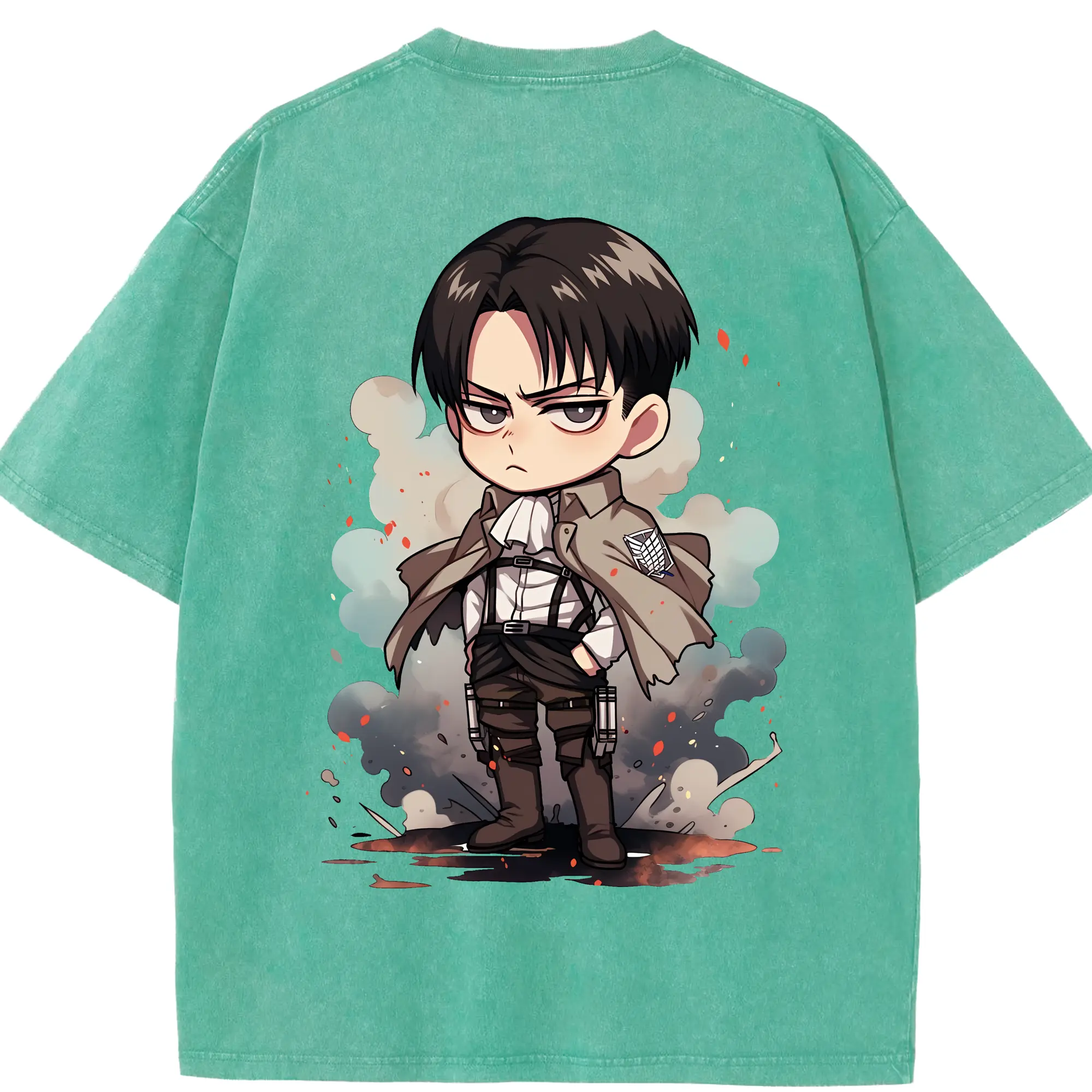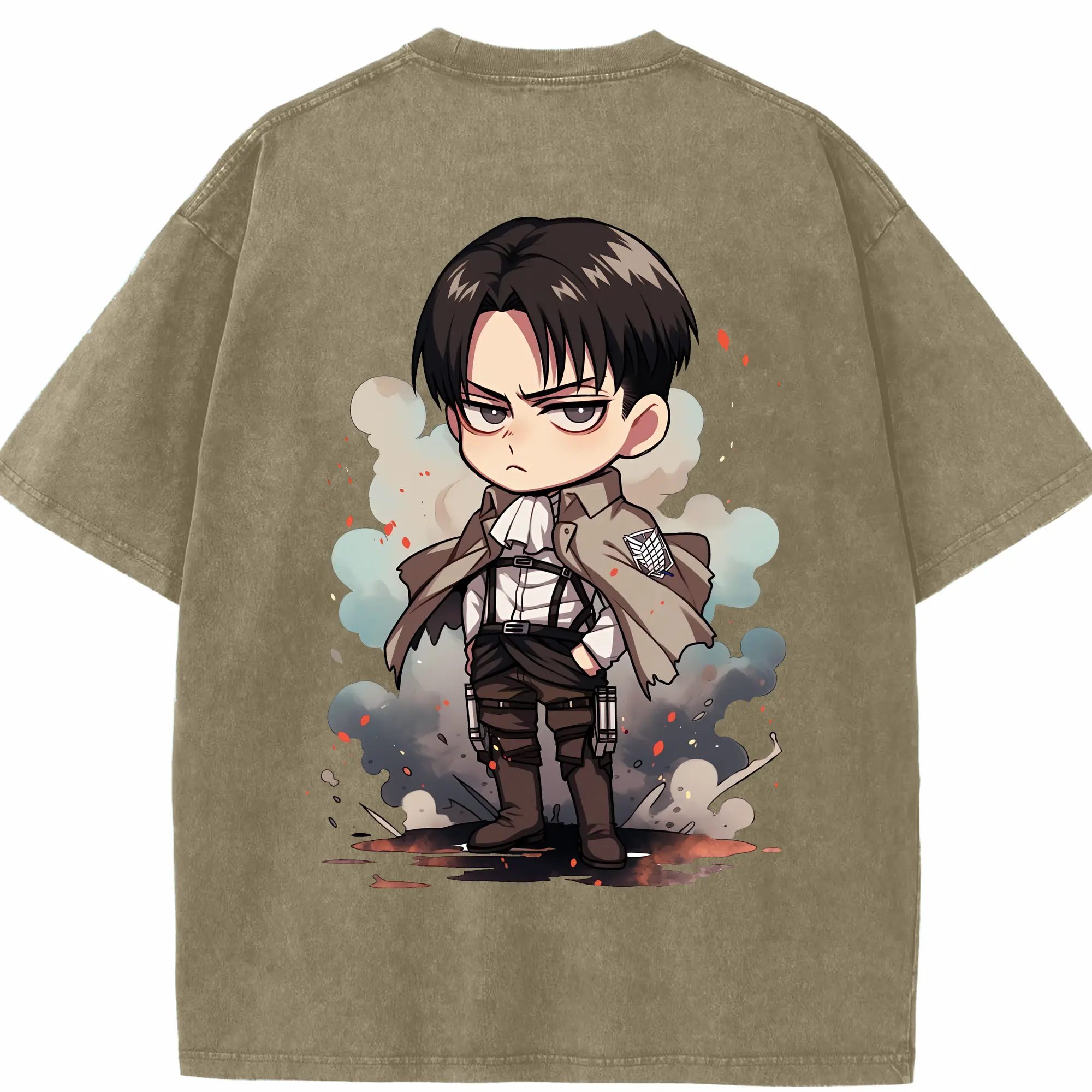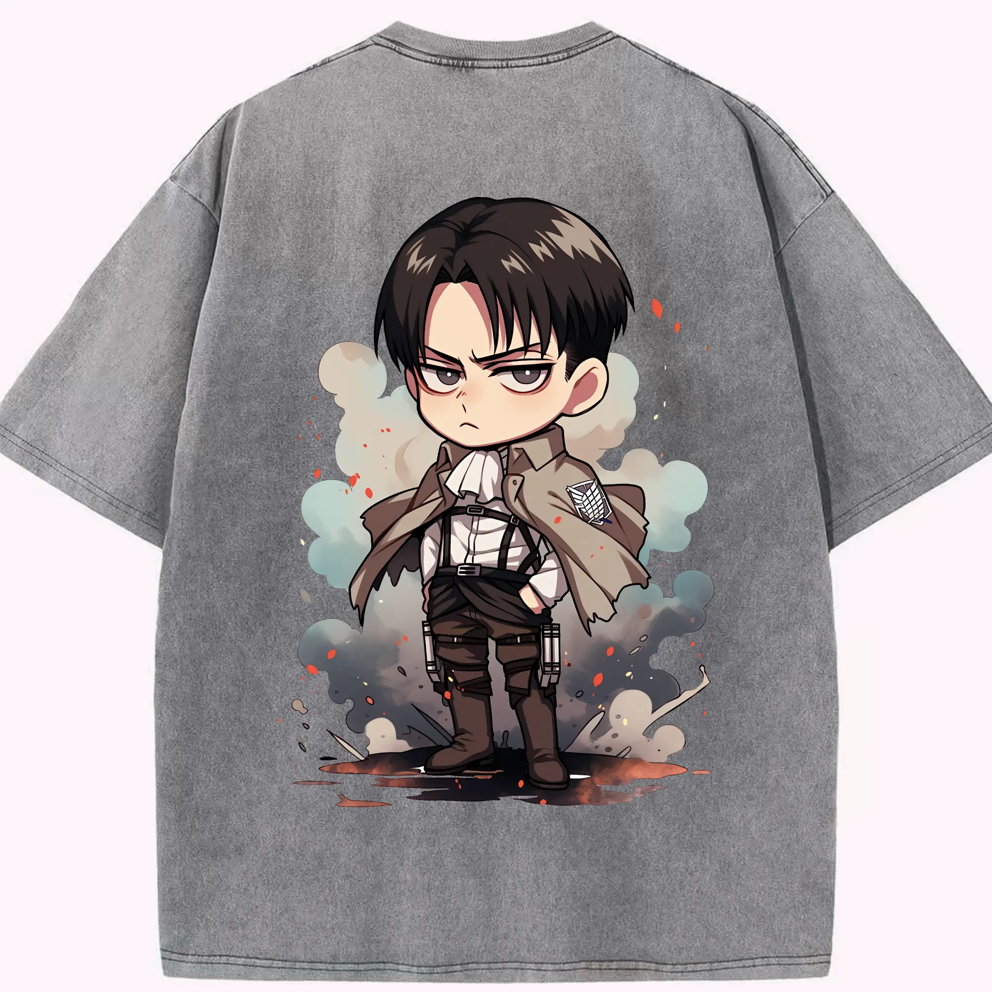 進撃の巨人 グッズ リヴァイ・アッカーマン - 綿100% ヴィンテージ風 半袖Tシャツ ・ フロントプリント ・ 柔らか肌触り ・ 通気性 快適 ・ スポーツ カジュアル 外出用