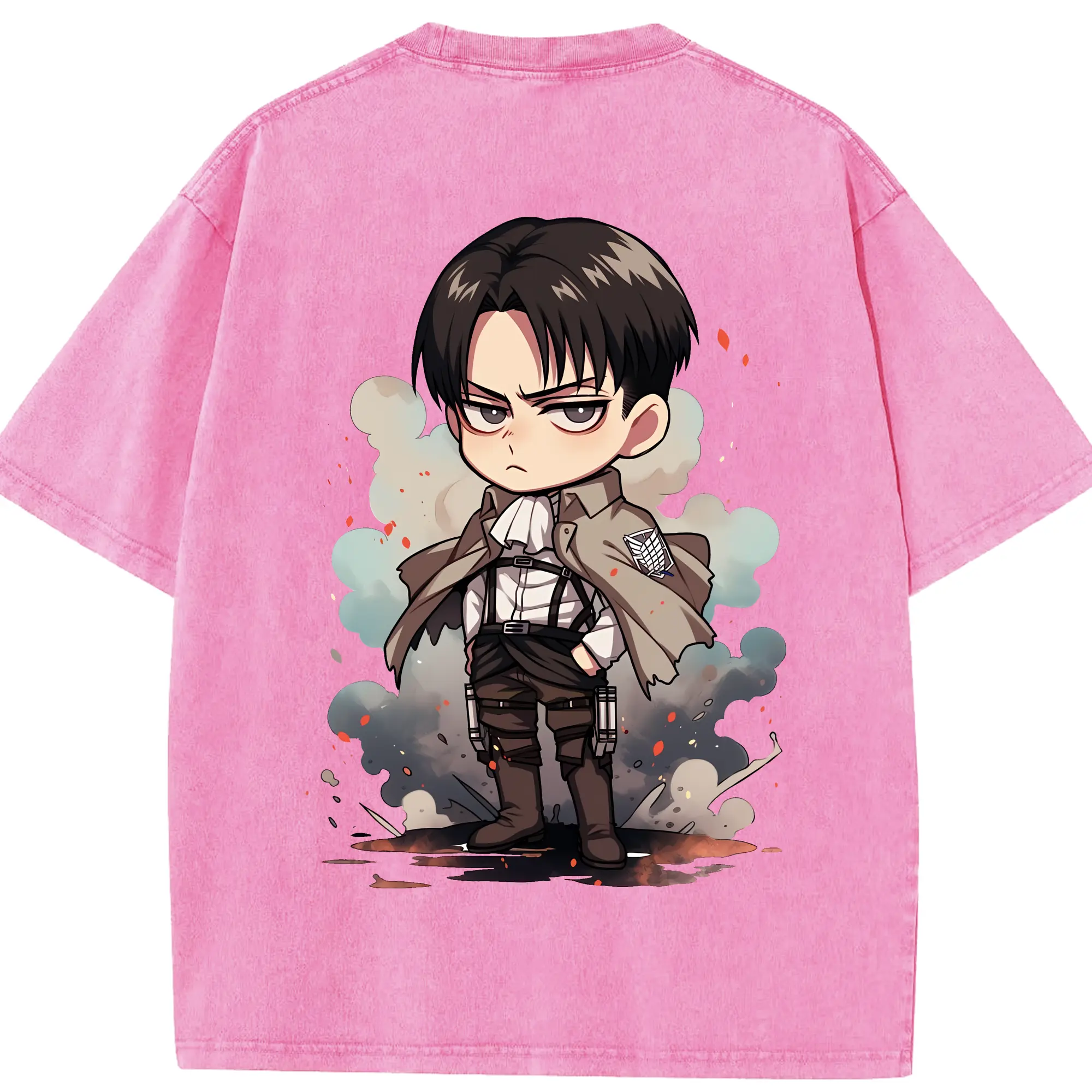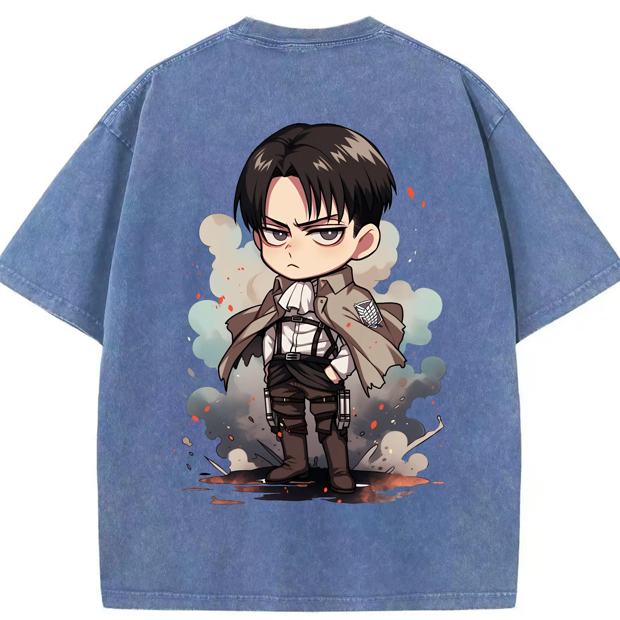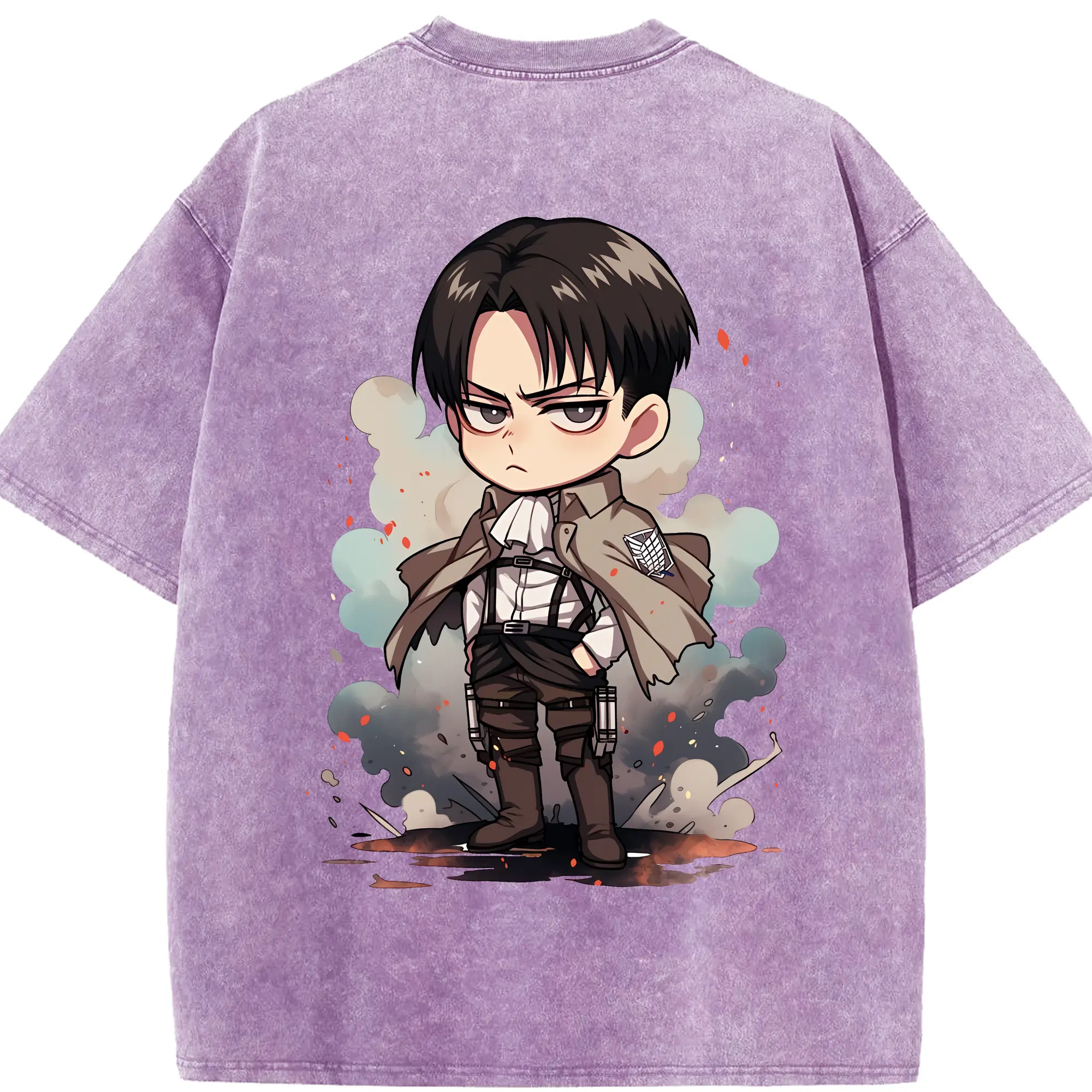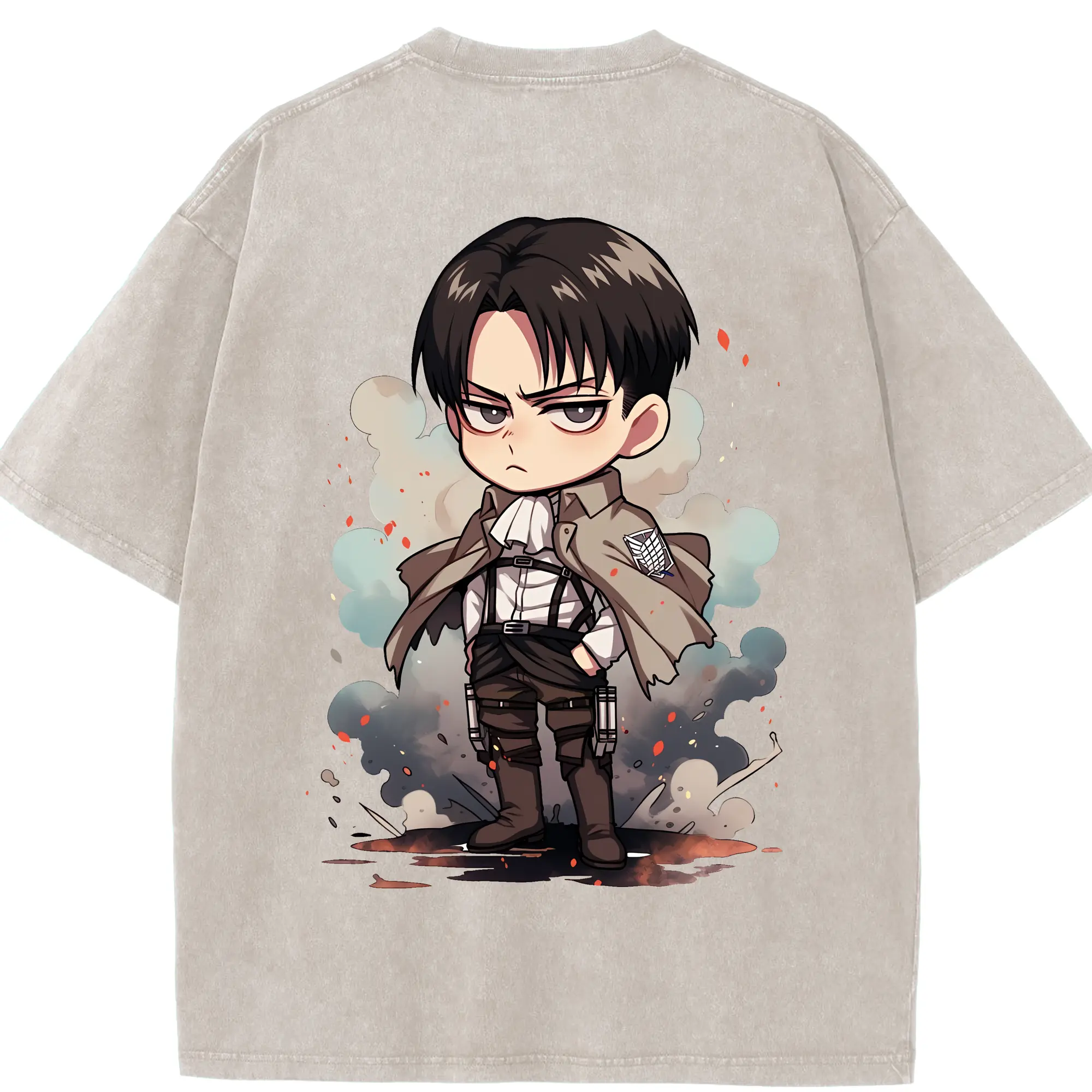 進撃の巨人 グッズ リヴァイ・アッカーマン - 綿100% ヴィンテージ風 半袖Tシャツ ・ フロントプリント ・ 柔らか肌触り ・ 通気性 快適 ・ スポーツ カジュアル 外出用