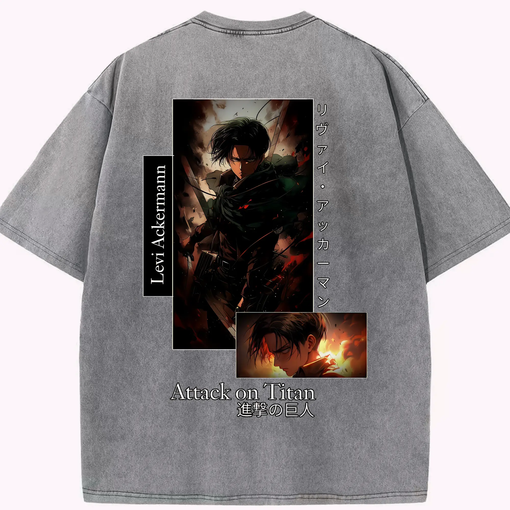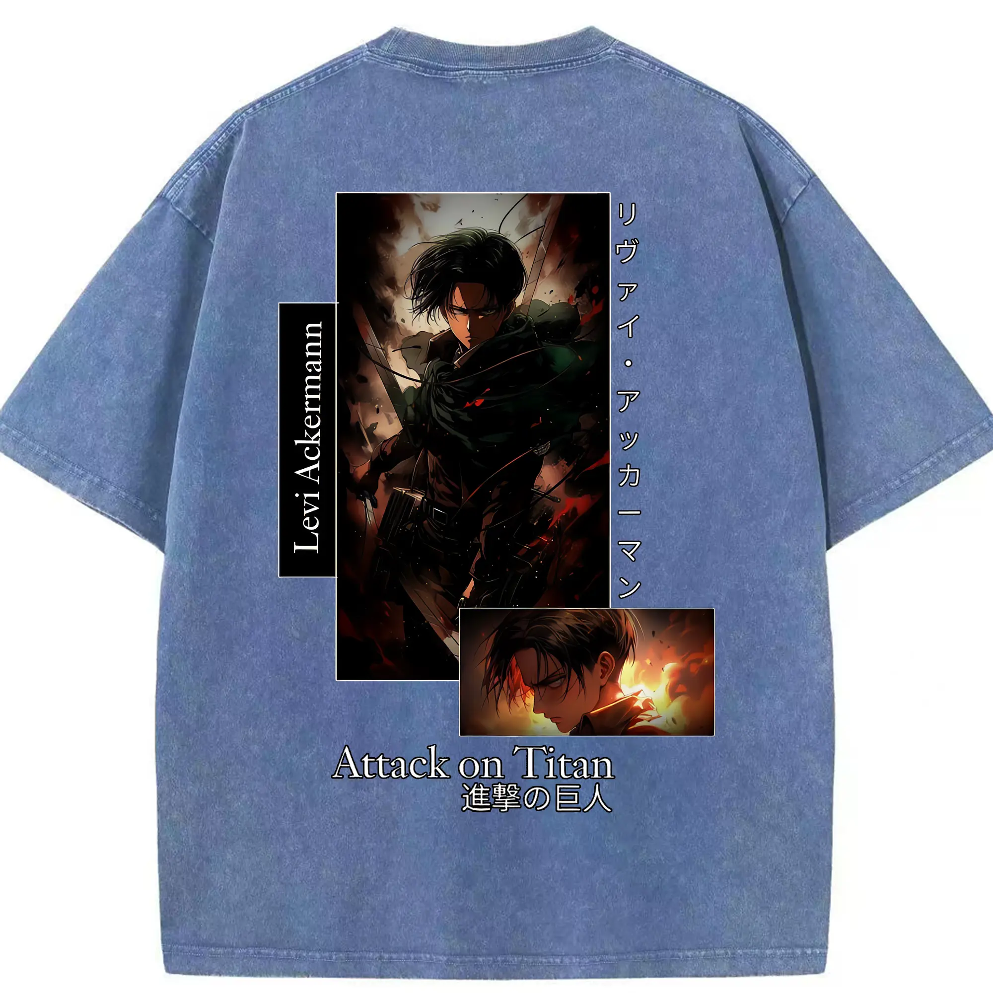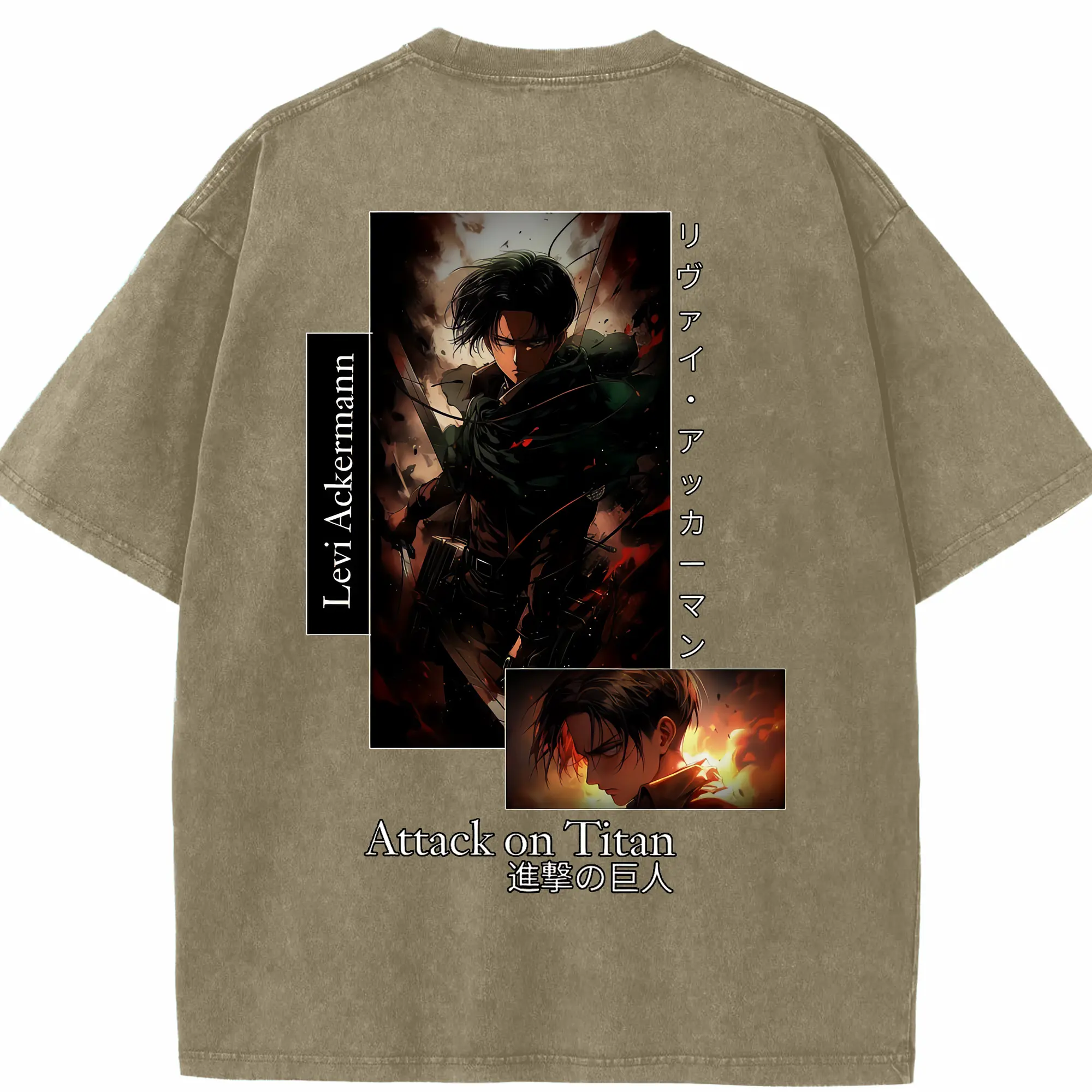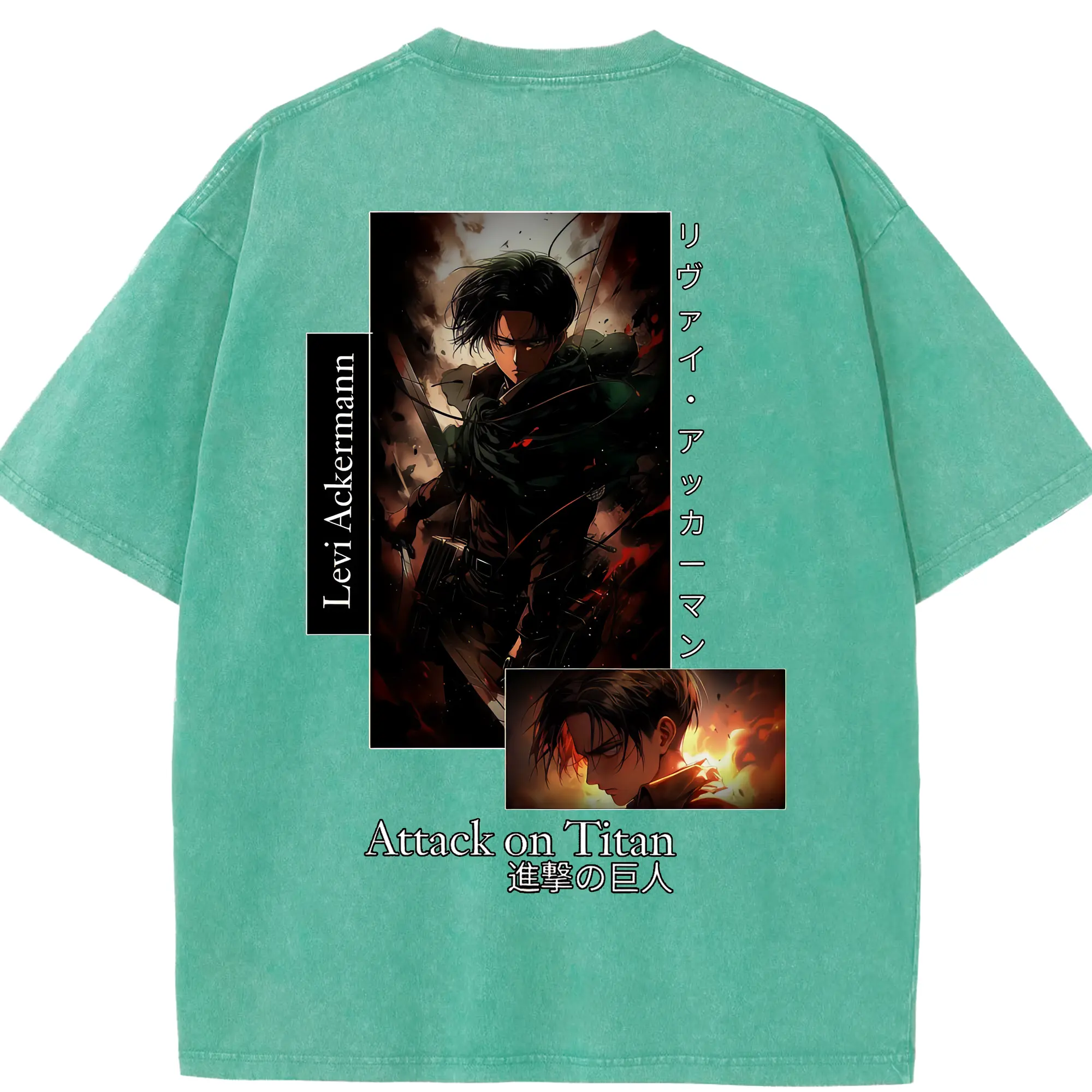 進撃の巨人 グッズ リヴァイ・アッカーマン - 綿100% ヴィンテージ風 半袖Tシャツ ・ フロントプリント ・ 柔らか肌触り ・ 通気性 快適 ・ スポーツ カジュアル 外出用