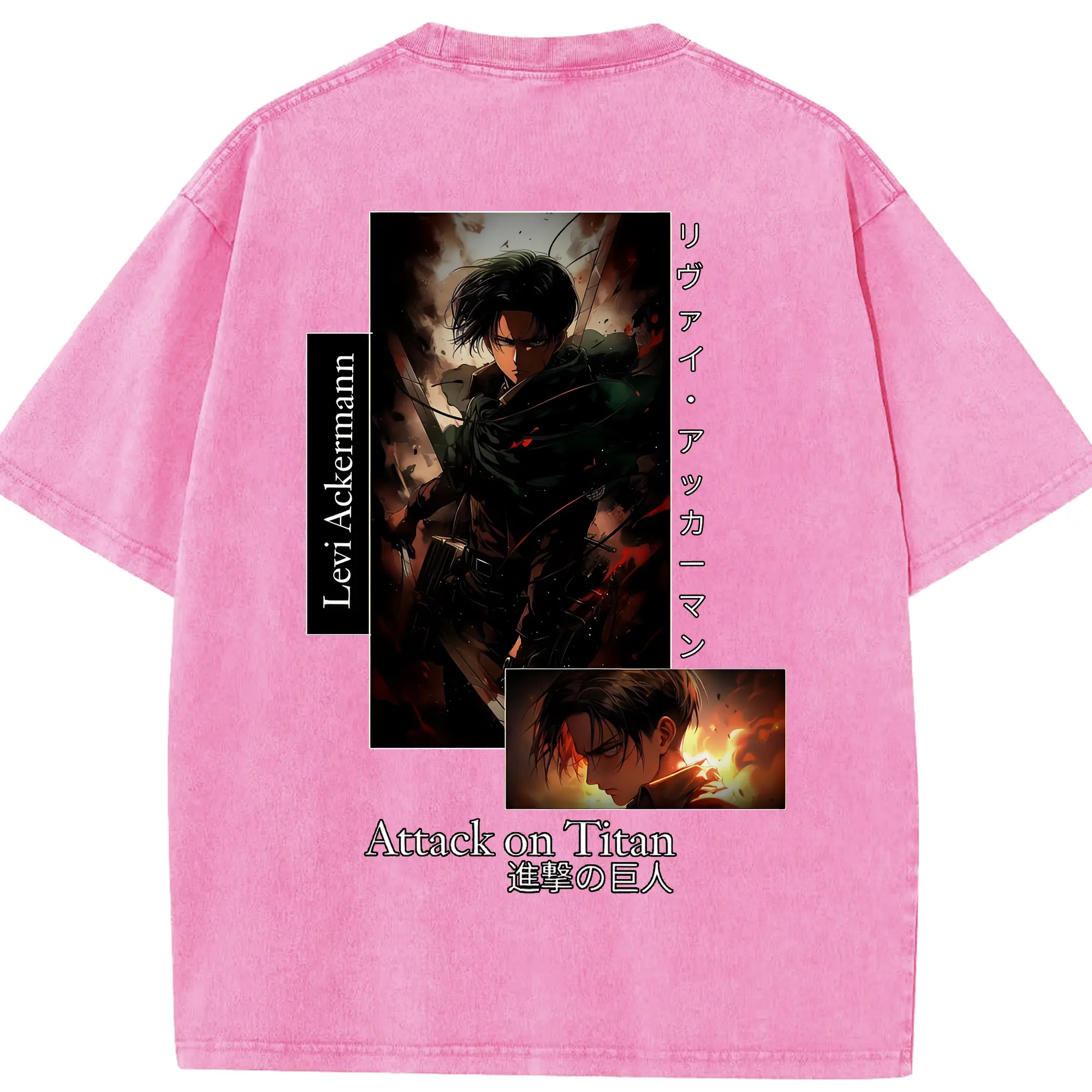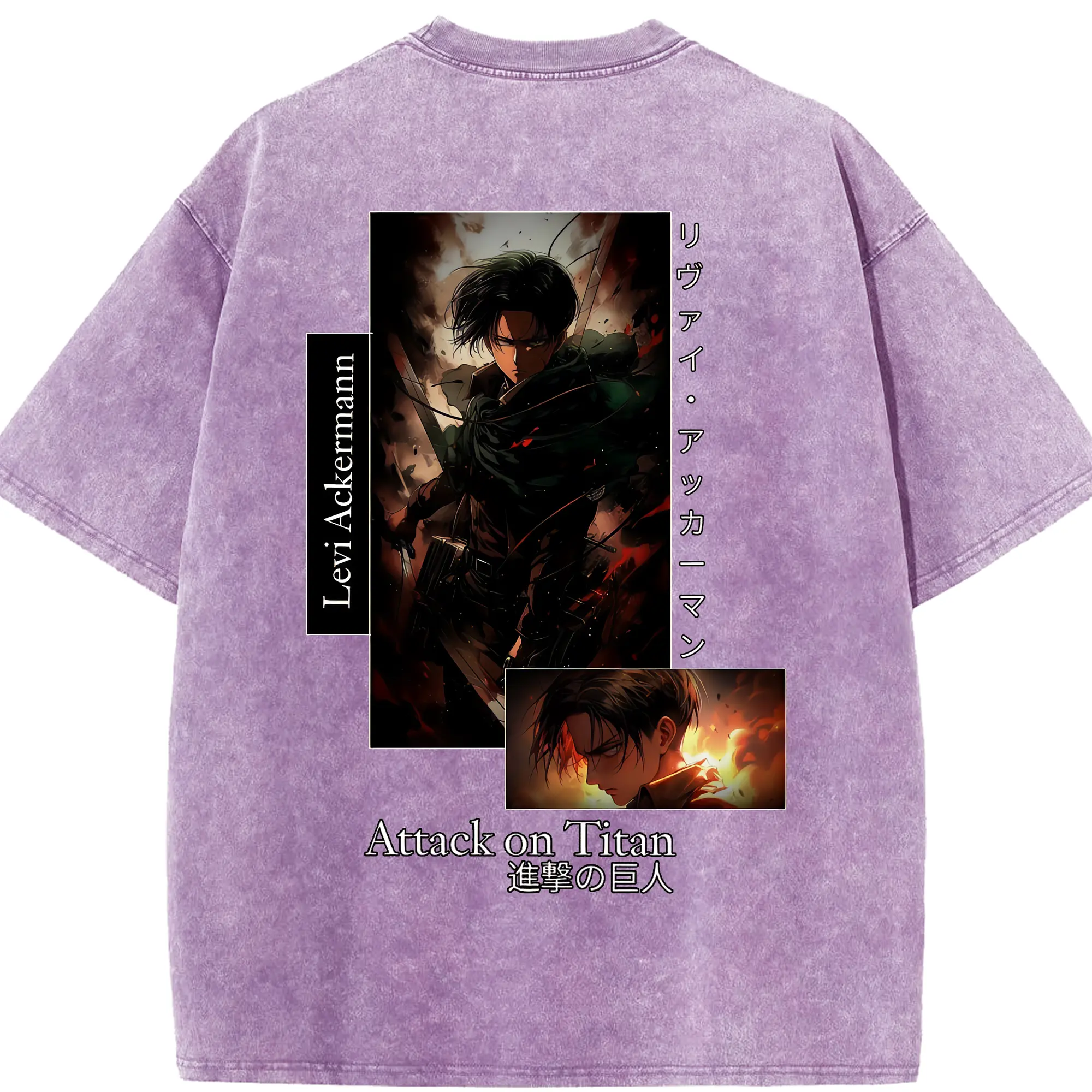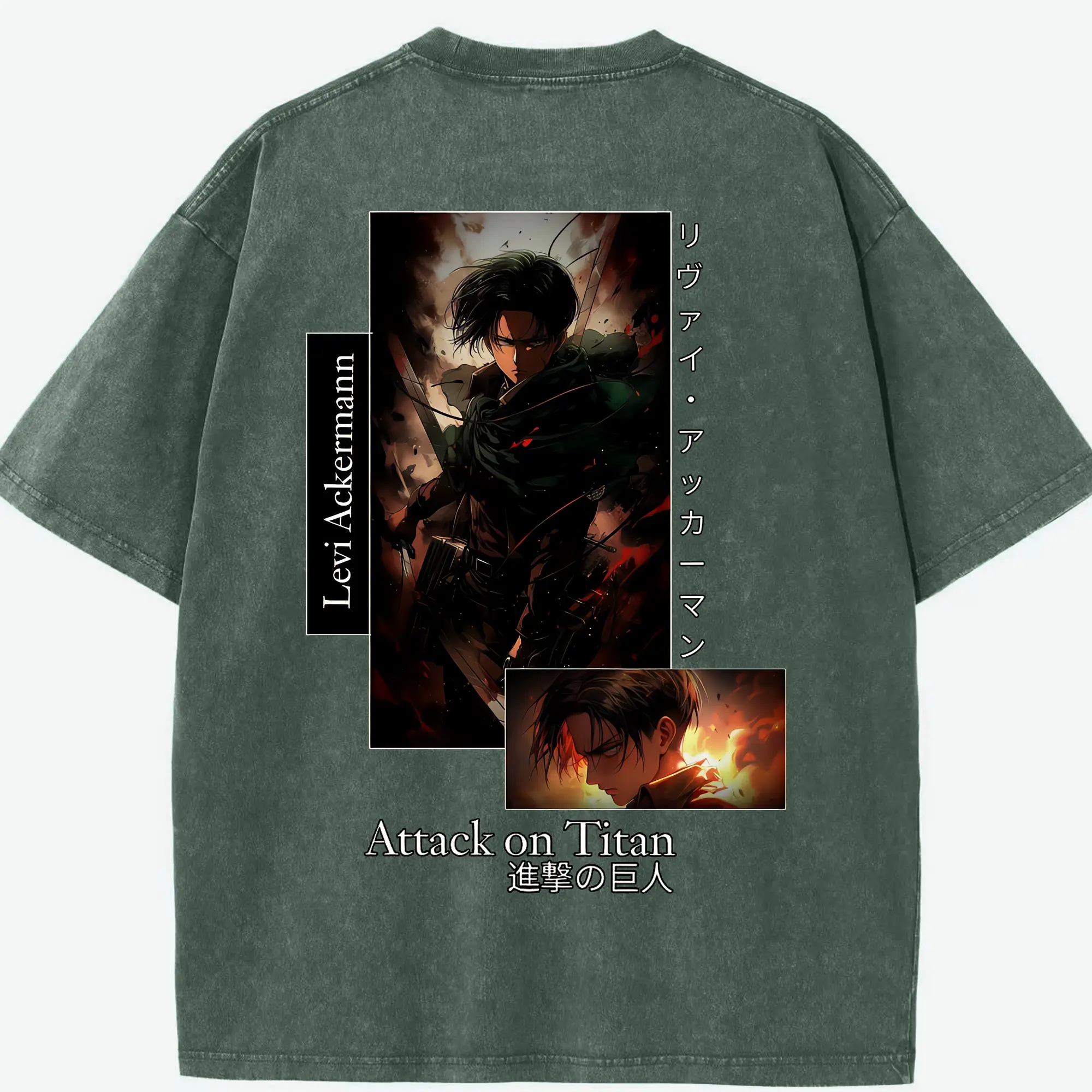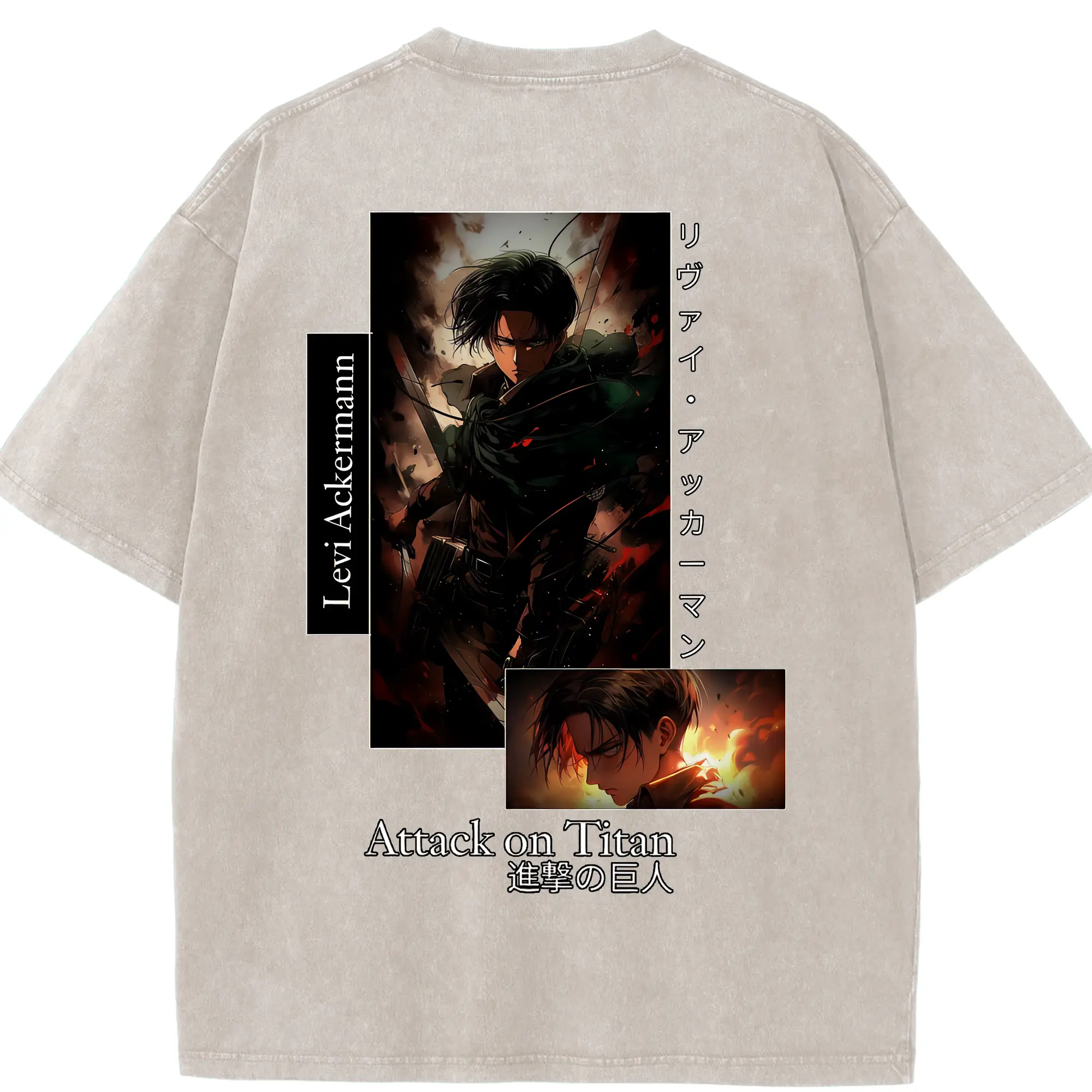進撃の巨人 グッズ リヴァイ・アッカーマン - 綿100% ヴィンテージ風 半袖Tシャツ ・ フロントプリント ・ 柔らか肌触り ・ 通気性 快適 ・ スポーツ カジュアル 外出用