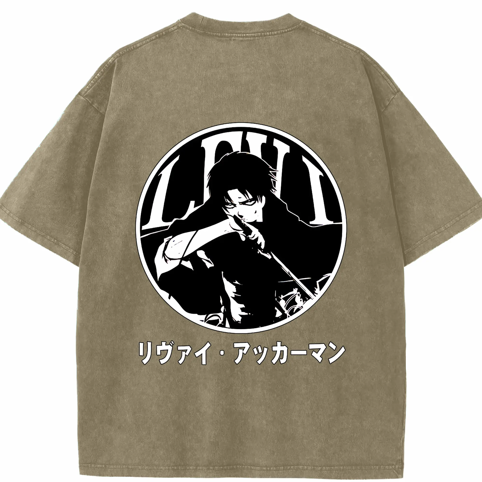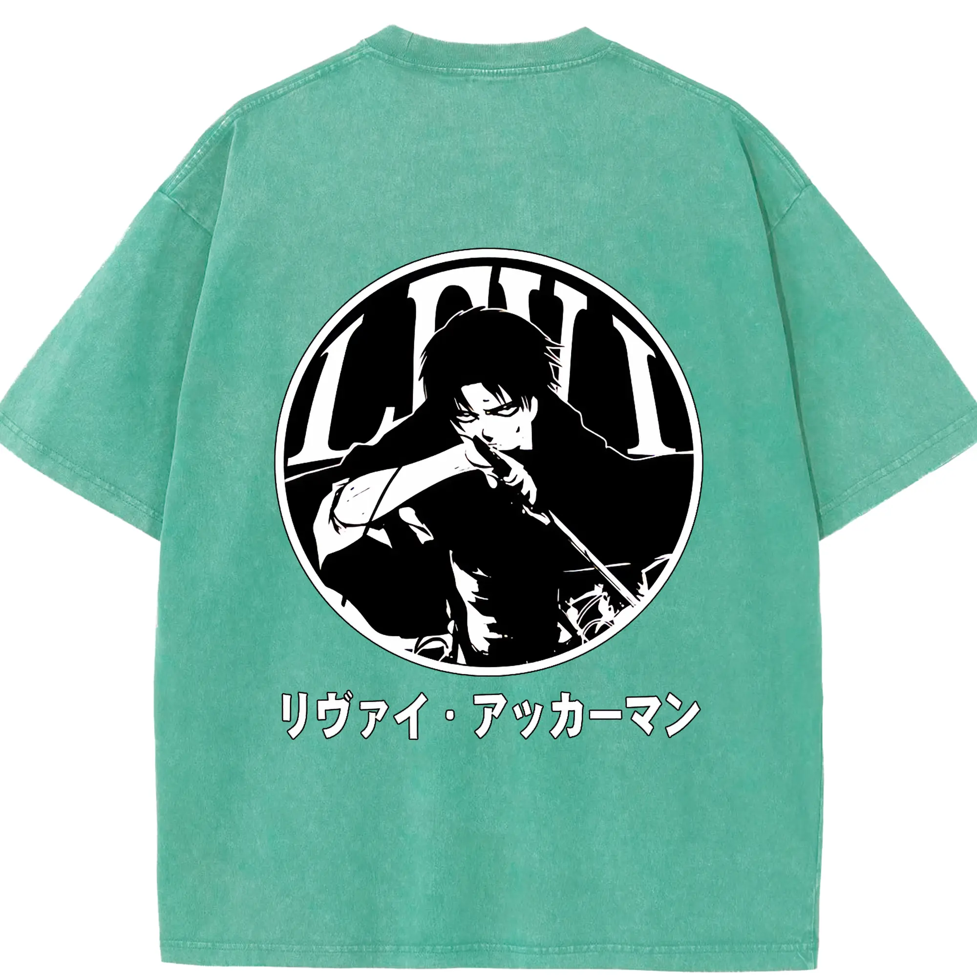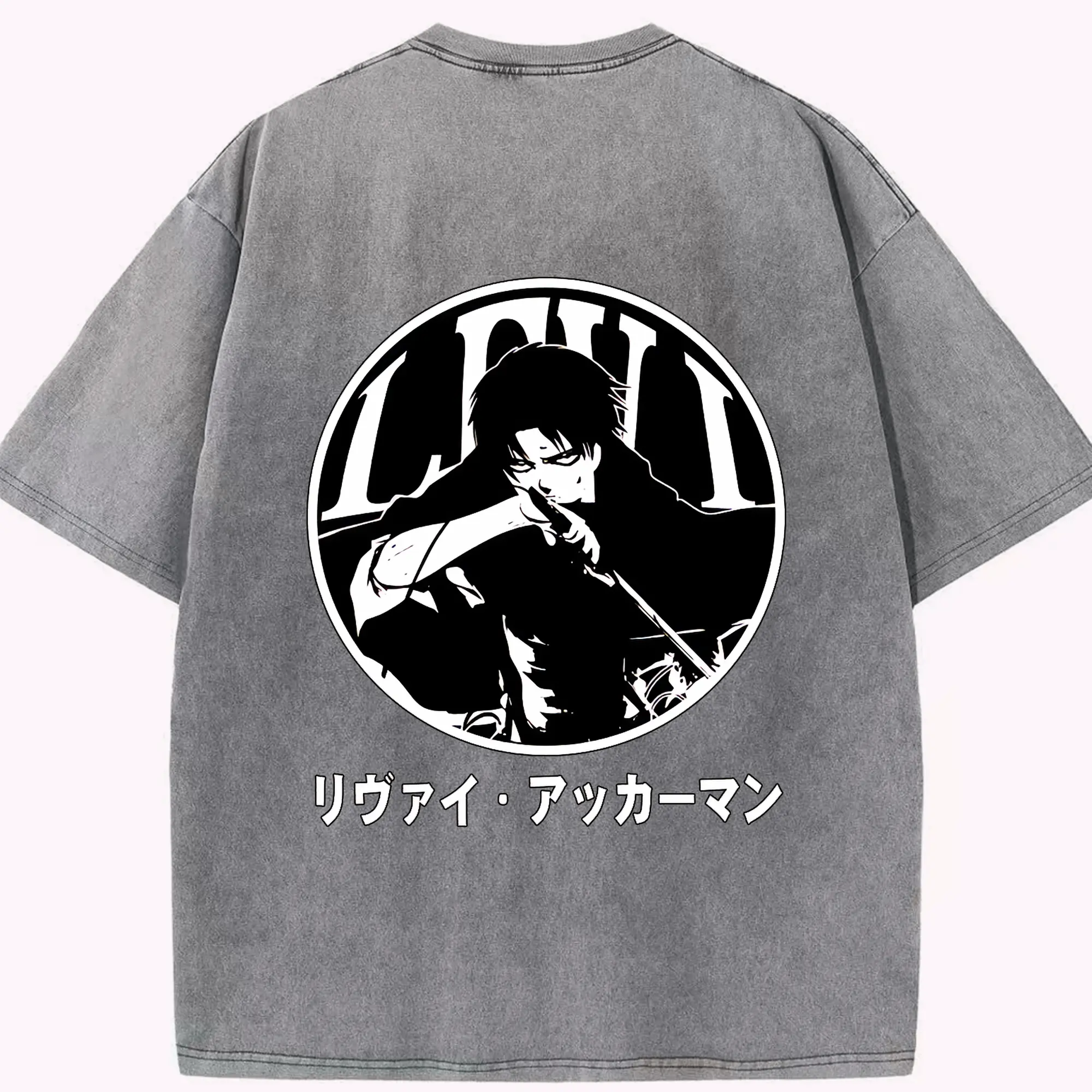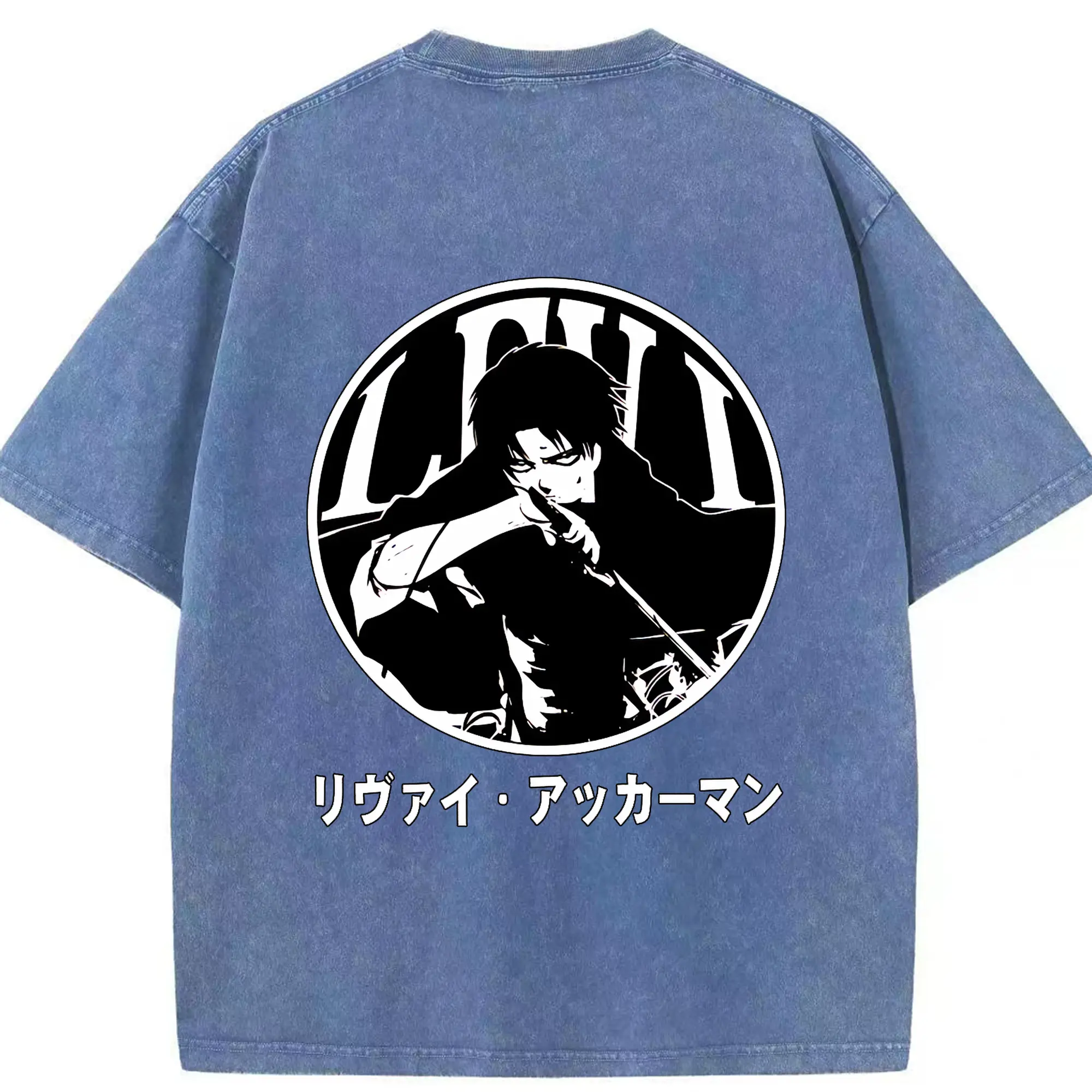 進撃の巨人 グッズ リヴァイ・アッカーマン - 綿100% ヴィンテージ風 半袖Tシャツ ・ フロントプリント ・ 柔らか肌触り ・ 通気性 快適 ・ スポーツ カジュアル 外出用