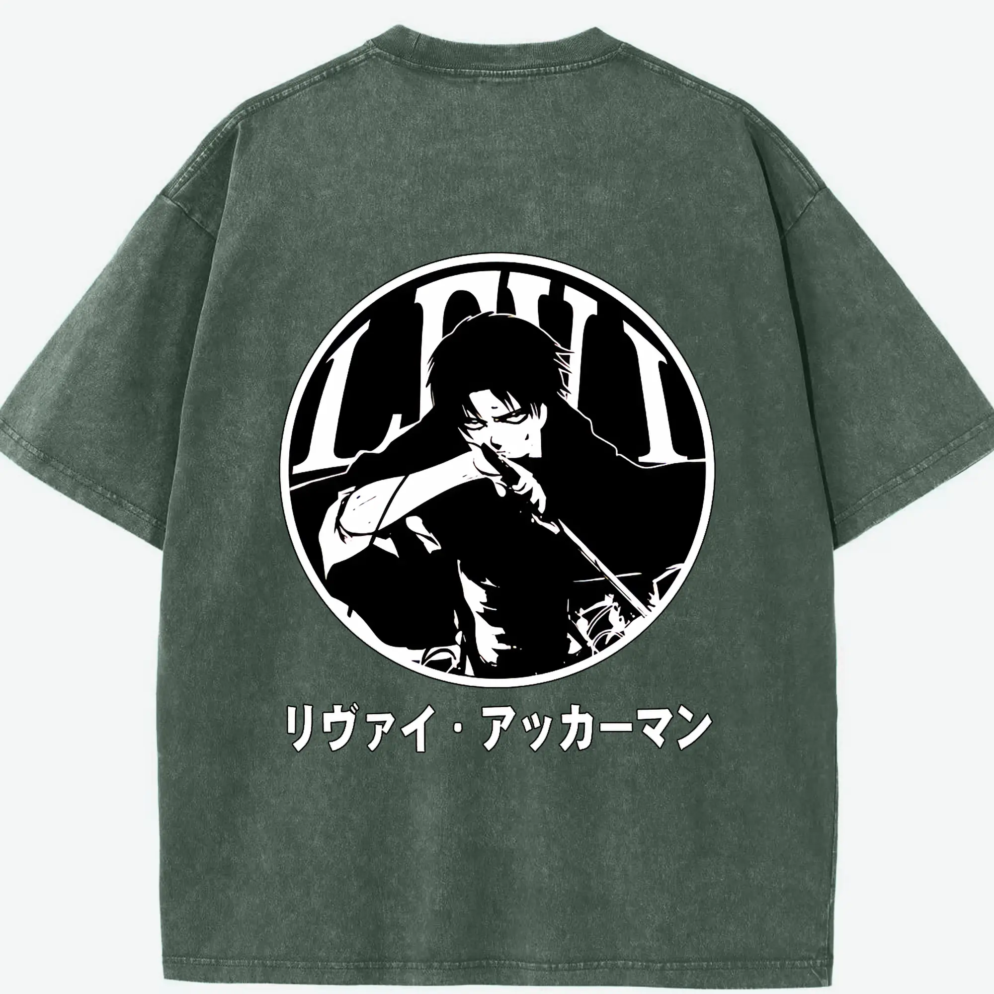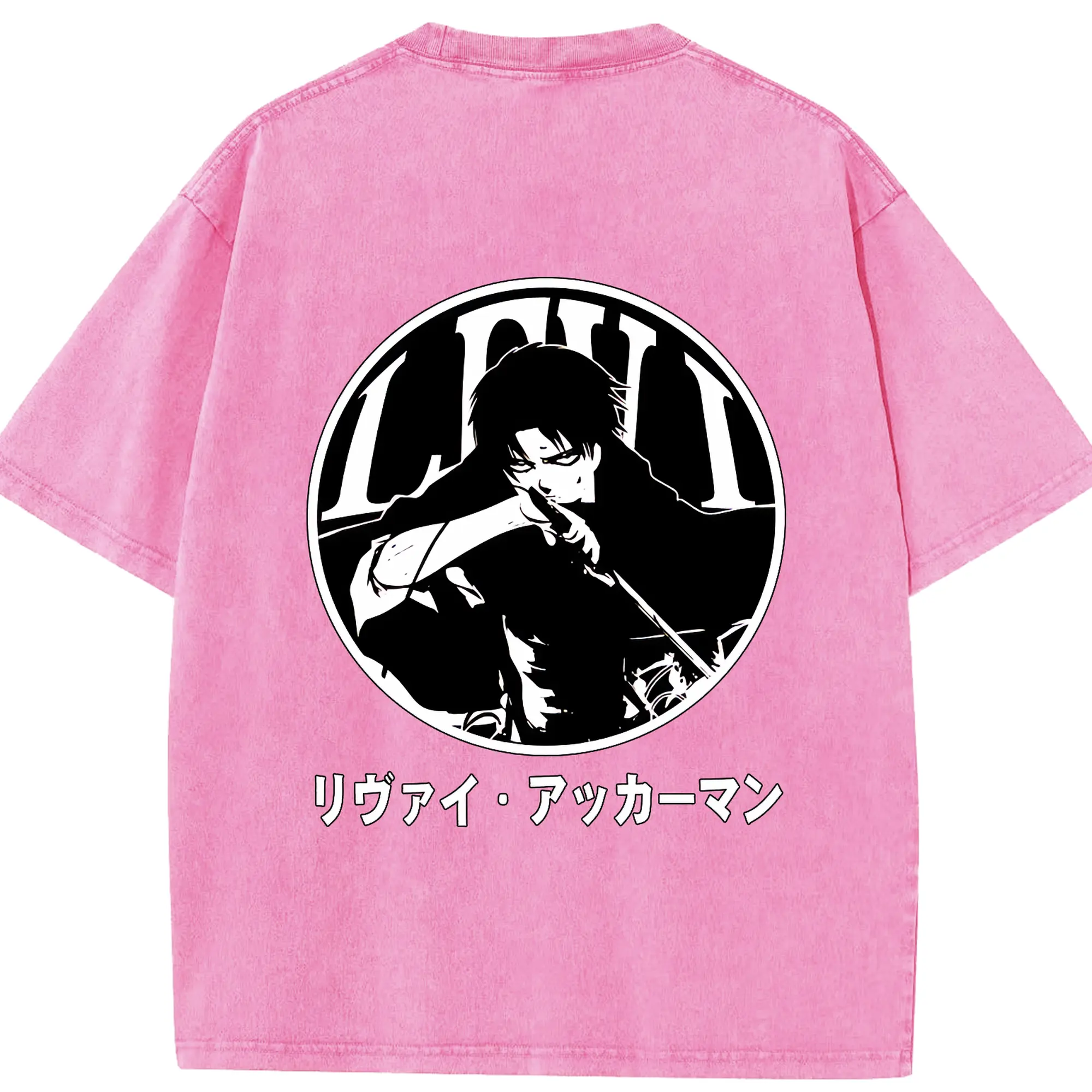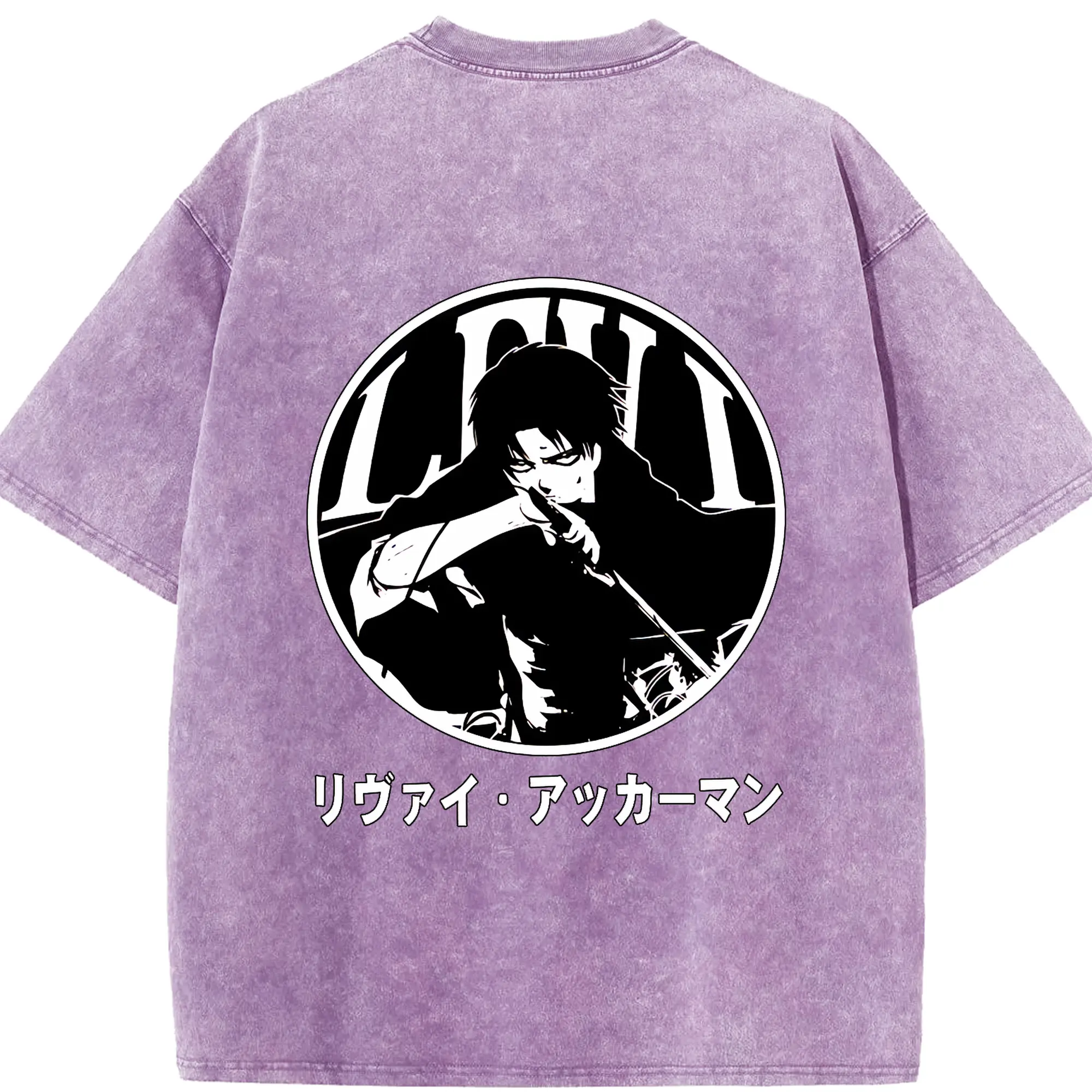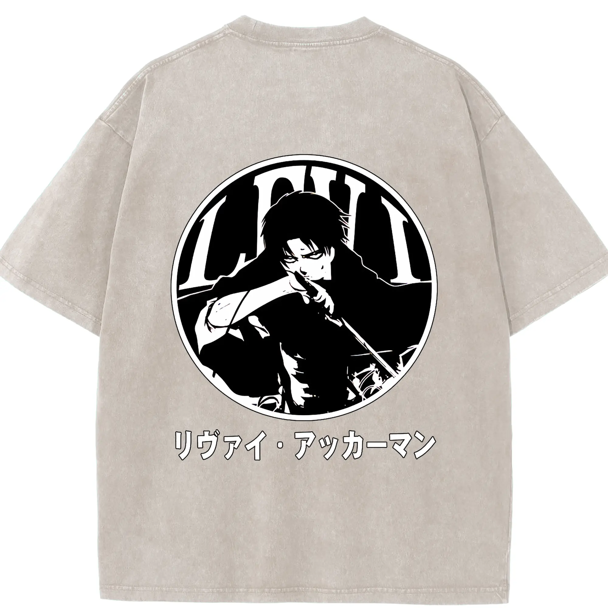 進撃の巨人 グッズ リヴァイ・アッカーマン - 綿100% ヴィンテージ風 半袖Tシャツ ・ フロントプリント ・ 柔らか肌触り ・ 通気性 快適 ・ スポーツ カジュアル 外出用