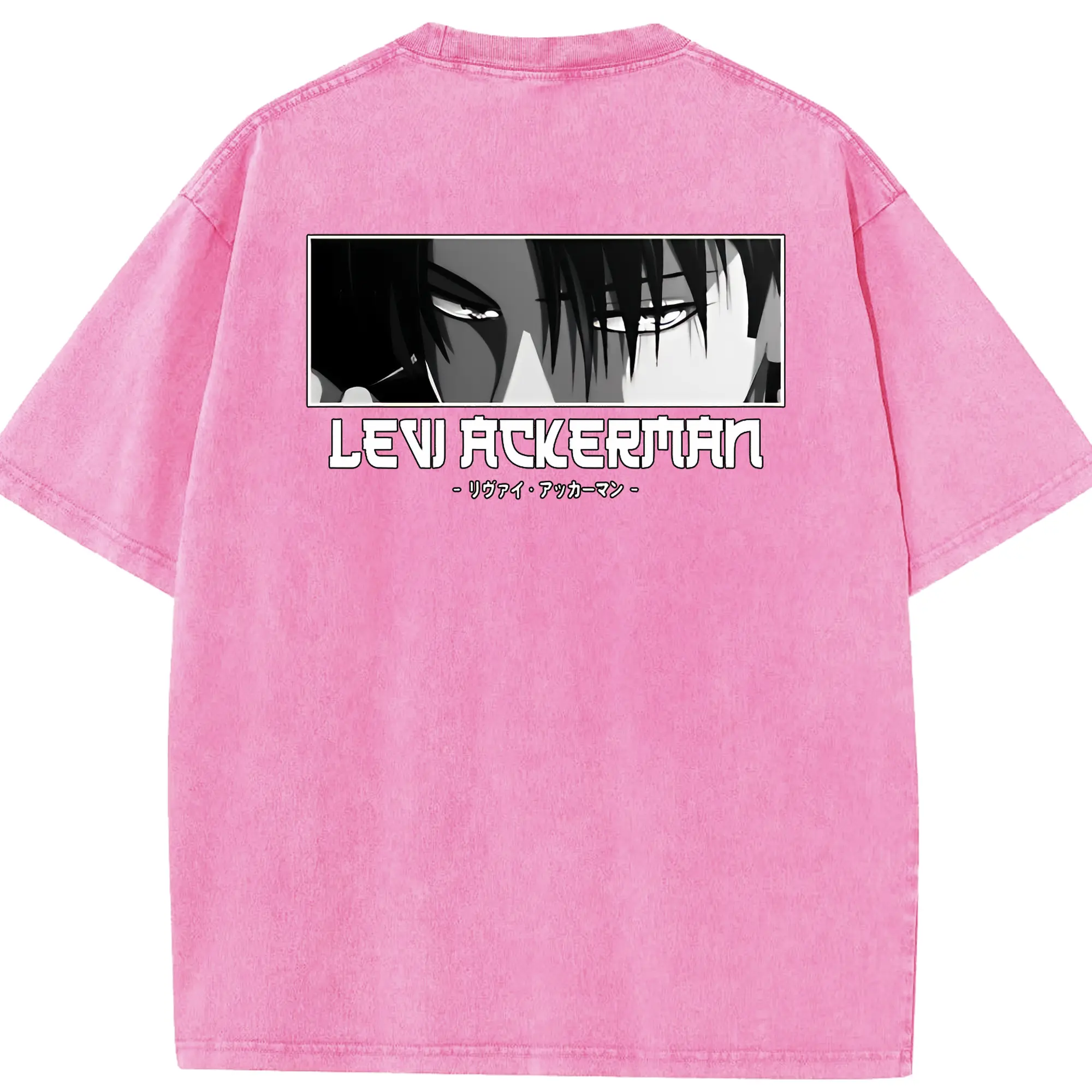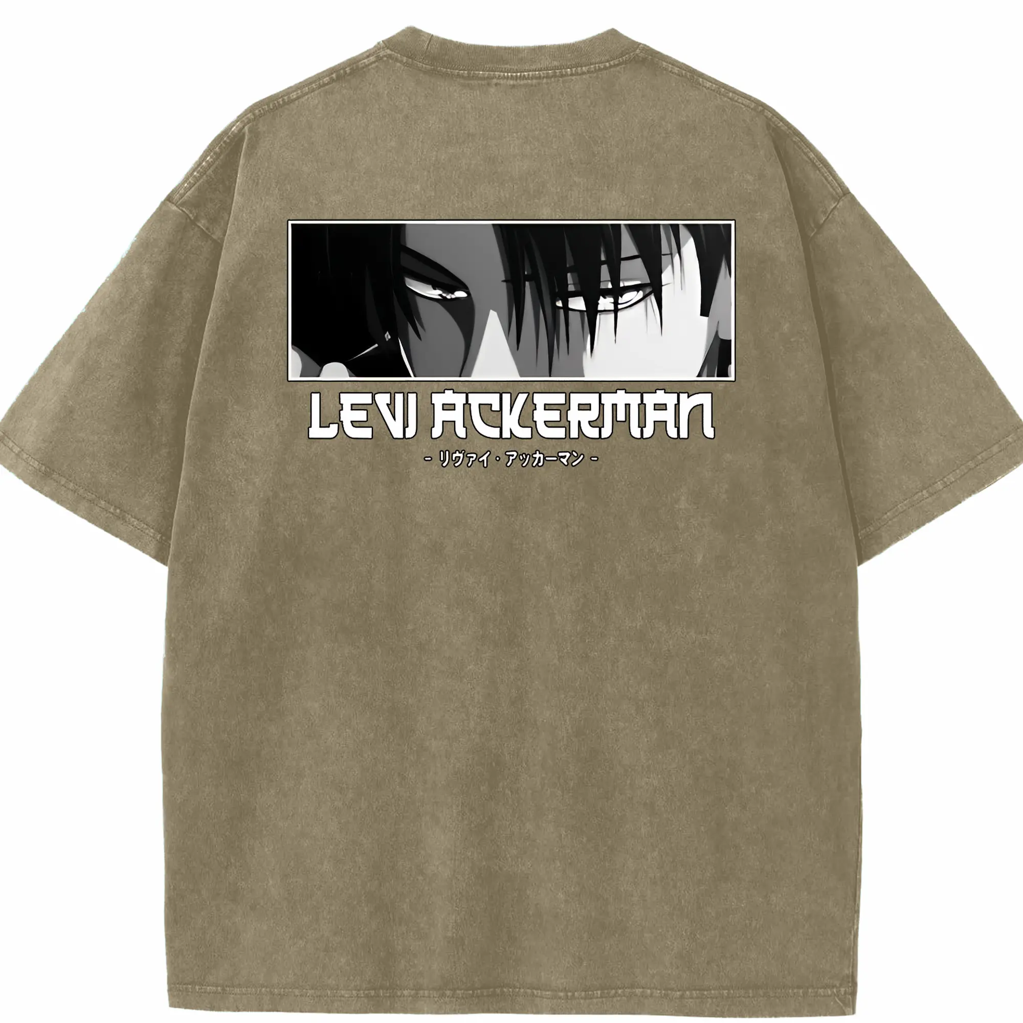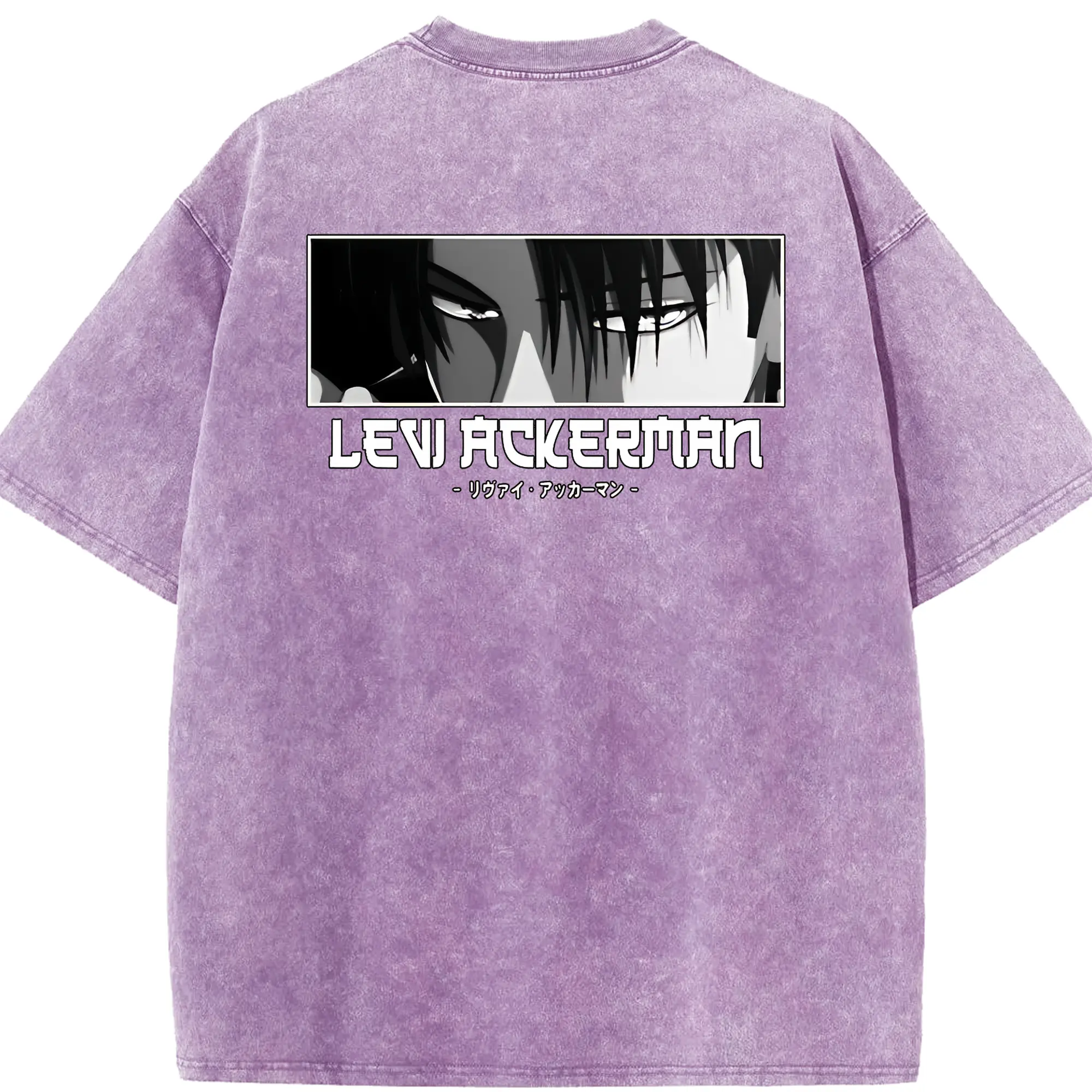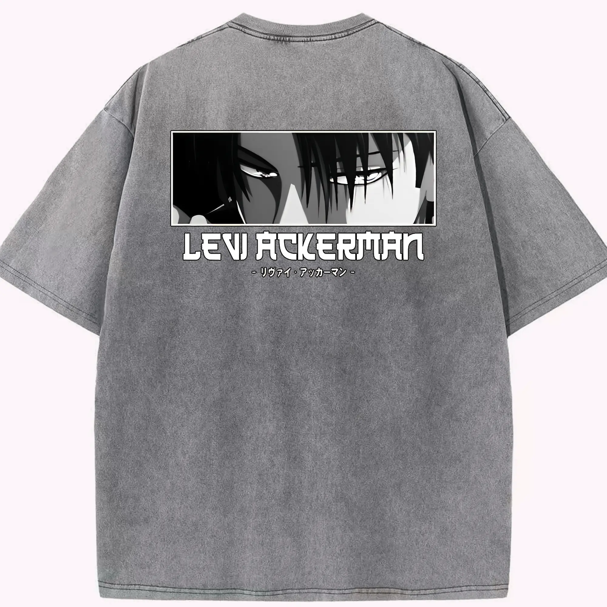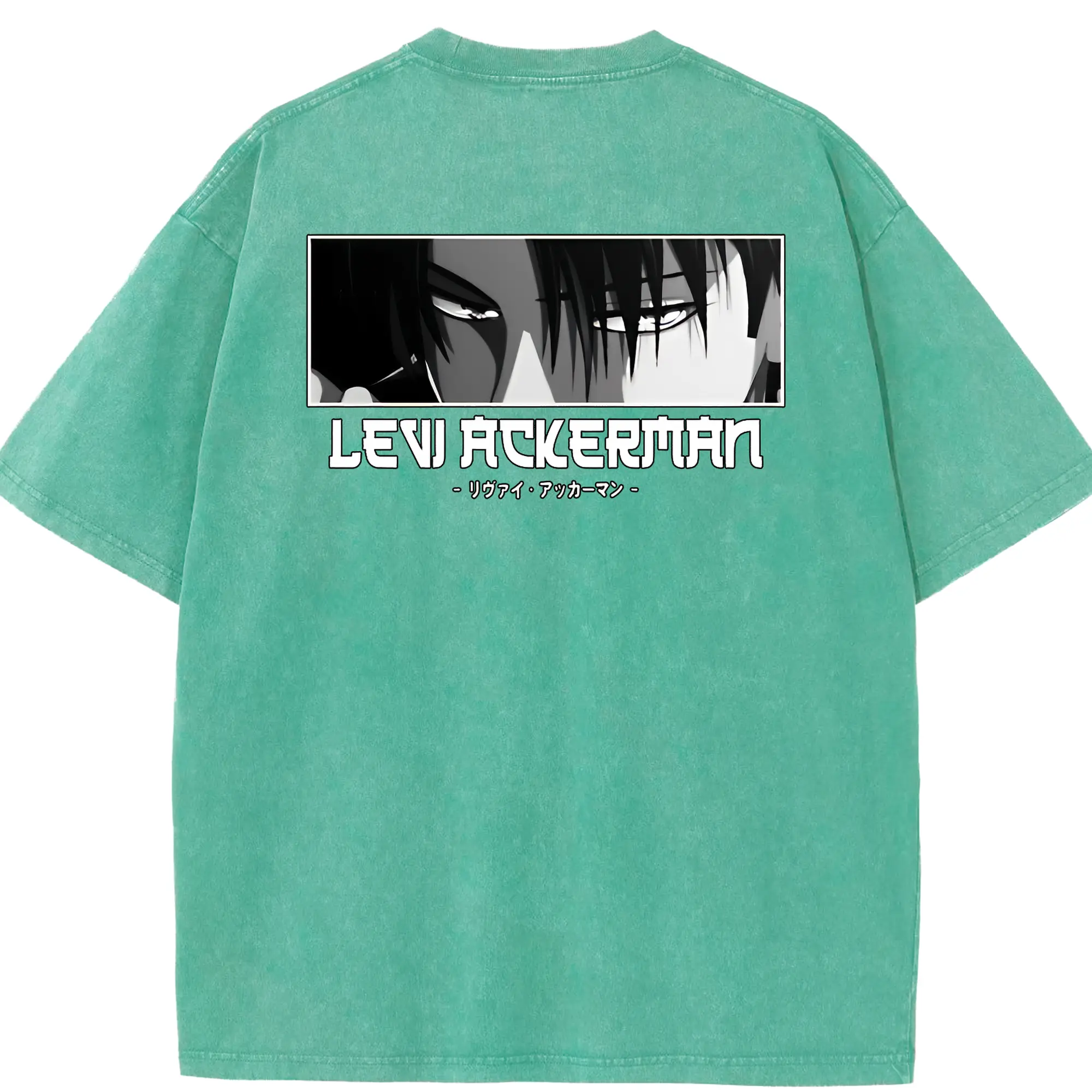 進撃の巨人 グッズ リヴァイ・アッカーマン - 綿100% ヴィンテージ風 半袖Tシャツ ・ フロントプリント ・ 柔らか肌触り ・ 通気性 快適 ・ スポーツ カジュアル 外出用