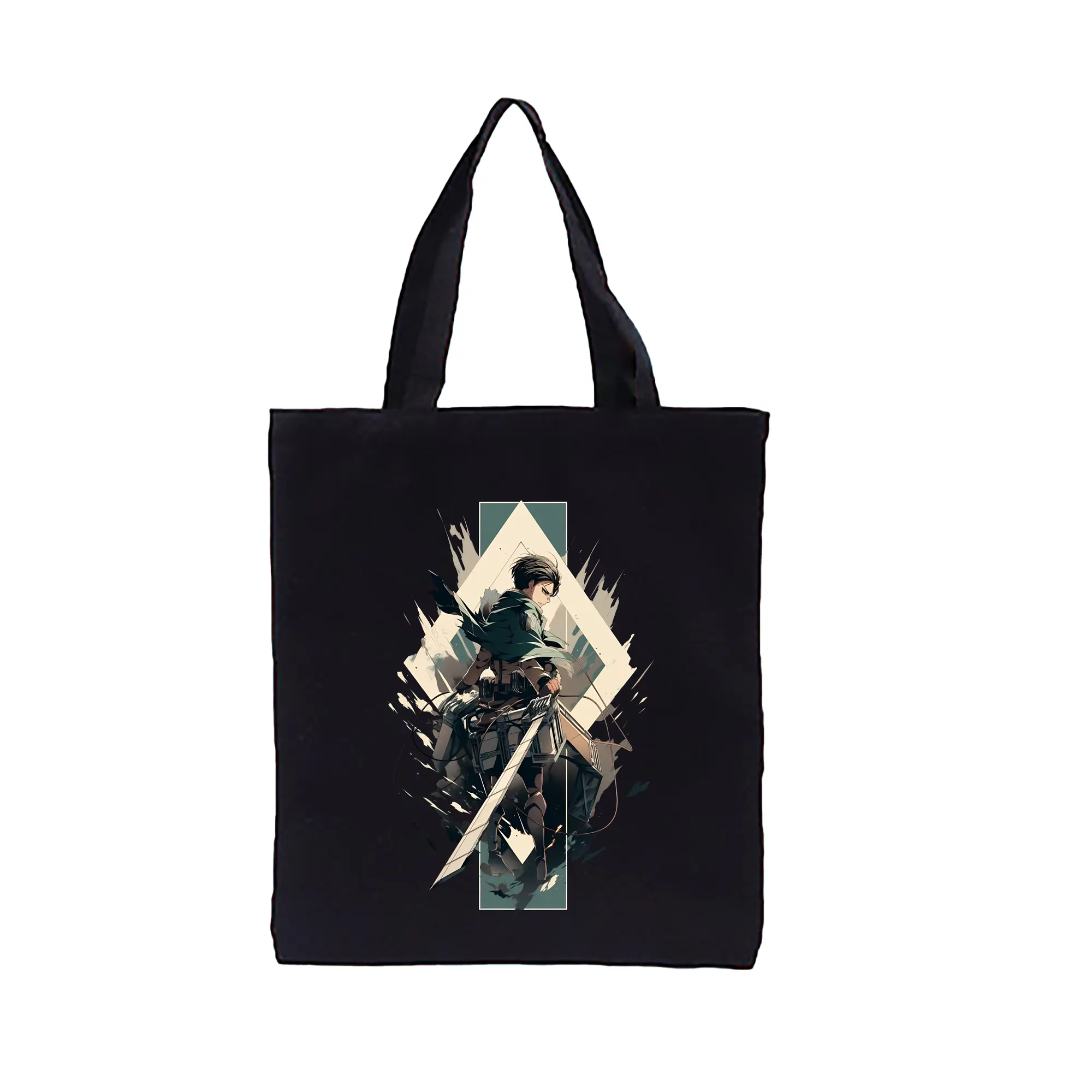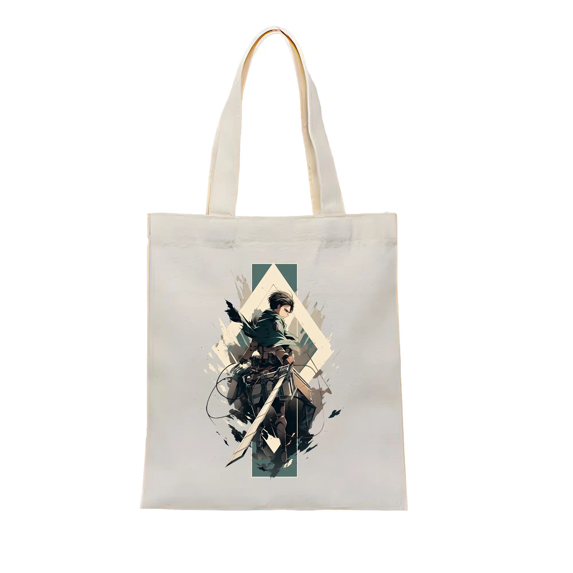 進撃の巨人 グッズ リヴァイ・アッカーマン - 縦型キャンバス手提げバッグ(トートバッグ) ・ キャンバス素材 ・ ショッピング用 ・ 軽量 丈夫 お手入れ簡単