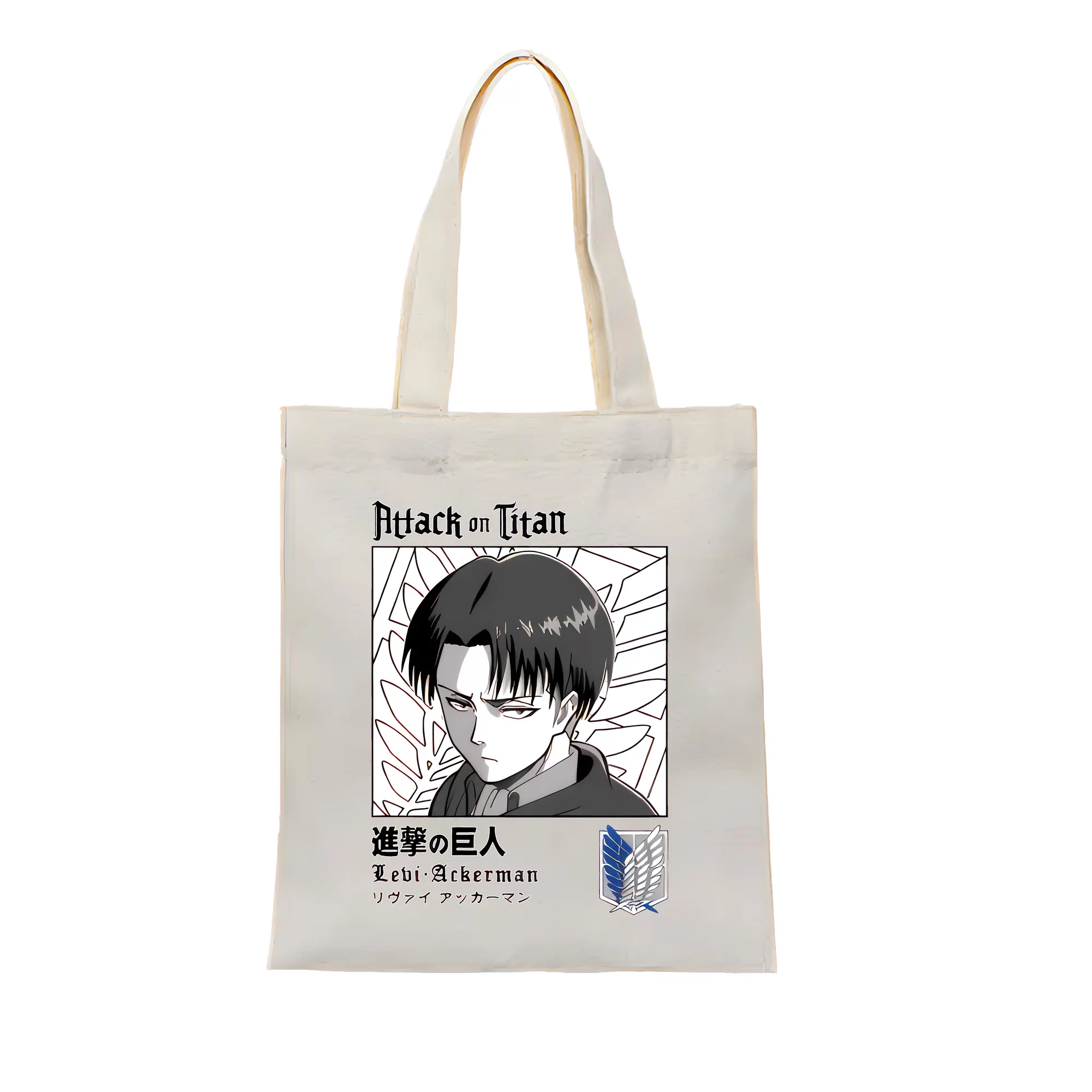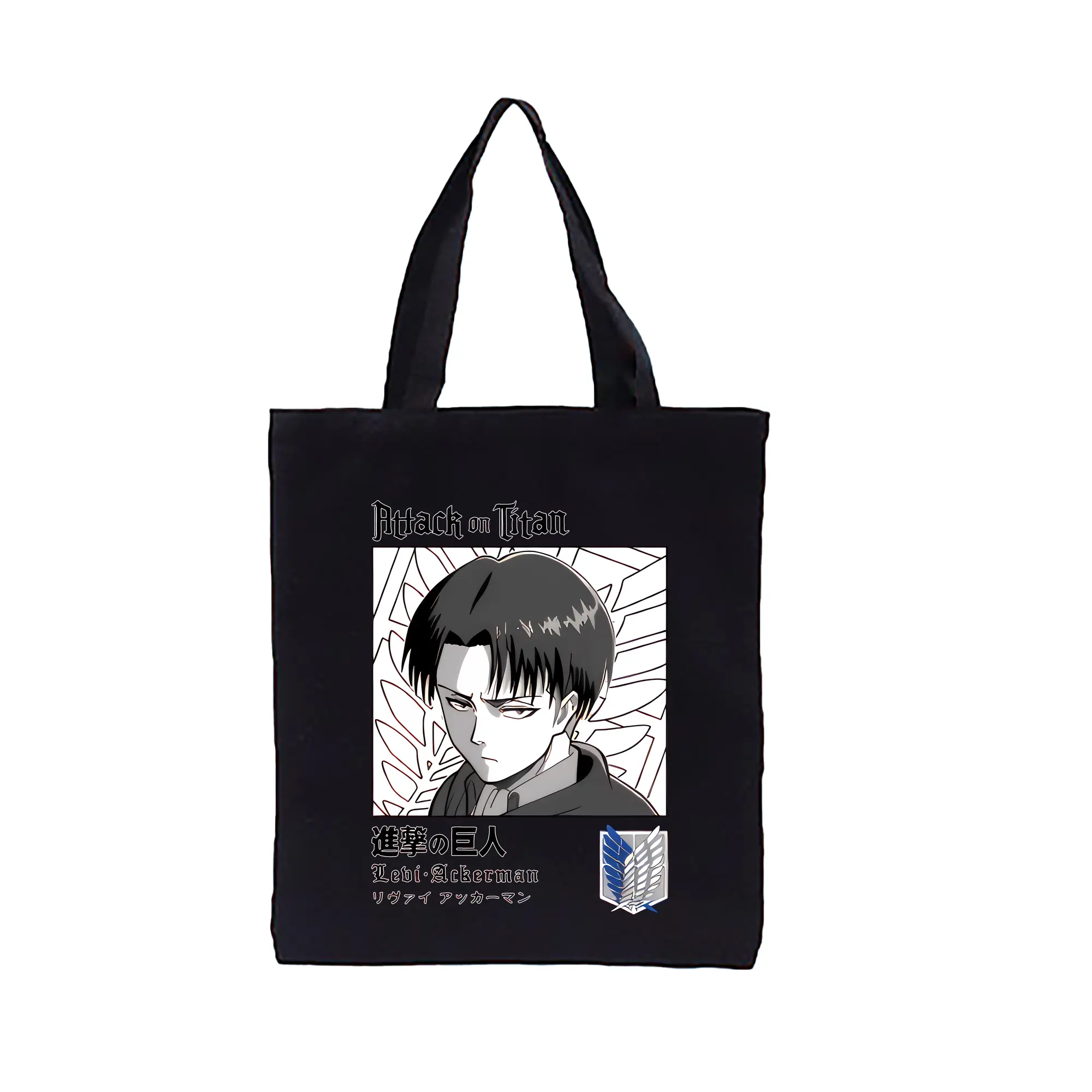 進撃の巨人 グッズ リヴァイ・アッカーマン - 縦型キャンバス手提げバッグ(トートバッグ) ・ キャンバス素材 ・ ショッピング用 ・ 軽量 丈夫 お手入れ簡単