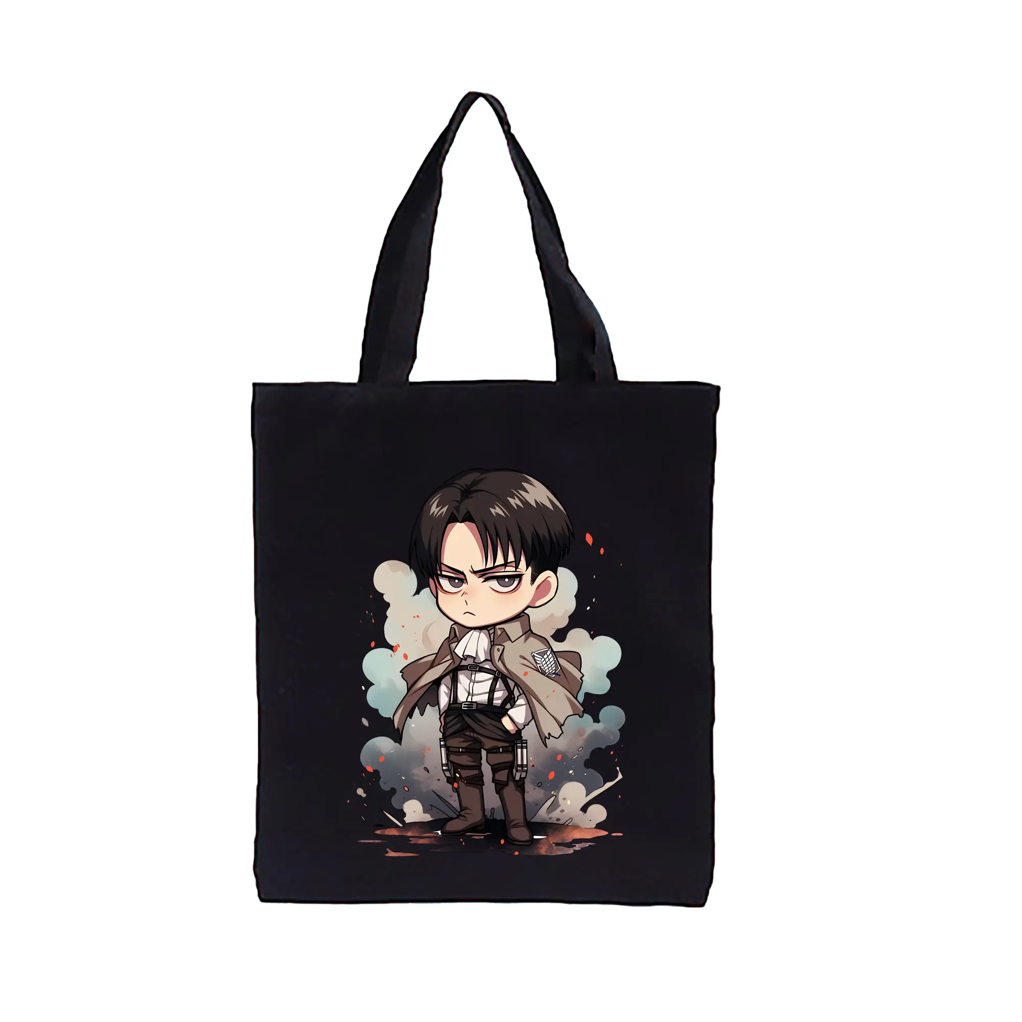 進撃の巨人 グッズ リヴァイ・アッカーマン - 縦型キャンバス手提げバッグ(トートバッグ) ・ キャンバス素材 ・ ショッピング用 ・ 軽量 丈夫 お手入れ簡単