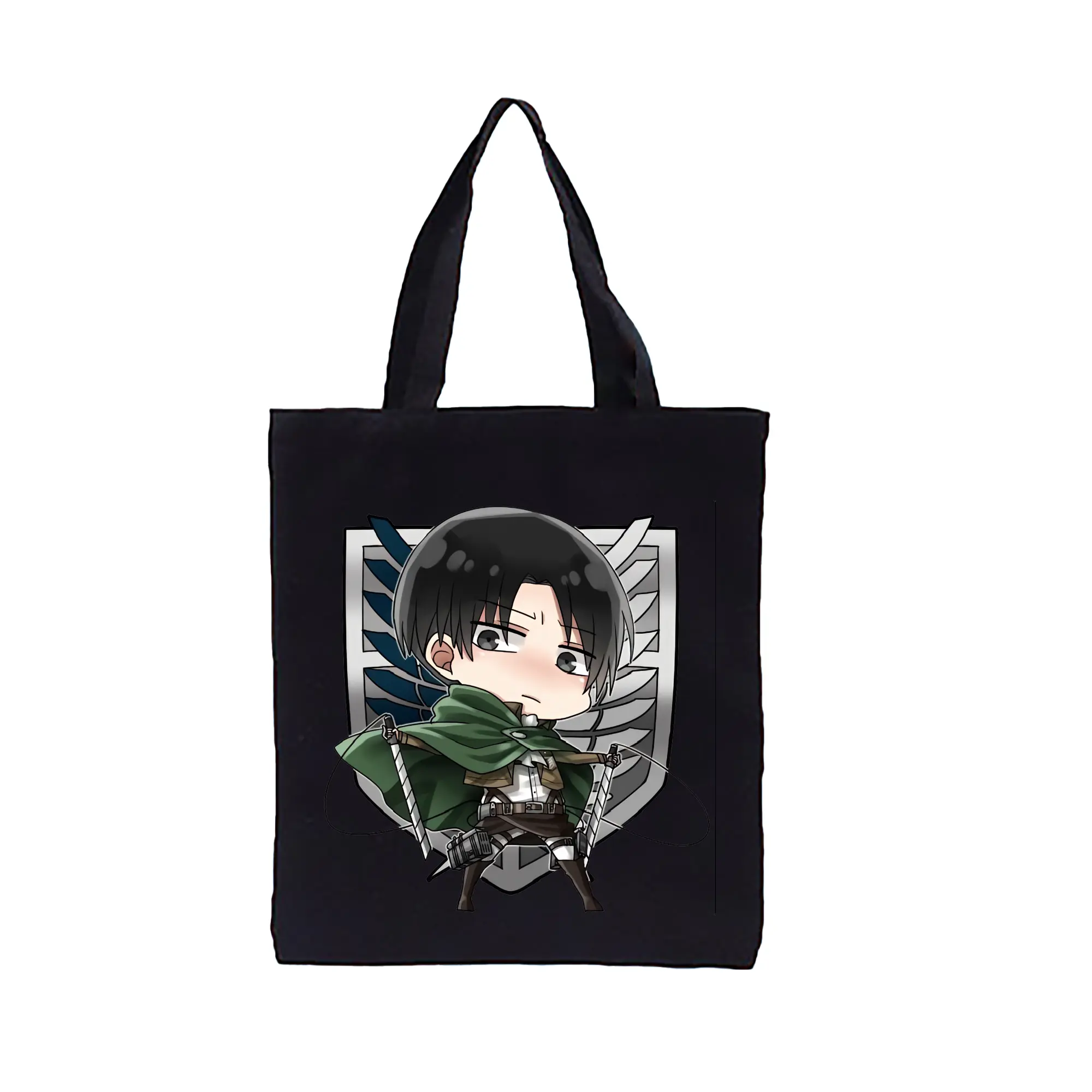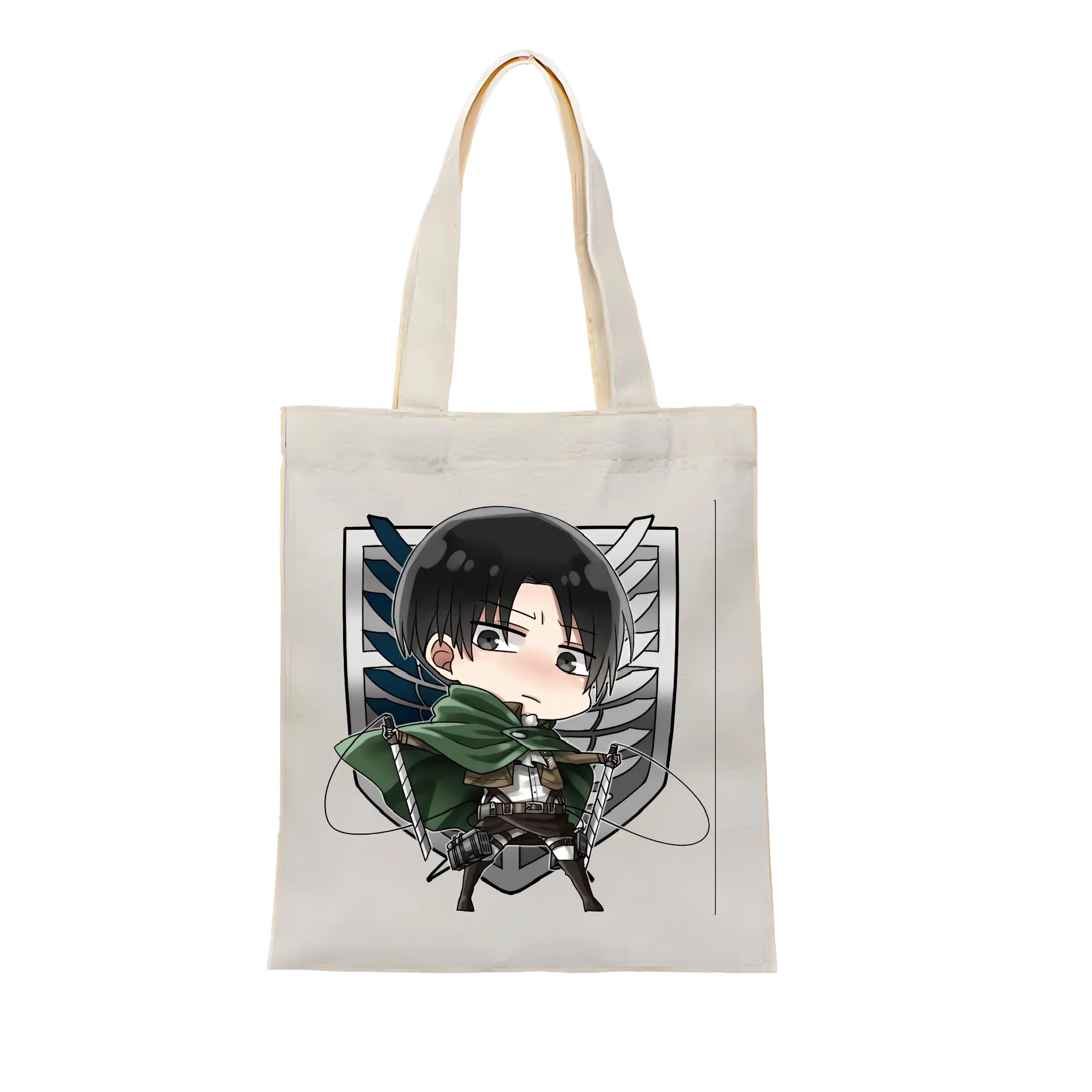 進撃の巨人 グッズ リヴァイ・アッカーマン - 縦型キャンバス手提げバッグ(トートバッグ) ・ キャンバス素材 ・ ショッピング用 ・ 軽量 丈夫 お手入れ簡単