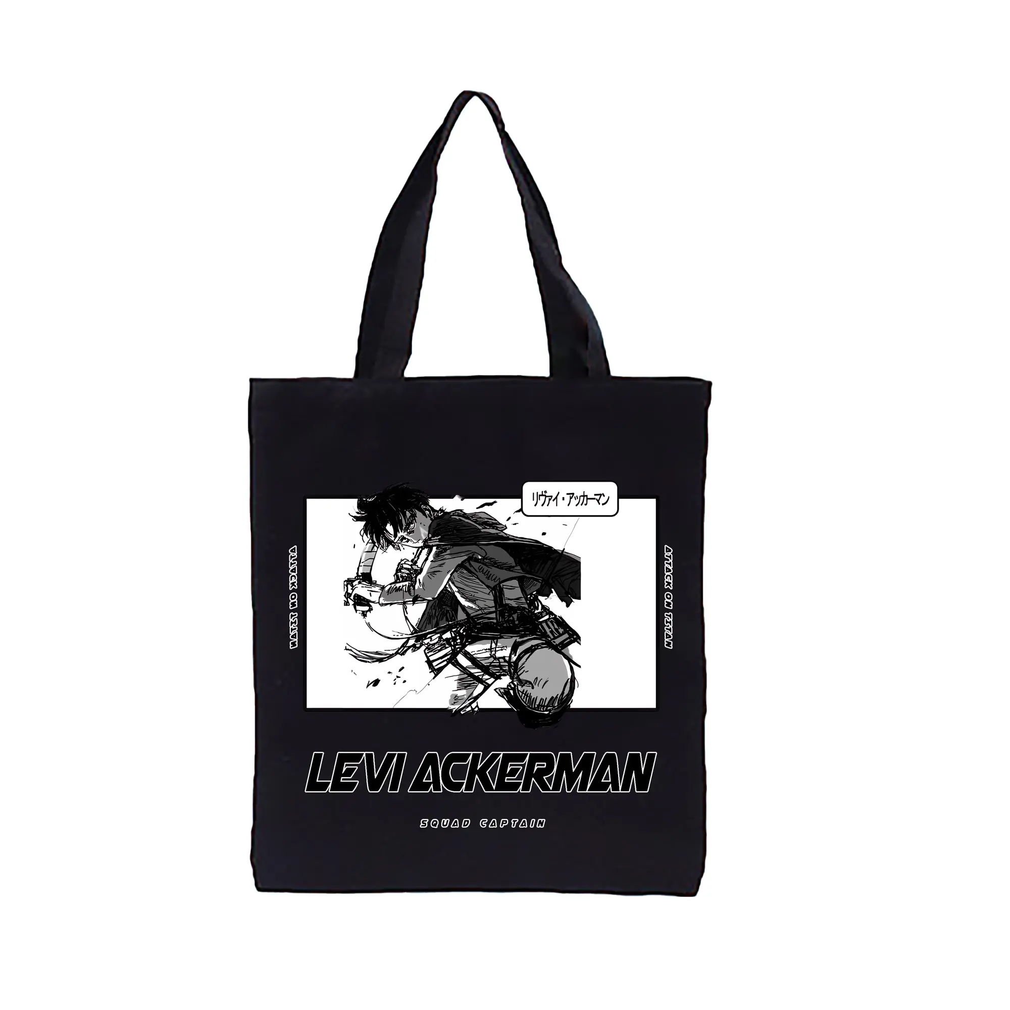 進撃の巨人 グッズ リヴァイ・アッカーマン - 縦型キャンバス手提げバッグ(トートバッグ) ・ キャンバス素材 ・ ショッピング用 ・ 軽量 丈夫 お手入れ簡単