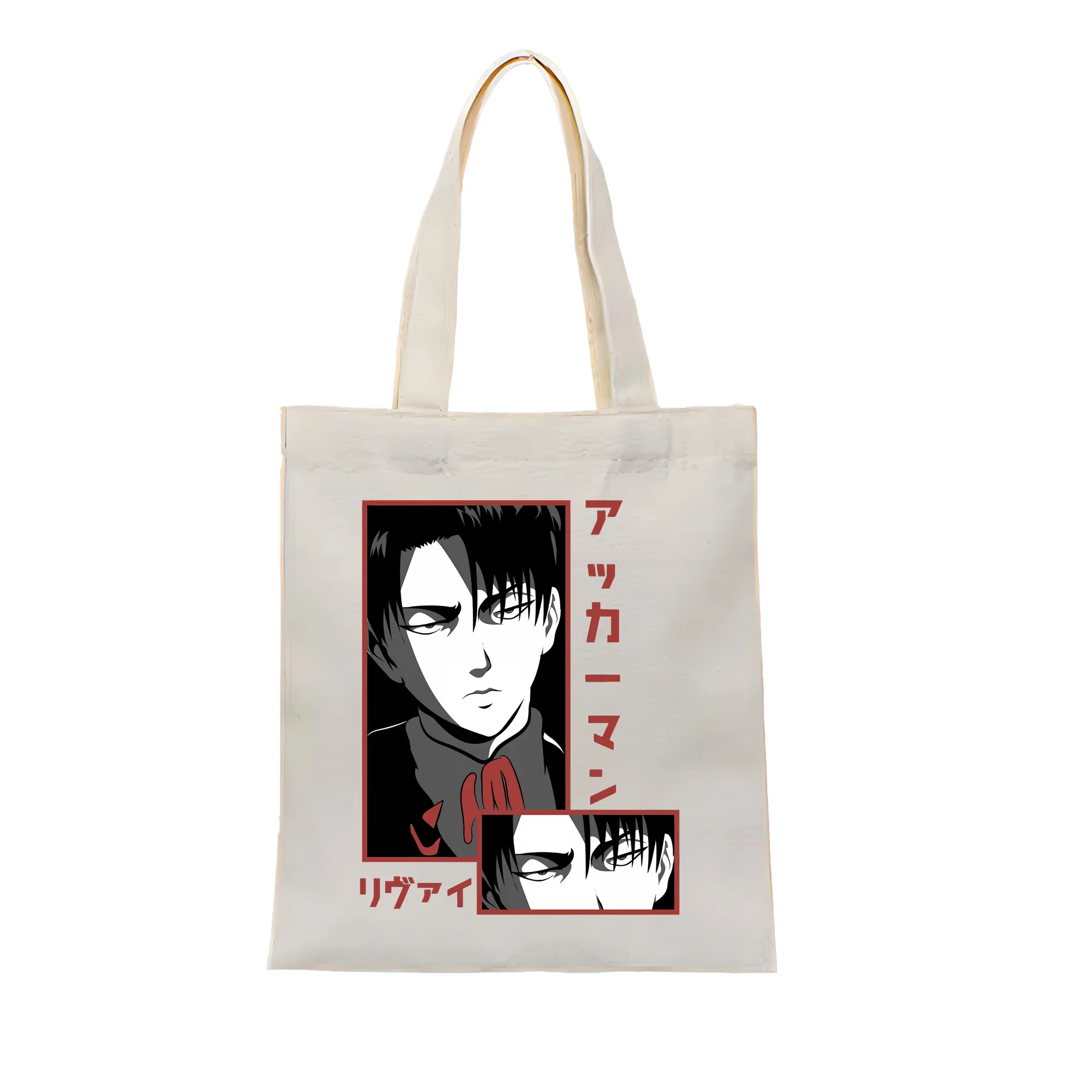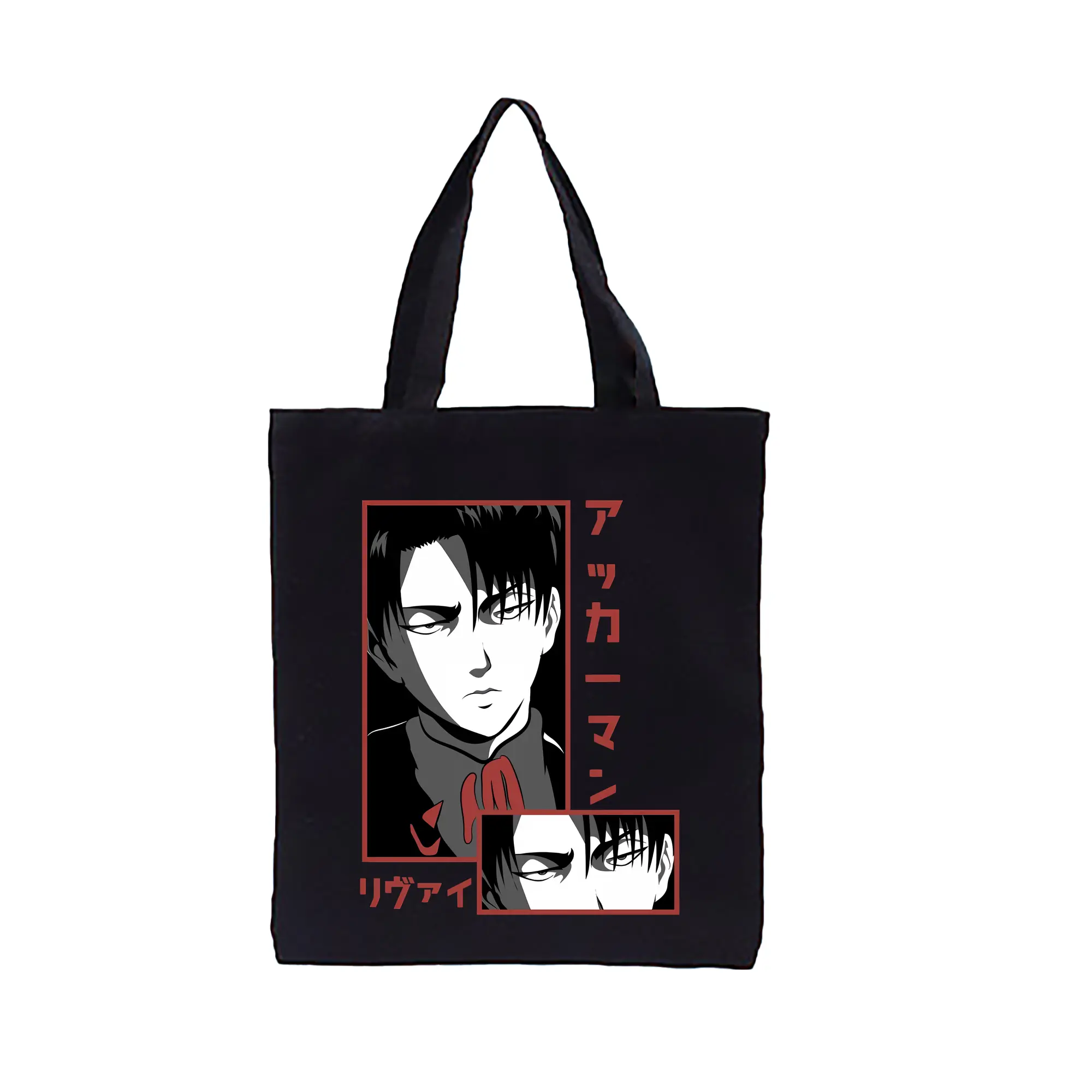 進撃の巨人 グッズ リヴァイ・アッカーマン - 縦型キャンバス手提げバッグ(トートバッグ) ・ キャンバス素材 ・ ショッピング用 ・ 軽量 丈夫 お手入れ簡単