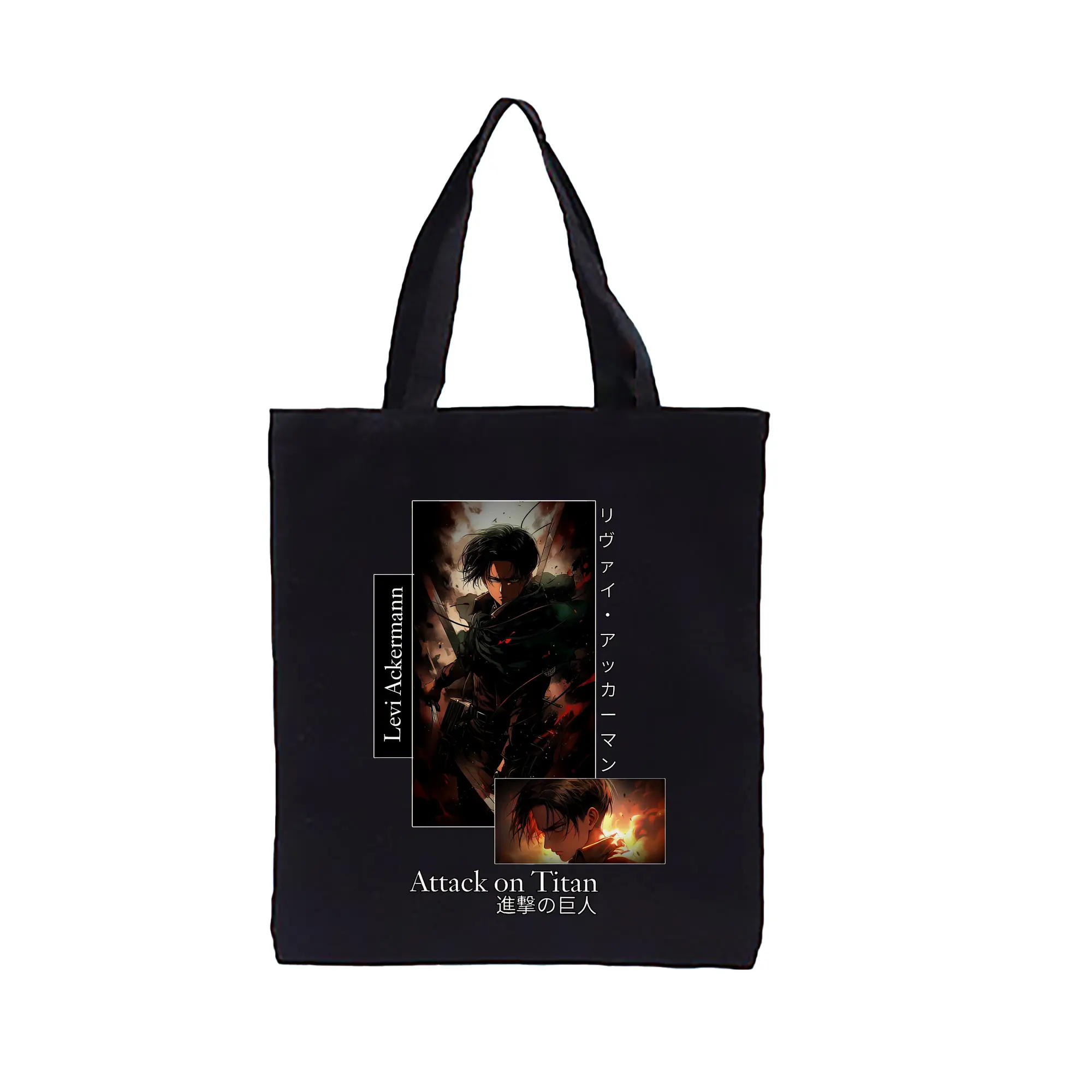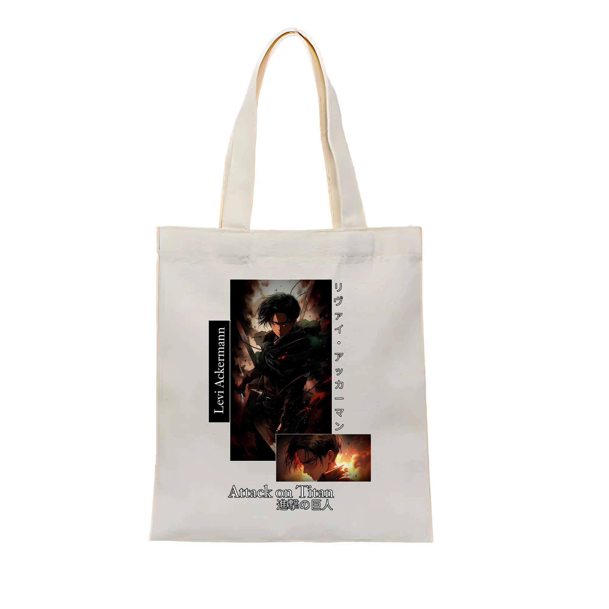進撃の巨人 グッズ リヴァイ・アッカーマン - 縦型キャンバス手提げバッグ(トートバッグ) ・ キャンバス素材 ・ ショッピング用 ・ 軽量 丈夫 お手入れ簡単