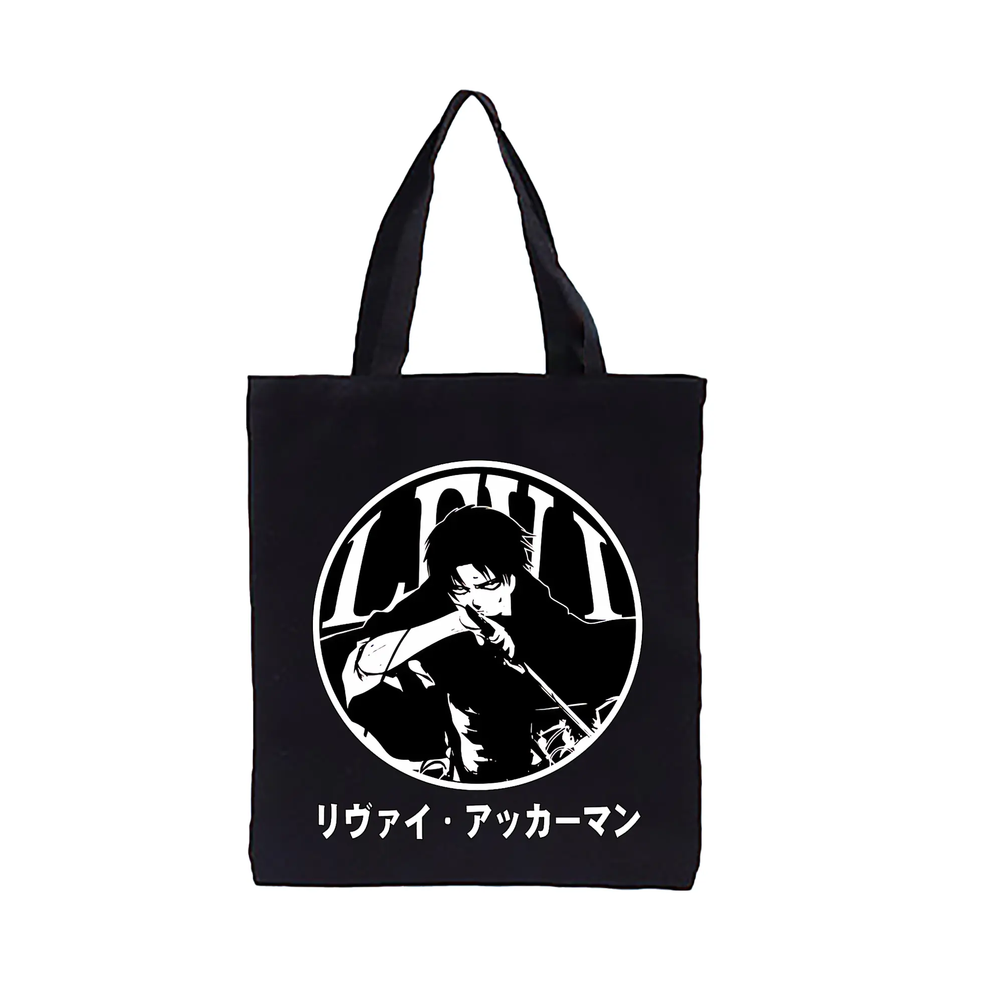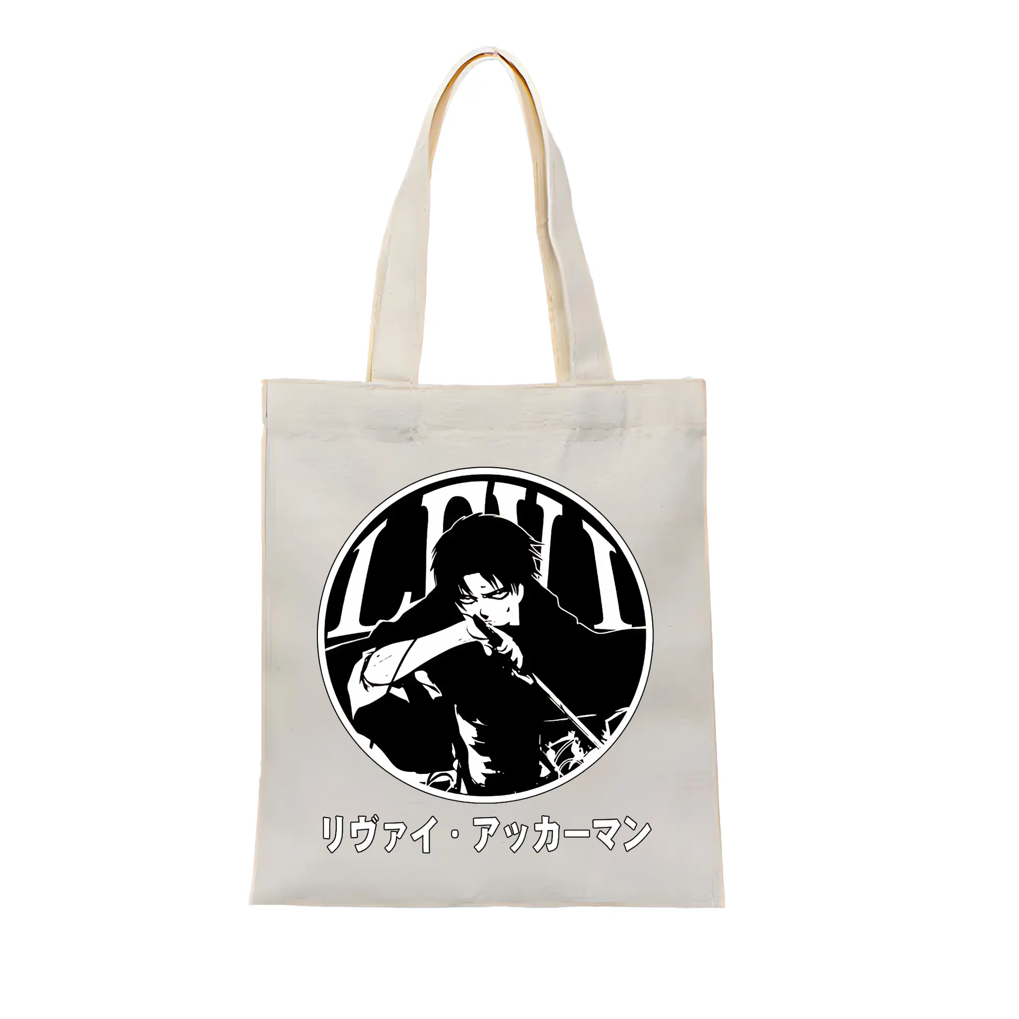 進撃の巨人 グッズ リヴァイ・アッカーマン - 縦型キャンバス手提げバッグ(トートバッグ) ・ キャンバス素材 ・ ショッピング用 ・ 軽量 丈夫 お手入れ簡単
