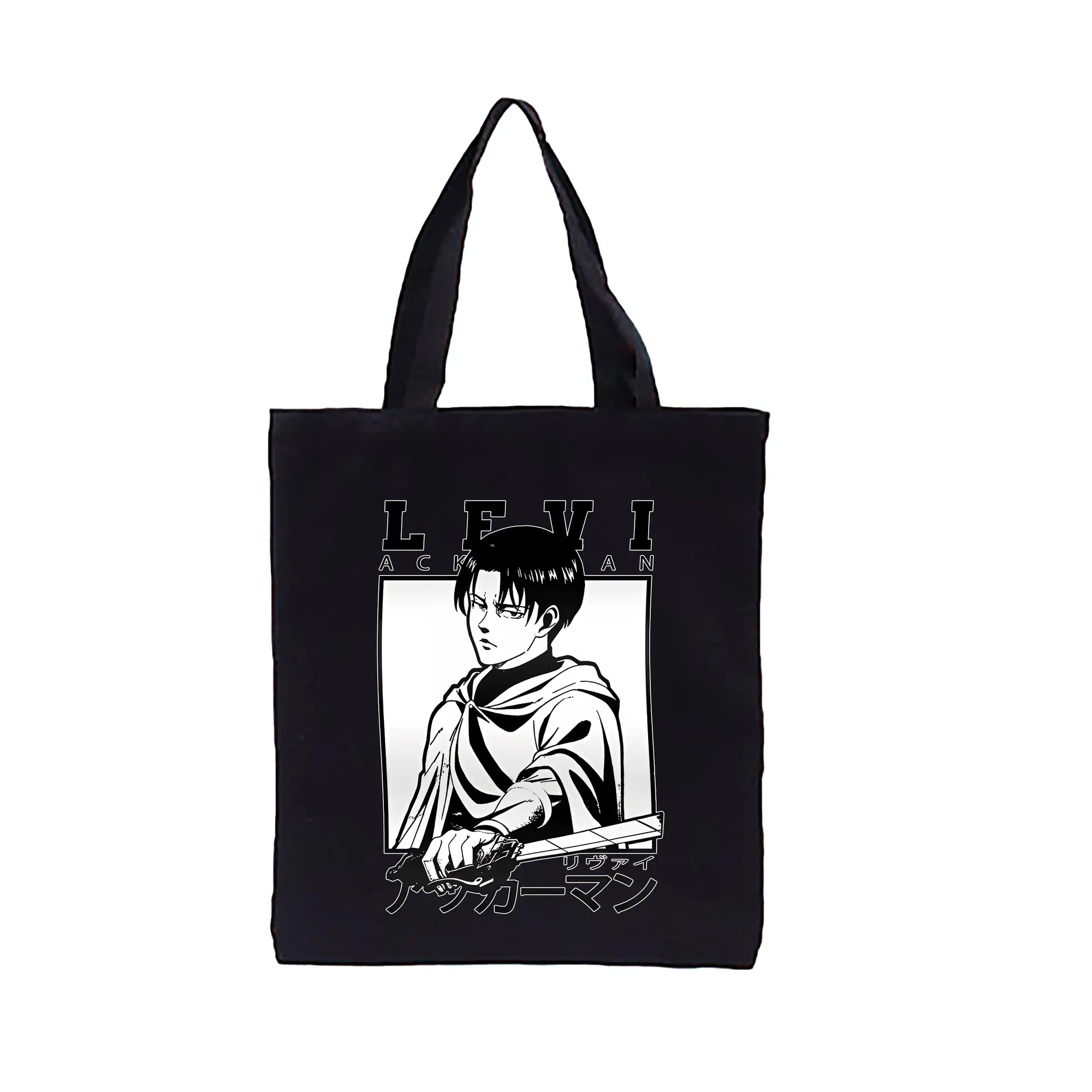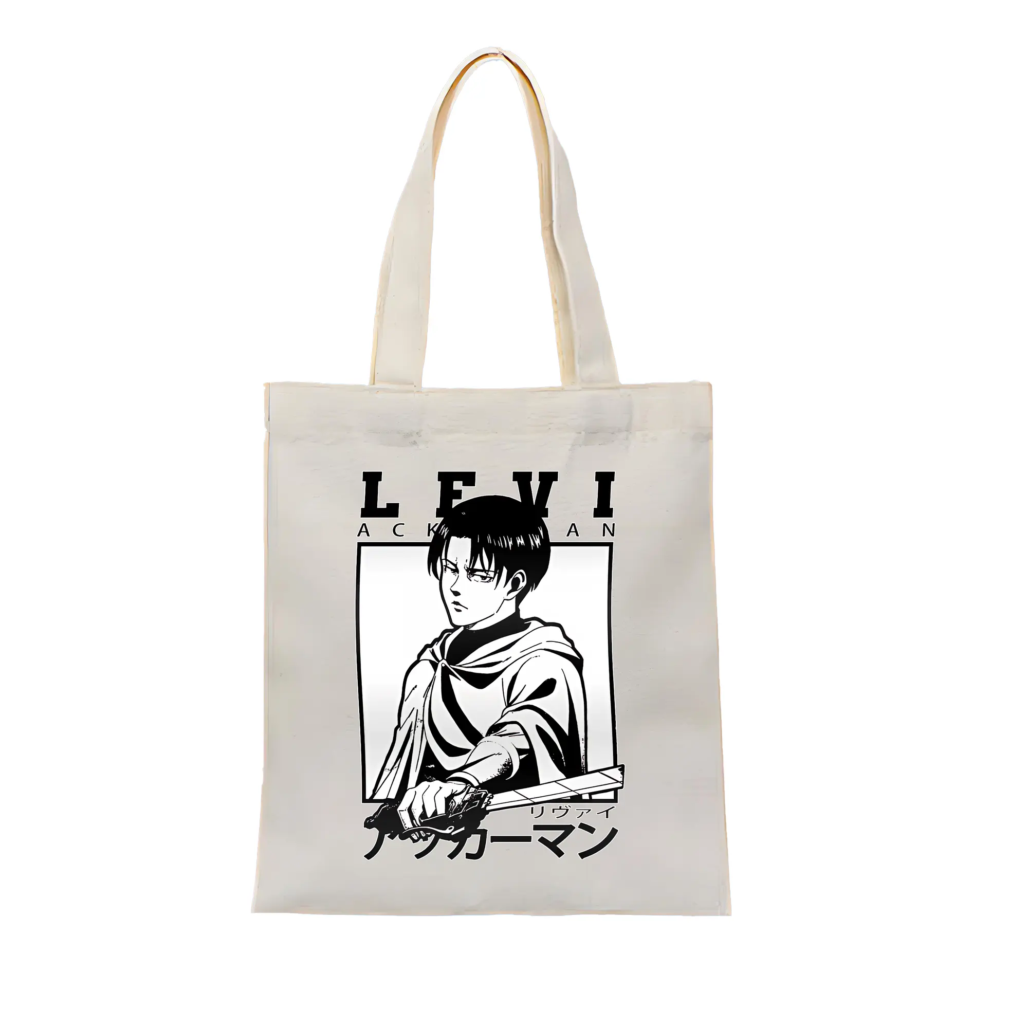 進撃の巨人 グッズ リヴァイ・アッカーマン - 縦型キャンバス手提げバッグ(トートバッグ) ・ キャンバス素材 ・ ショッピング用 ・ 軽量 丈夫 お手入れ簡単