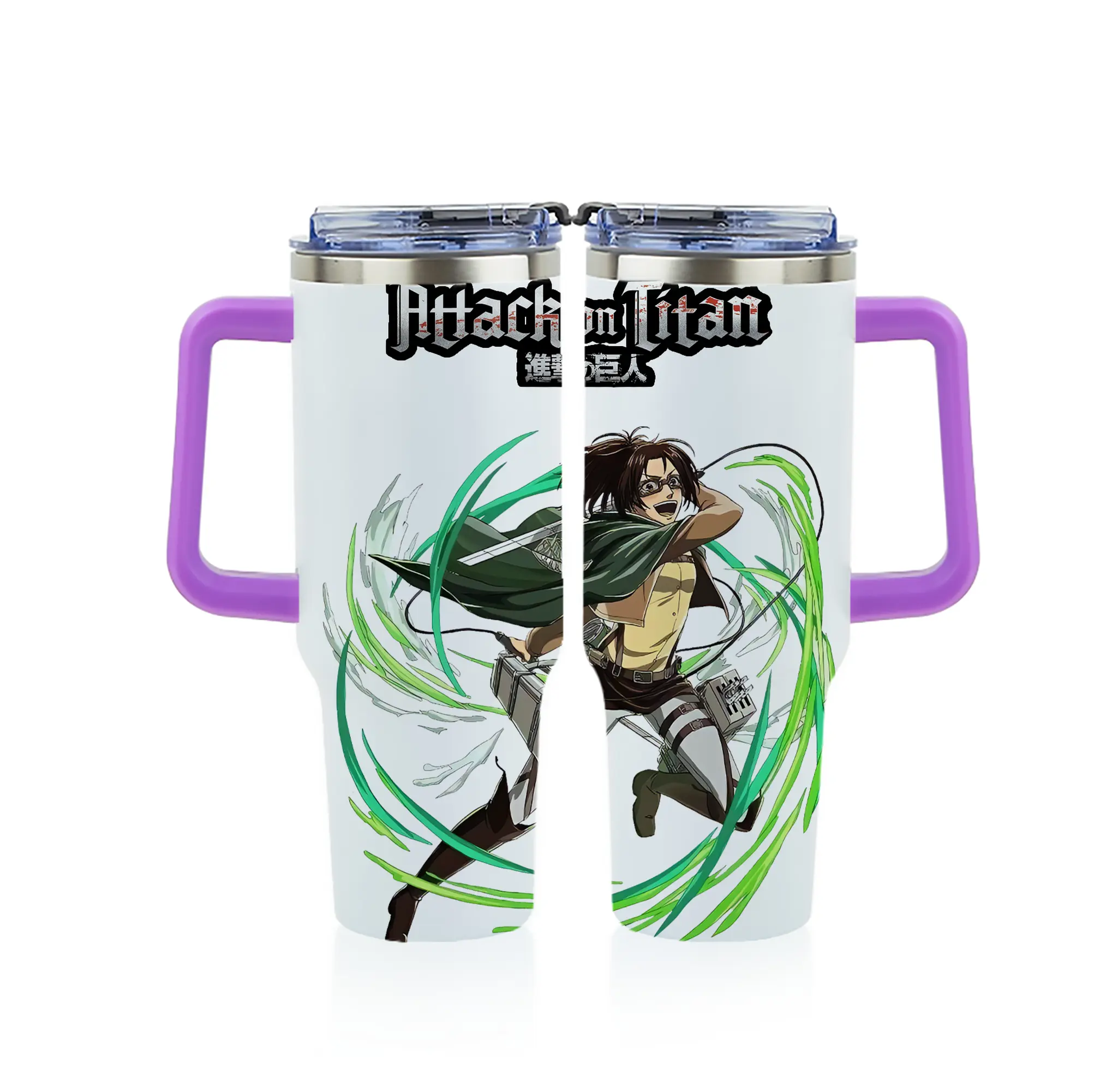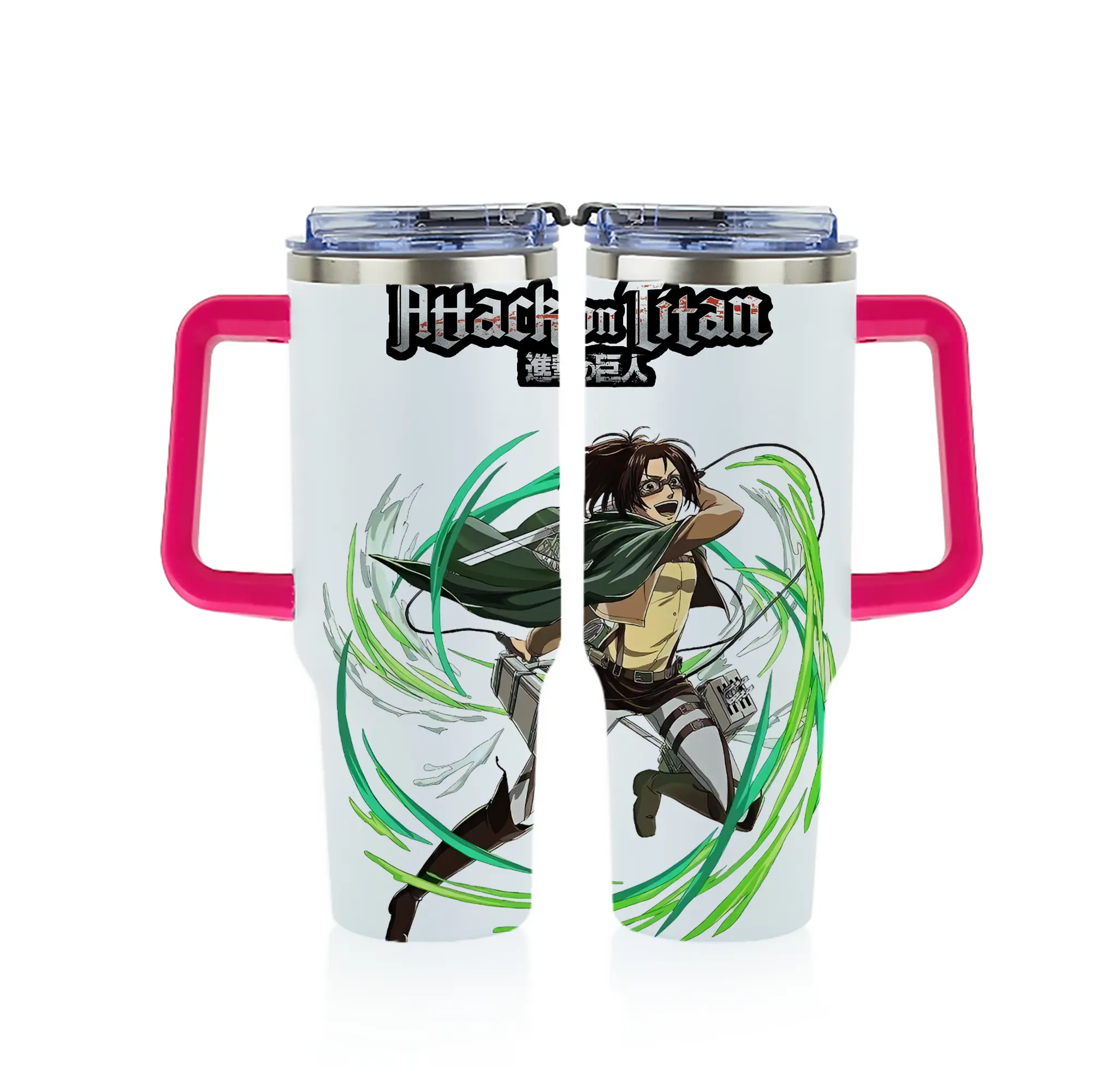 進撃の巨人 グッズ ハンジ・ゾエ - 1200mL フルプリント車用タンブラー ・ 304ステンレス 内側 ・ 201ステンレス 外側 ・ 保温 保冷 ・ 通勤 ドライブ アウトドア用