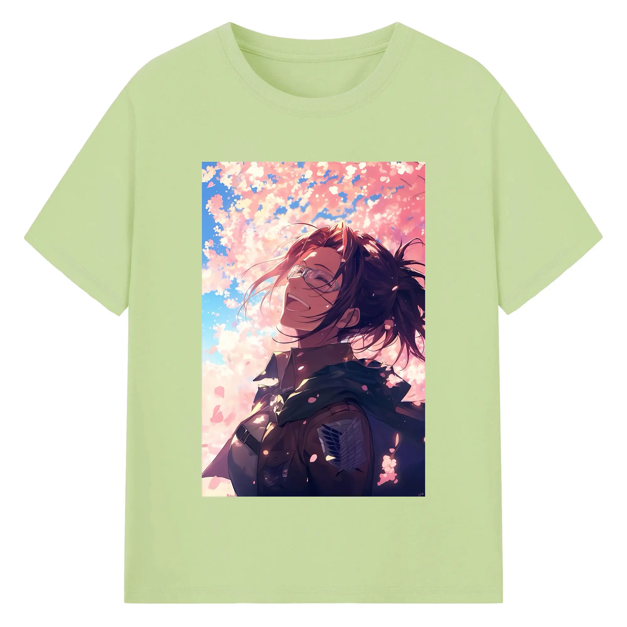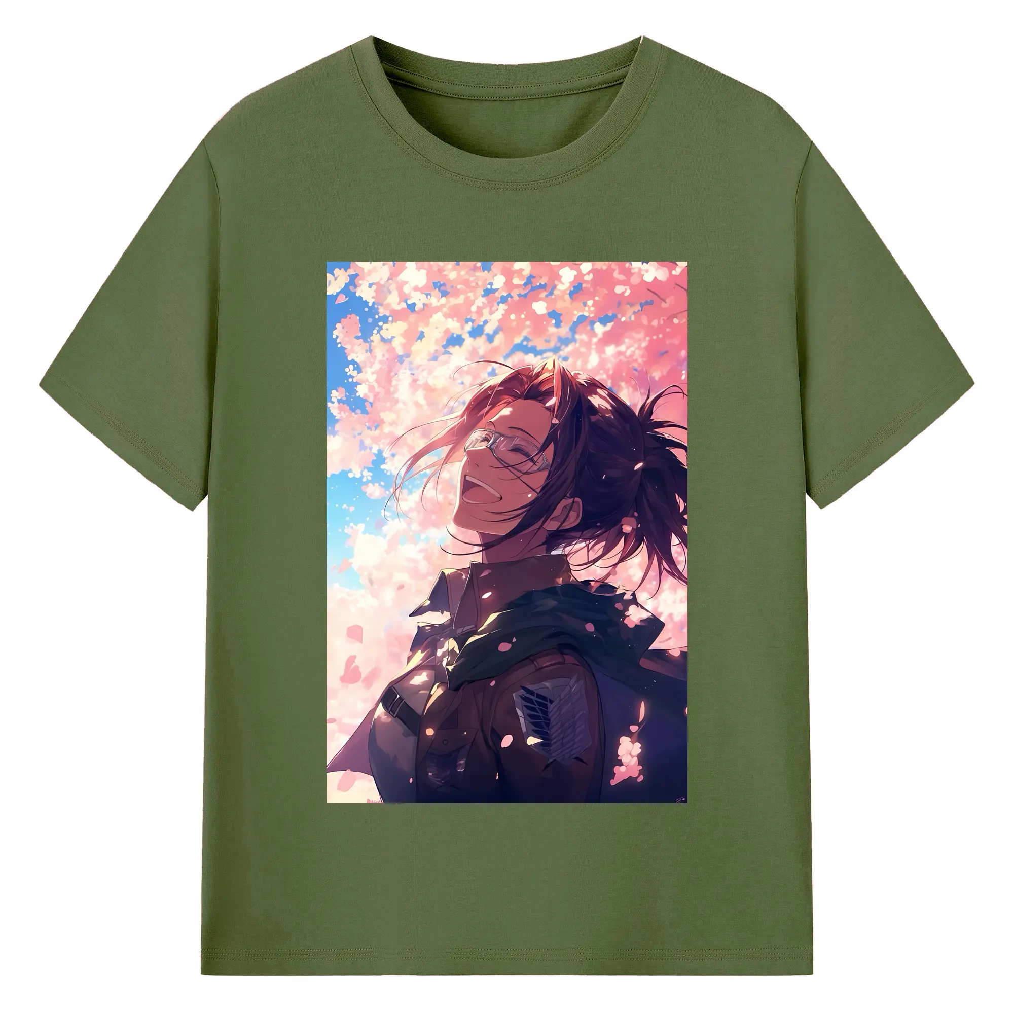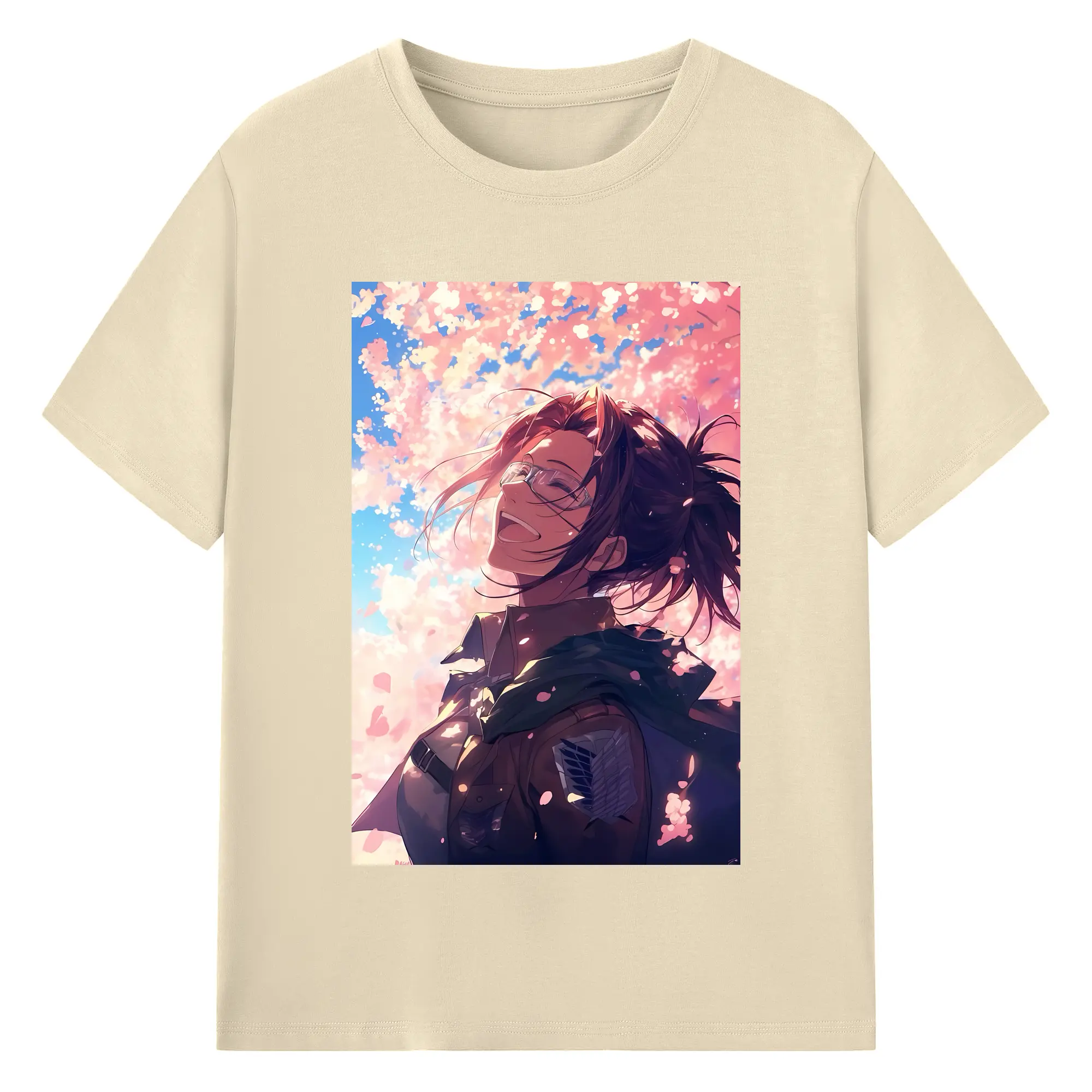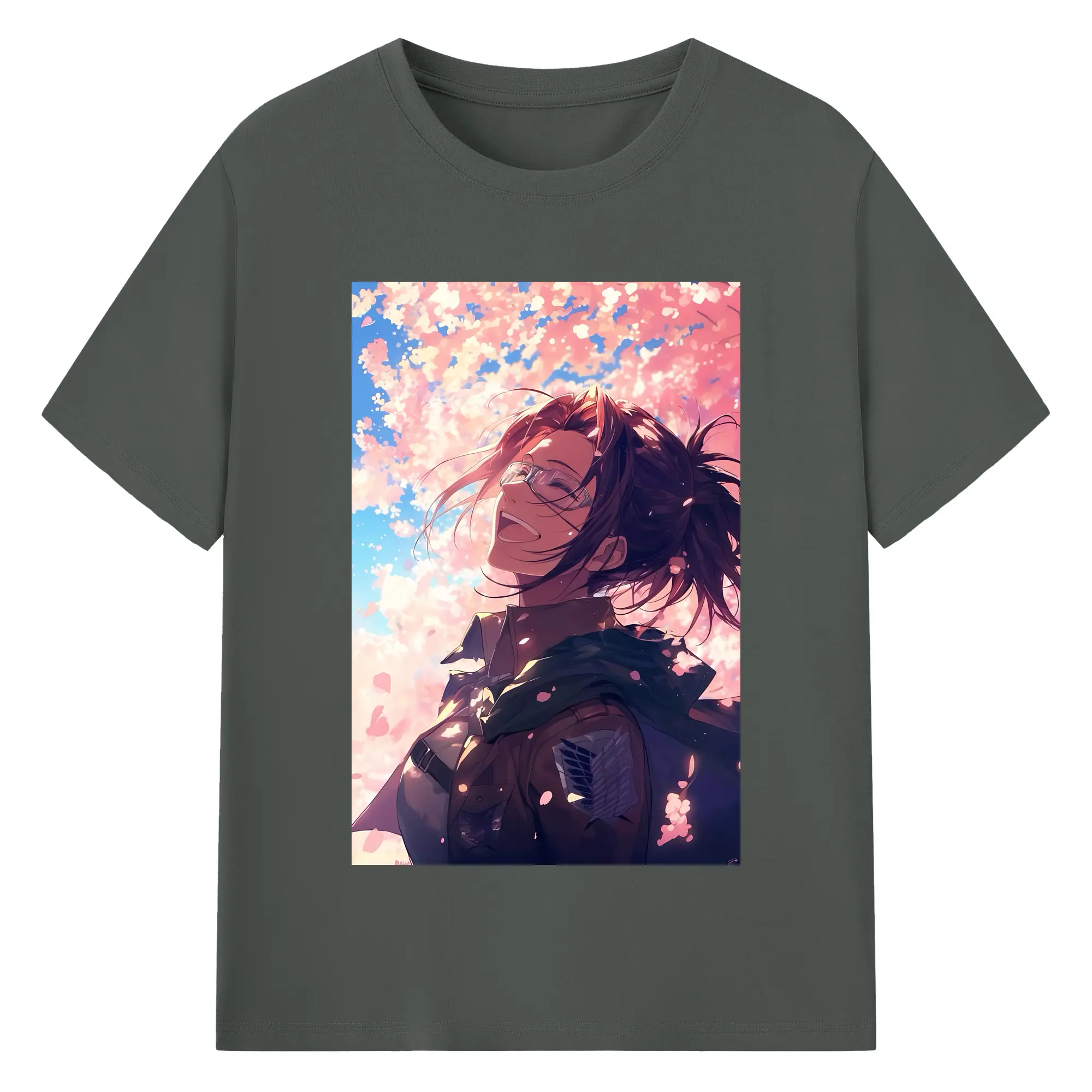 進撃の巨人 グッズ ハンジ・ゾエ - 綿100% 半袖Tシャツ ・ バックプリント ・ 快適 通気性 ・ 日常使い 散歩 スポーツ用