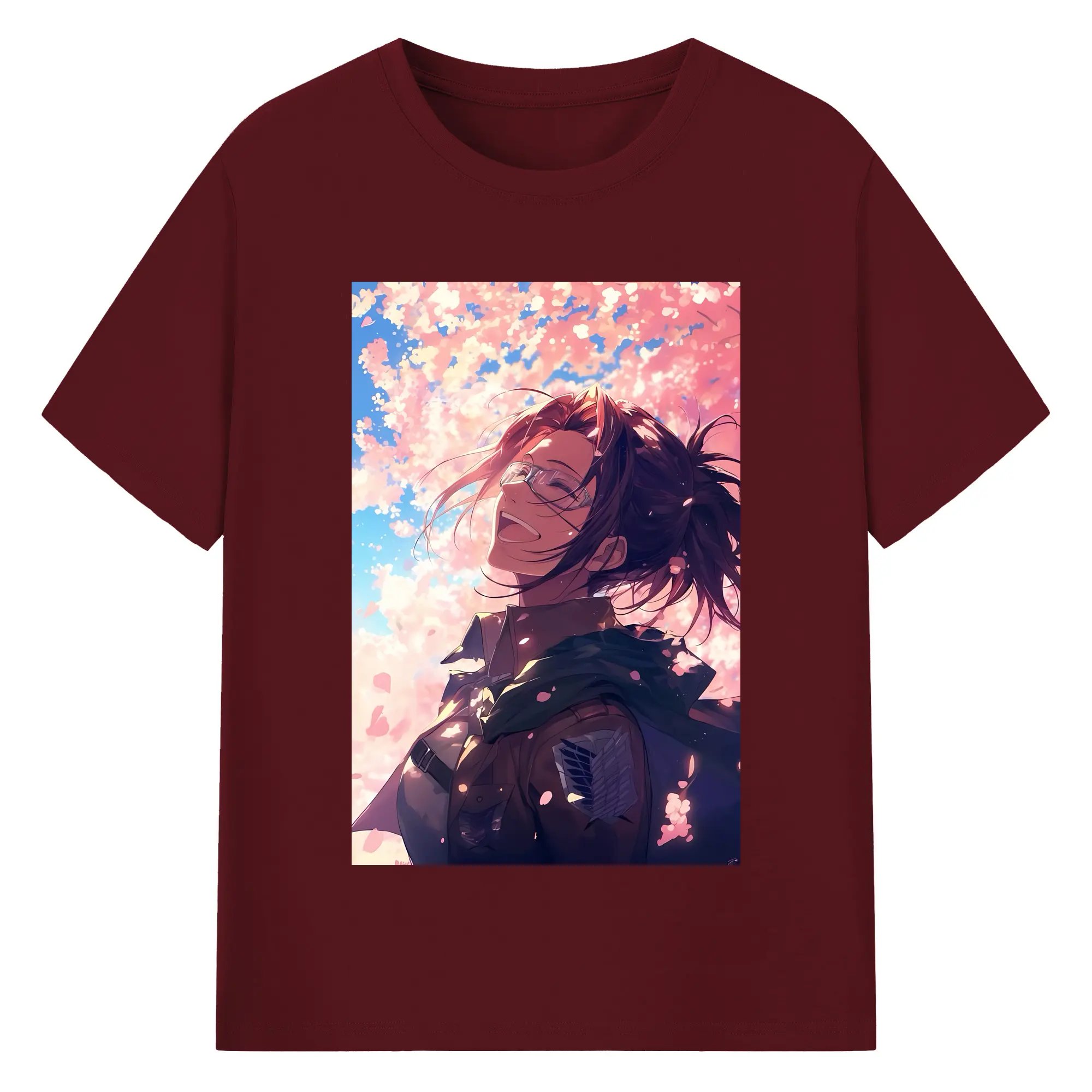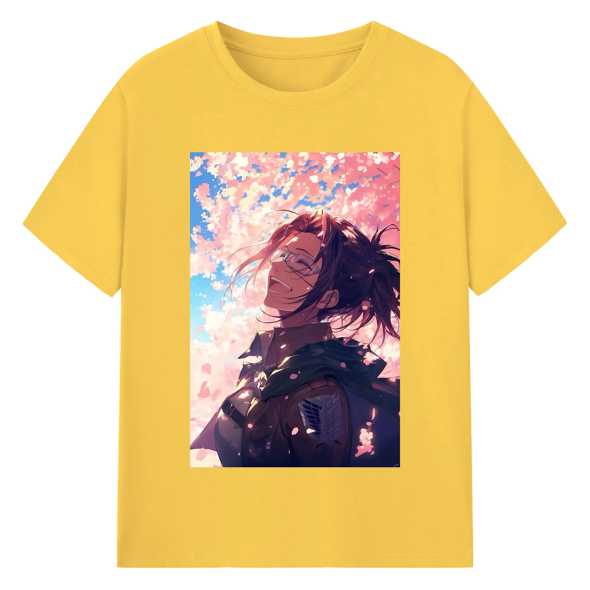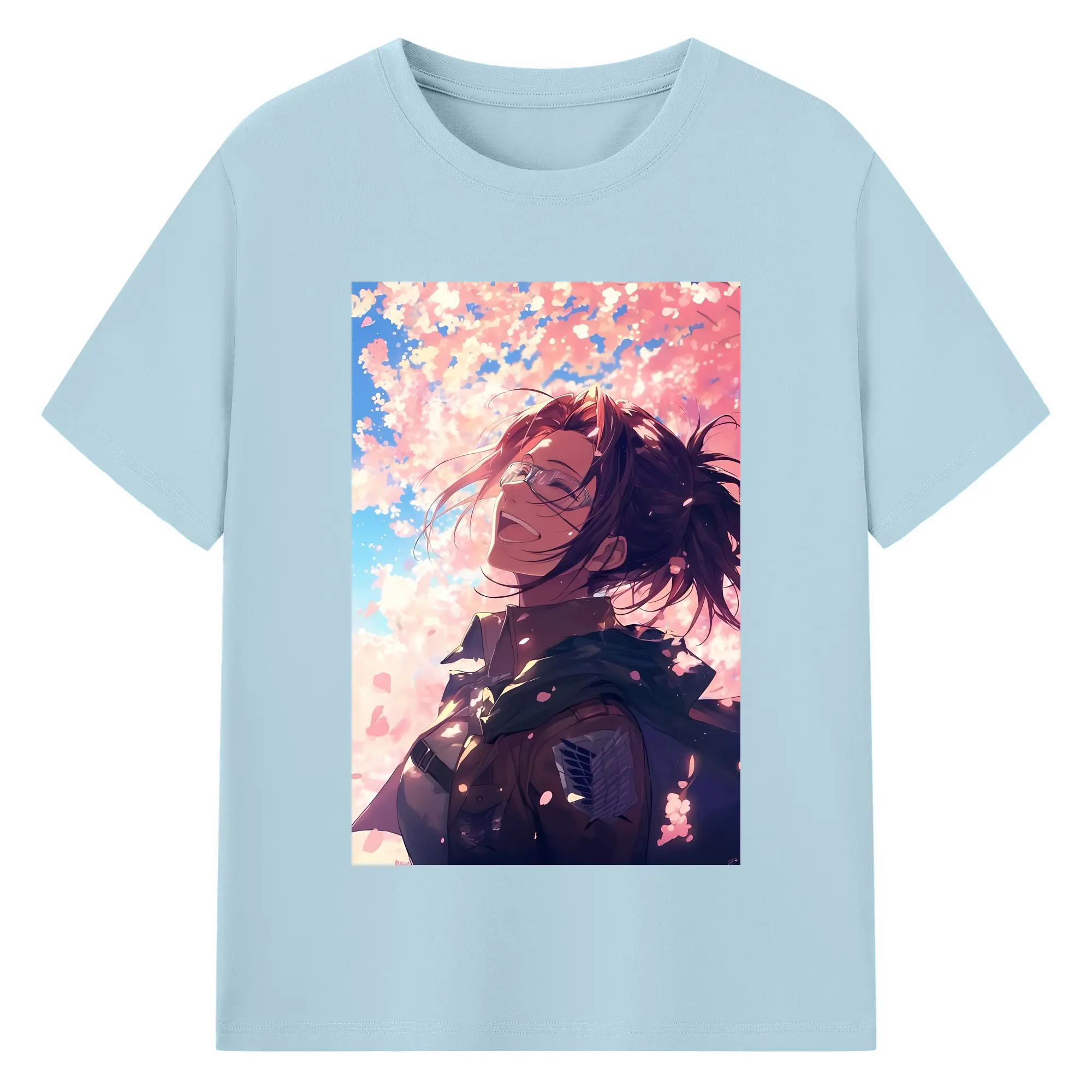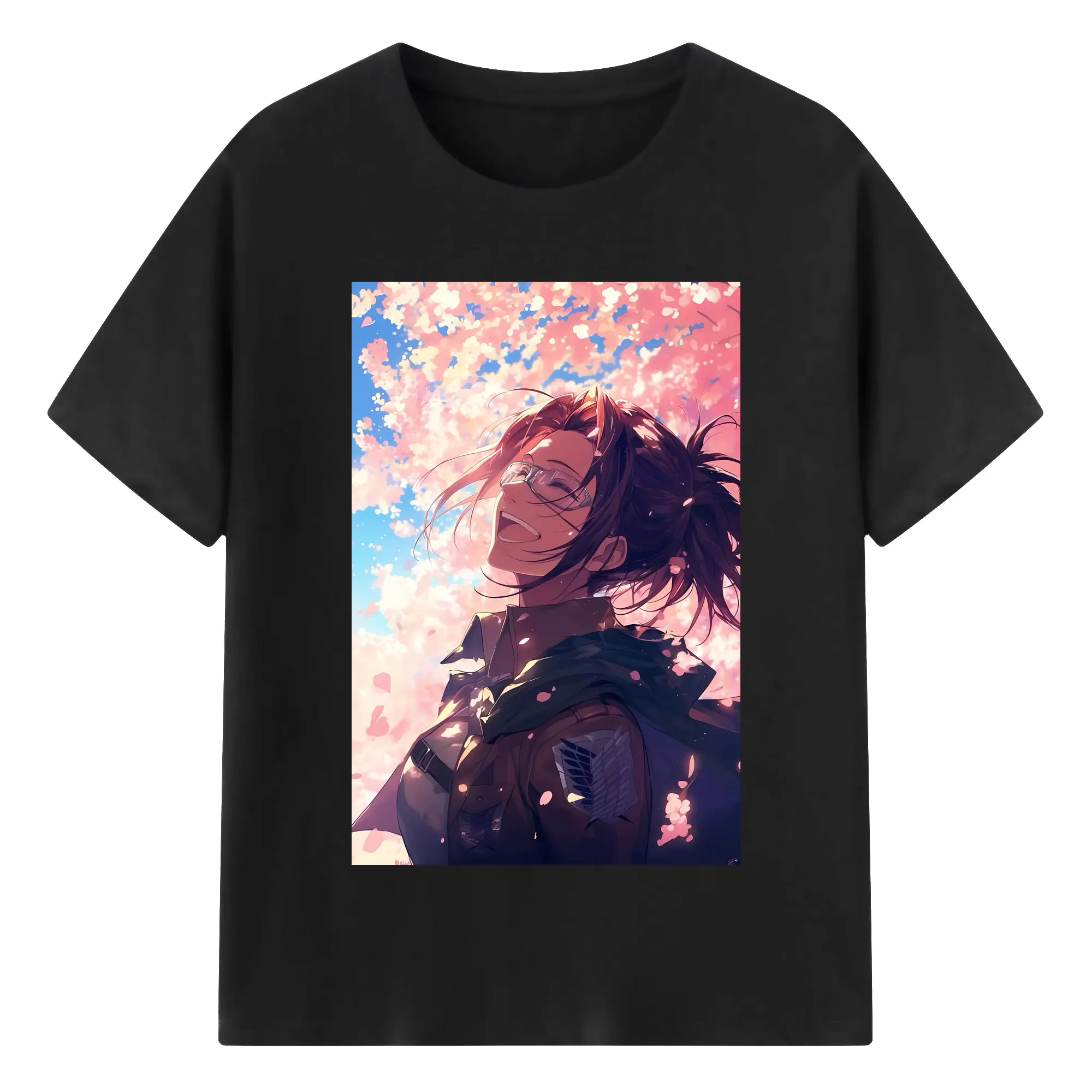 進撃の巨人 グッズ ハンジ・ゾエ - 綿100% 半袖Tシャツ ・ バックプリント ・ 快適 通気性 ・ 日常使い 散歩 スポーツ用