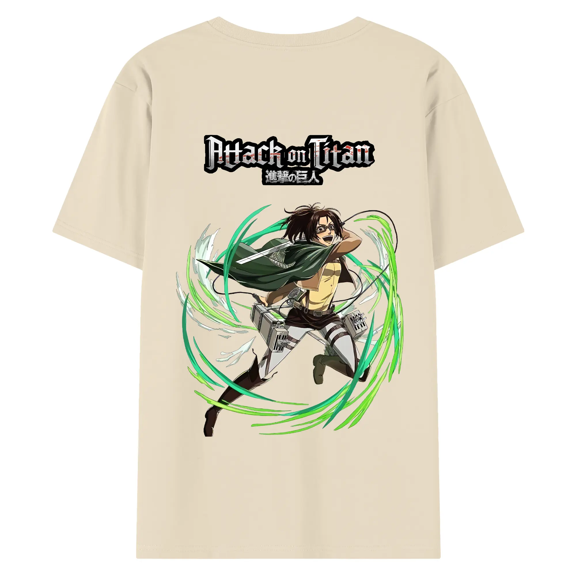 進撃の巨人 グッズ ハンジ・ゾエ - 綿100% ヴィンテージ風 半袖Tシャツ ・ 背面プリント ・ 柔らか肌触り ・ 通気性 快適 ・ スポーツ カジュアル 外出用