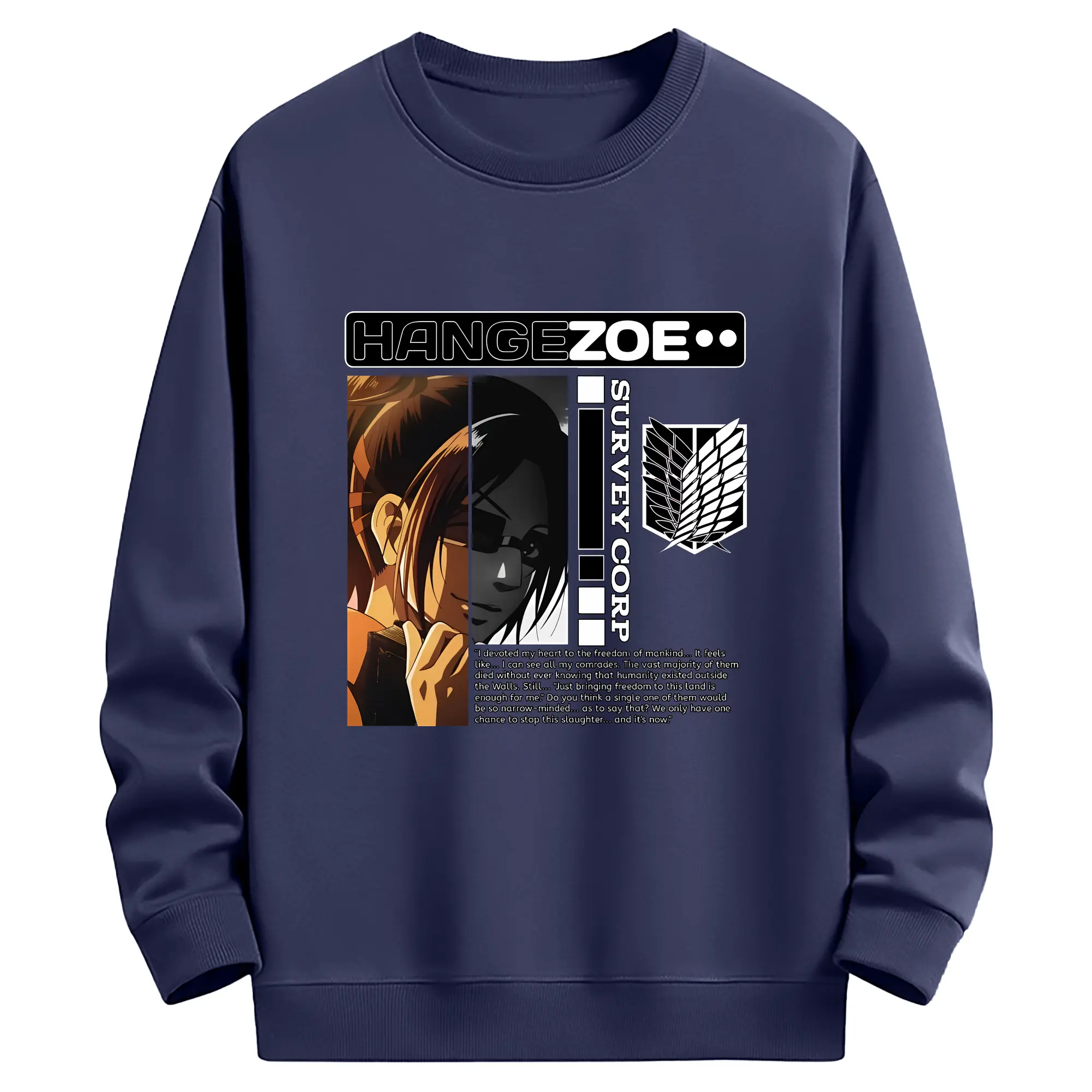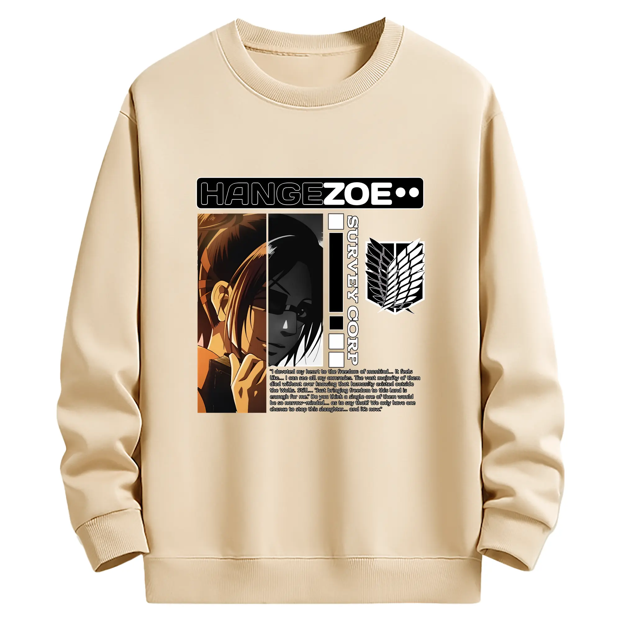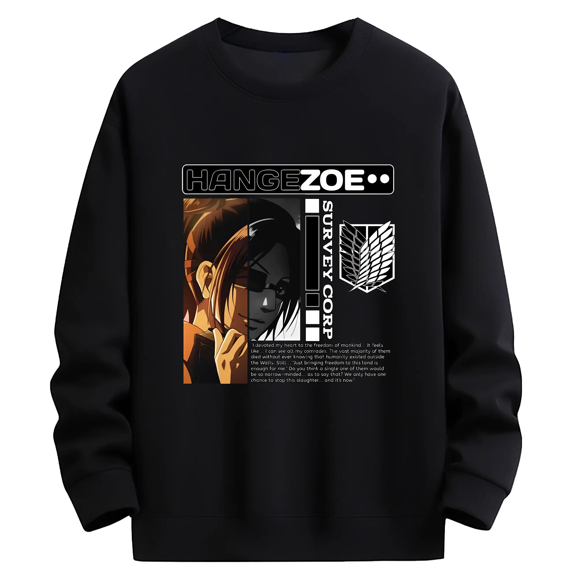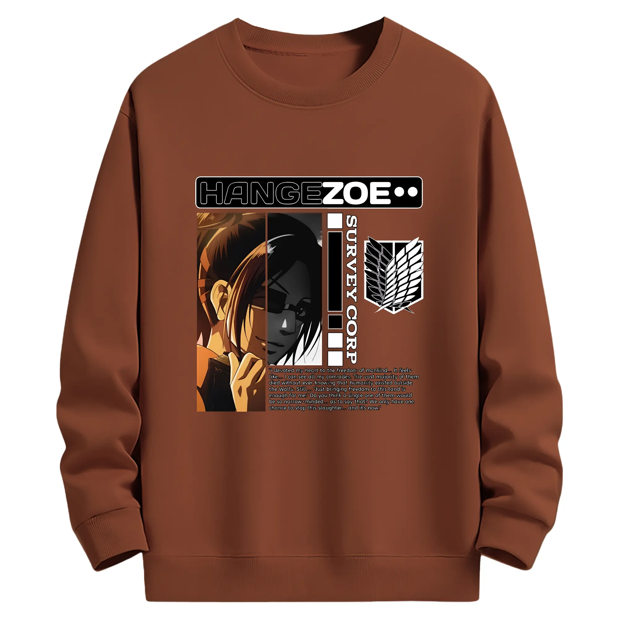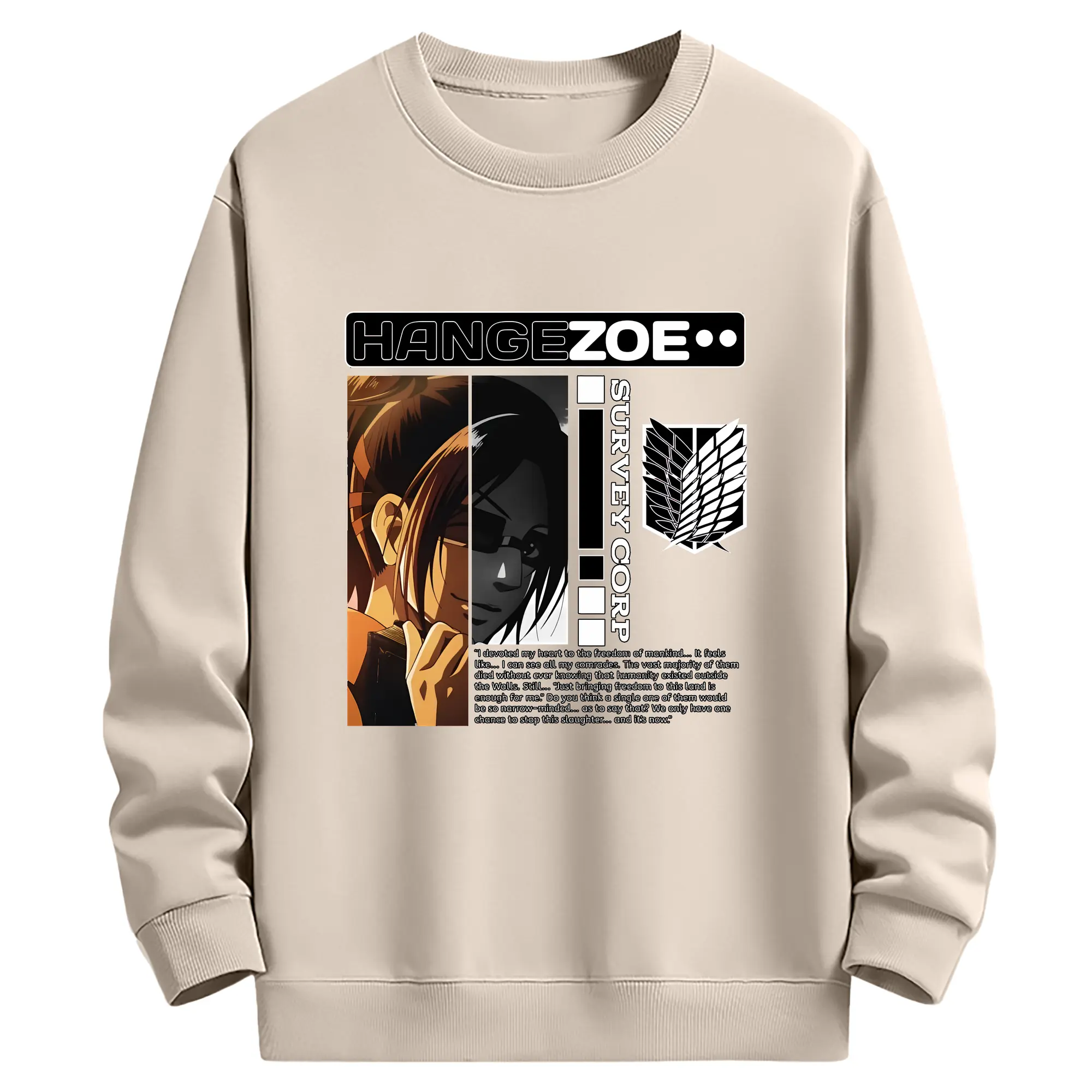 進撃の巨人 グッズ ハンジ・ゾエ - 薄手 クルーネック スウェット 裏毛260g · ポリエステル 春秋向け カジュアル 男女兼用 · トレーナー デイリー スポーツ 散歩に最適