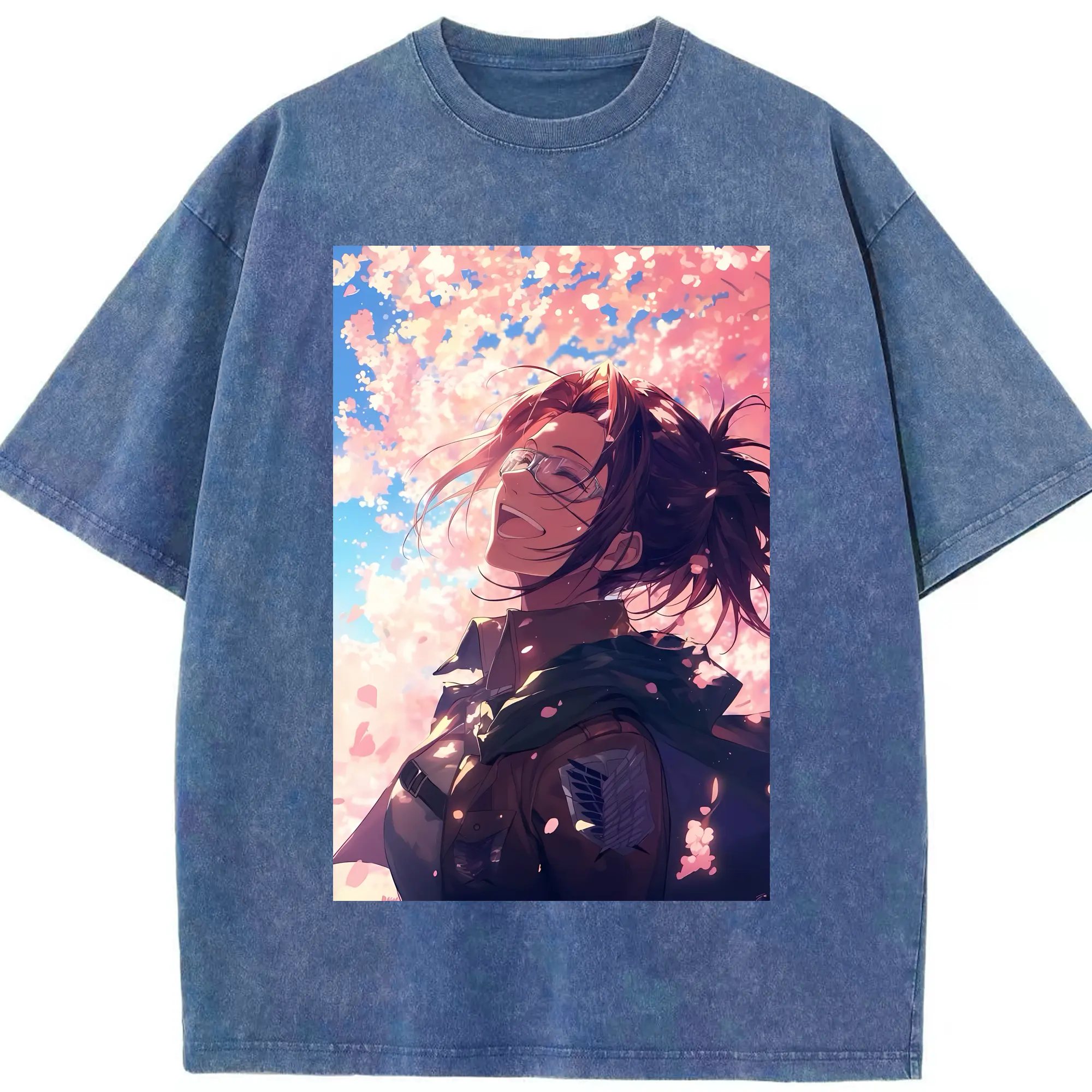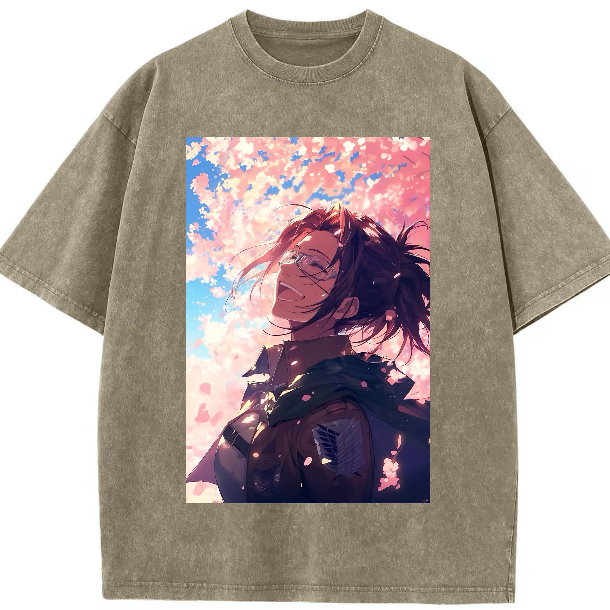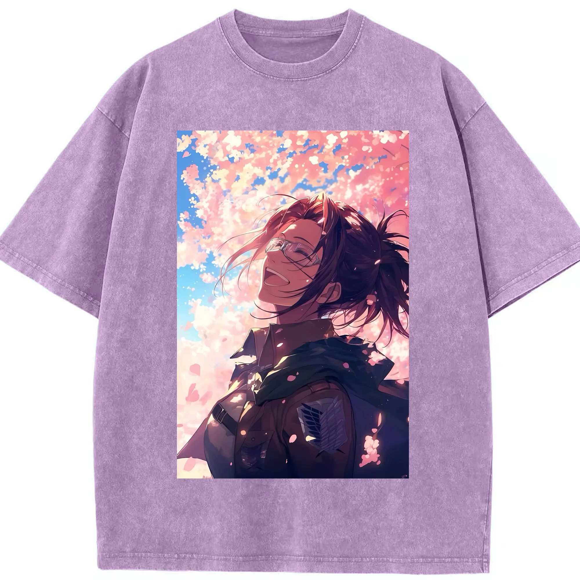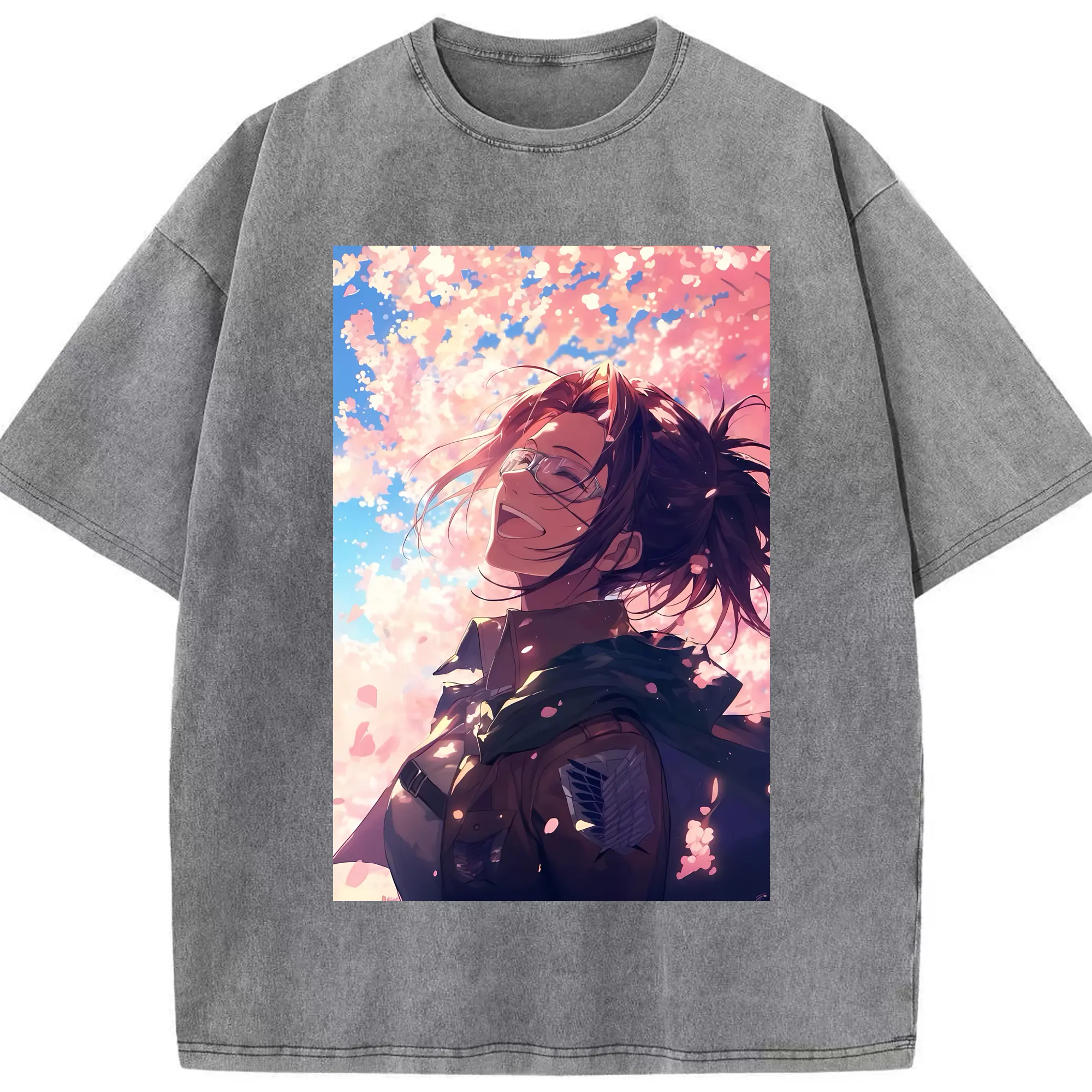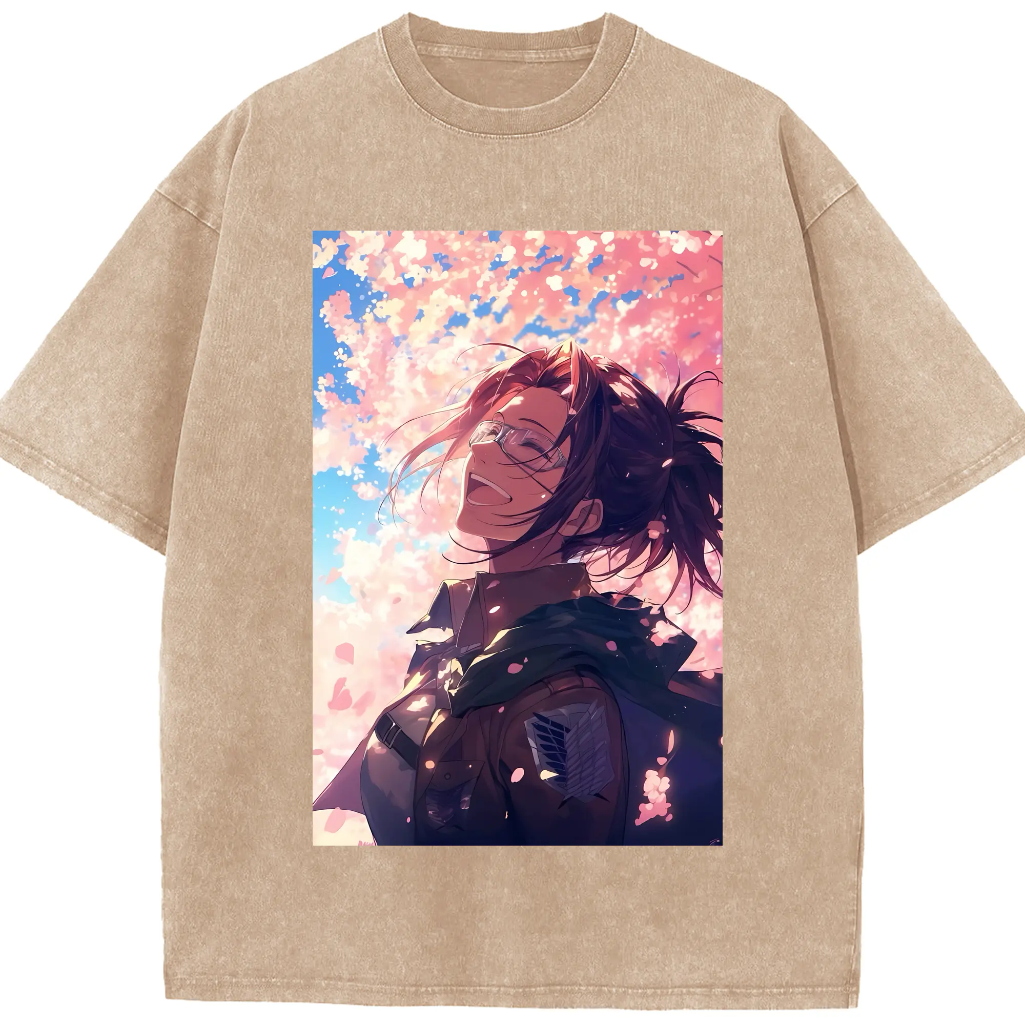 進撃の巨人 グッズ ハンジ・ゾエ - 綿100% ヴィンテージ風 半袖Tシャツ ・ 背面プリント ・ 柔らか肌触り ・ 通気性 快適 ・ スポーツ カジュアル 外出用