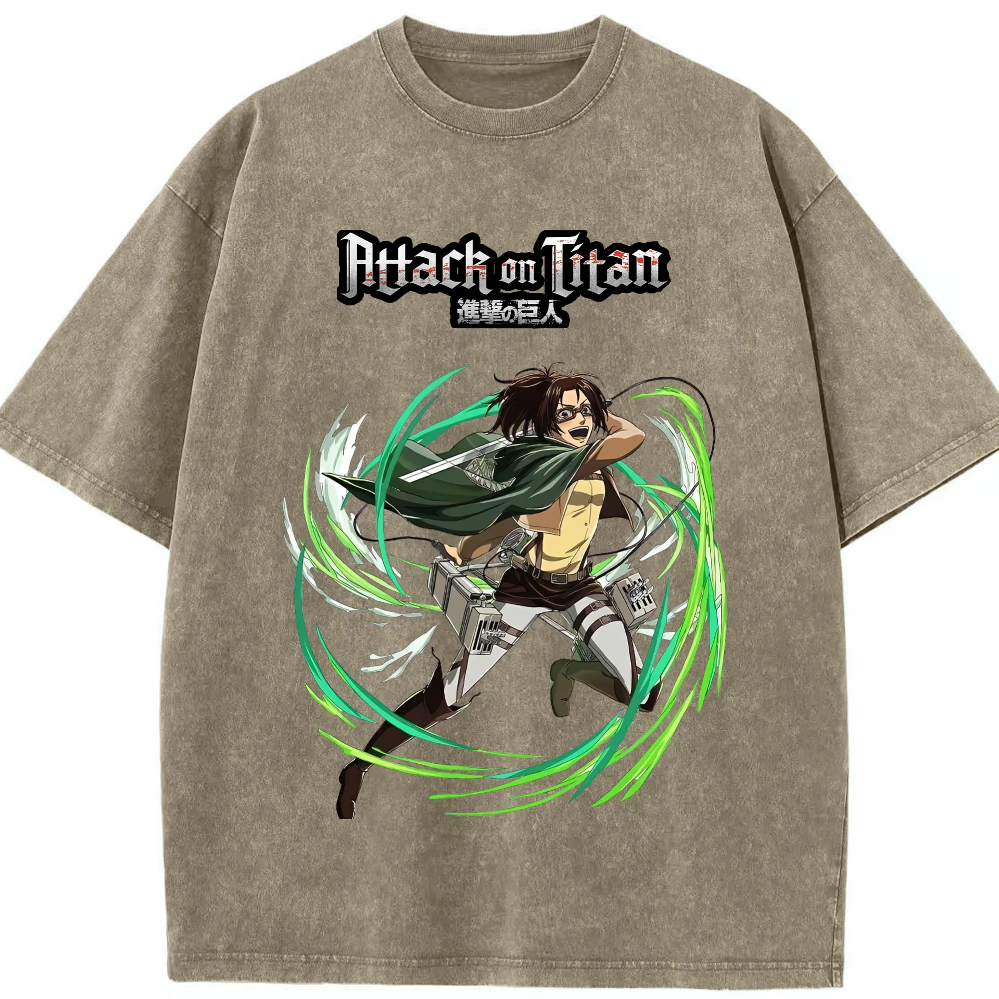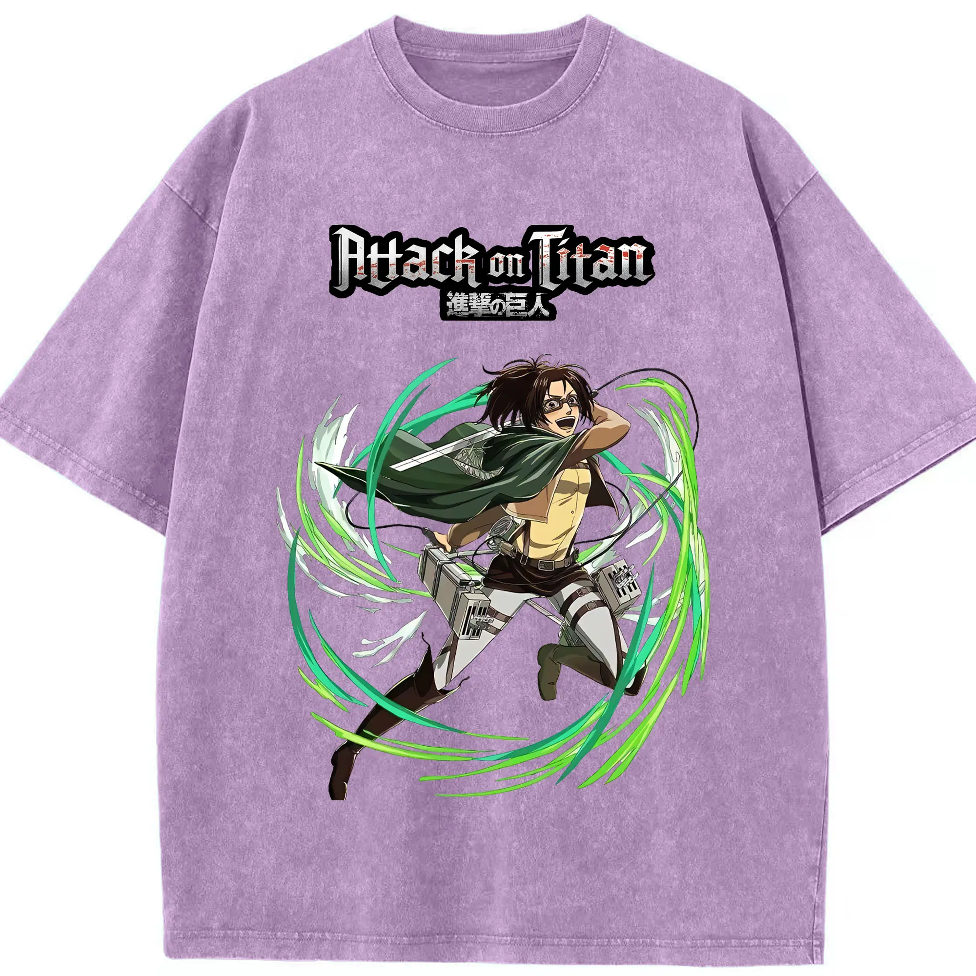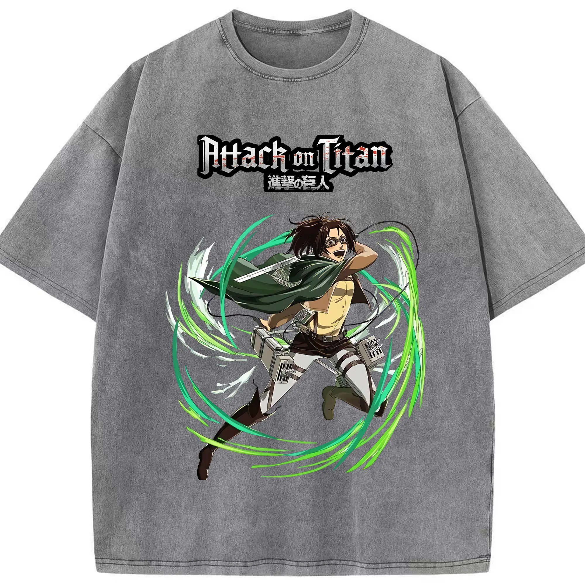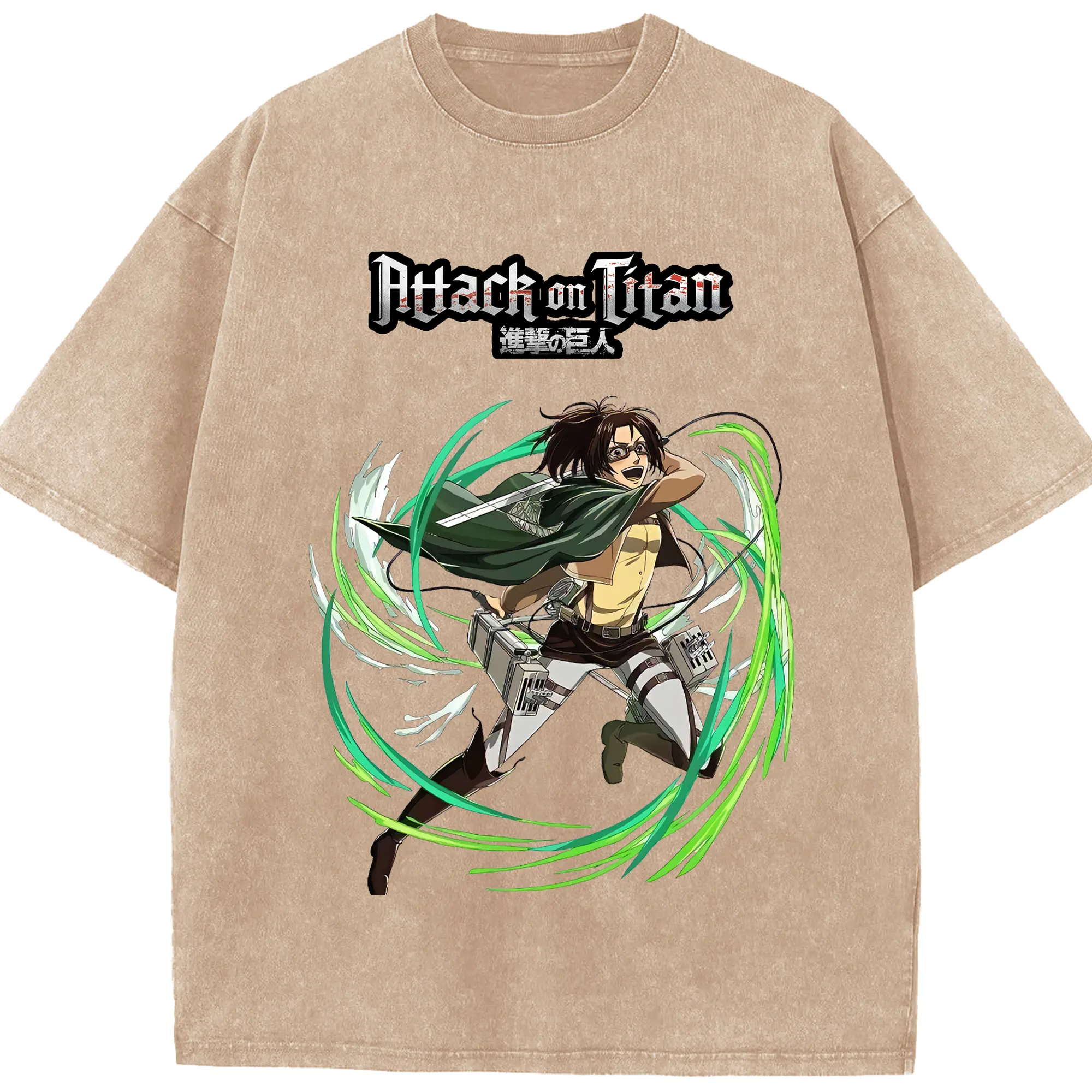 進撃の巨人 グッズ ハンジ・ゾエ - 綿100% ヴィンテージ風 半袖Tシャツ ・ 背面プリント ・ 柔らか肌触り ・ 通気性 快適 ・ スポーツ カジュアル 外出用