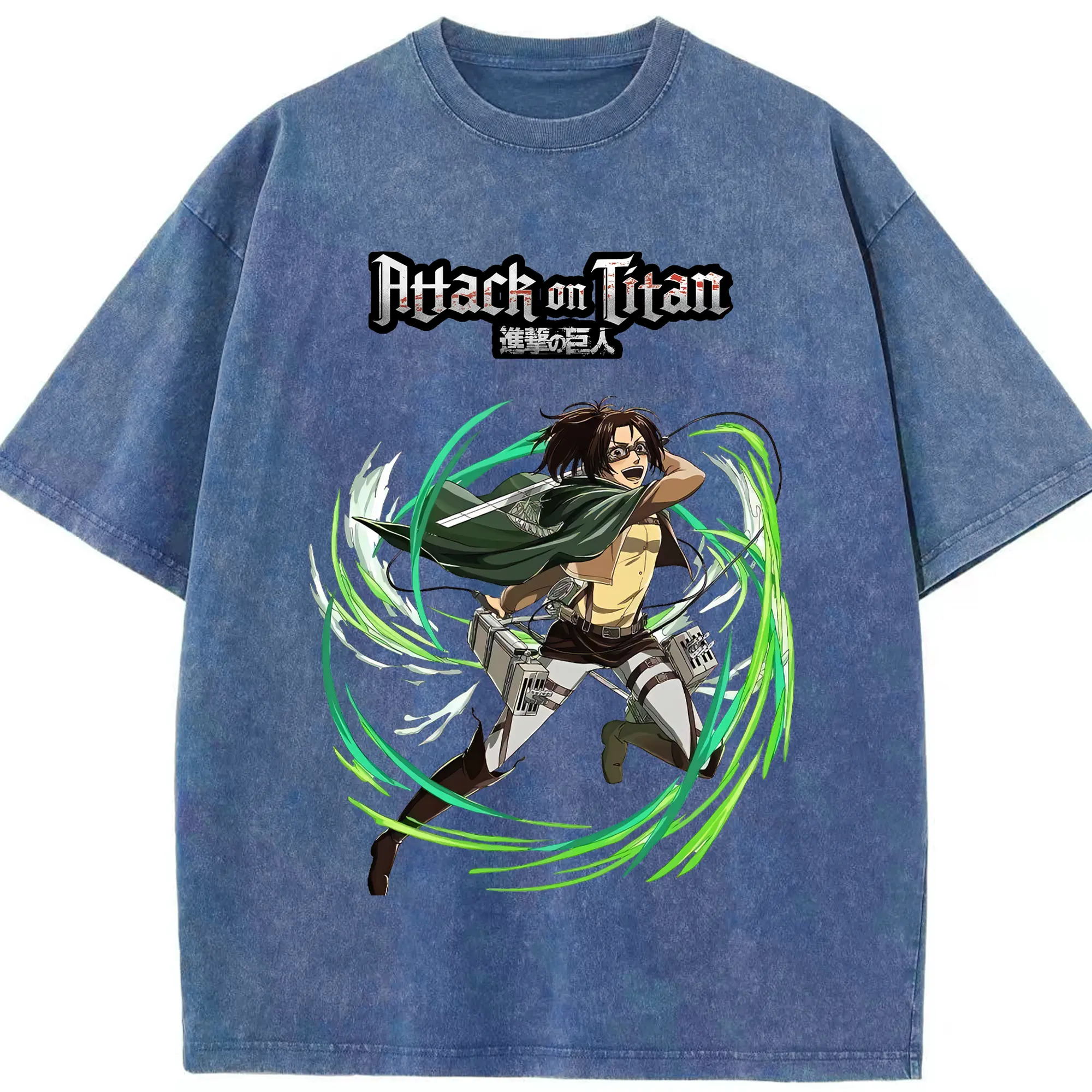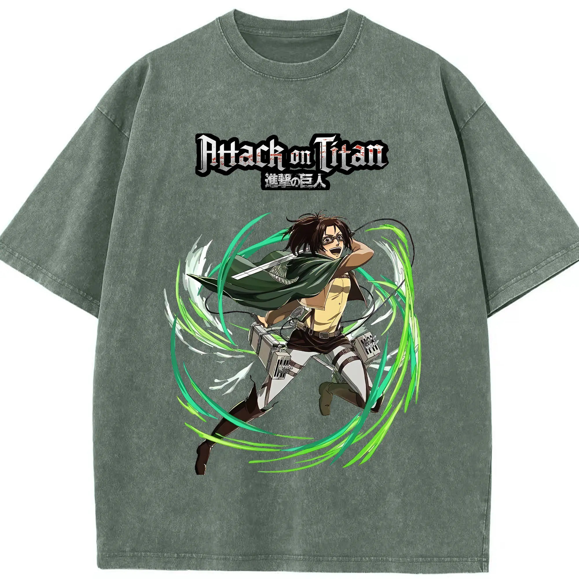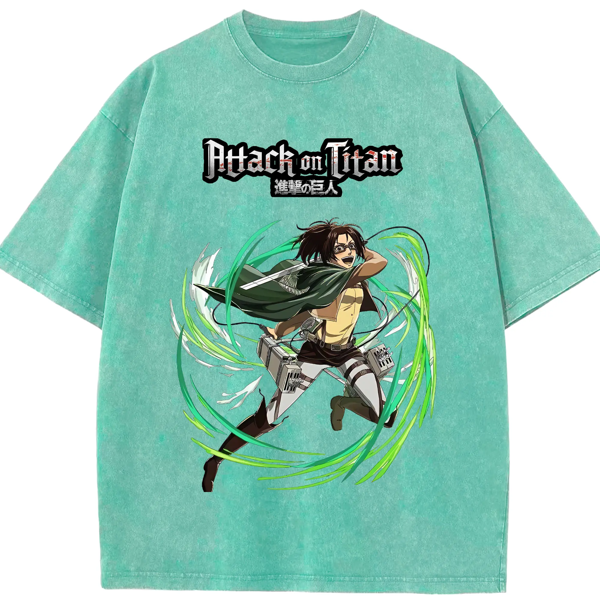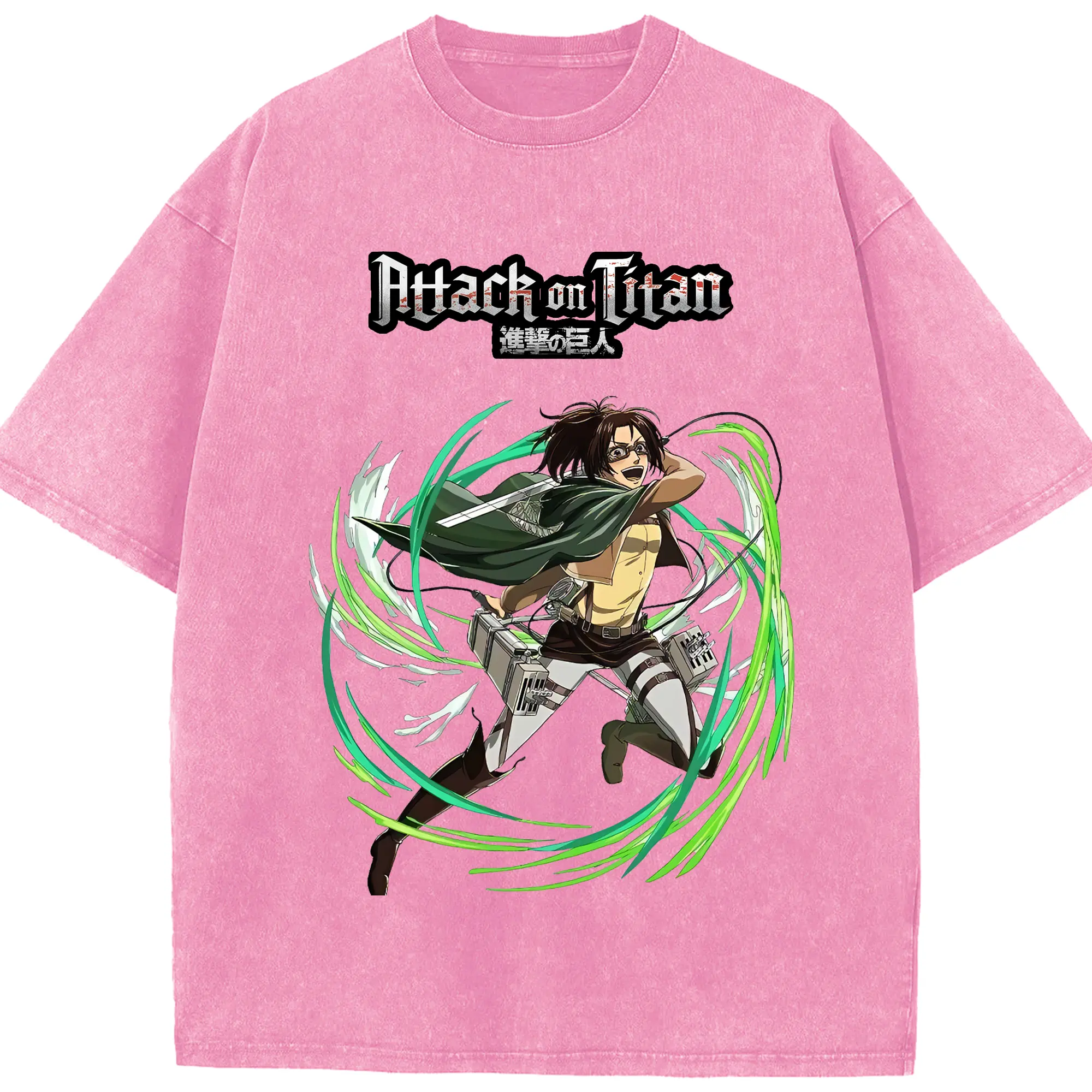 進撃の巨人 グッズ ハンジ・ゾエ - 綿100% ヴィンテージ風 半袖Tシャツ ・ 背面プリント ・ 柔らか肌触り ・ 通気性 快適 ・ スポーツ カジュアル 外出用