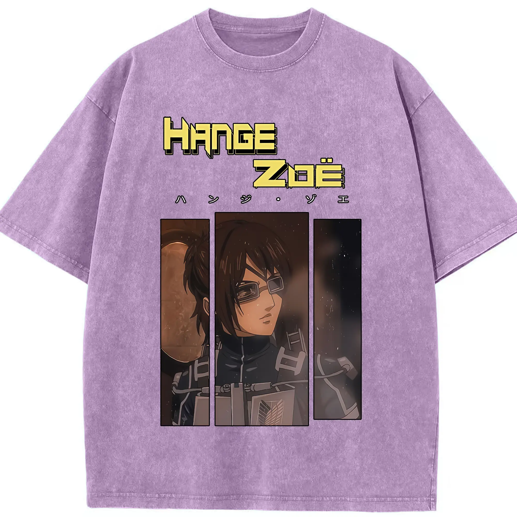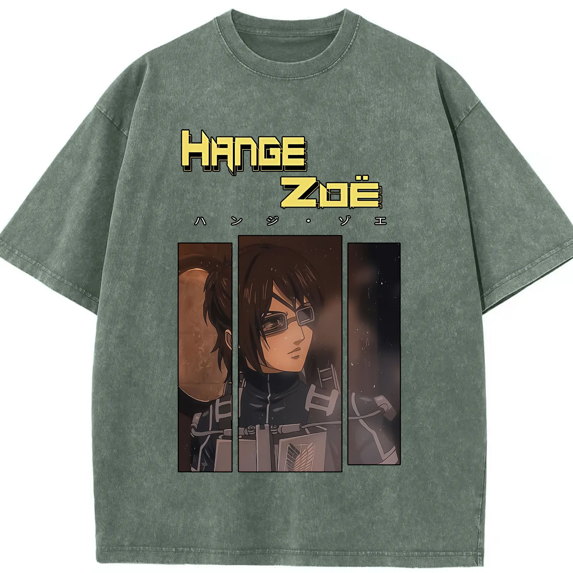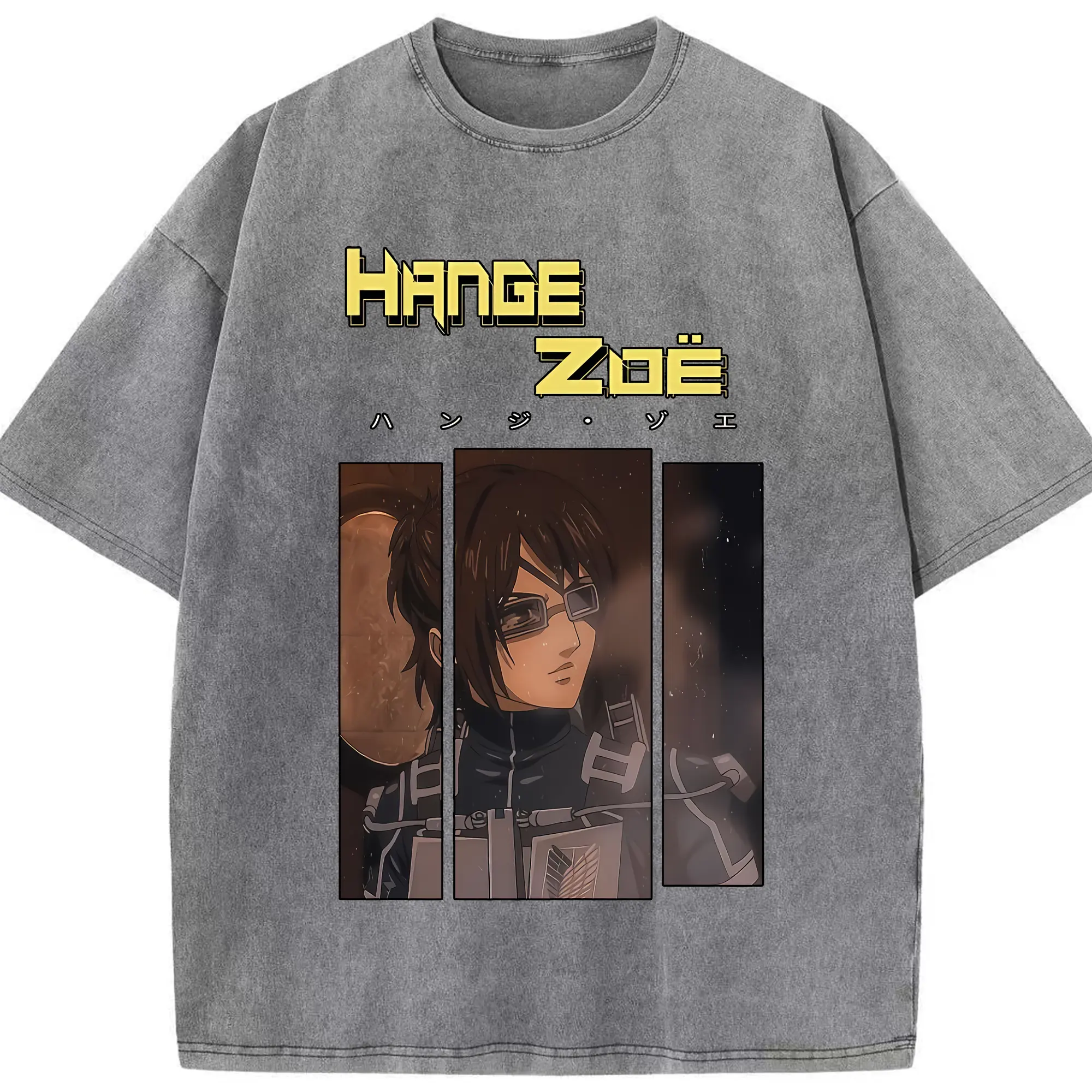 進撃の巨人 グッズ ハンジ・ゾエ - 綿100% ヴィンテージ風 半袖Tシャツ ・ 背面プリント ・ 柔らか肌触り ・ 通気性 快適 ・ スポーツ カジュアル 外出用