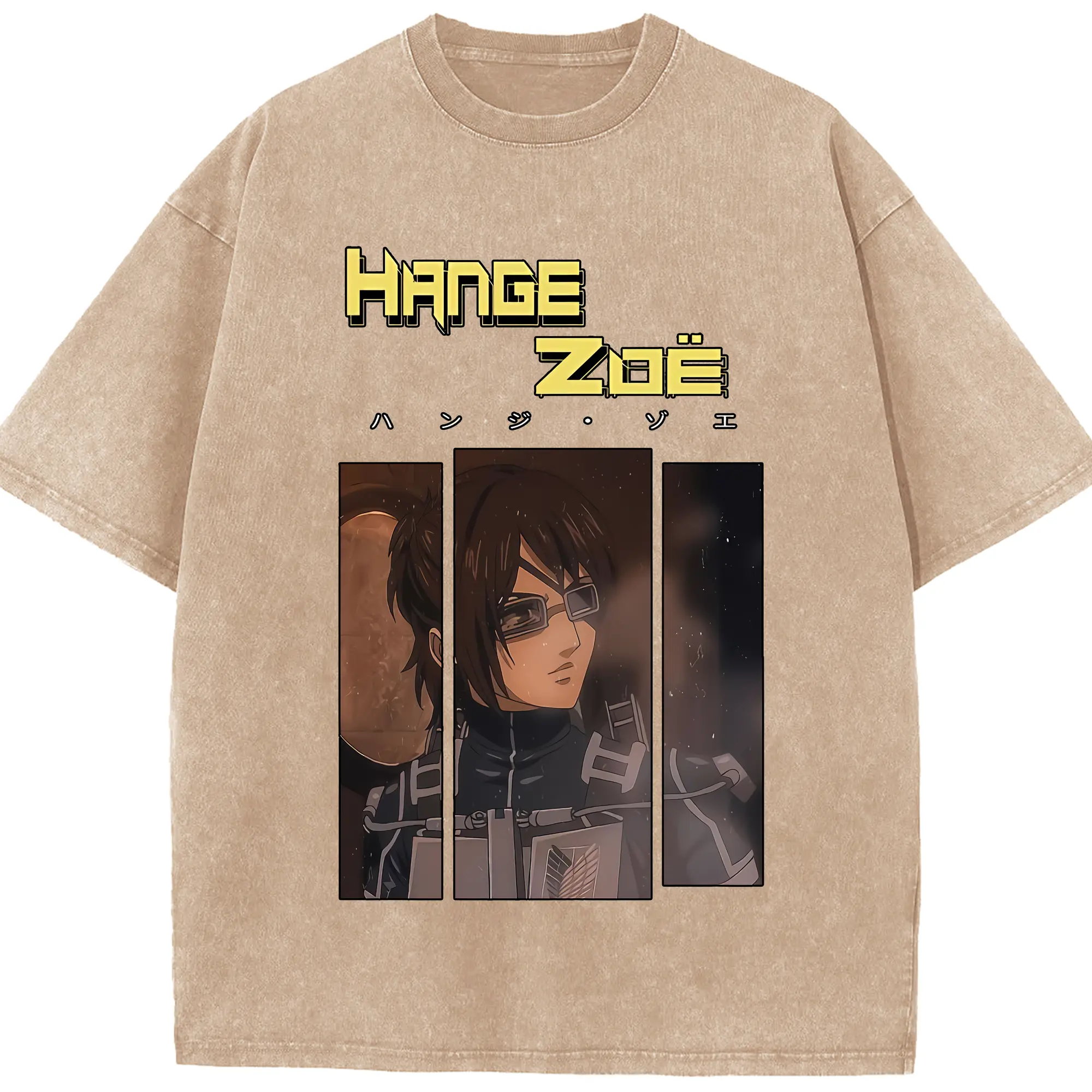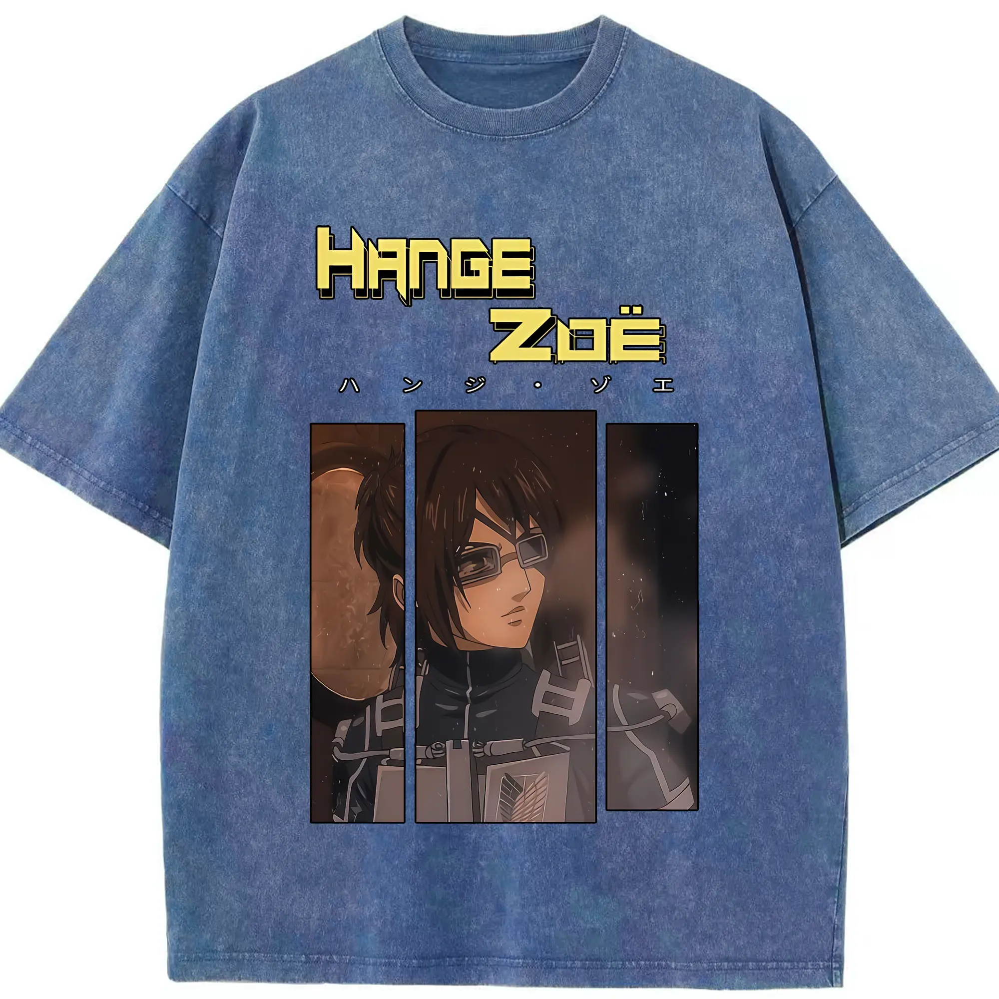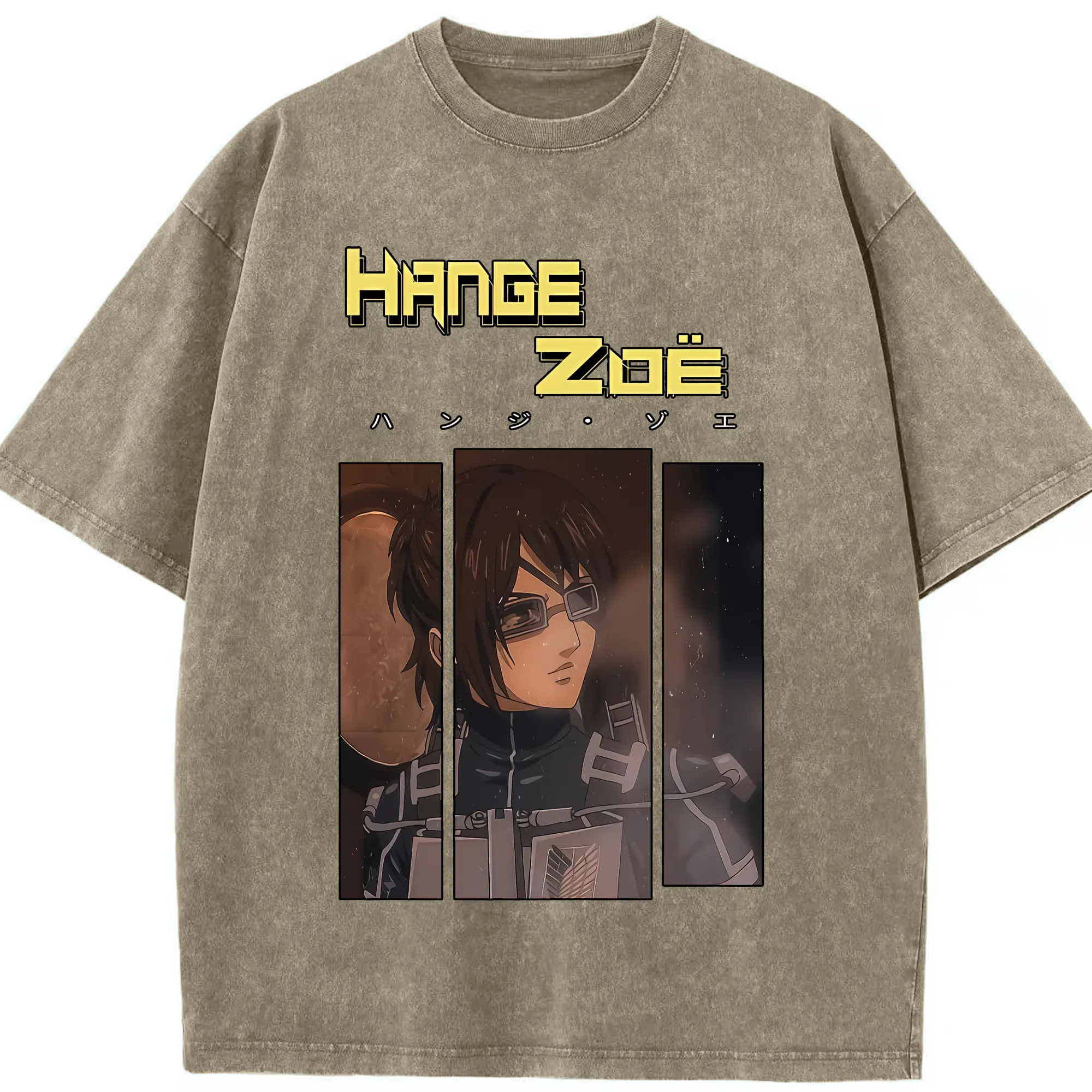 進撃の巨人 グッズ ハンジ・ゾエ - 綿100% ヴィンテージ風 半袖Tシャツ ・ 背面プリント ・ 柔らか肌触り ・ 通気性 快適 ・ スポーツ カジュアル 外出用