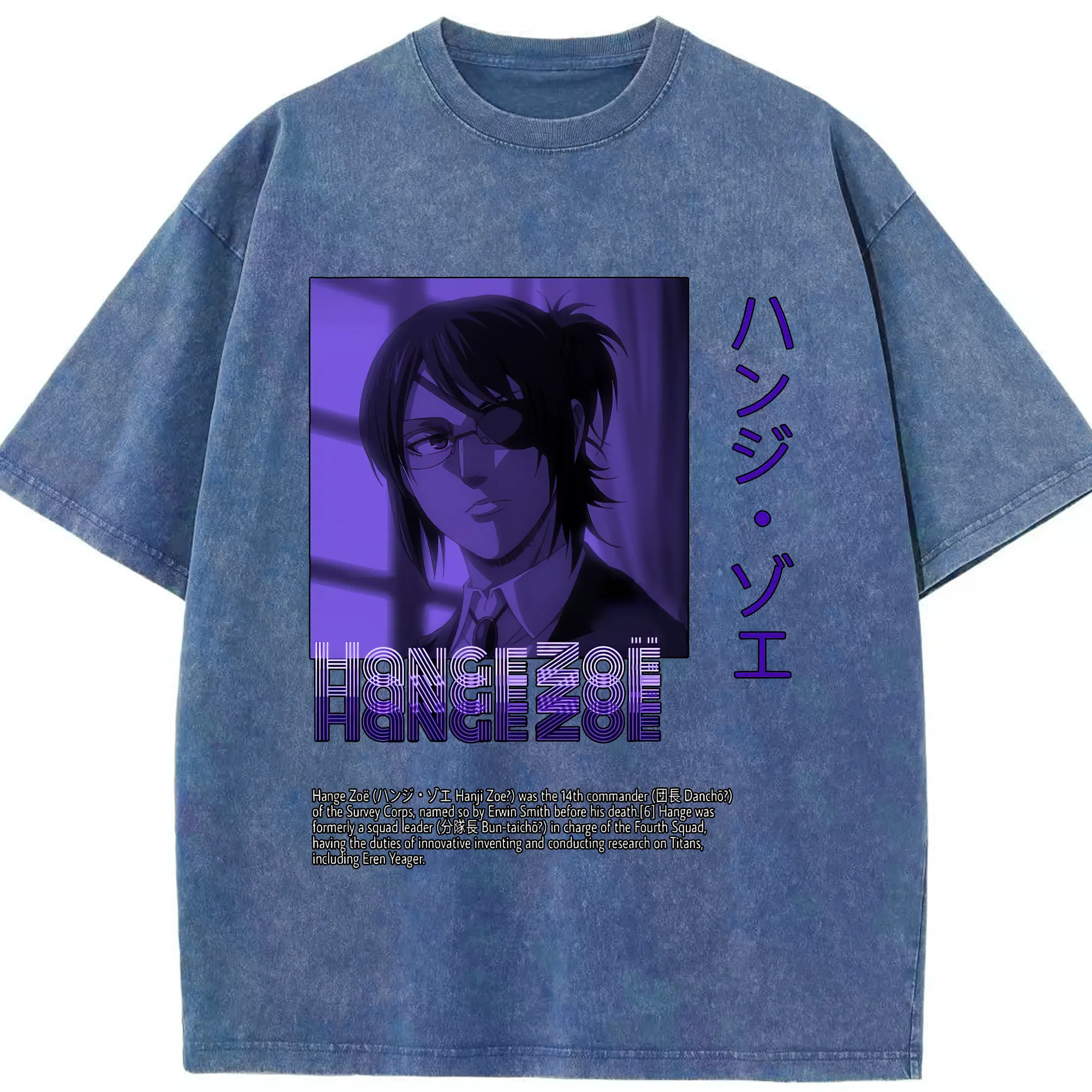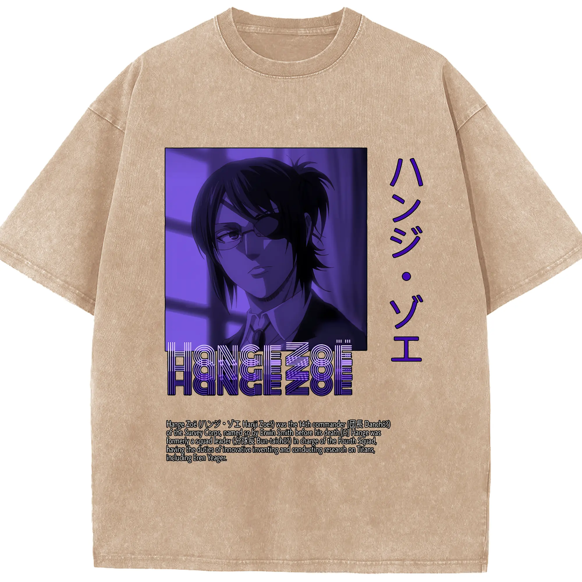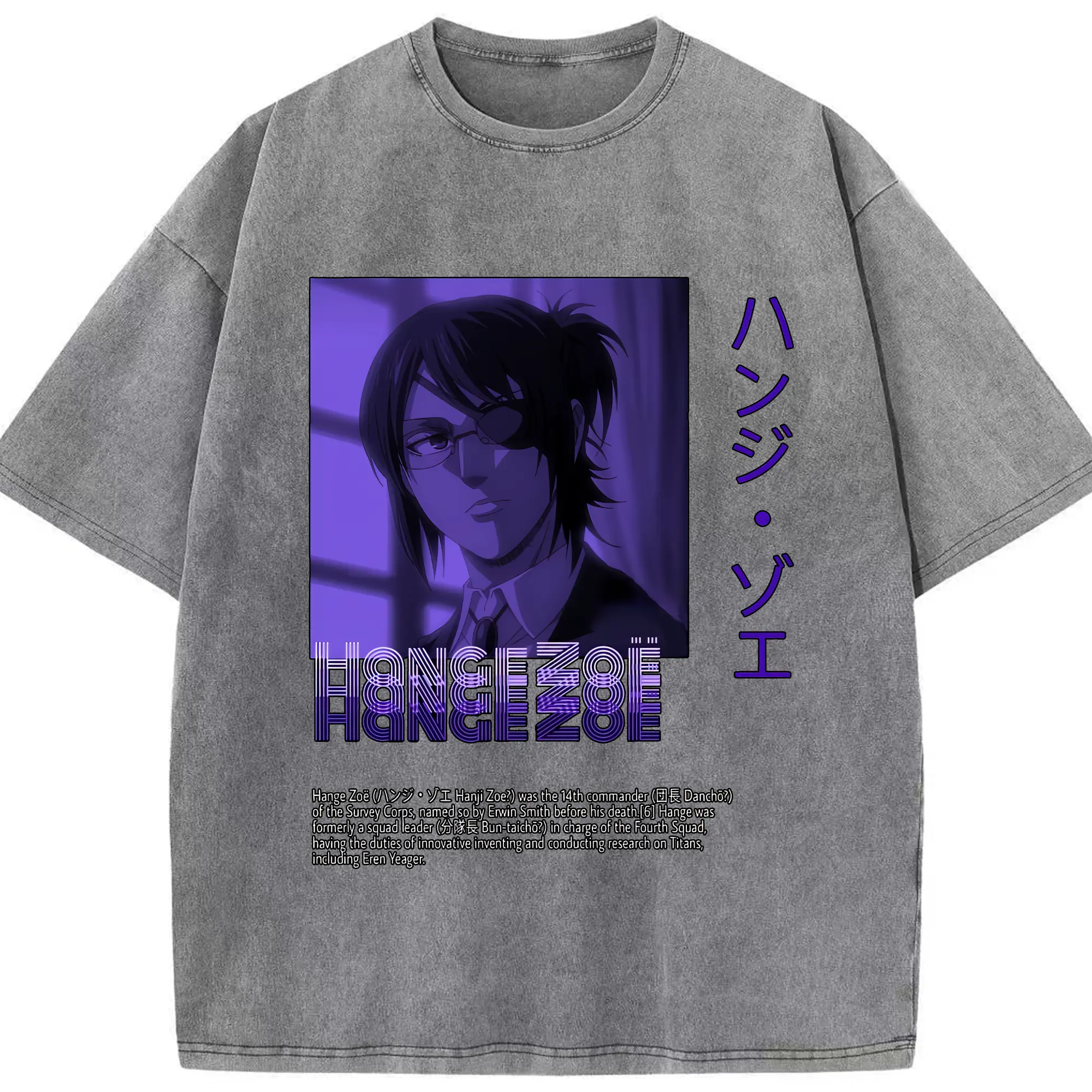 進撃の巨人 グッズ ハンジ・ゾエ - 綿100% ヴィンテージ風 半袖Tシャツ ・ 背面プリント ・ 柔らか肌触り ・ 通気性 快適 ・ スポーツ カジュアル 外出用