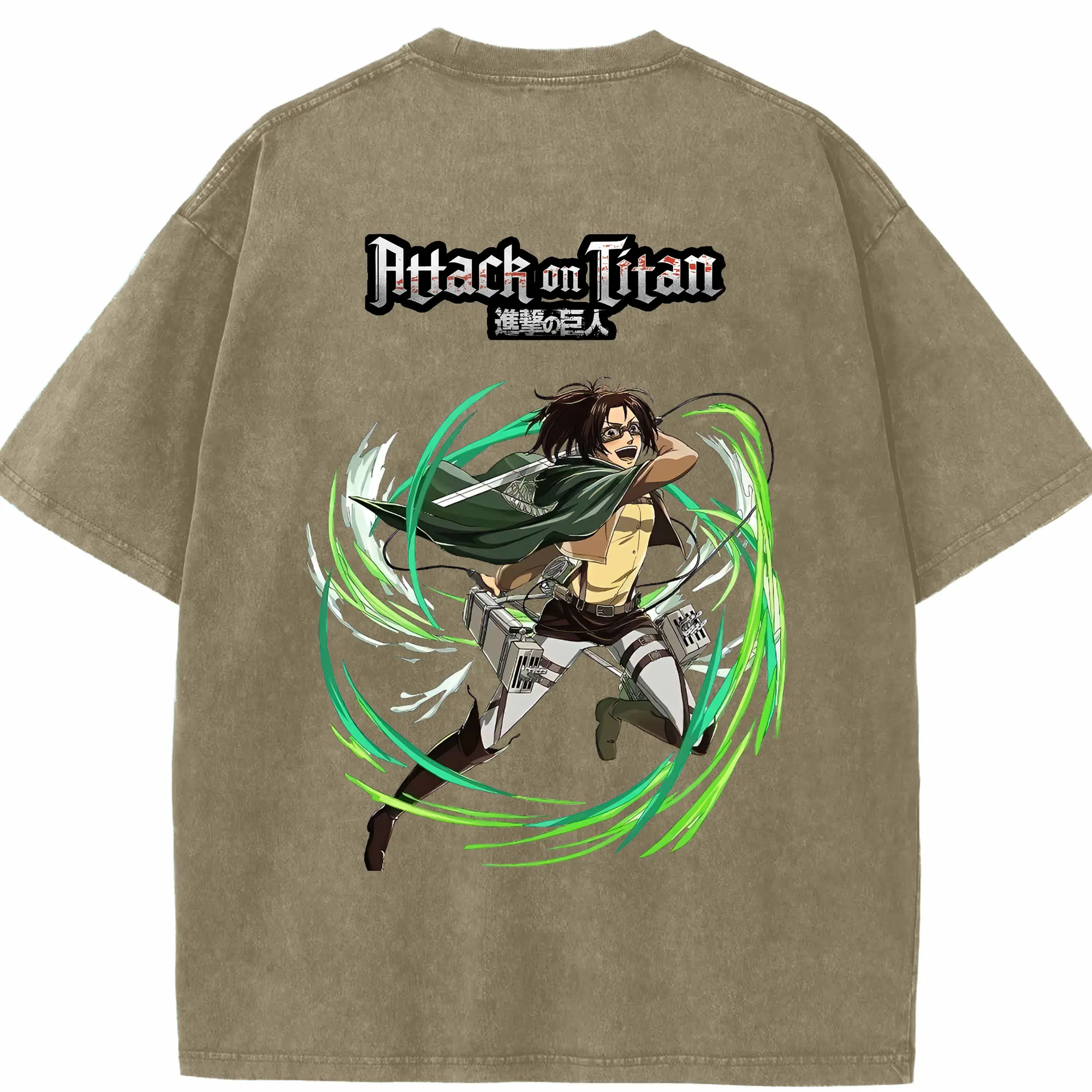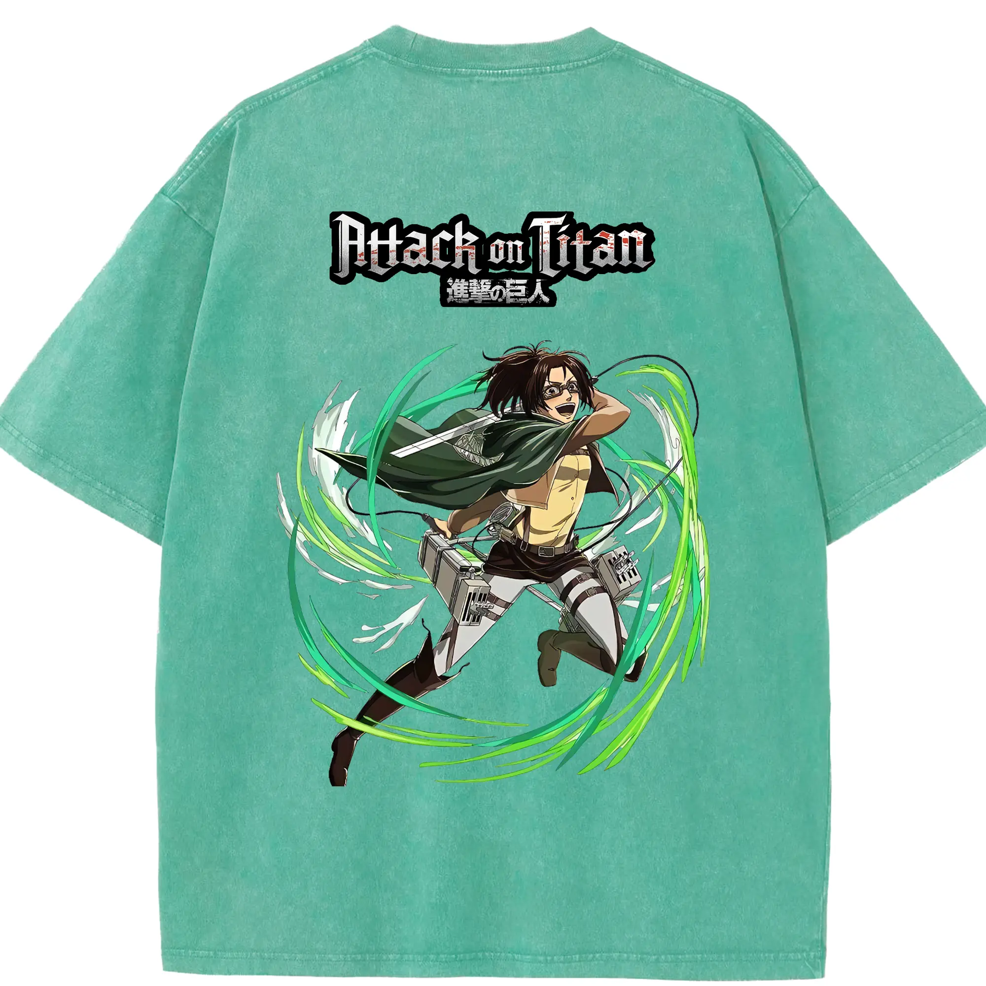 進撃の巨人 グッズ ハンジ・ゾエ - 綿100% ヴィンテージ風 半袖Tシャツ ・ フロントプリント ・ 柔らか肌触り ・ 通気性 快適 ・ スポーツ カジュアル 外出用
