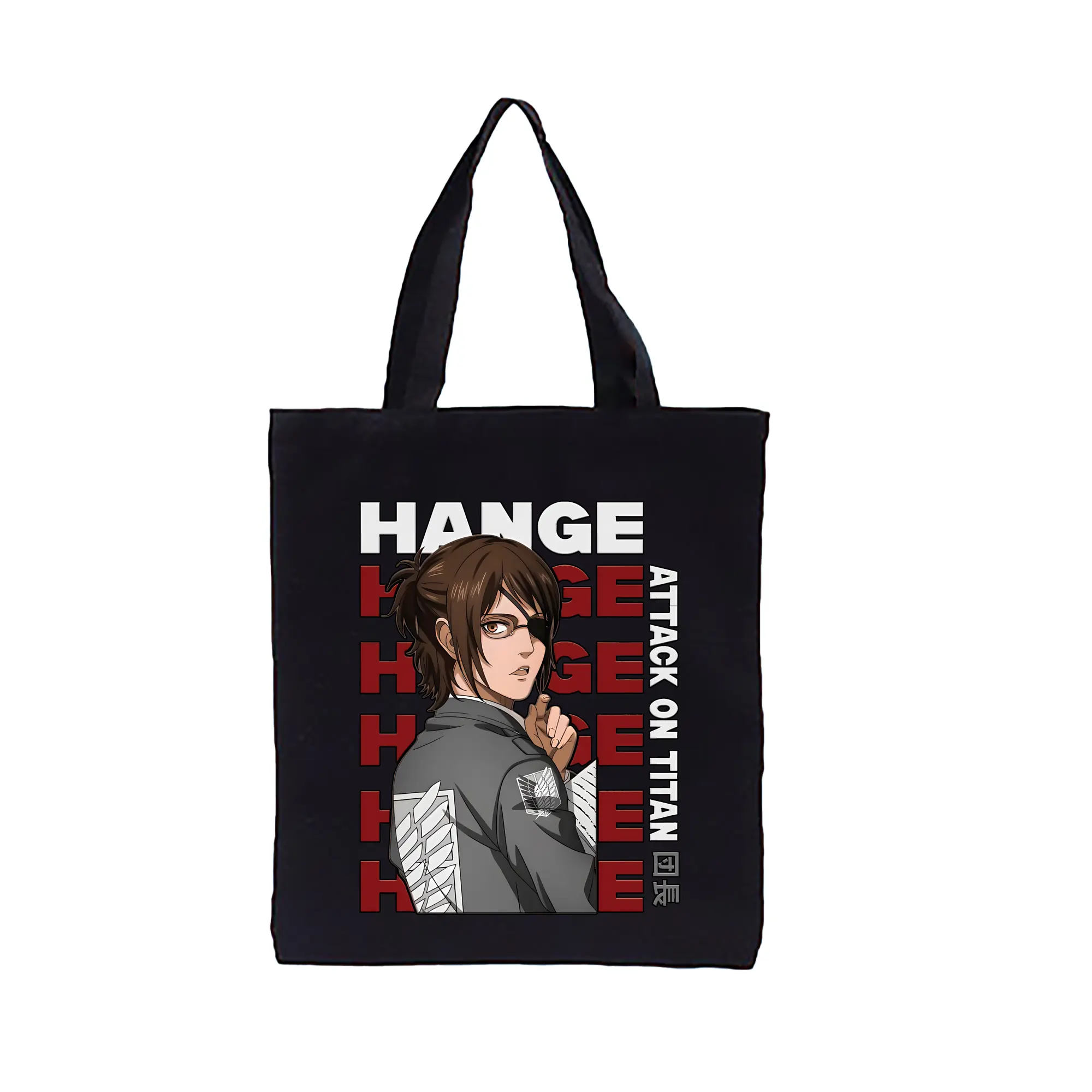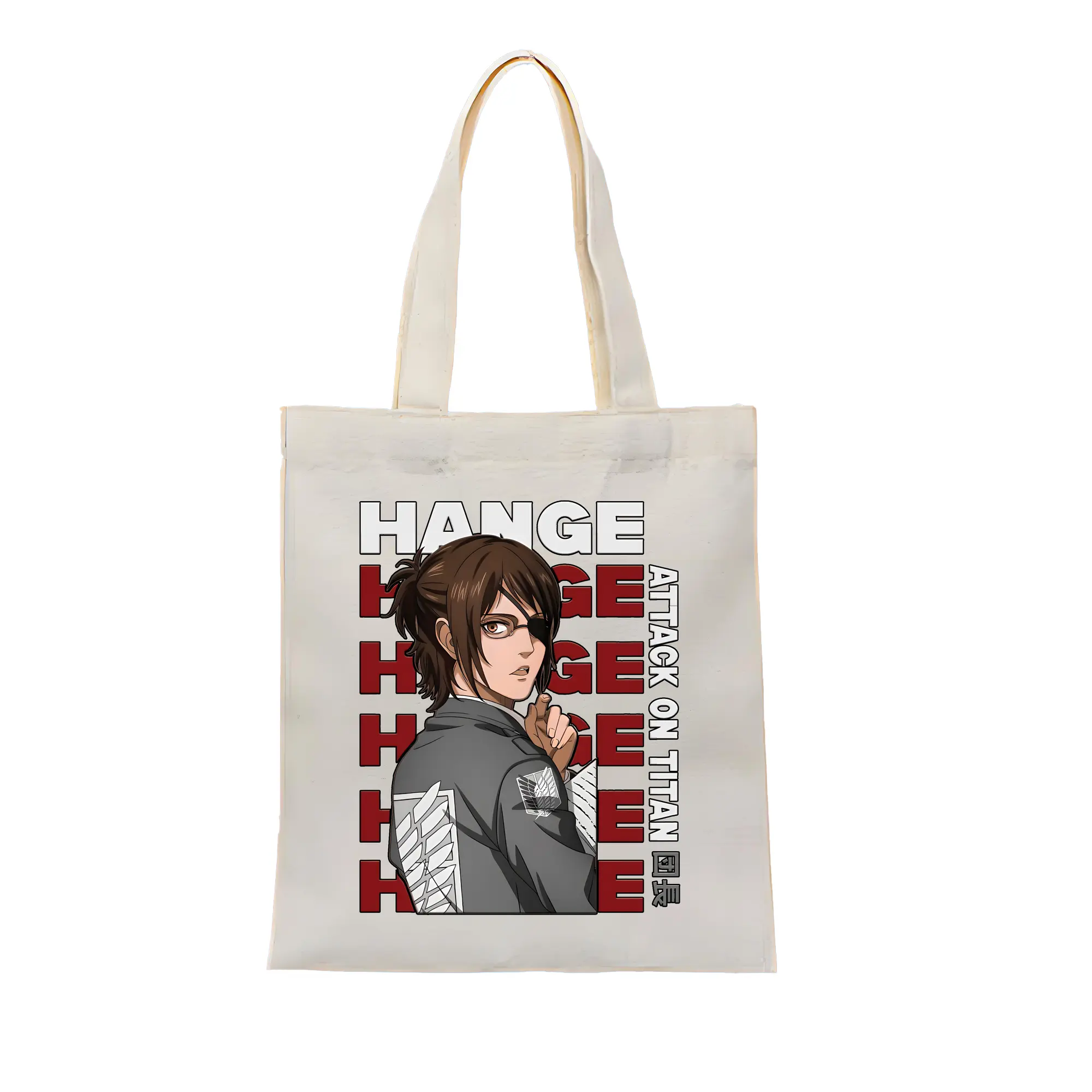 進撃の巨人 グッズ ハンジ・ゾエ - 縦型キャンバス手提げバッグ(トートバッグ) ・ キャンバス素材 ・ ショッピング用 ・ 軽量 丈夫 お手入れ簡単