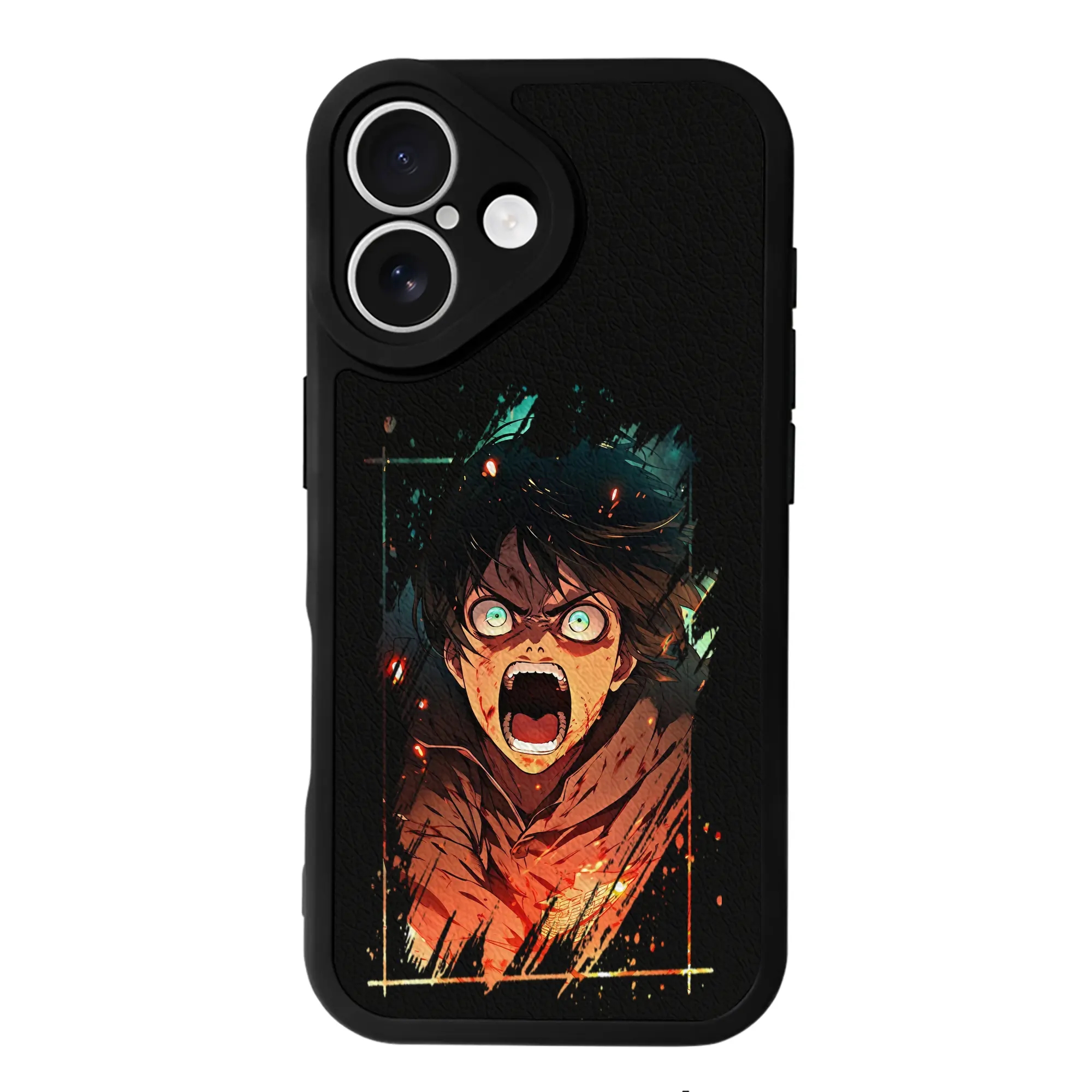 進撃の巨人 グッズ エレン・イェーガー - IPhone 16シリーズ対応 ・ シリコンスマホケース ・ レザー調 ・ 高精度フィット ・ 耐衝撃 ・ ワイヤレス充電対応 ・ 精密カット