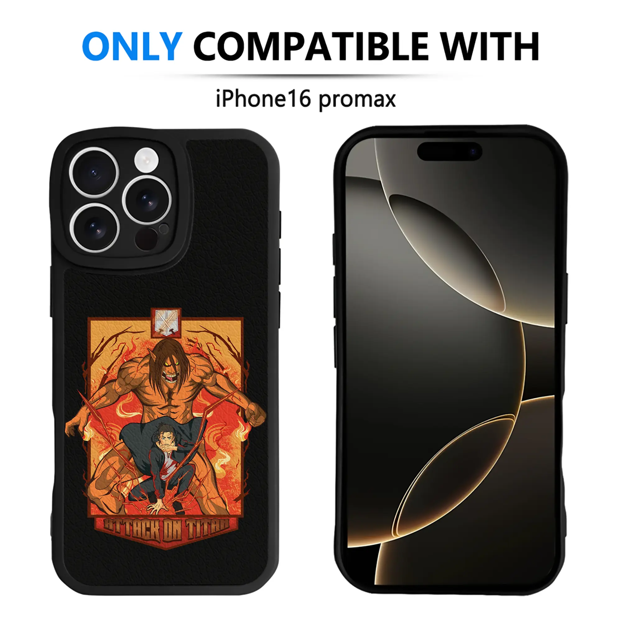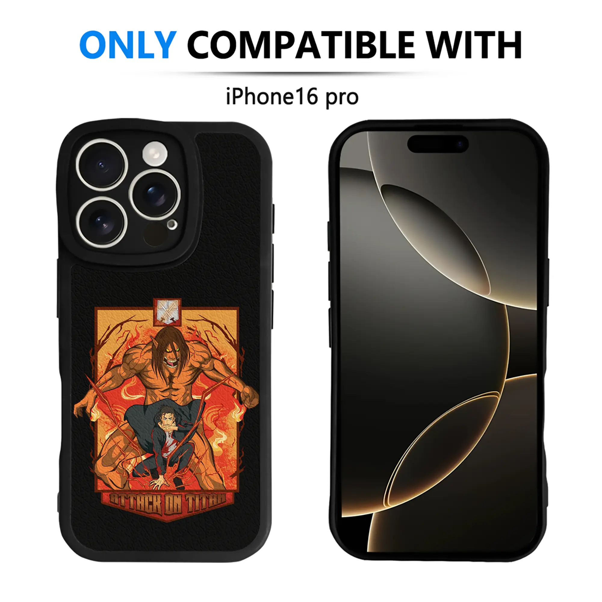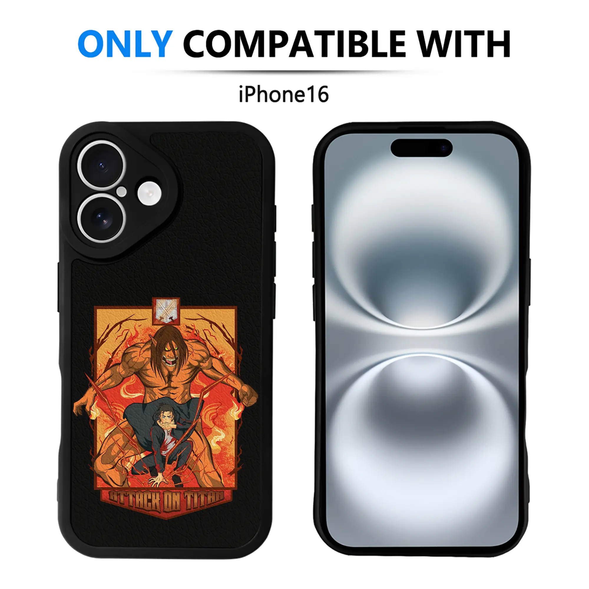 進撃の巨人 グッズ エレン・イェーガー - IPhone 16シリーズ対応 ・ シリコンスマホケース ・ レザー調 ・ 高精度フィット ・ 耐衝撃 ・ ワイヤレス充電対応 ・ 精密カット