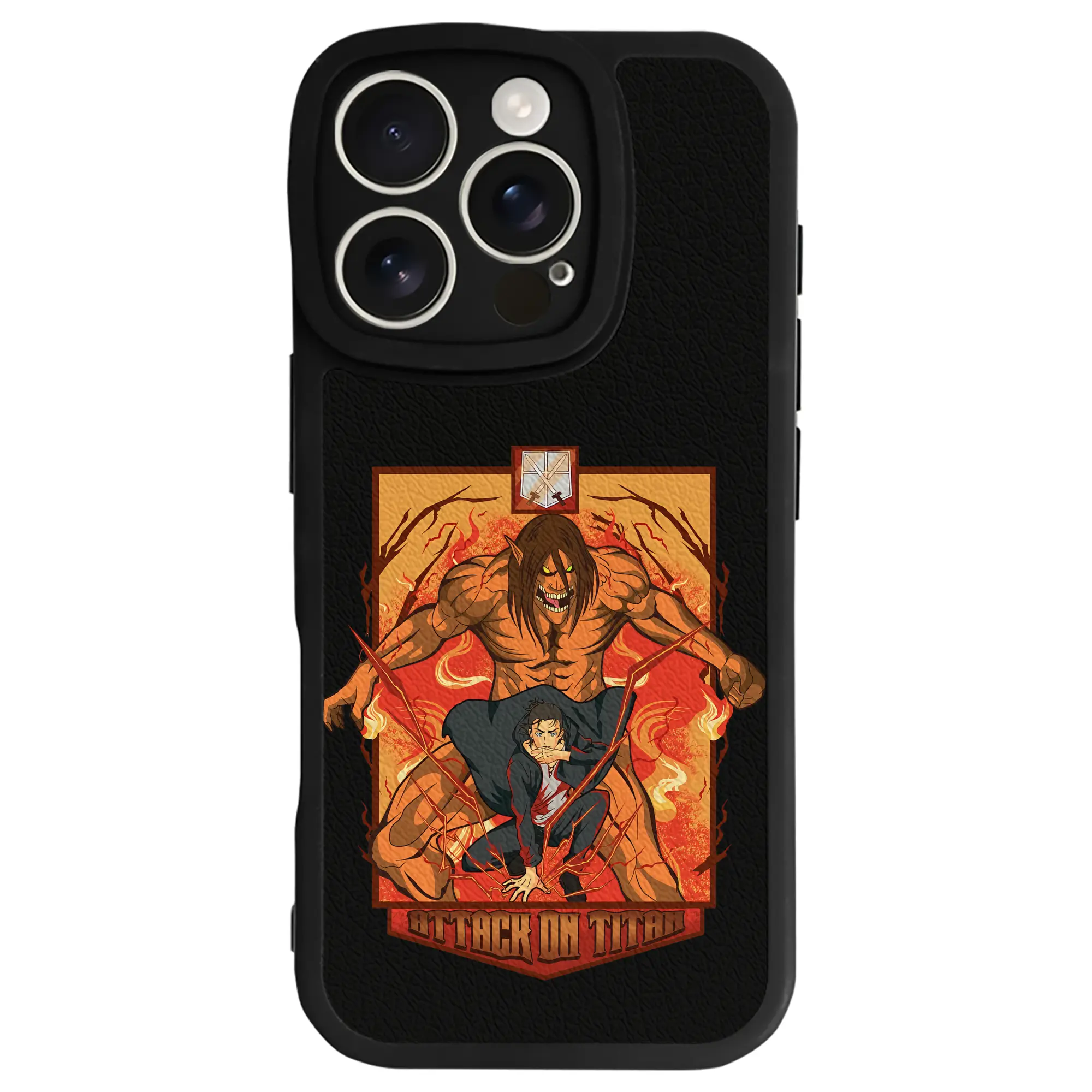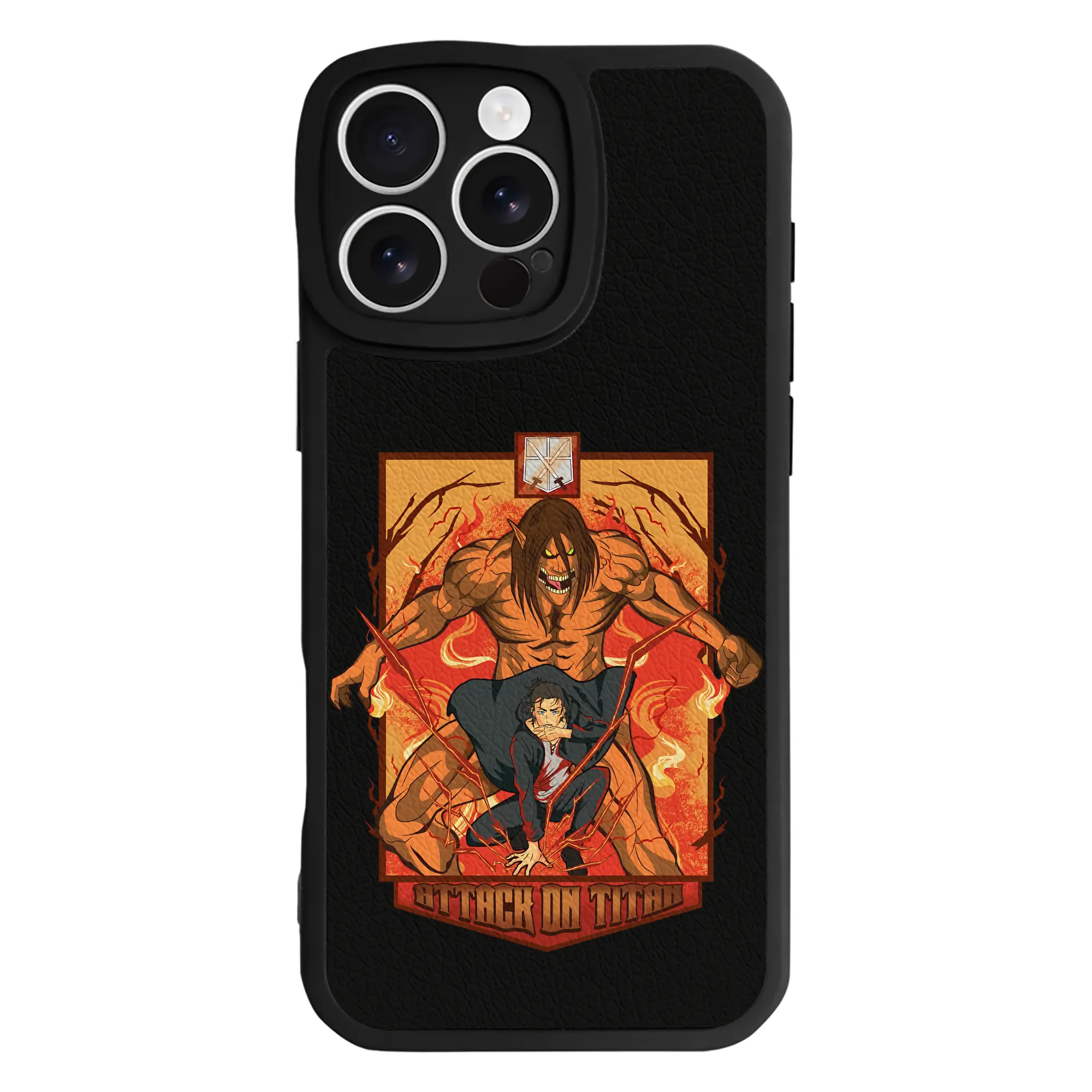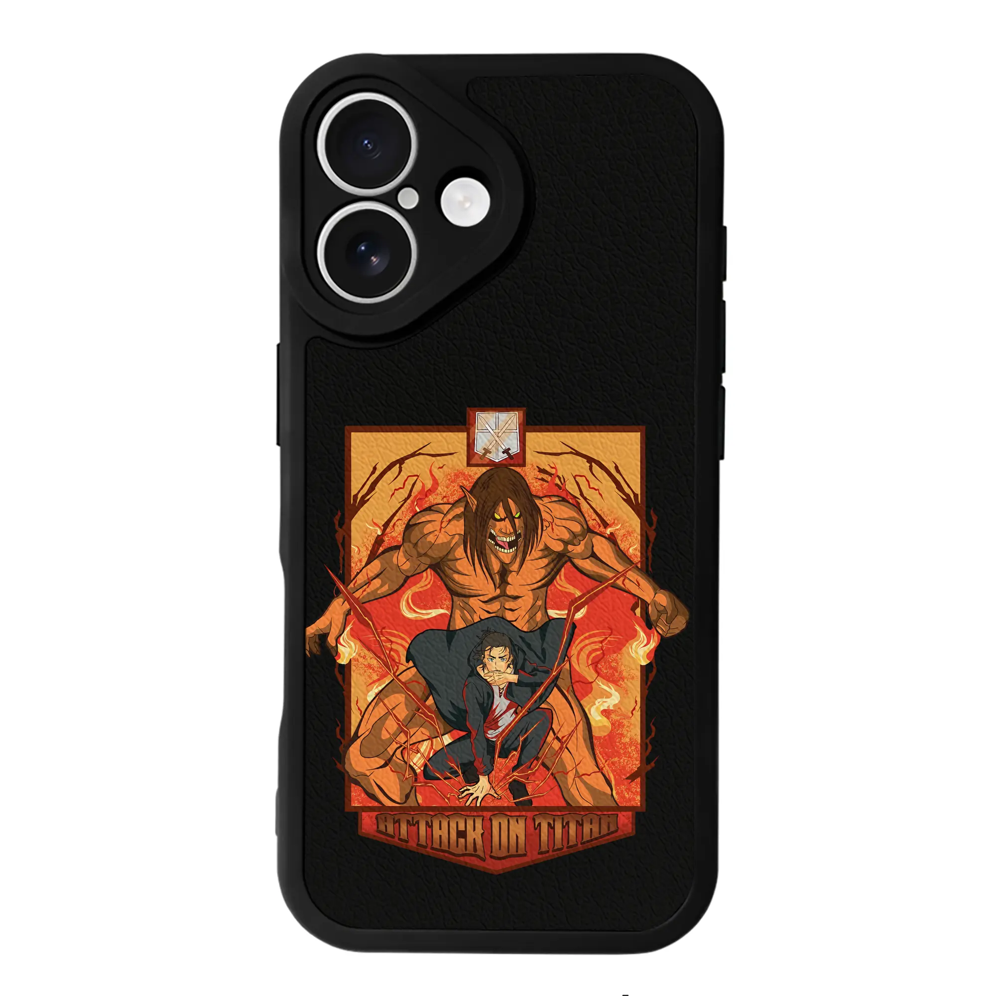 進撃の巨人 グッズ エレン・イェーガー - IPhone 16シリーズ対応 ・ シリコンスマホケース ・ レザー調 ・ 高精度フィット ・ 耐衝撃 ・ ワイヤレス充電対応 ・ 精密カット