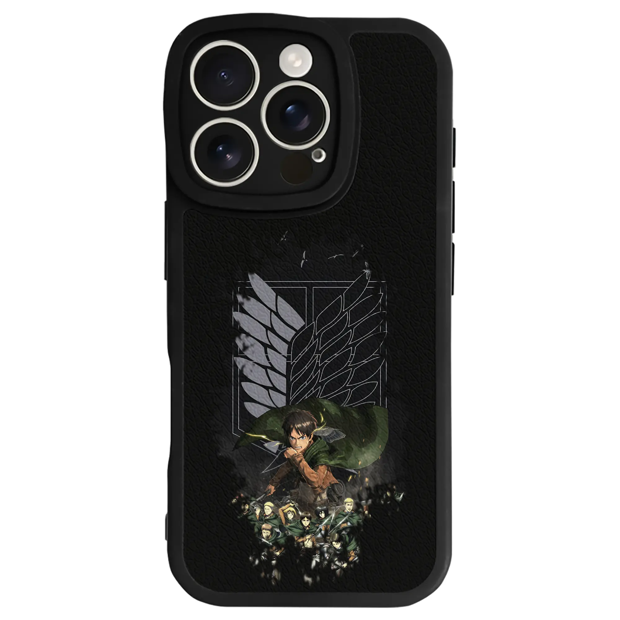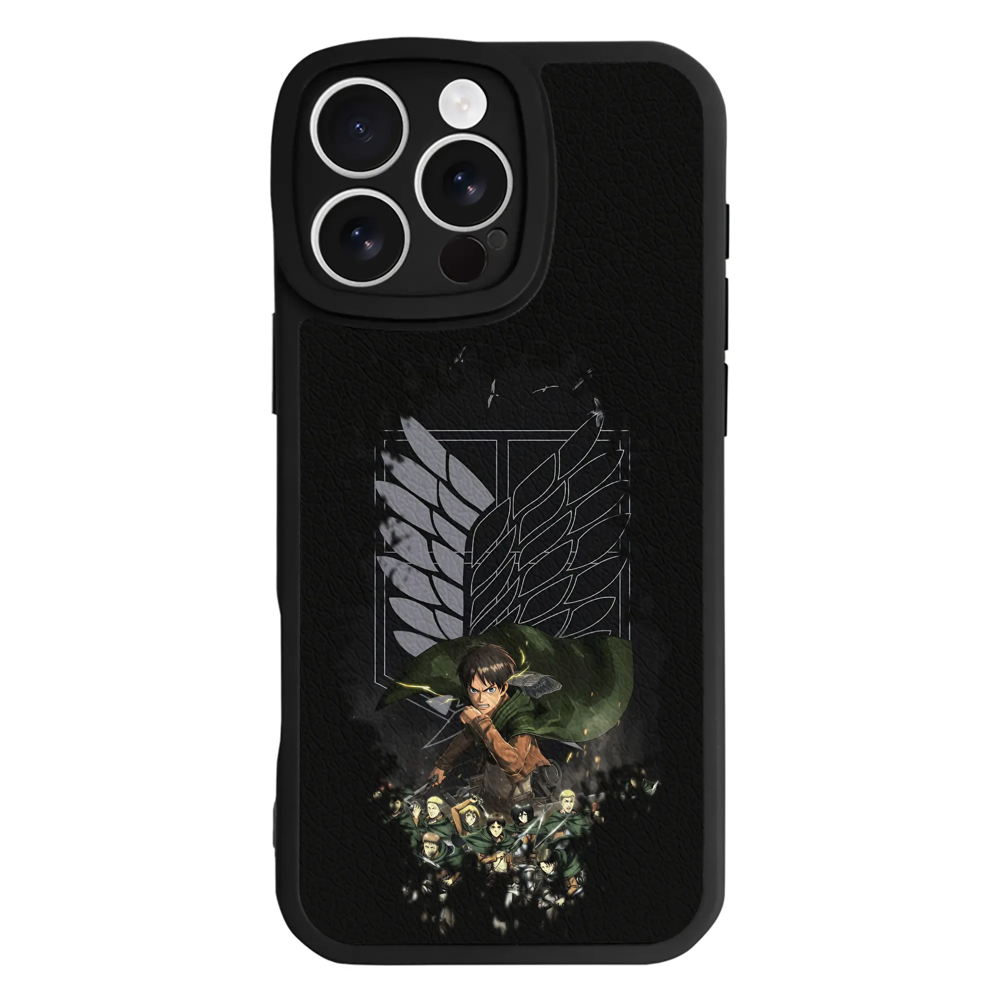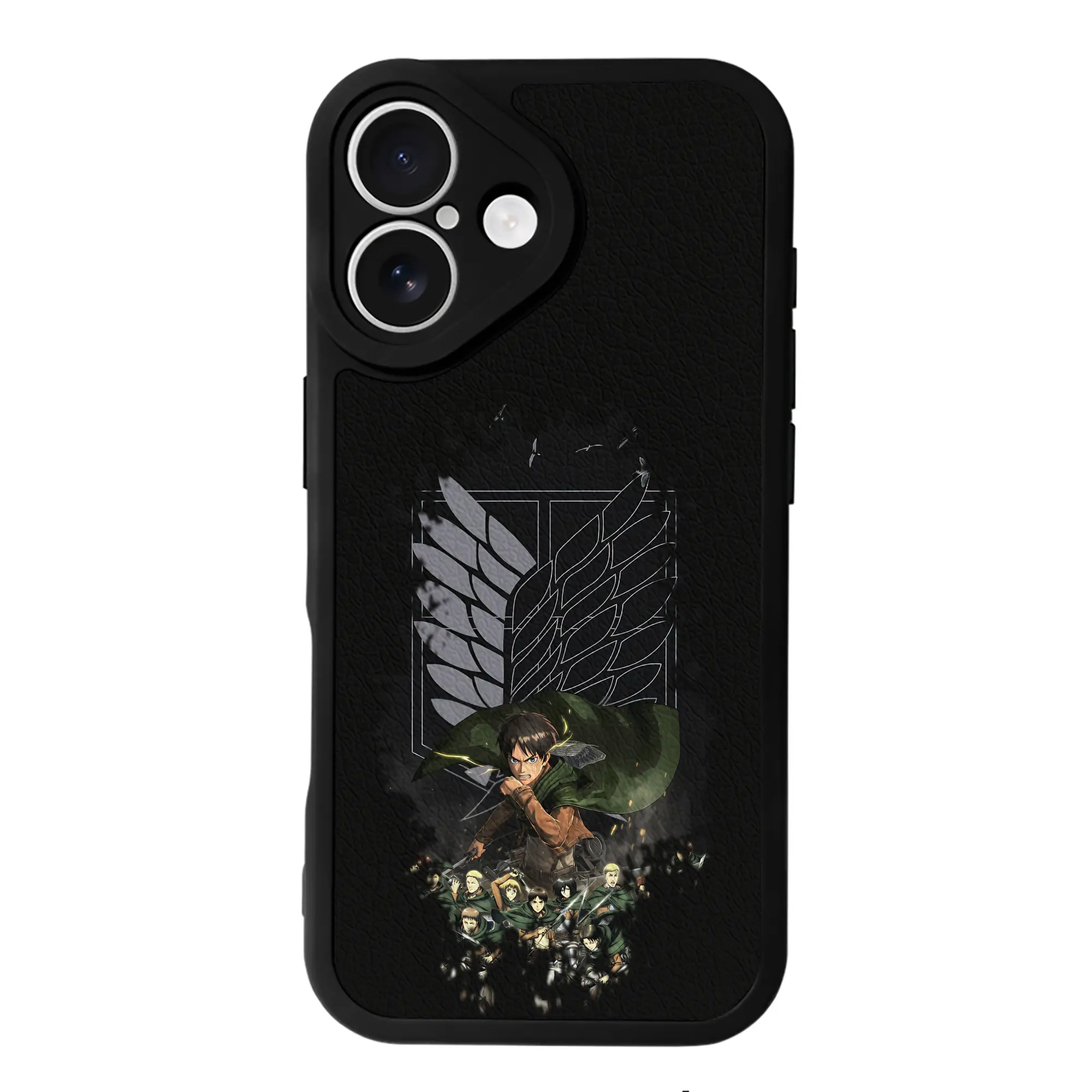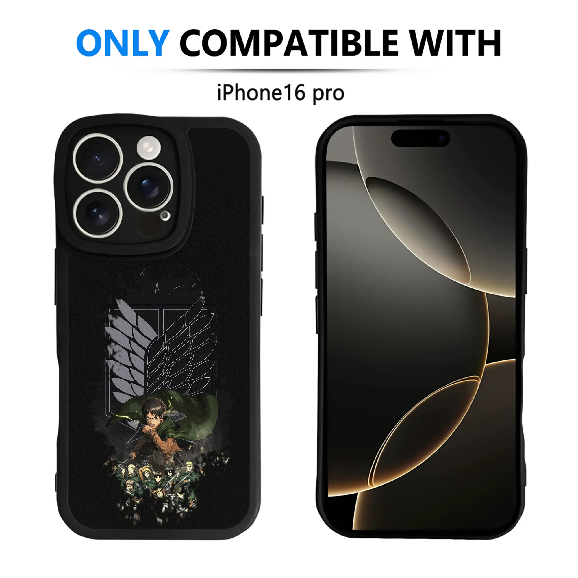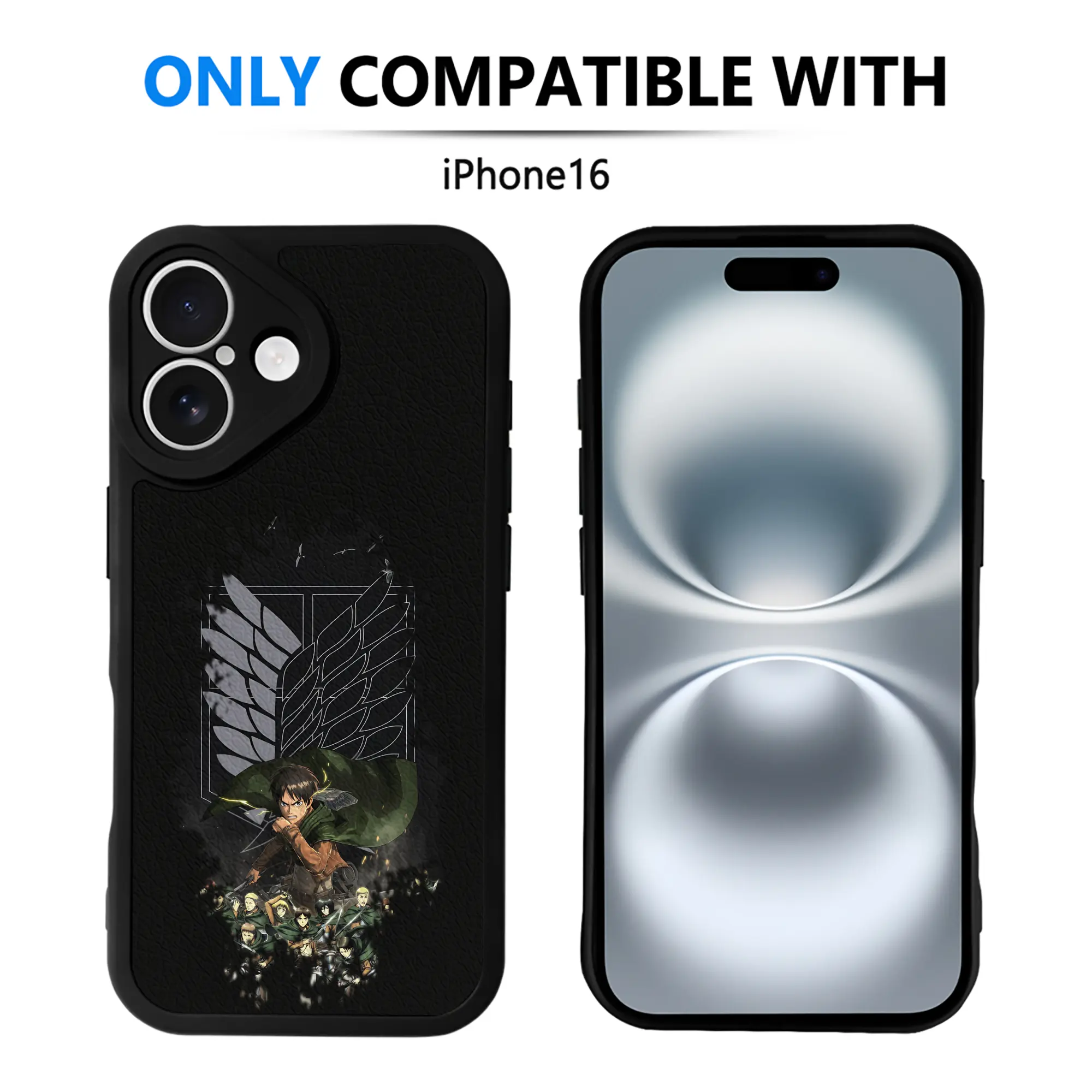 進撃の巨人 グッズ エレン・イェーガー - IPhone 16シリーズ対応 ・ シリコンスマホケース ・ レザー調 ・ 高精度フィット ・ 耐衝撃 ・ ワイヤレス充電対応 ・ 精密カット