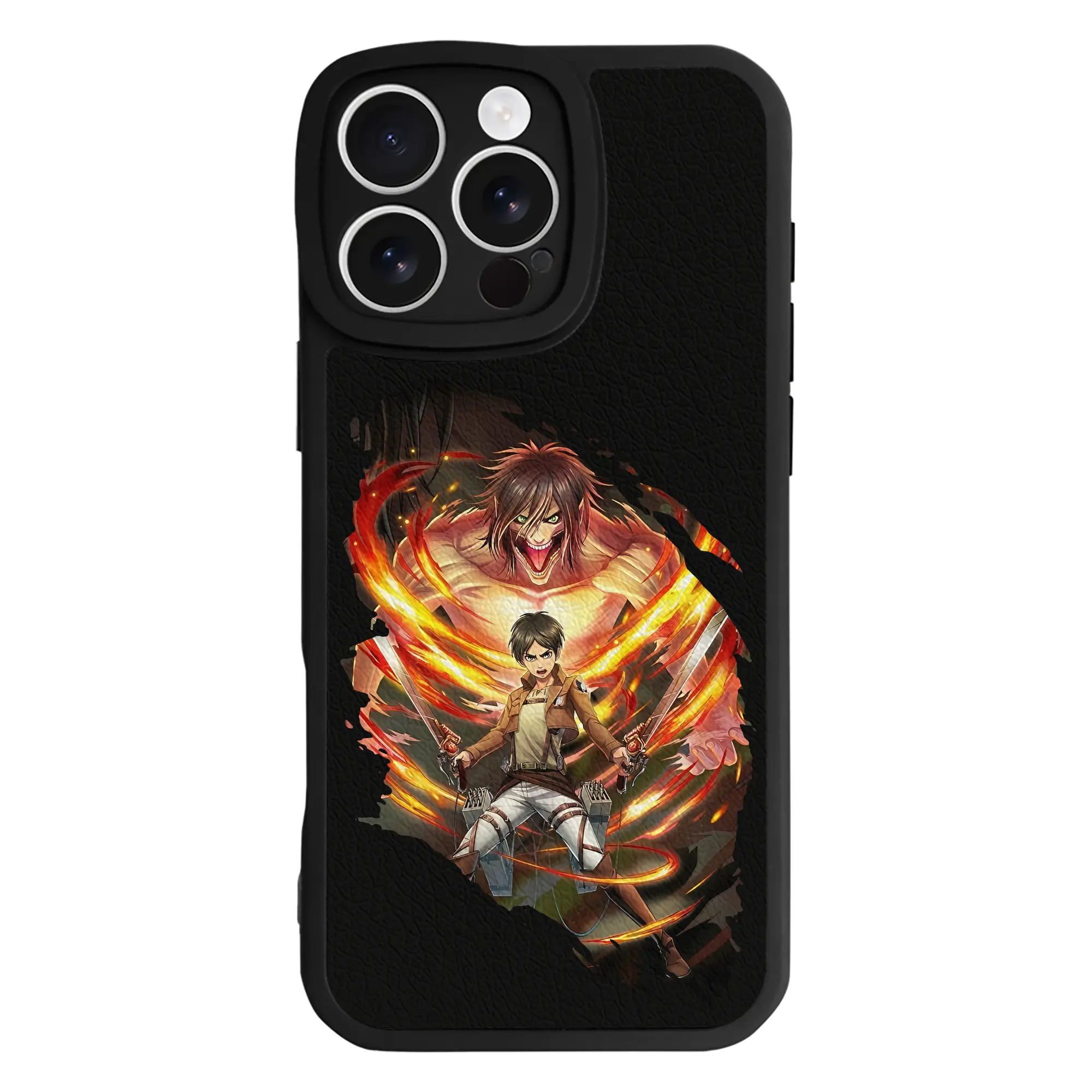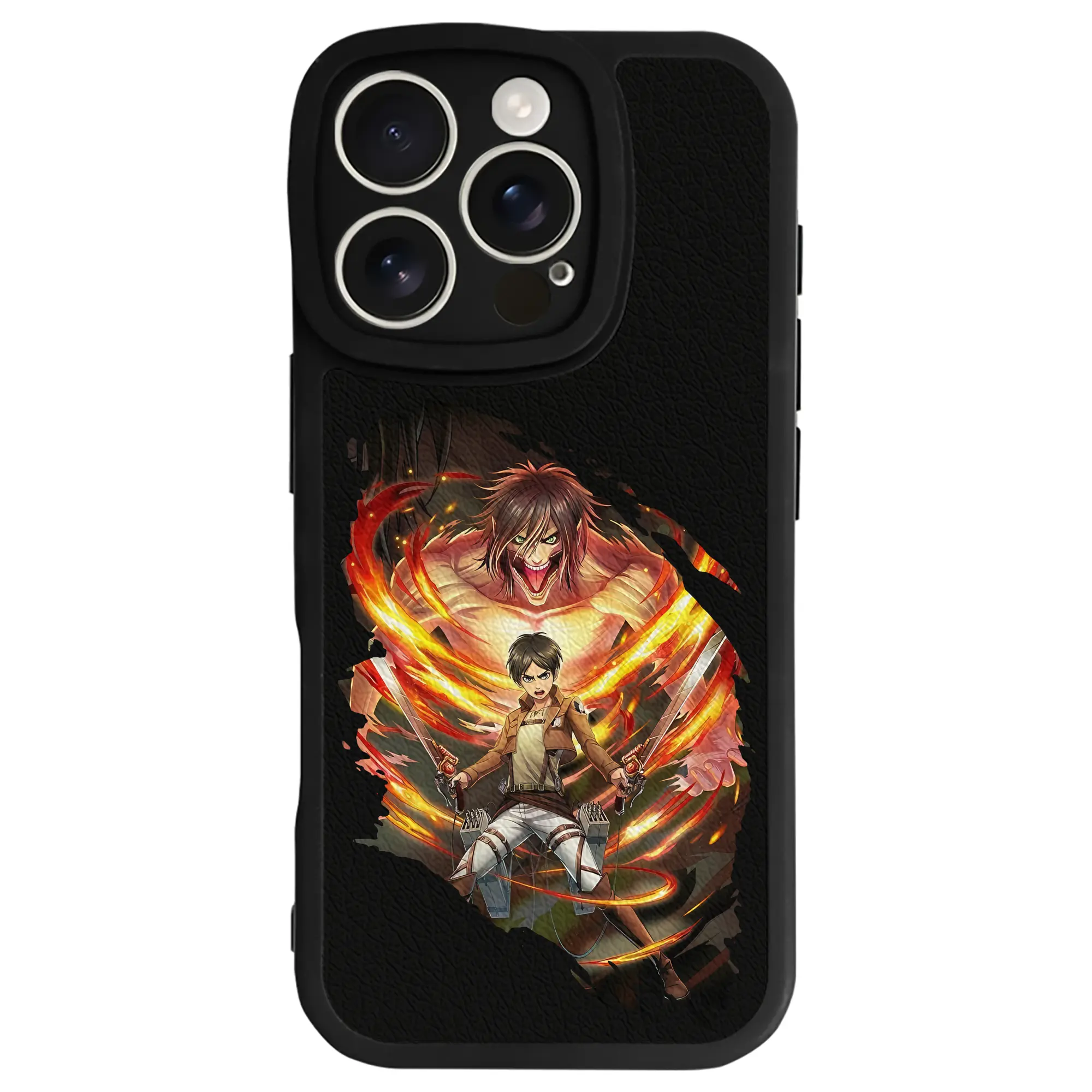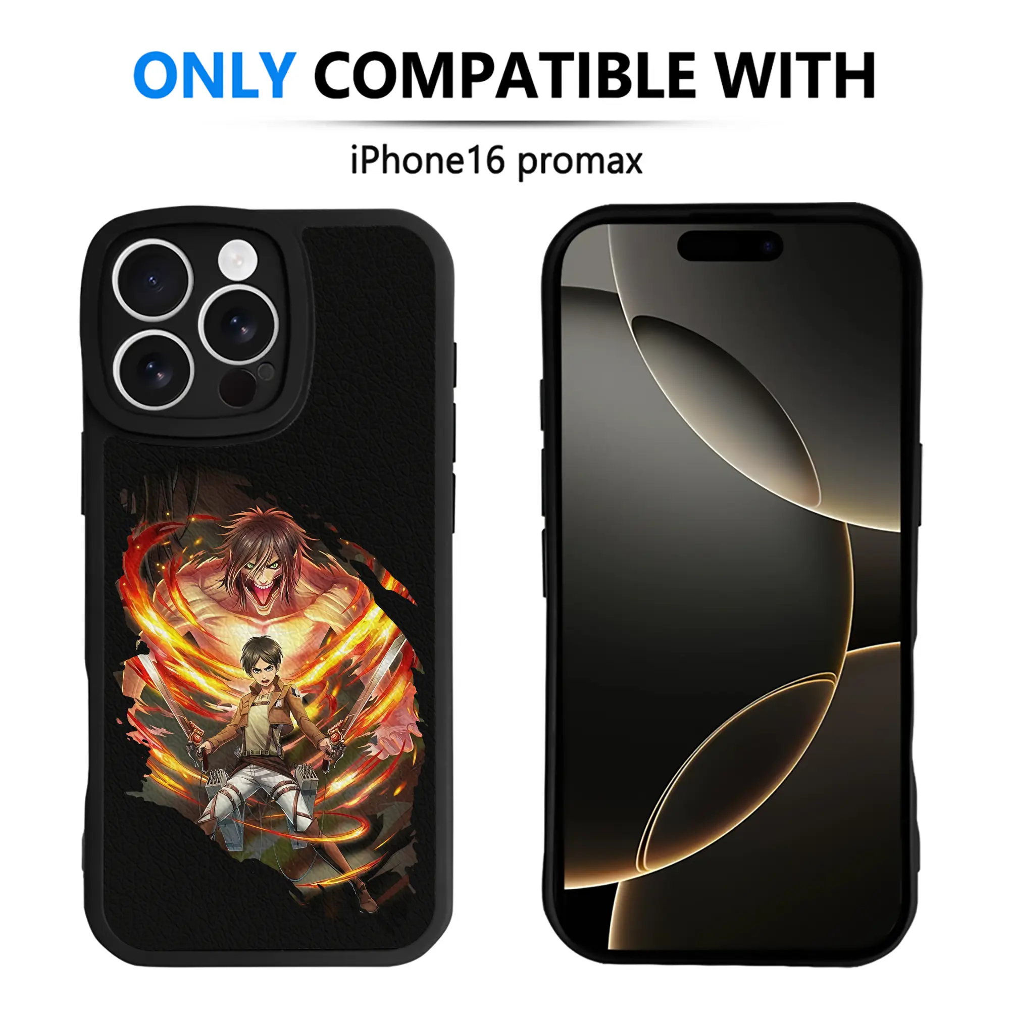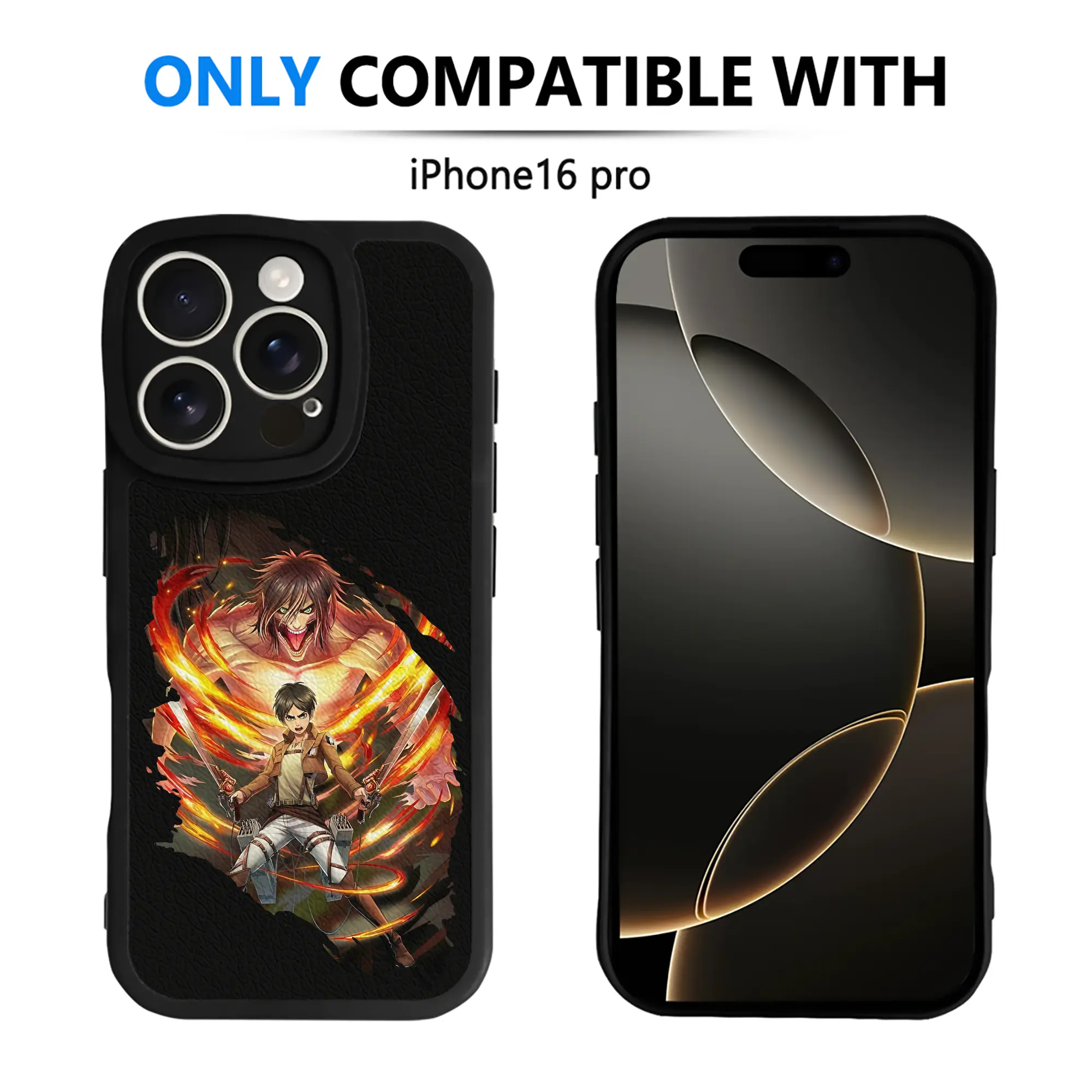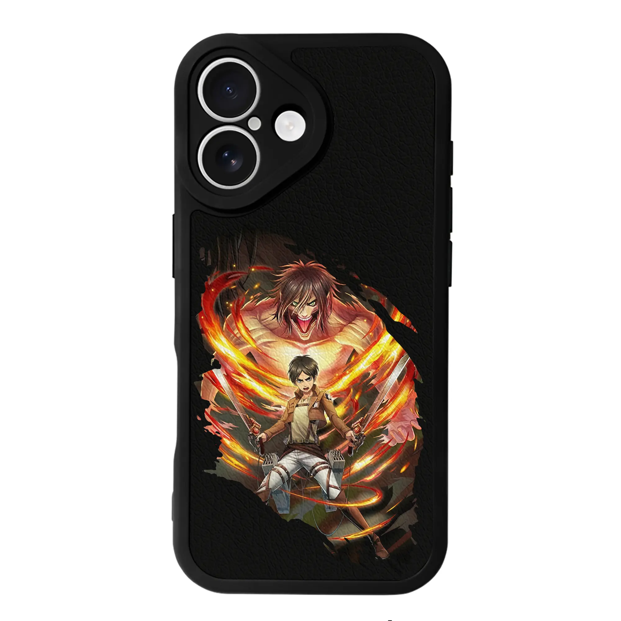 進撃の巨人 グッズ エレン・イェーガー - IPhone 16シリーズ対応 ・ シリコンスマホケース ・ レザー調 ・ 高精度フィット ・ 耐衝撃 ・ ワイヤレス充電対応 ・ 精密カット