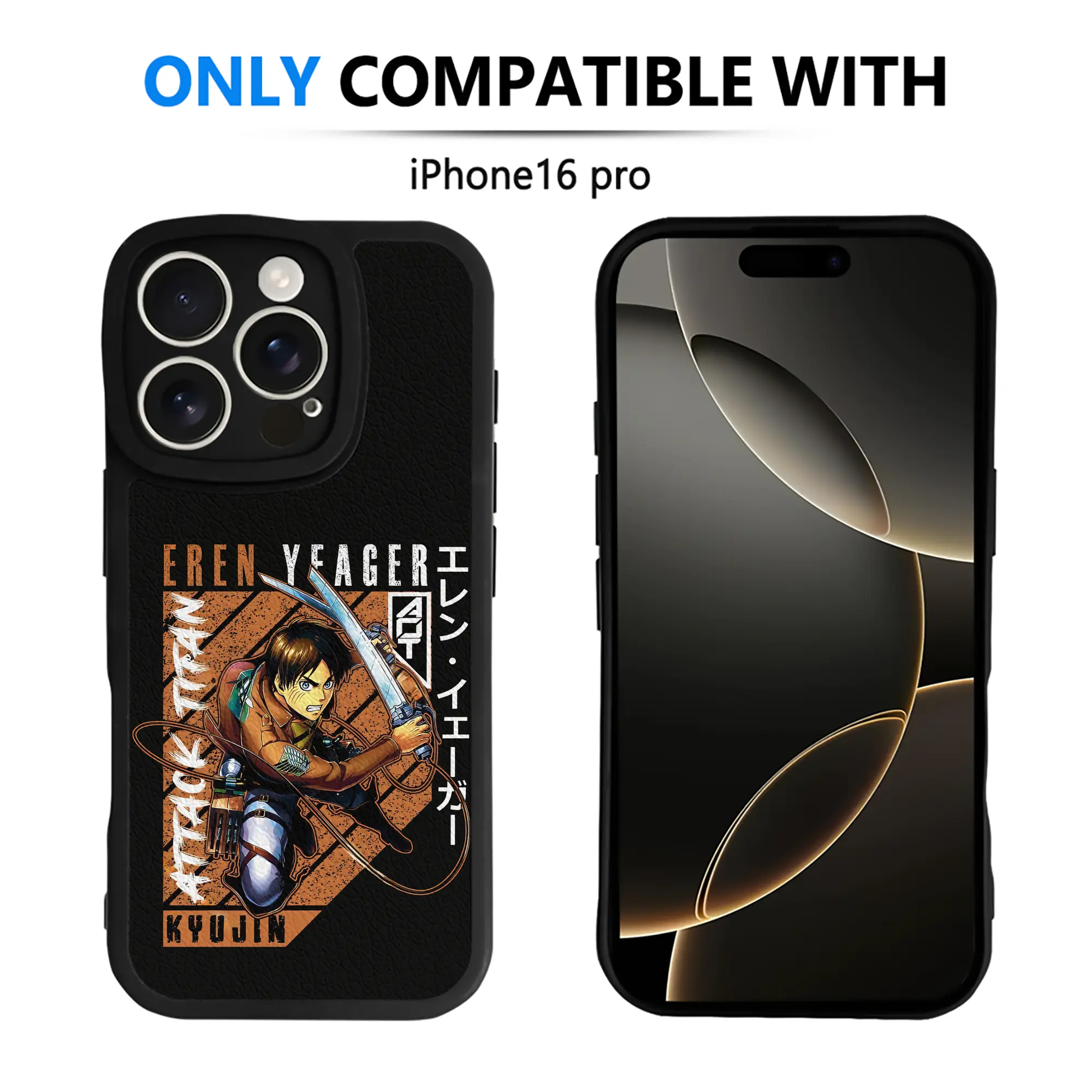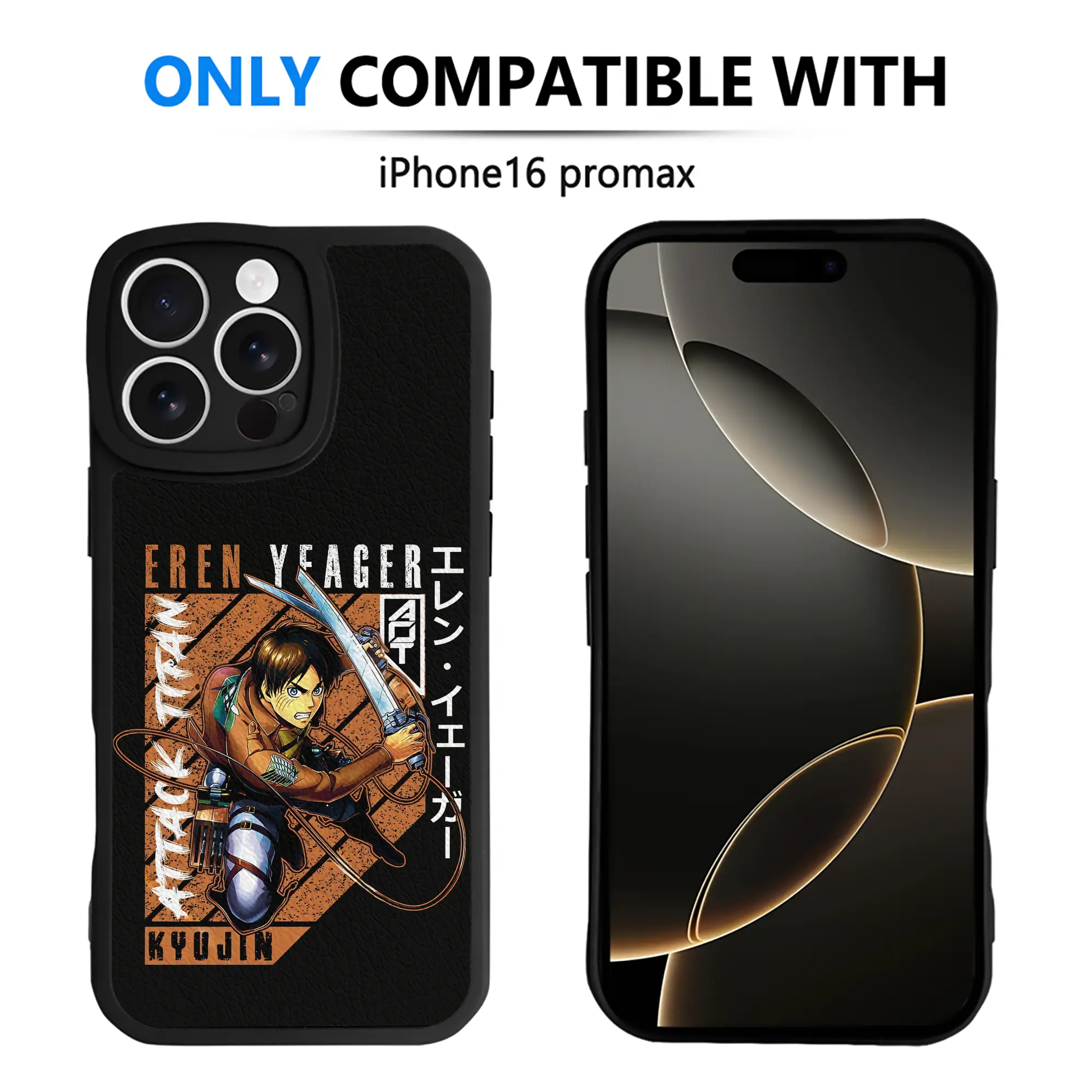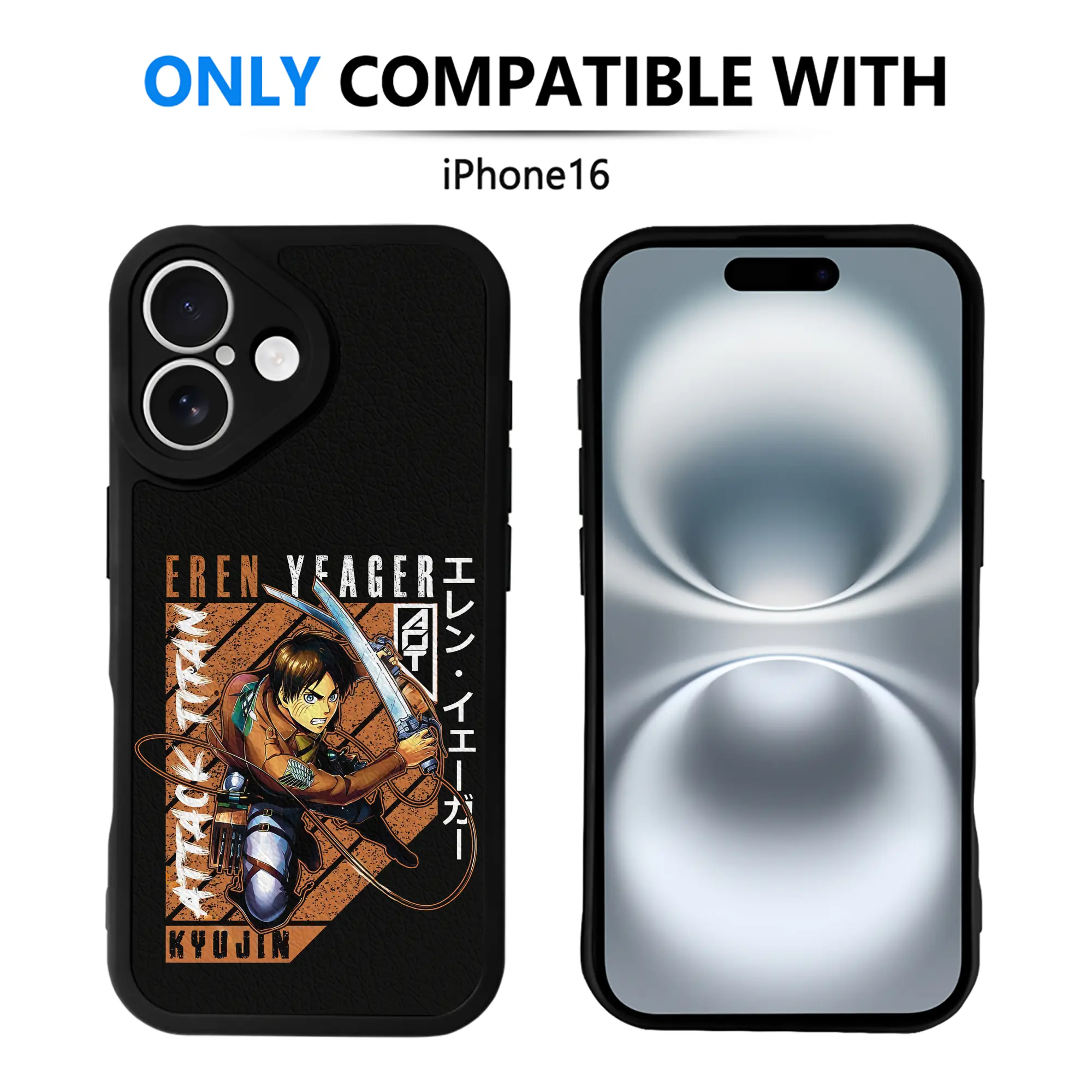 進撃の巨人 グッズ エレン・イェーガー - IPhone 16シリーズ対応 ・ シリコンスマホケース ・ レザー調 ・ 高精度フィット ・ 耐衝撃 ・ ワイヤレス充電対応 ・ 精密カット