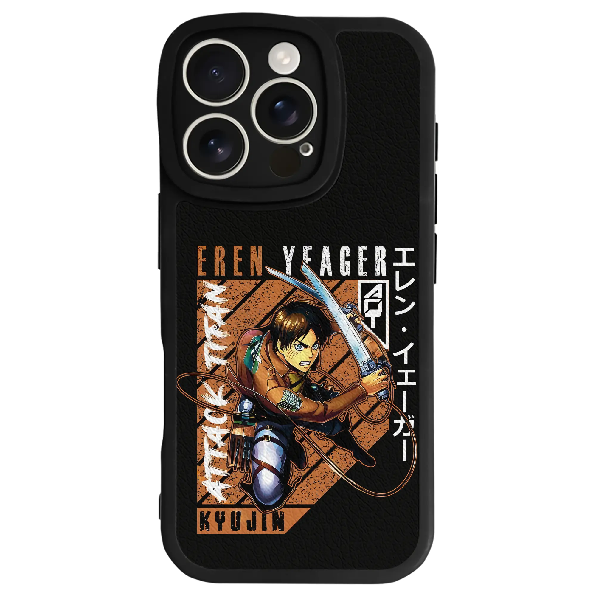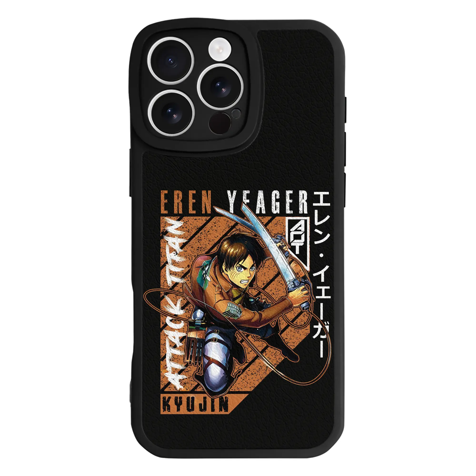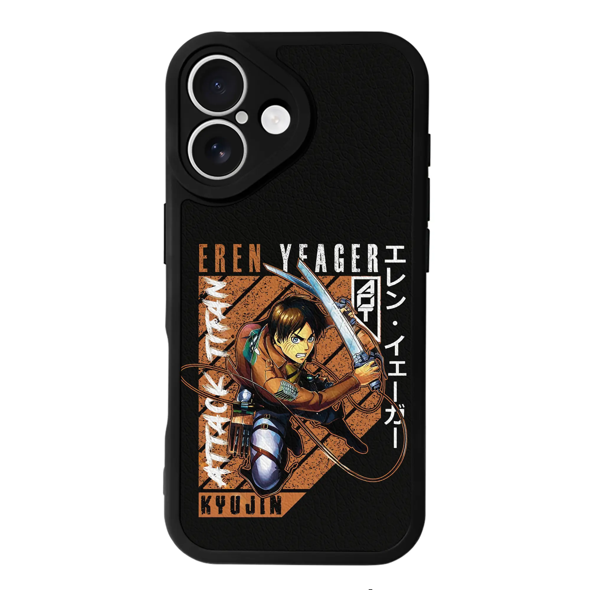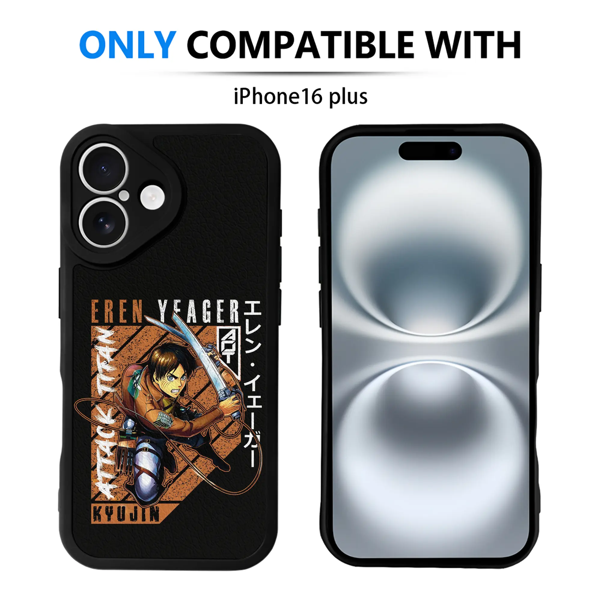 進撃の巨人 グッズ エレン・イェーガー - IPhone 16シリーズ対応 ・ シリコンスマホケース ・ レザー調 ・ 高精度フィット ・ 耐衝撃 ・ ワイヤレス充電対応 ・ 精密カット