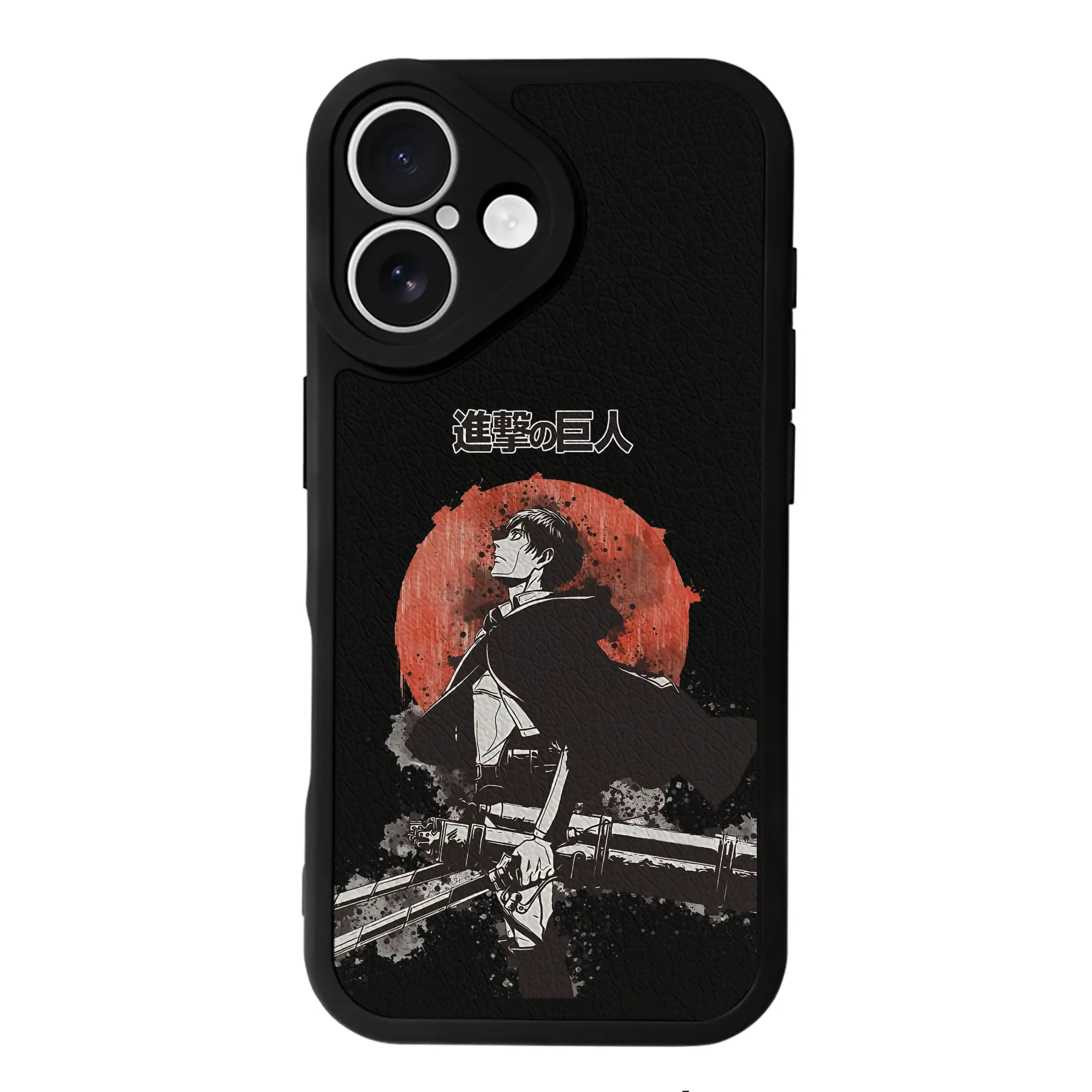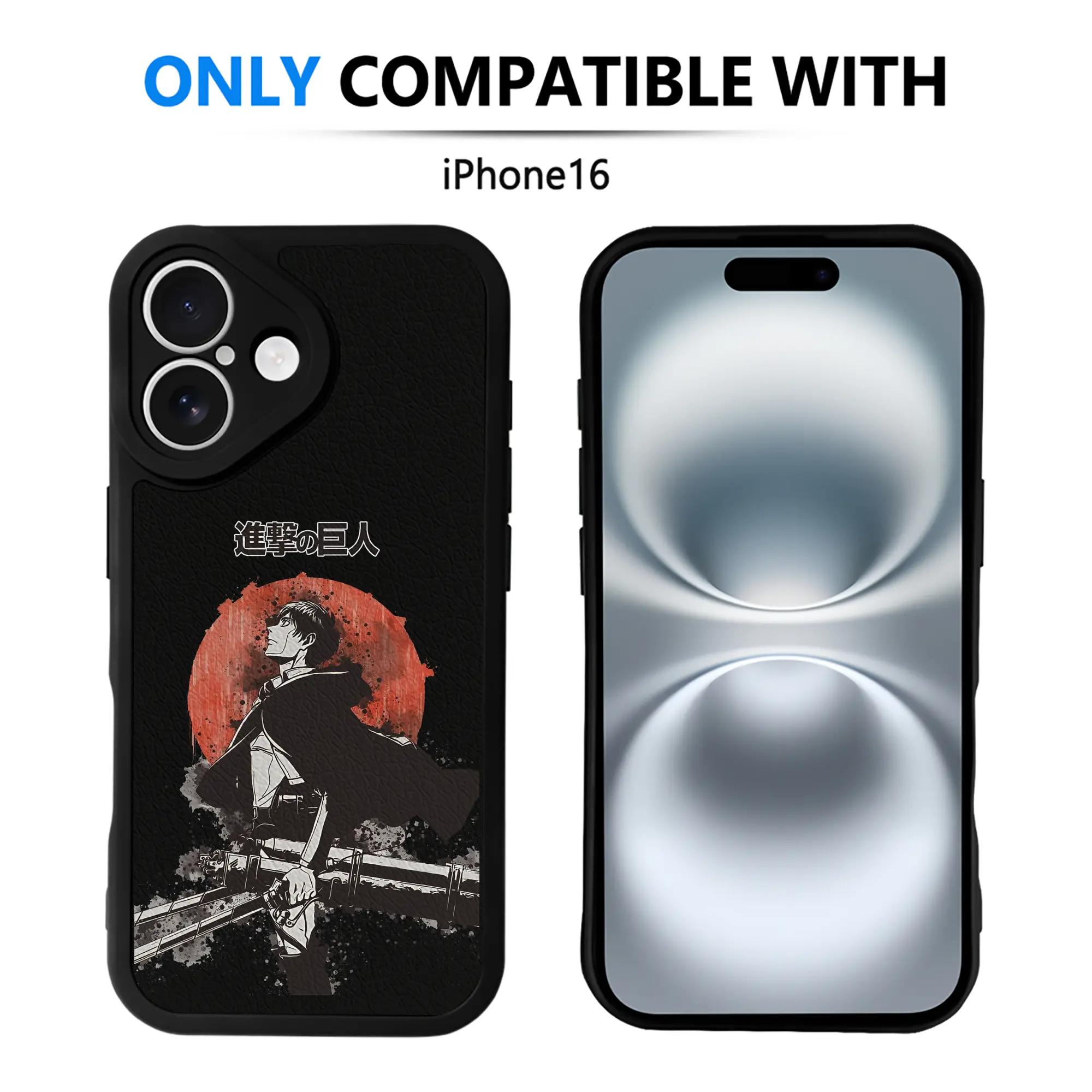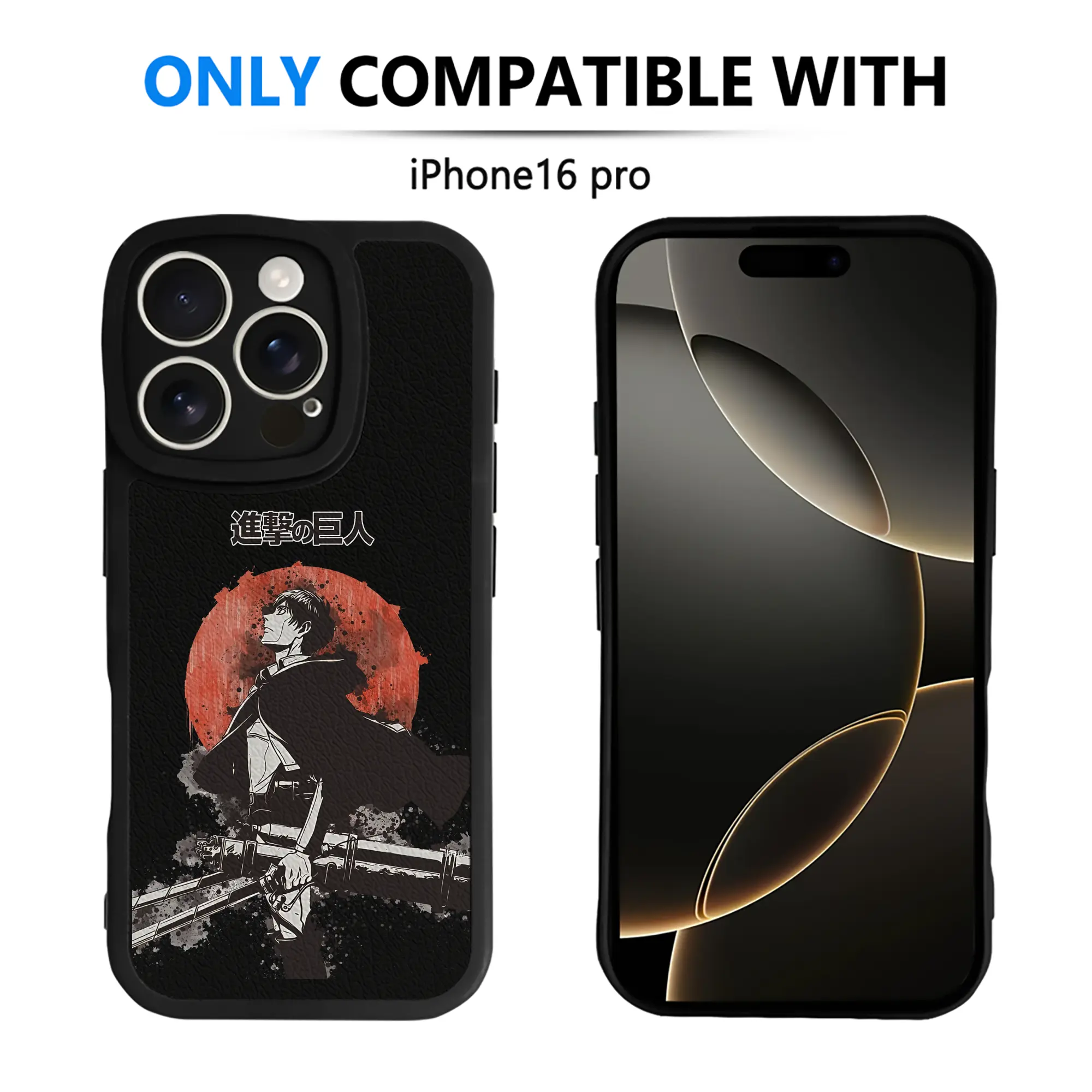 進撃の巨人 グッズ エレン・イェーガー - IPhone 16シリーズ対応 ・ シリコンスマホケース ・ レザー調 ・ 高精度フィット ・ 耐衝撃 ・ ワイヤレス充電対応 ・ 精密カット