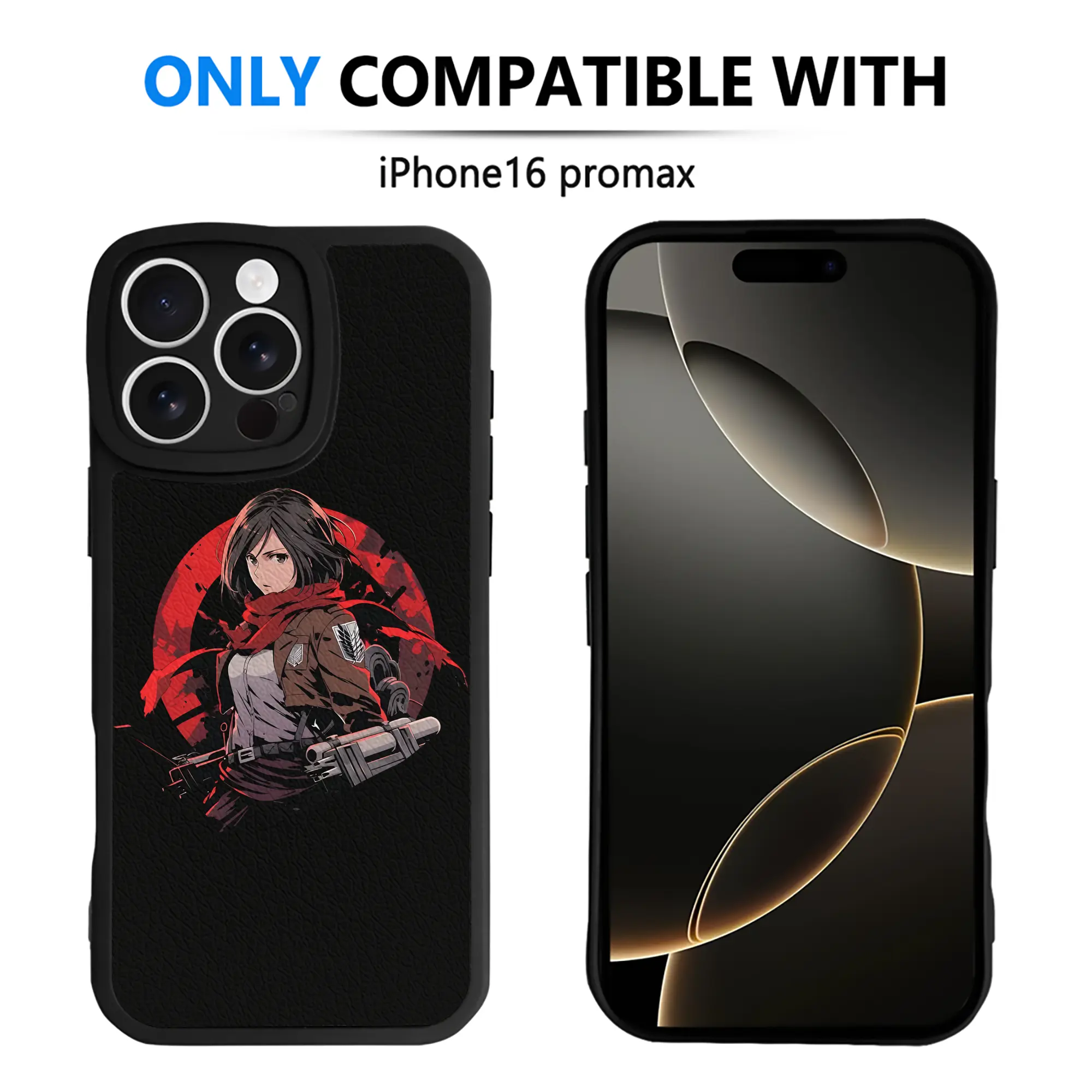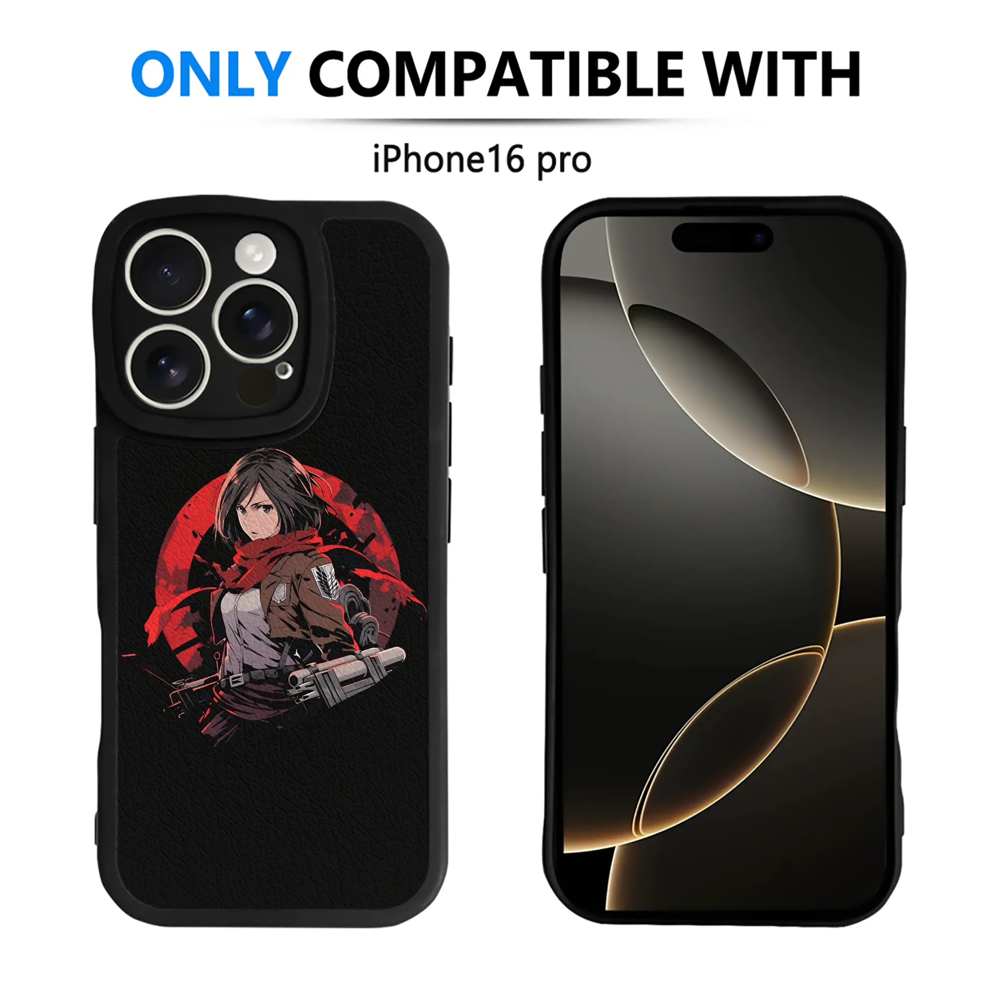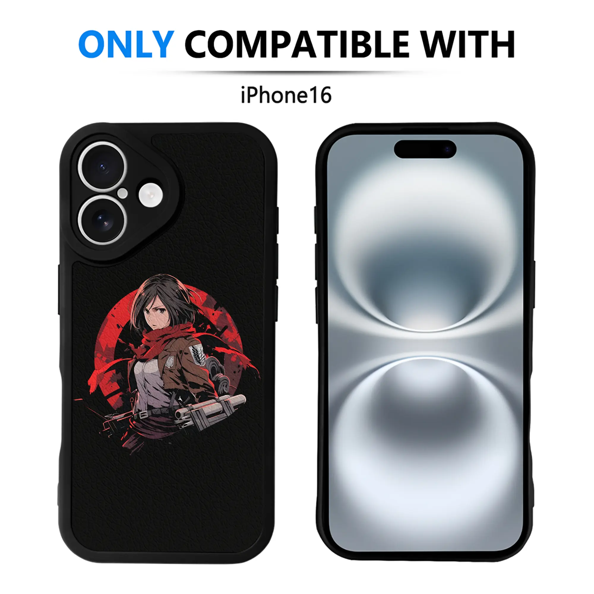 進撃の巨人 グッズ ミカサ・アッカーマン - IPhone 16シリーズ対応 ・ シリコンスマホケース ・ レザー調 ・ 高精度フィット ・ 耐衝撃 ・ ワイヤレス充電対応 ・ 精密カット