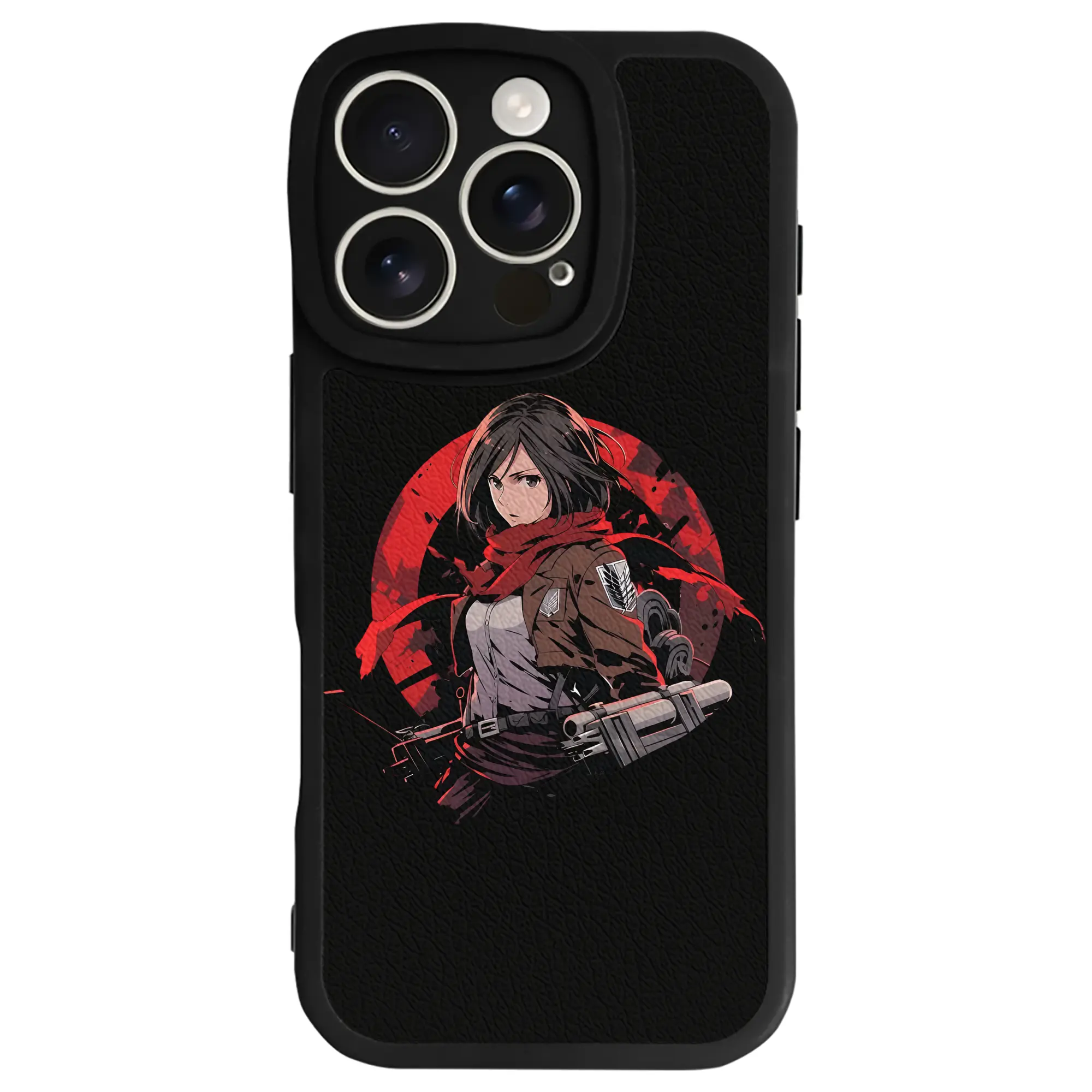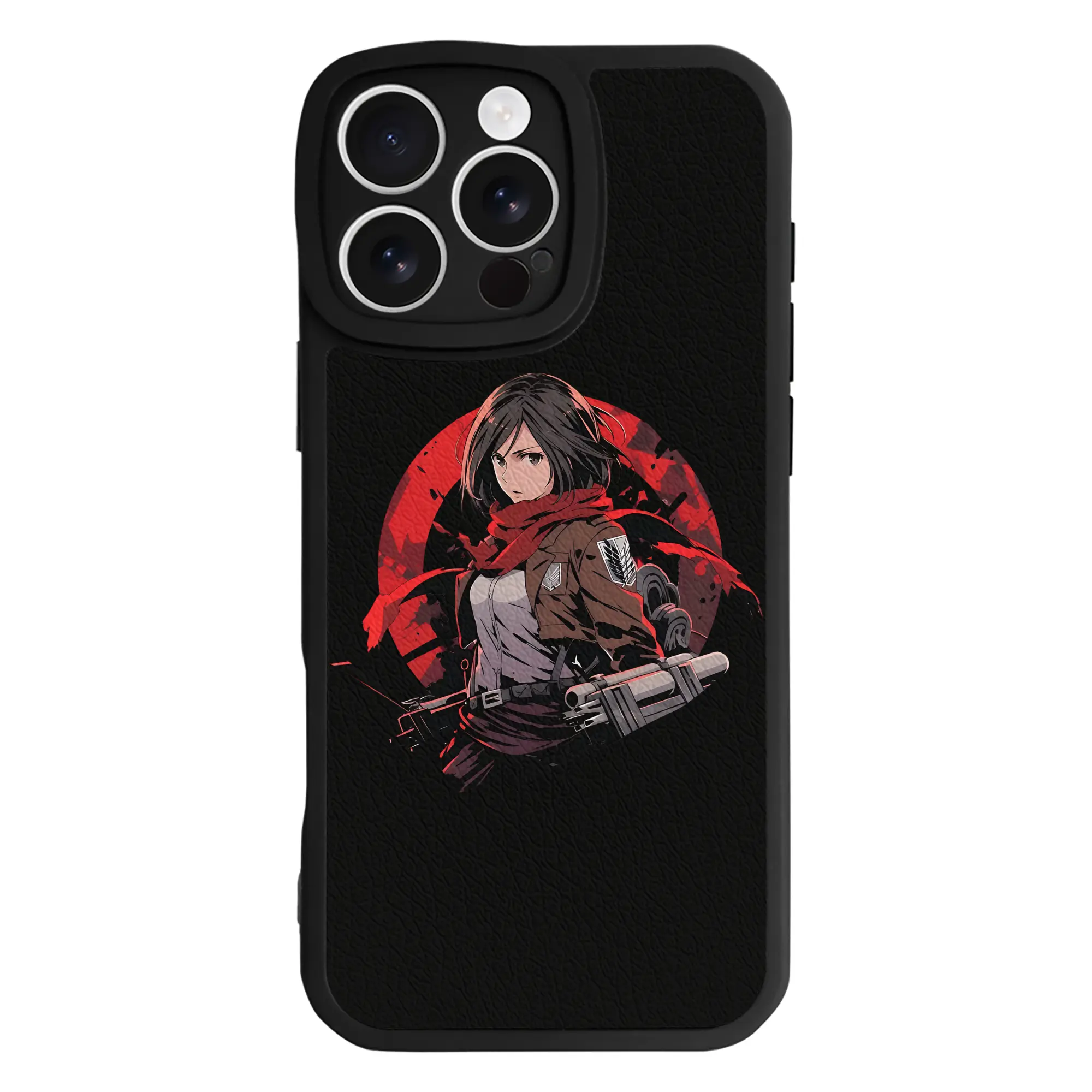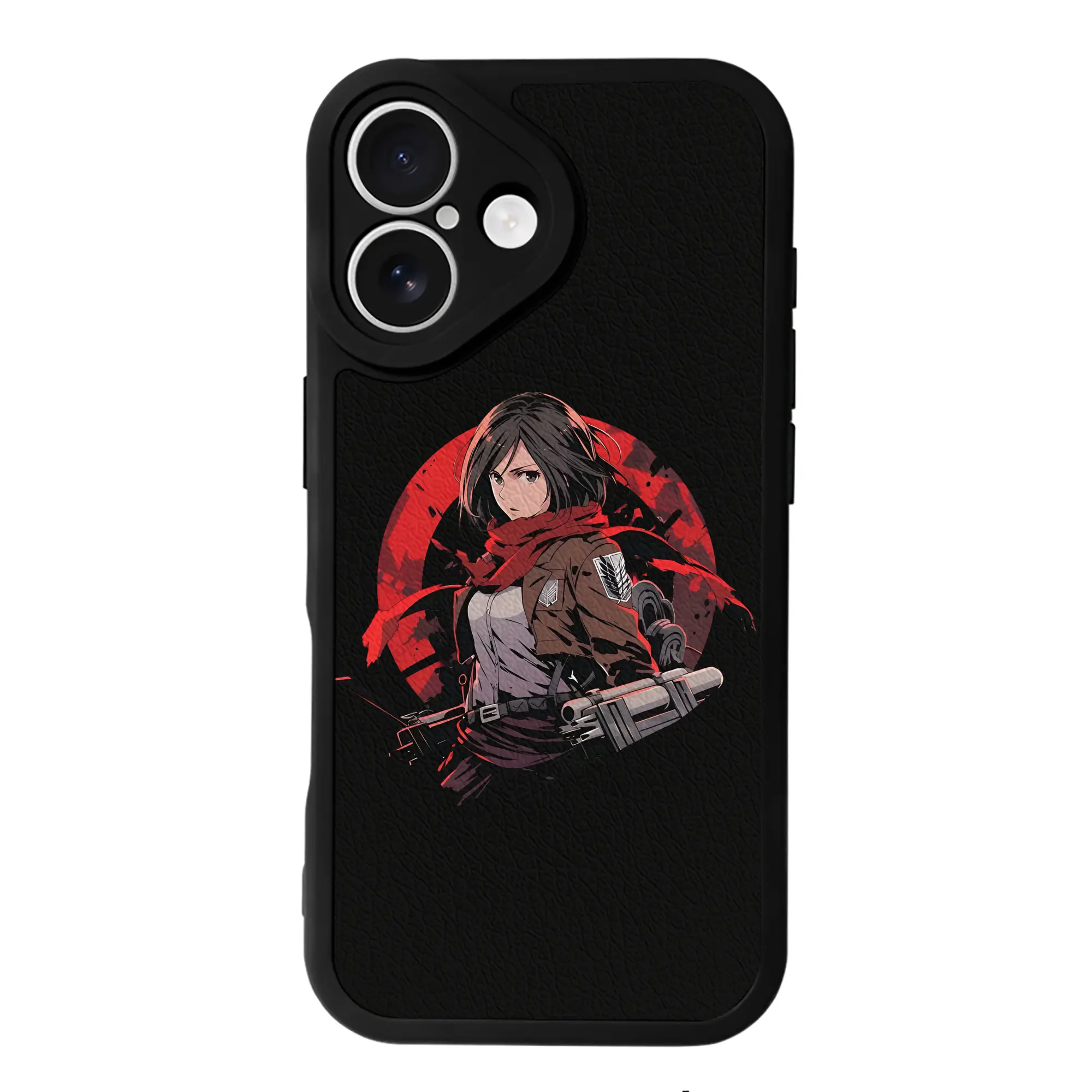 進撃の巨人 グッズ ミカサ・アッカーマン - IPhone 16シリーズ対応 ・ シリコンスマホケース ・ レザー調 ・ 高精度フィット ・ 耐衝撃 ・ ワイヤレス充電対応 ・ 精密カット
