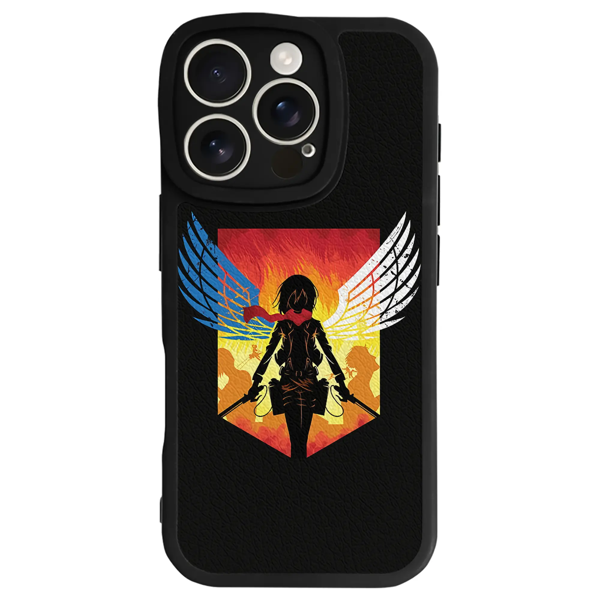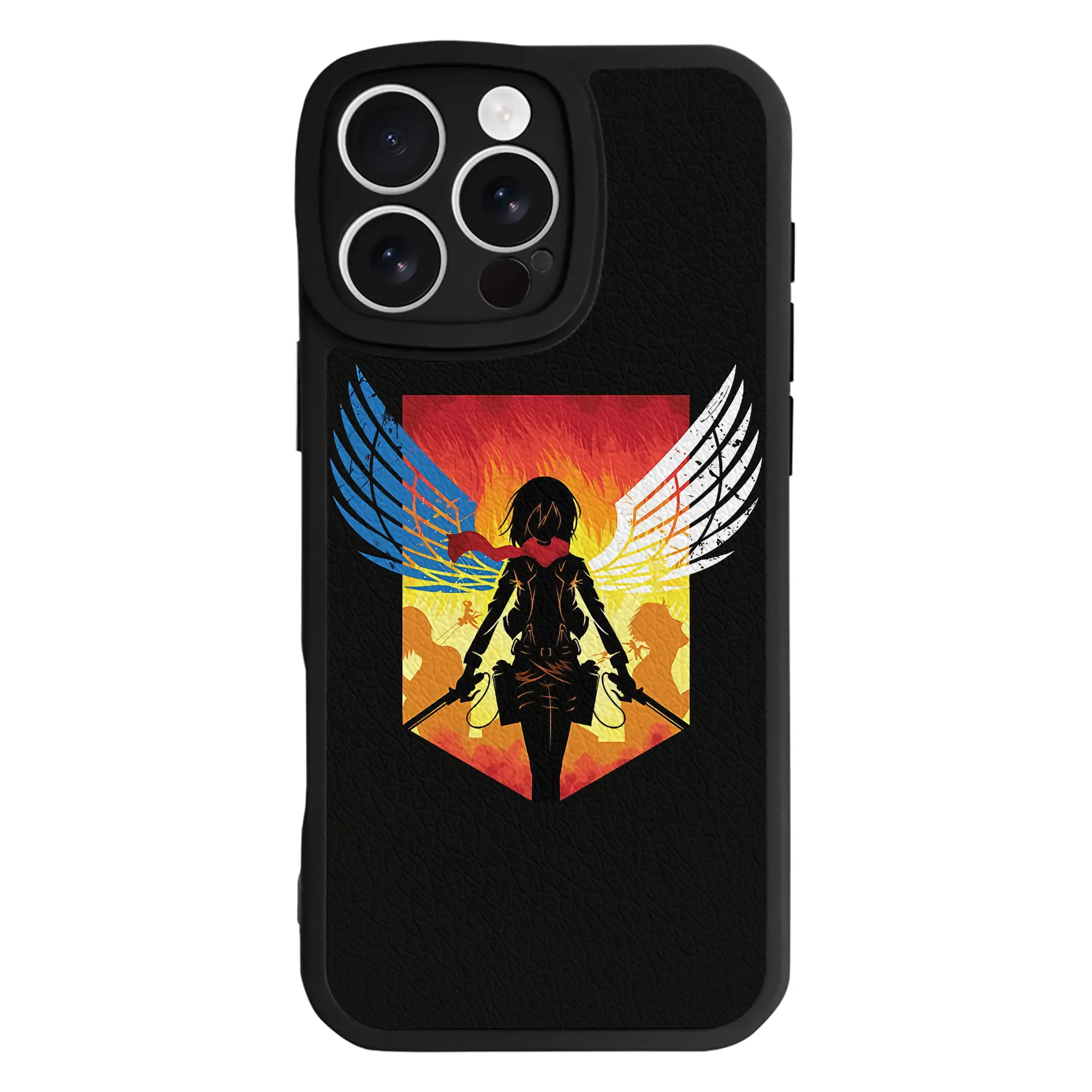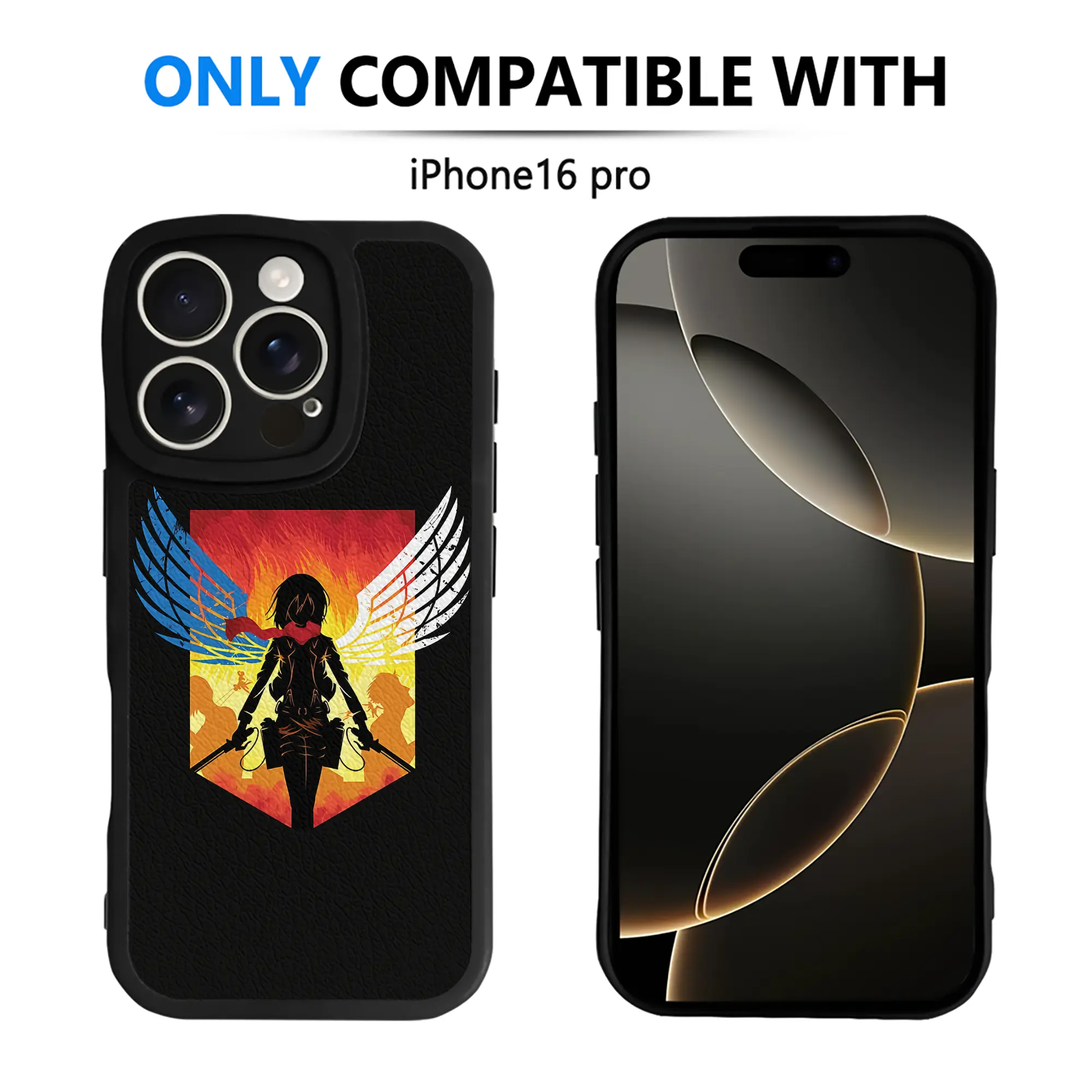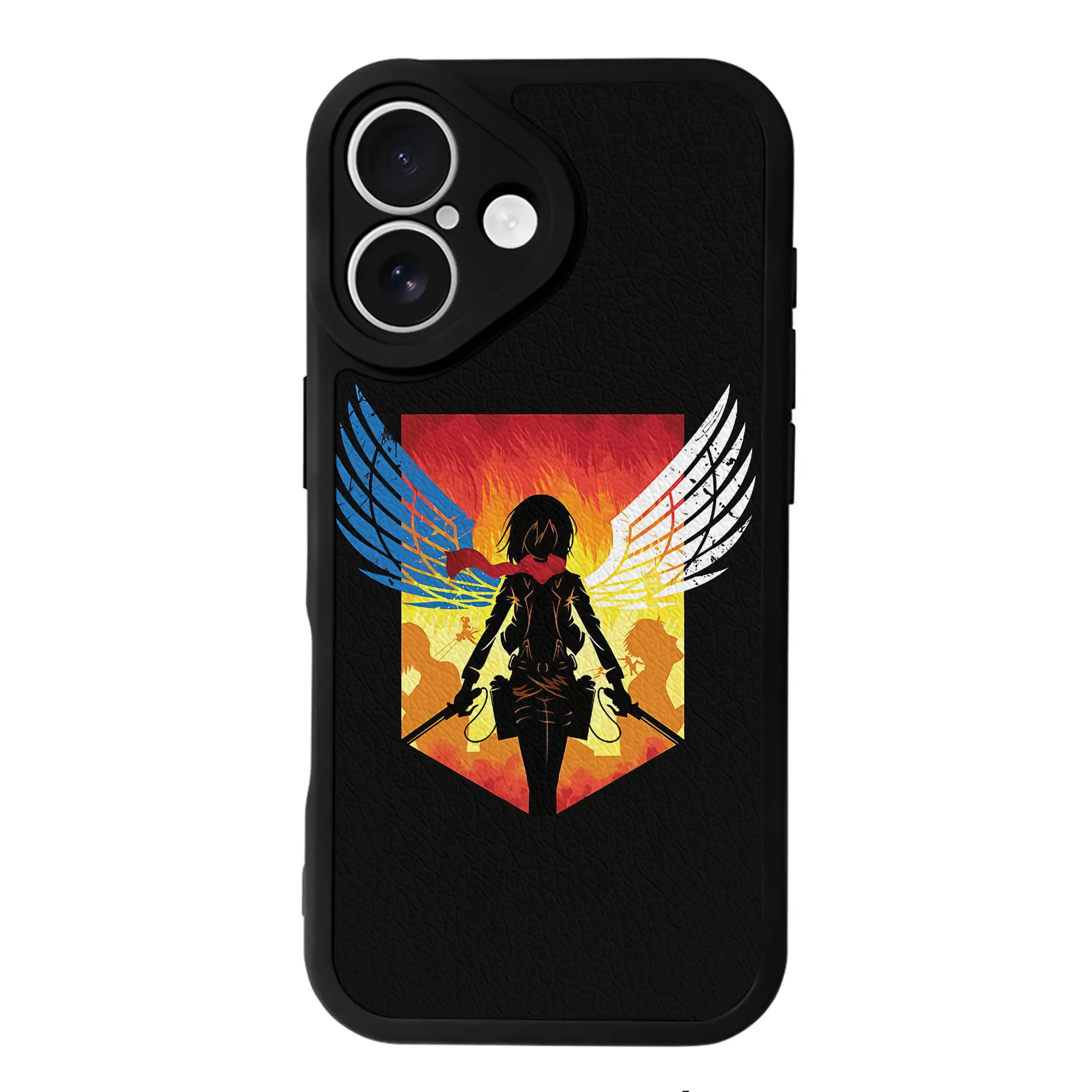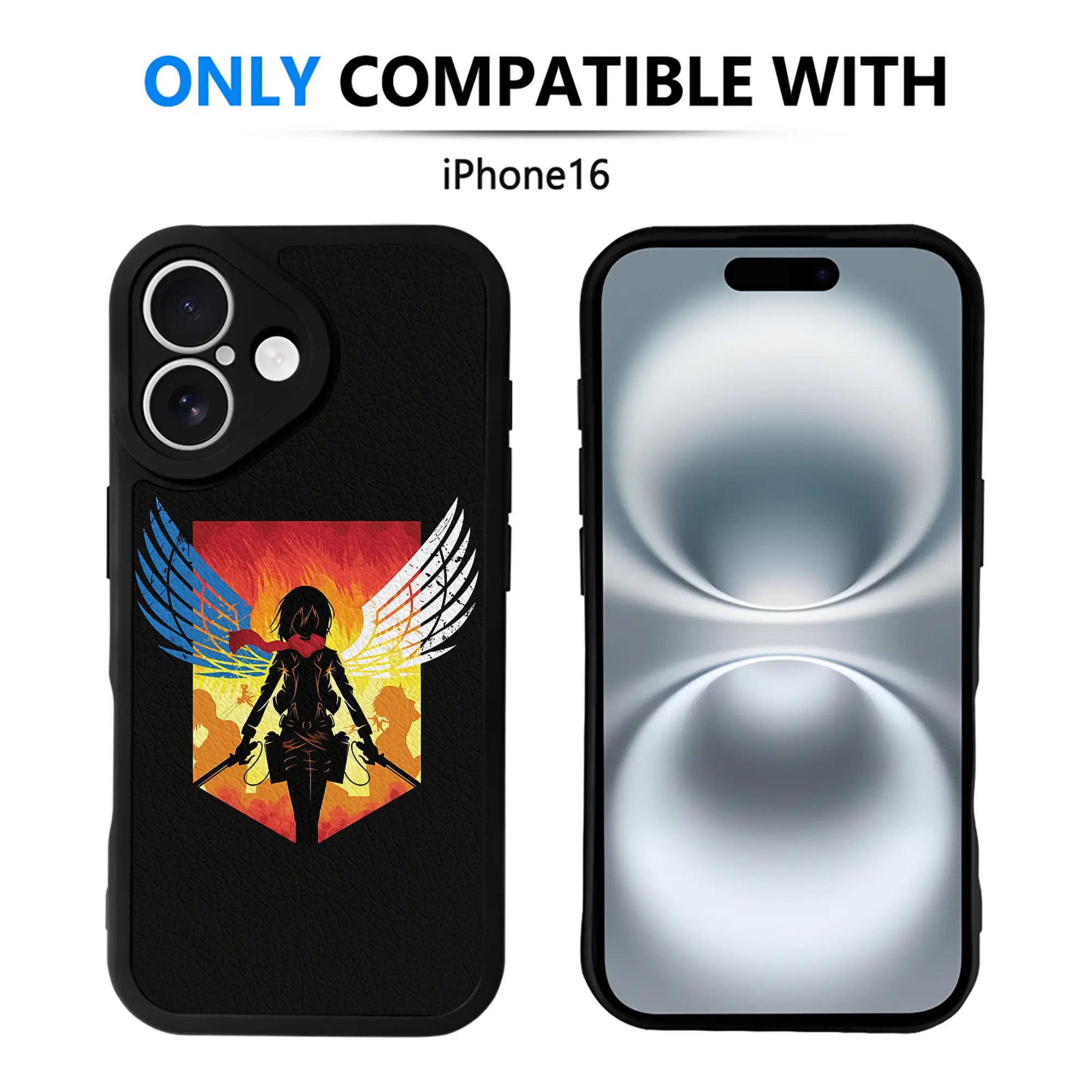 進撃の巨人 グッズ ミカサ・アッカーマン - IPhone 16シリーズ対応 ・ シリコンスマホケース ・ レザー調 ・ 高精度フィット ・ 耐衝撃 ・ ワイヤレス充電対応 ・ 精密カット