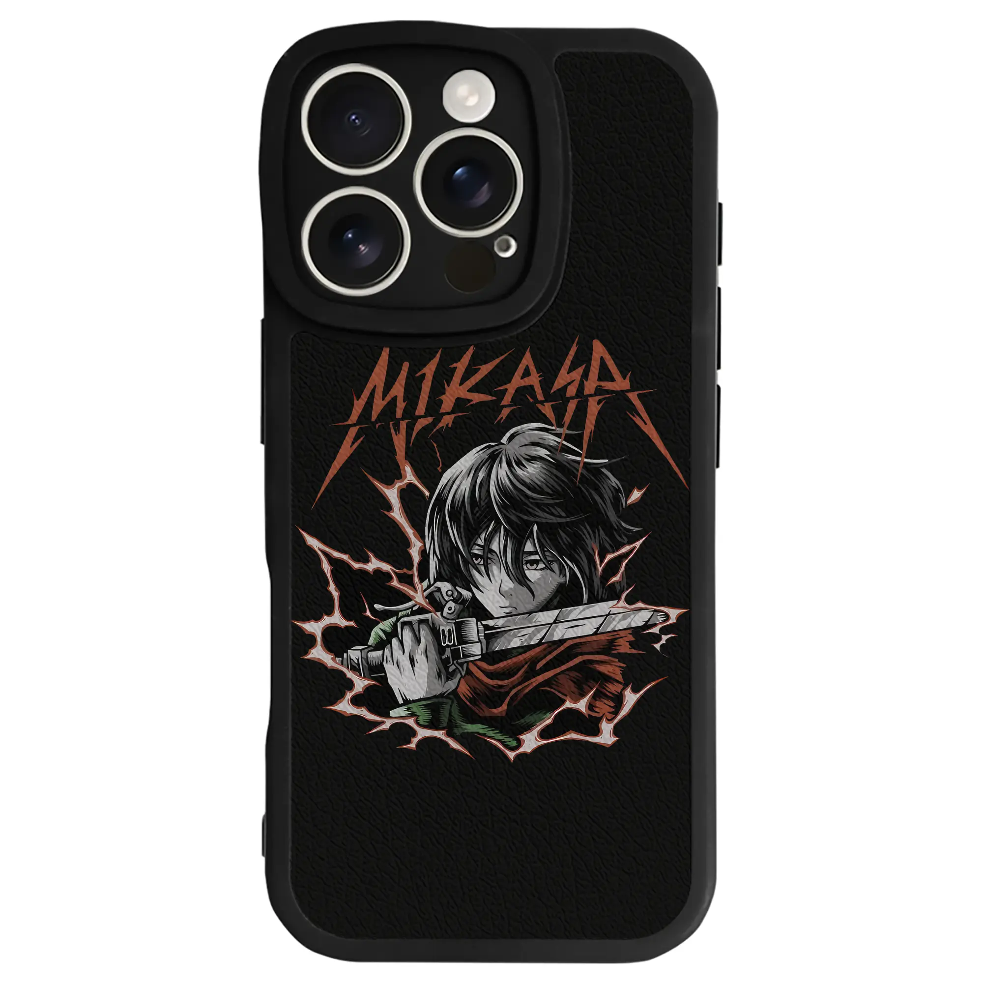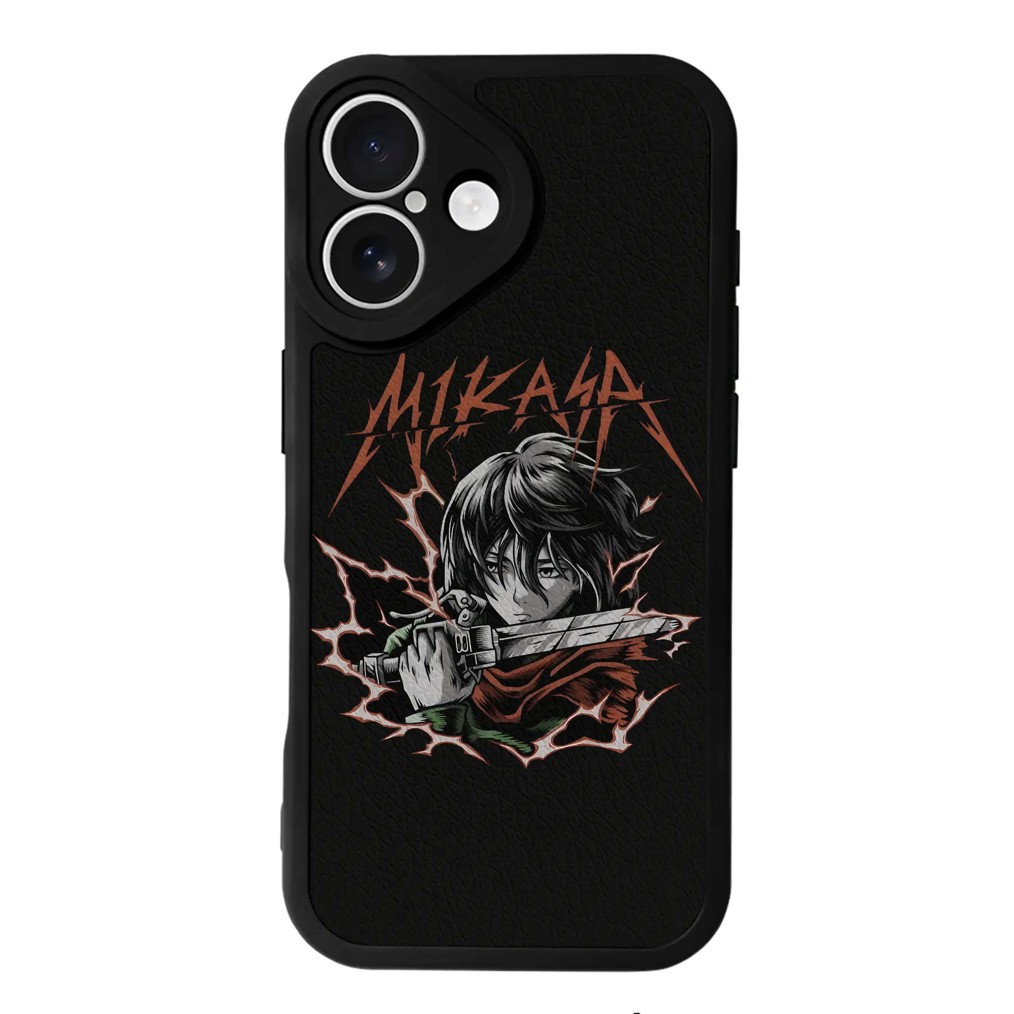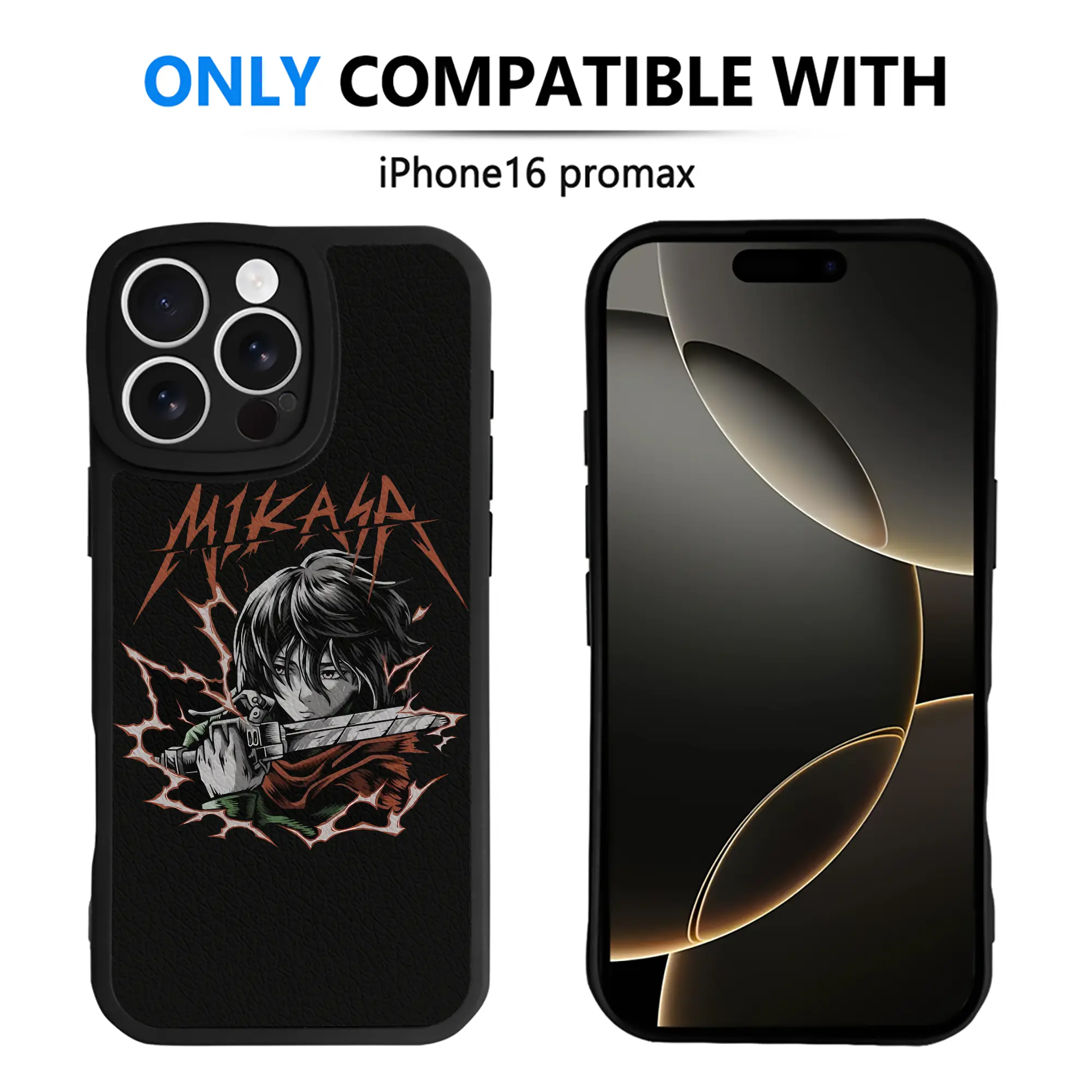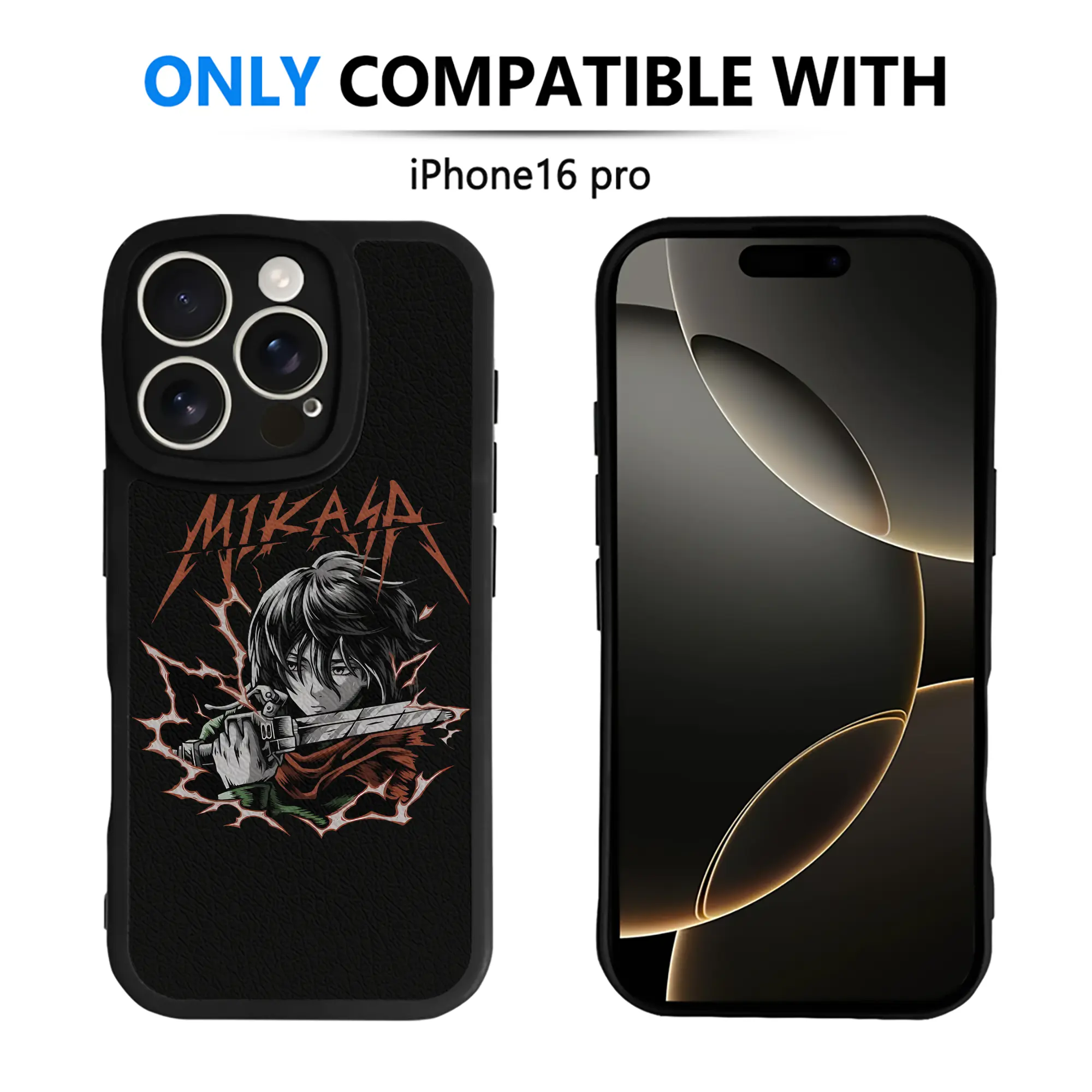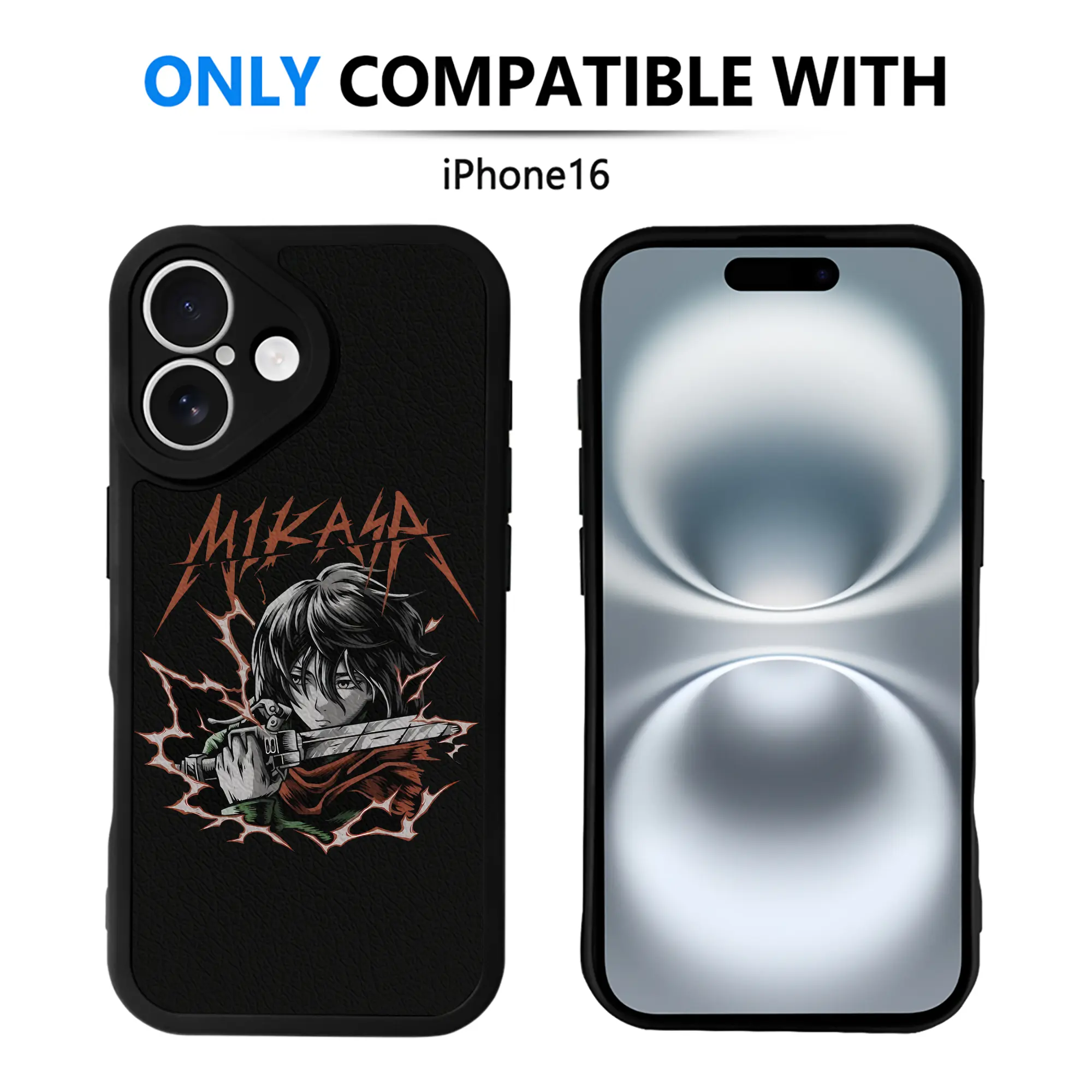進撃の巨人 グッズ ミカサ・アッカーマン - IPhone 16シリーズ対応 ・ シリコンスマホケース ・ レザー調 ・ 高精度フィット ・ 耐衝撃 ・ ワイヤレス充電対応 ・ 精密カット