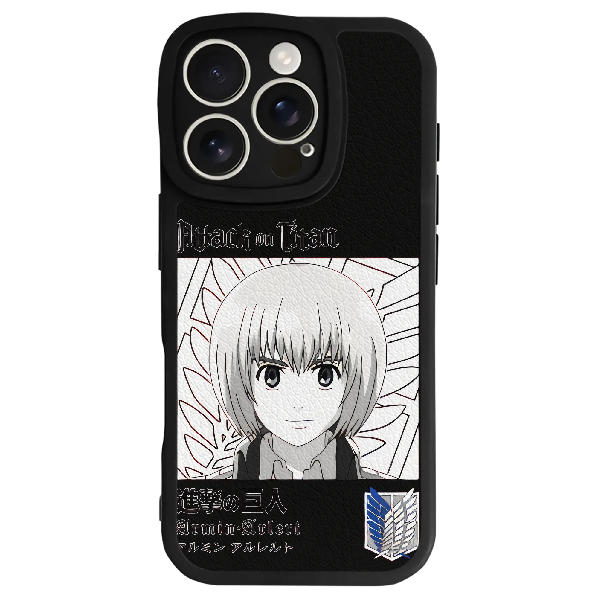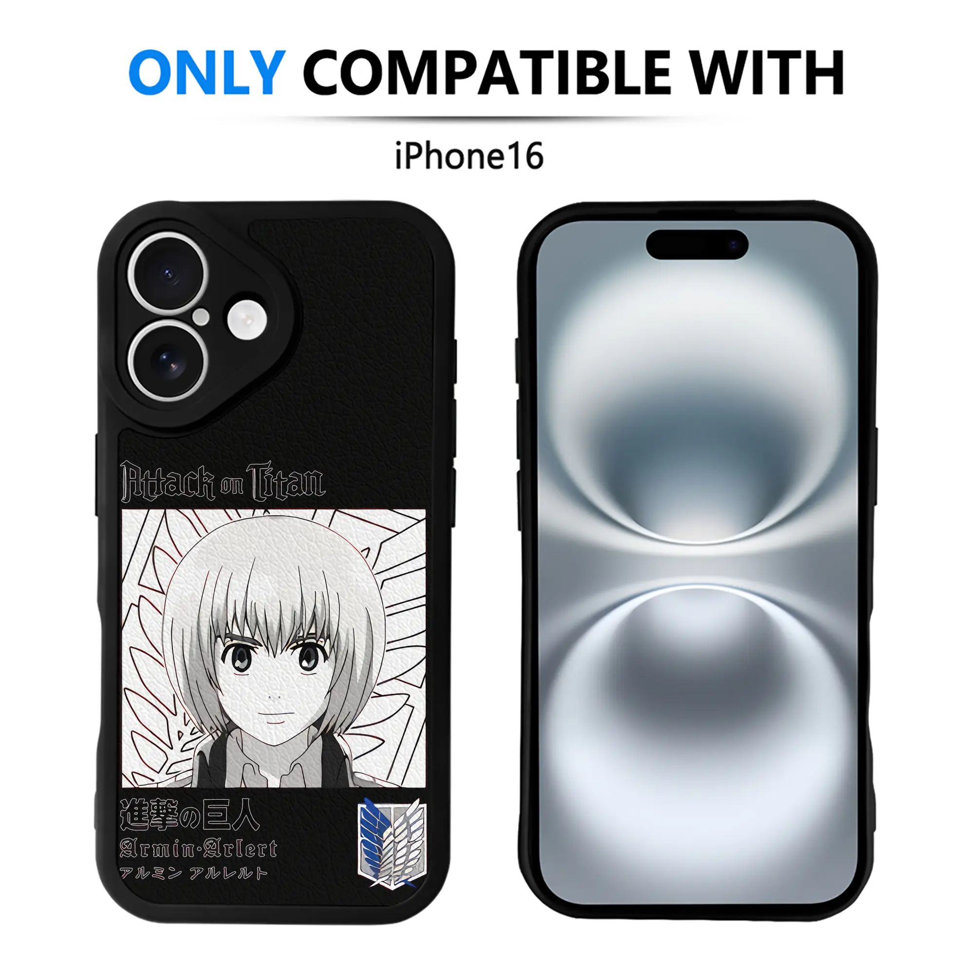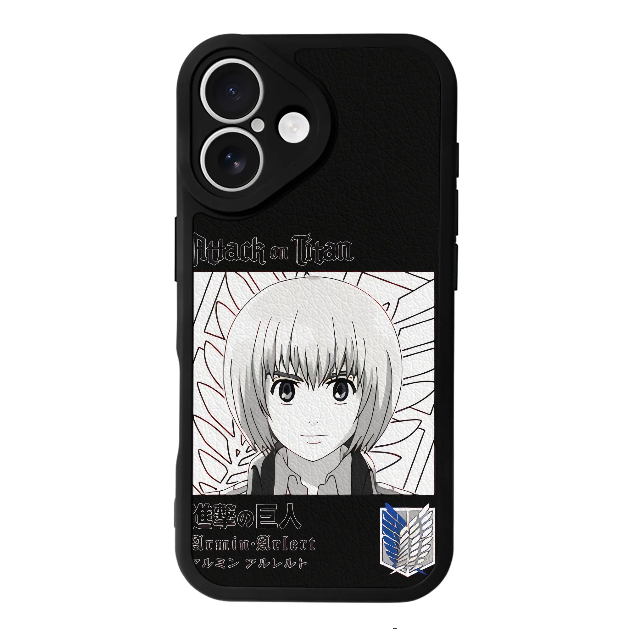 進撃の巨人 グッズ アルミン・アルレルト - IPhone 16シリーズ対応 ・ シリコンスマホケース ・ レザー調 ・ 高精度フィット ・ 耐衝撃 ・ ワイヤレス充電対応 ・ 精密カット