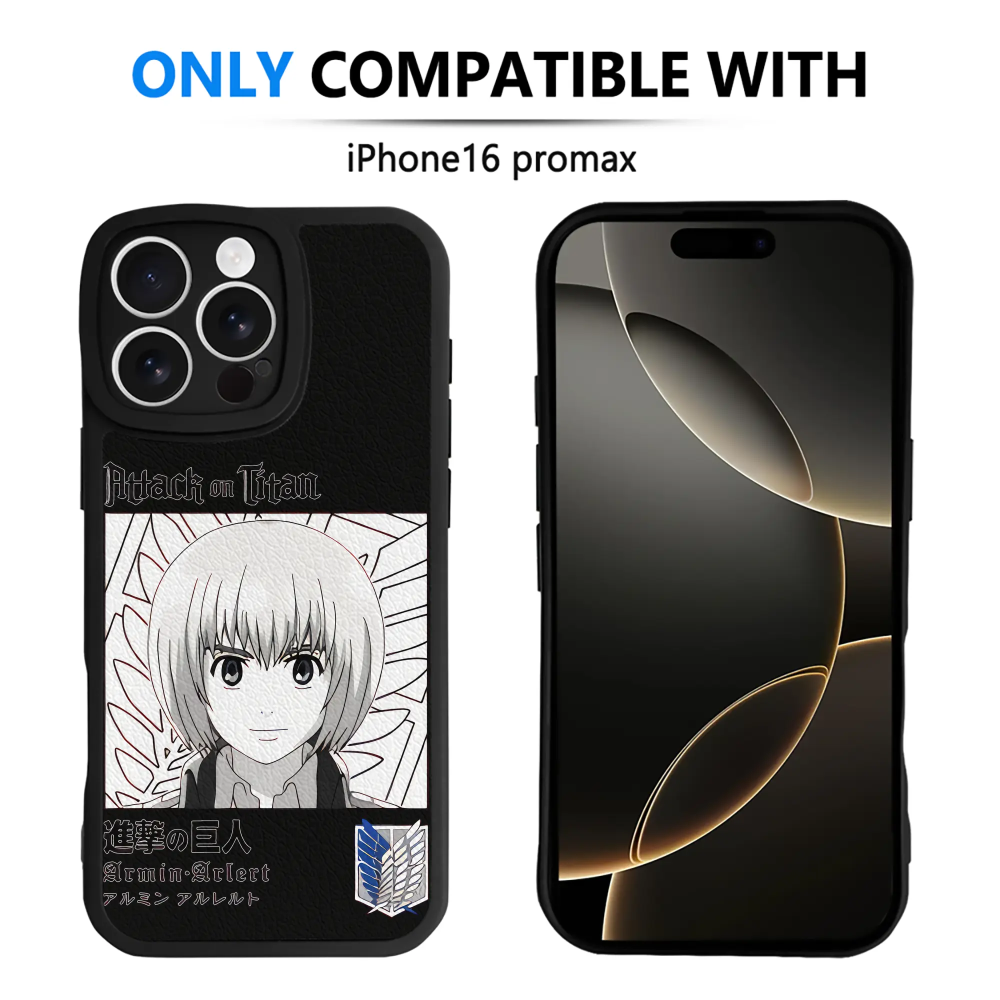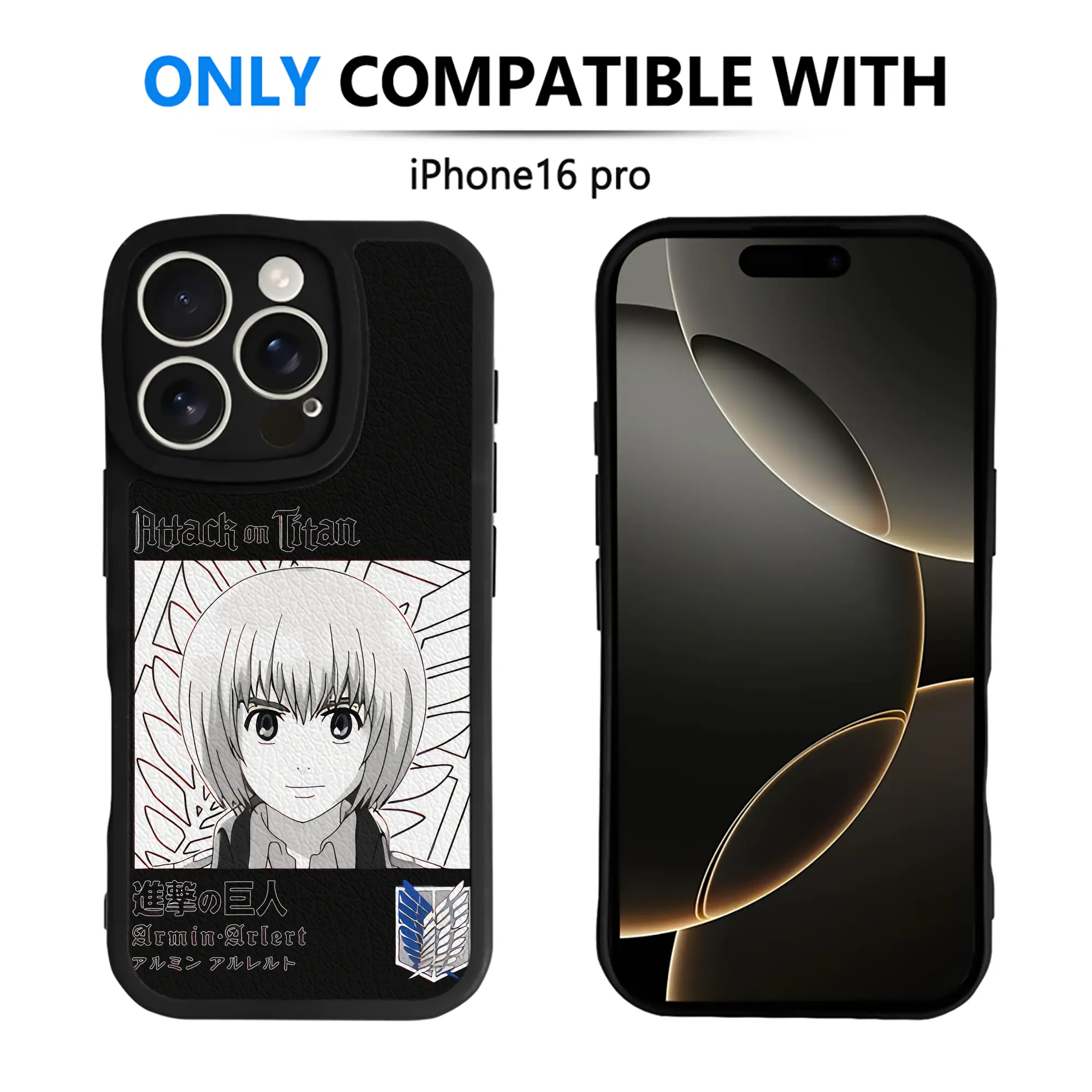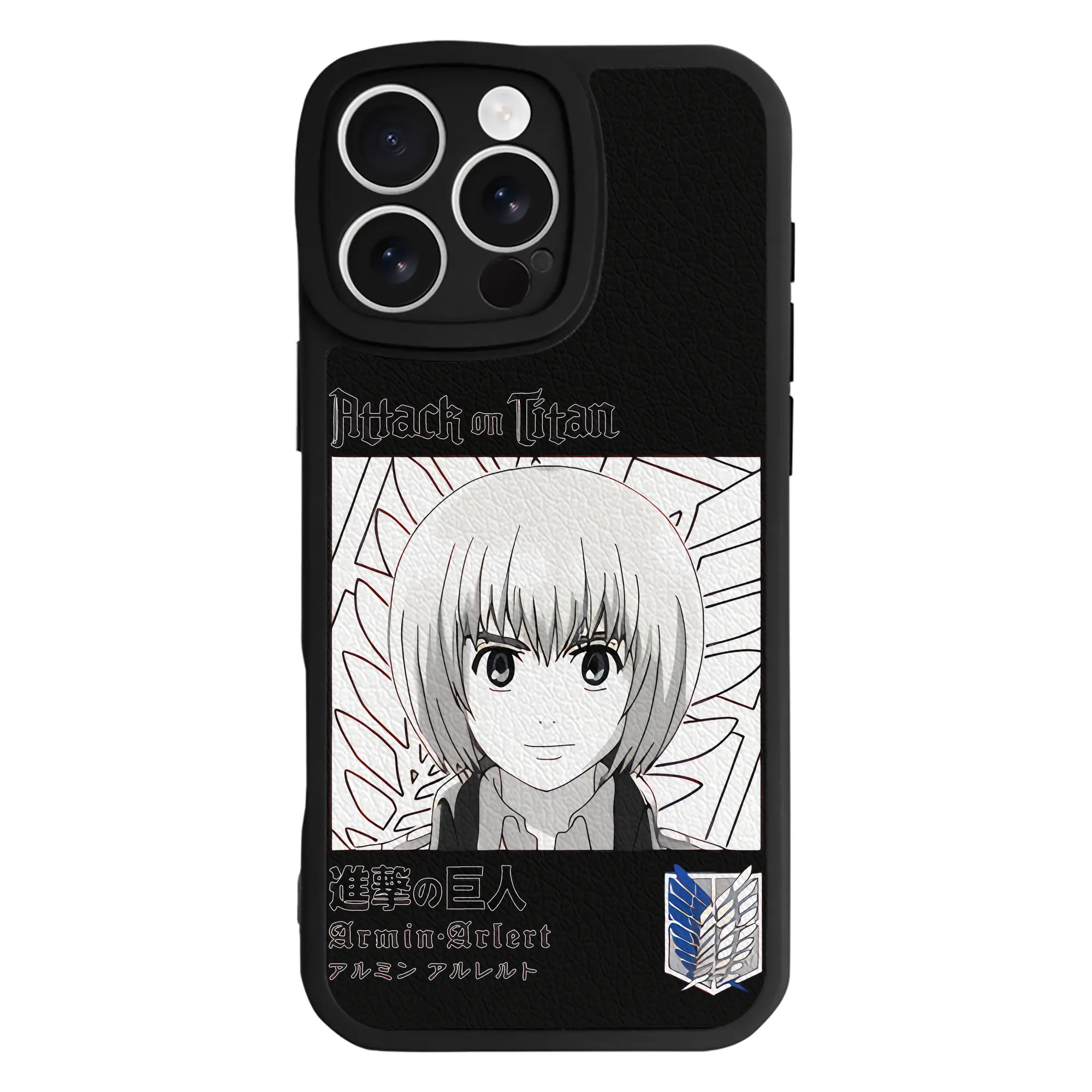 進撃の巨人 グッズ アルミン・アルレルト - IPhone 16シリーズ対応 ・ シリコンスマホケース ・ レザー調 ・ 高精度フィット ・ 耐衝撃 ・ ワイヤレス充電対応 ・ 精密カット