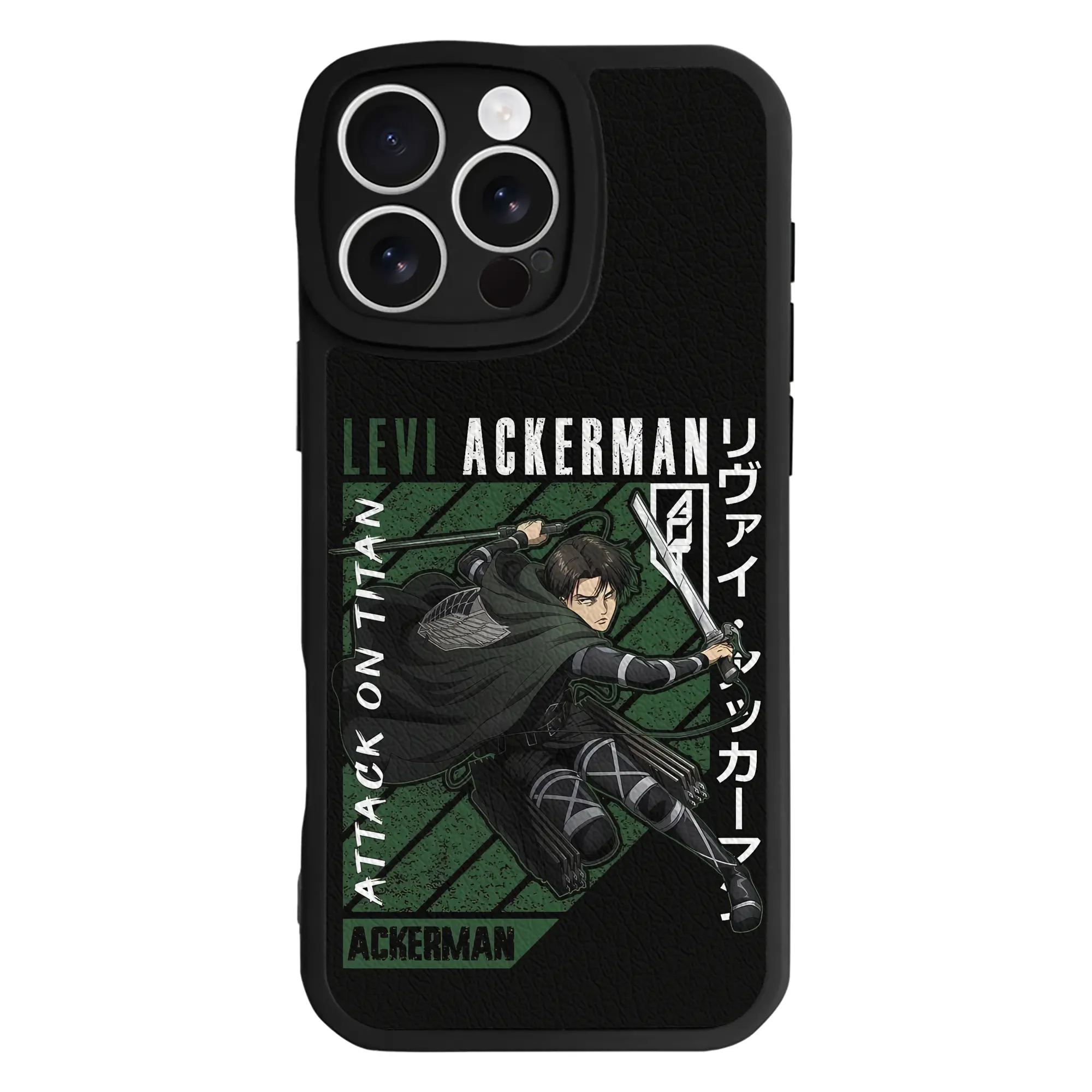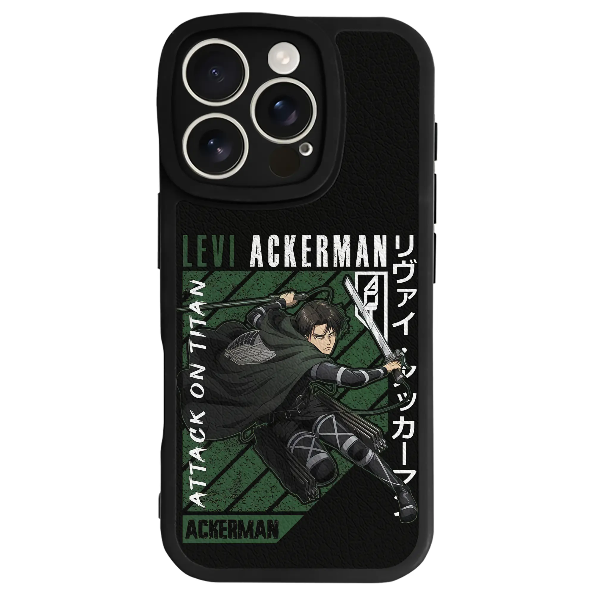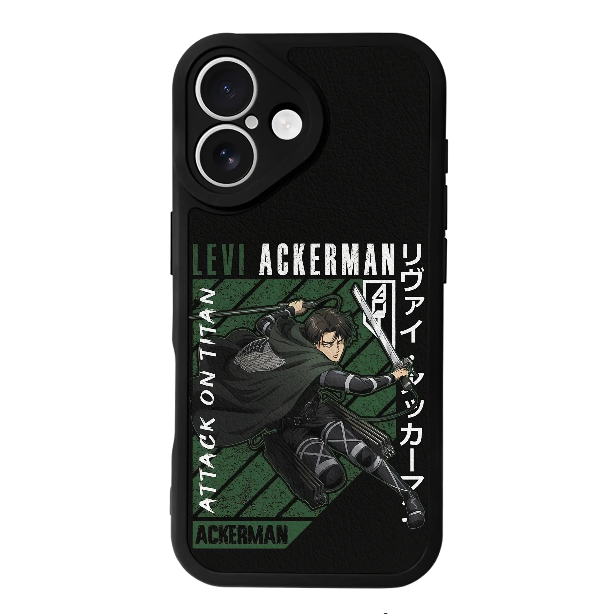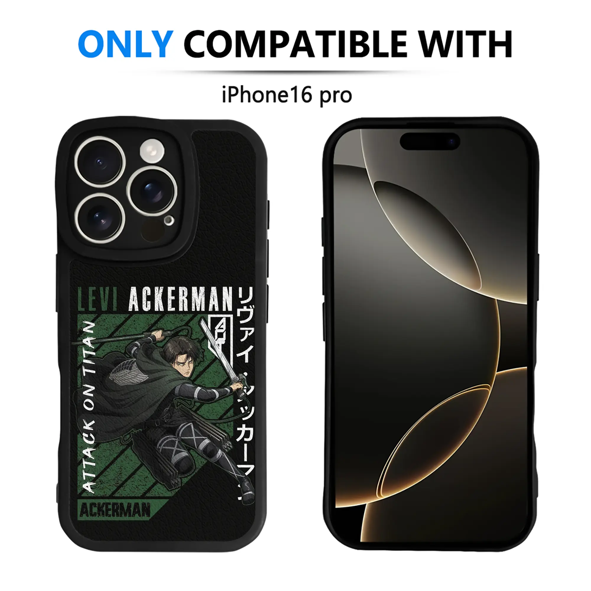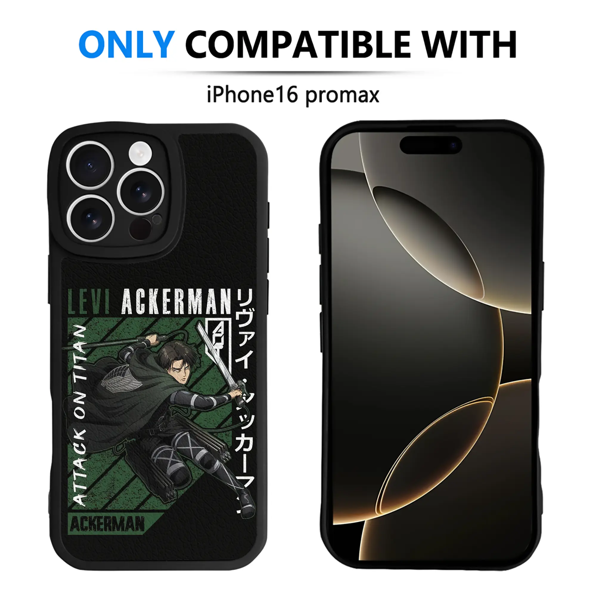 進撃の巨人 グッズ リヴァイ・アッカーマン - IPhone 16シリーズ対応 ・ シリコンスマホケース ・ レザー調 ・ 高精度フィット ・ 耐衝撃 ・ ワイヤレス充電対応 ・ 精密カット