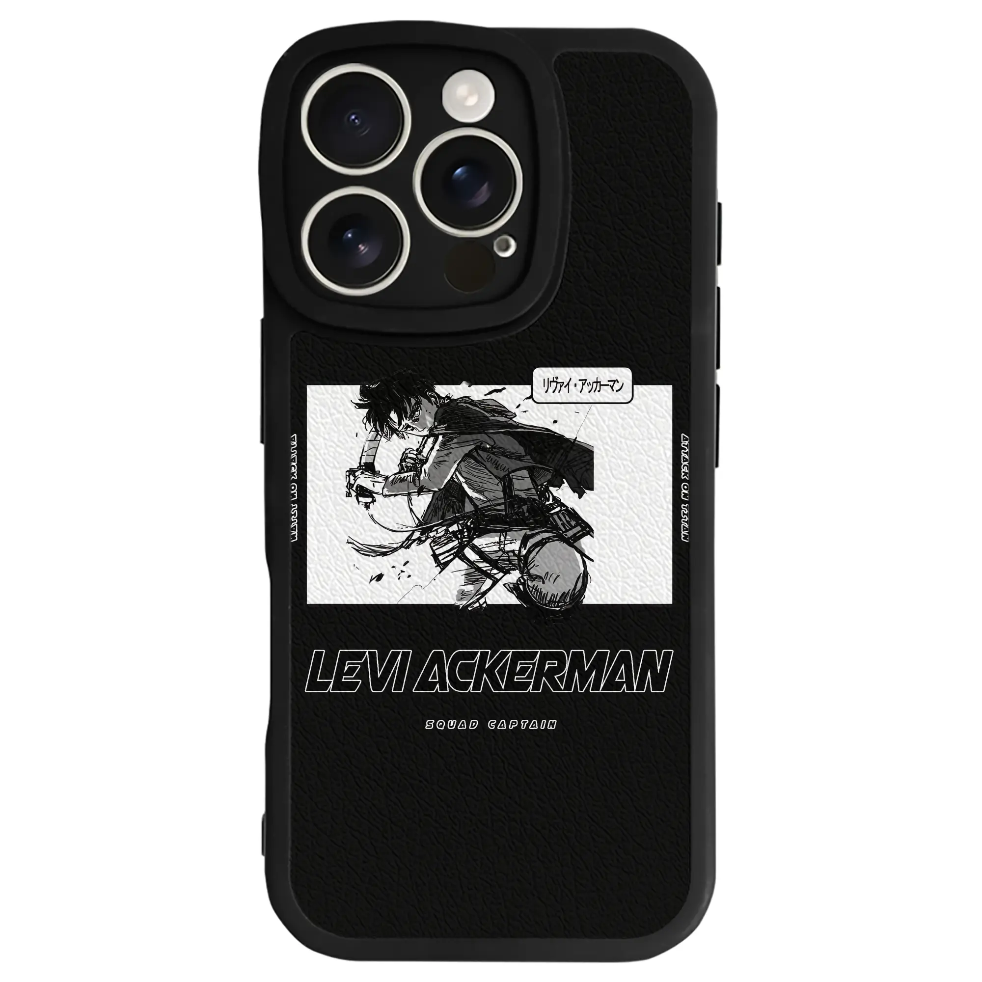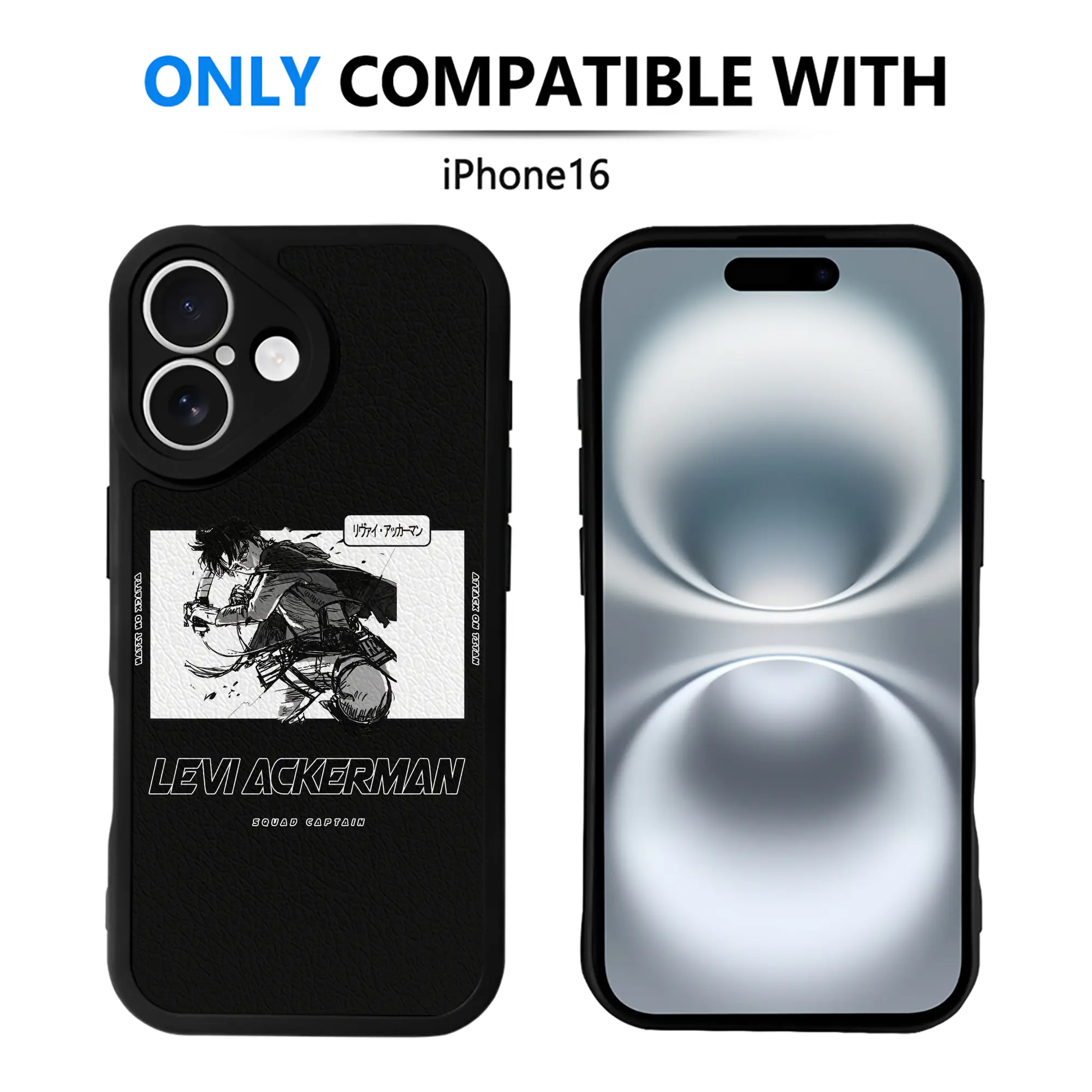 進撃の巨人 グッズ リヴァイ・アッカーマン - IPhone 16シリーズ対応 ・ シリコンスマホケース ・ レザー調 ・ 高精度フィット ・ 耐衝撃 ・ ワイヤレス充電対応 ・ 精密カット