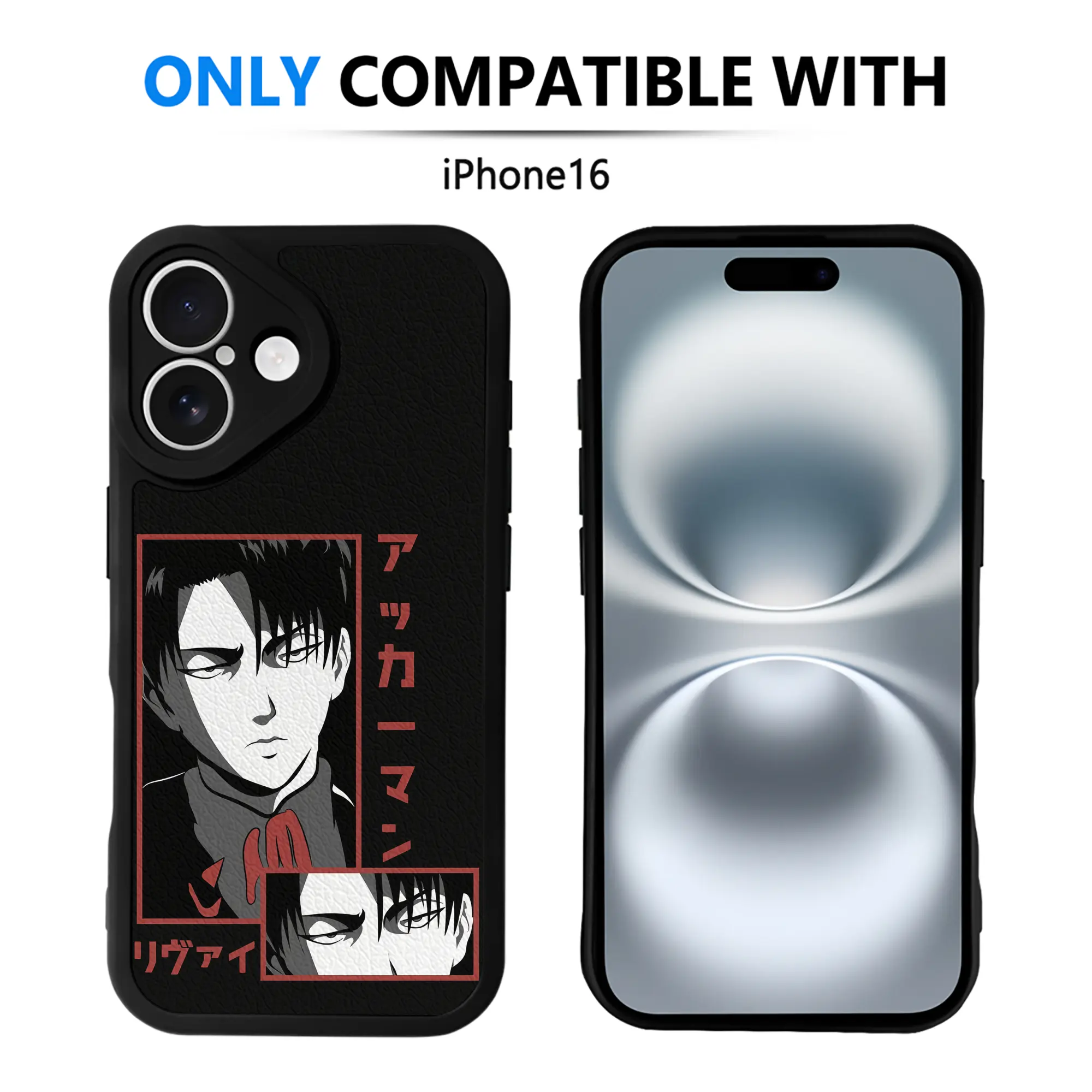 進撃の巨人 グッズ リヴァイ・アッカーマン - IPhone 16シリーズ対応 ・ シリコンスマホケース ・ レザー調 ・ 高精度フィット ・ 耐衝撃 ・ ワイヤレス充電対応 ・ 精密カット
