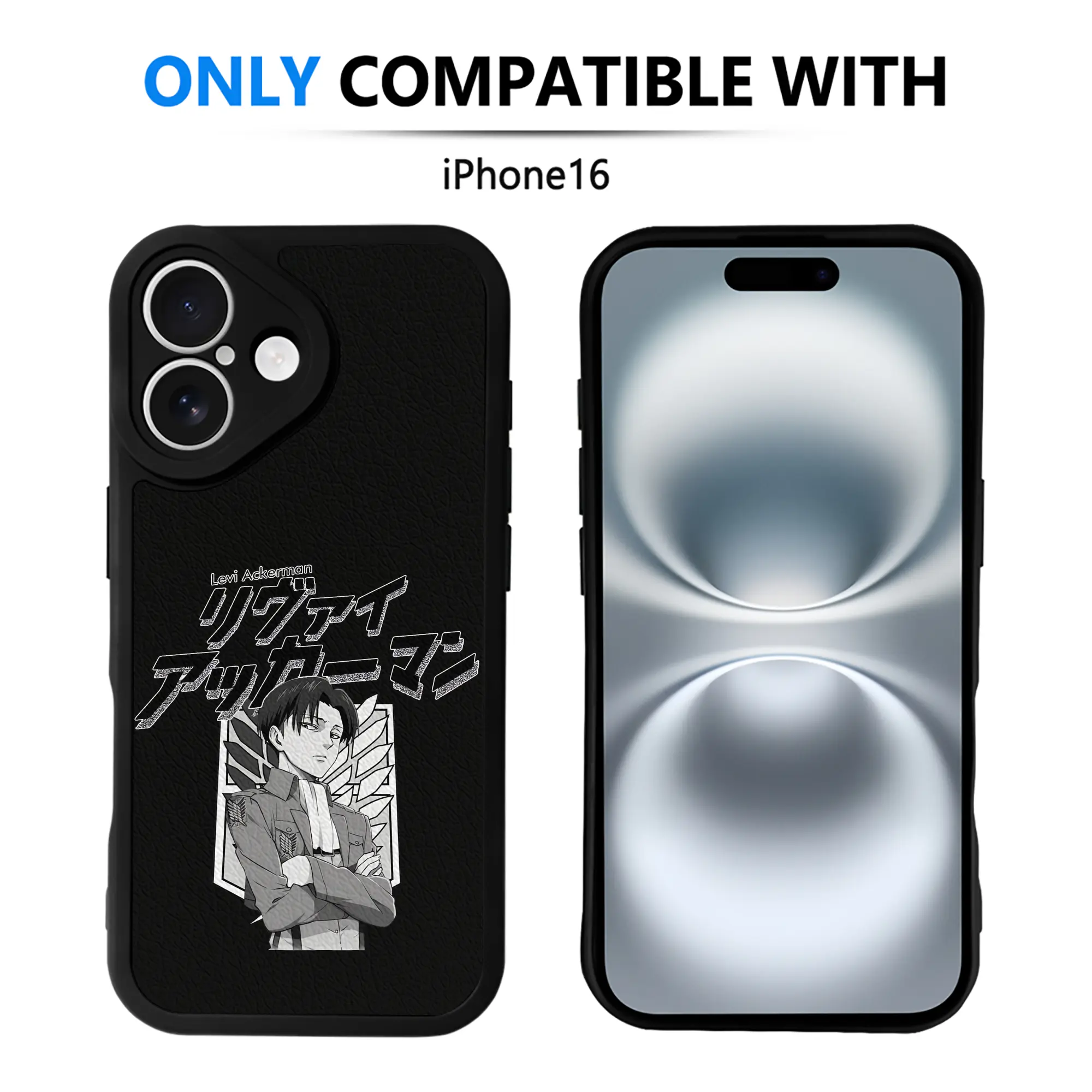 進撃の巨人 グッズ リヴァイ・アッカーマン - IPhone 16シリーズ対応 ・ シリコンスマホケース ・ レザー調 ・ 高精度フィット ・ 耐衝撃 ・ ワイヤレス充電対応 ・ 精密カット