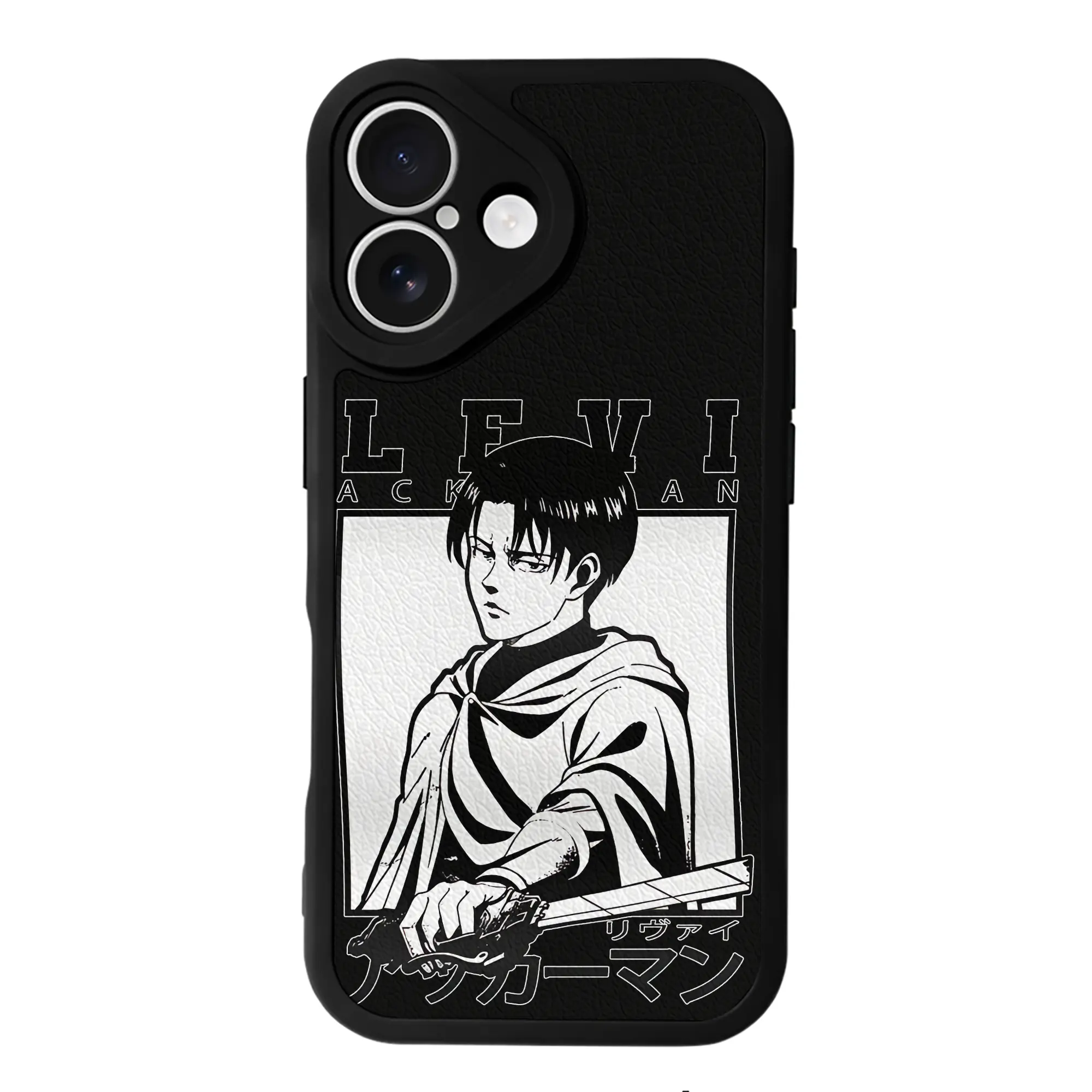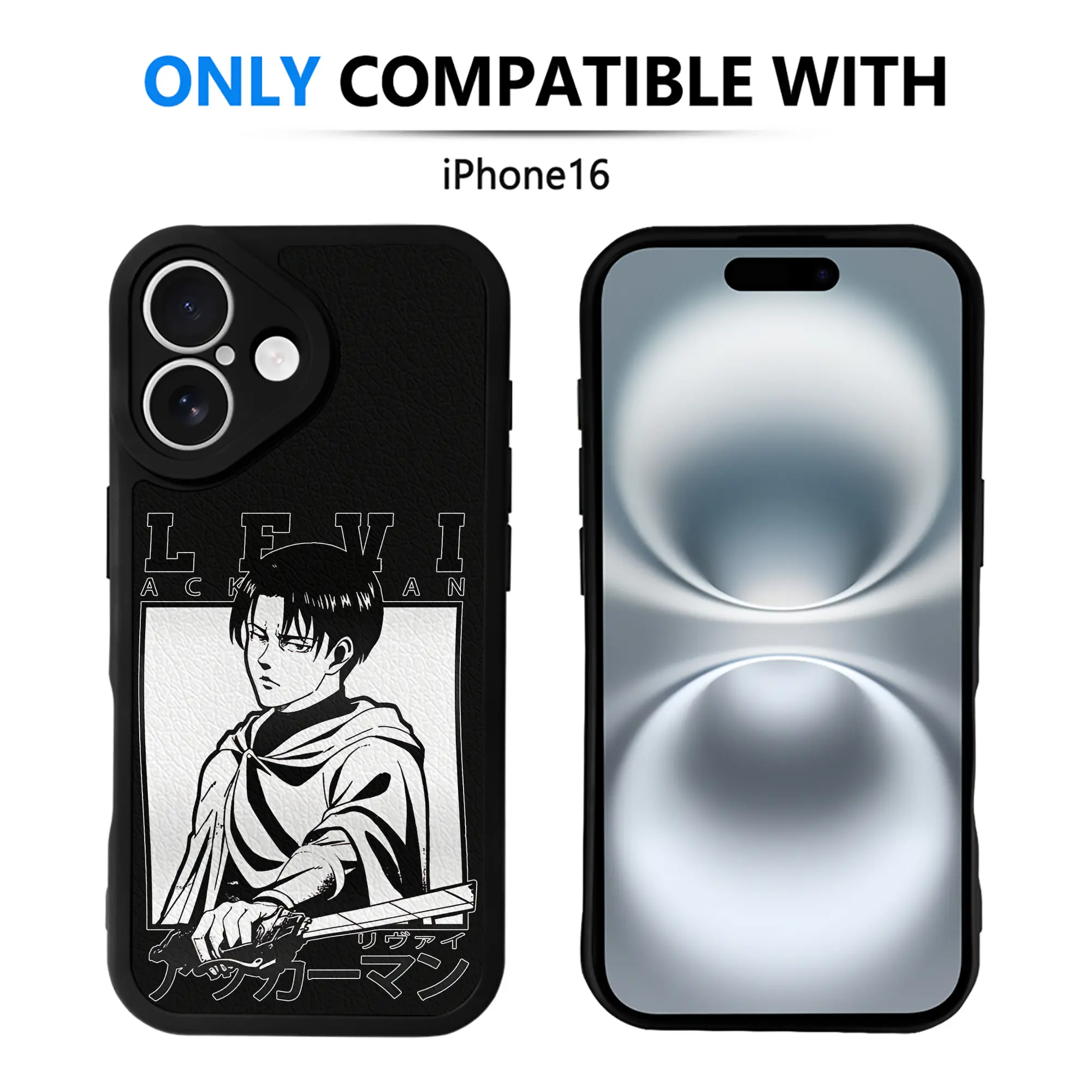 進撃の巨人 グッズ リヴァイ・アッカーマン - IPhone 16シリーズ対応 ・ シリコンスマホケース ・ レザー調 ・ 高精度フィット ・ 耐衝撃 ・ ワイヤレス充電対応 ・ 精密カット