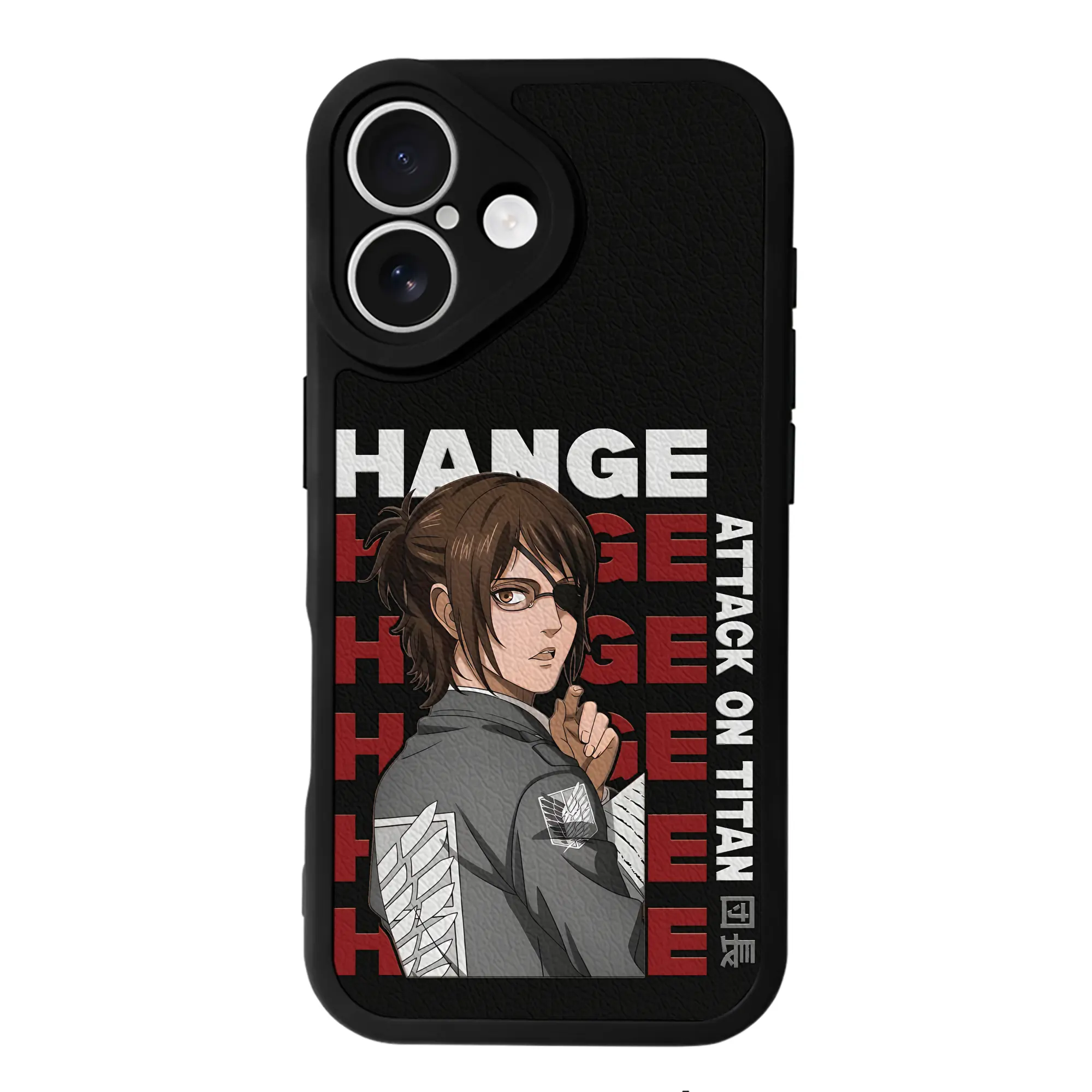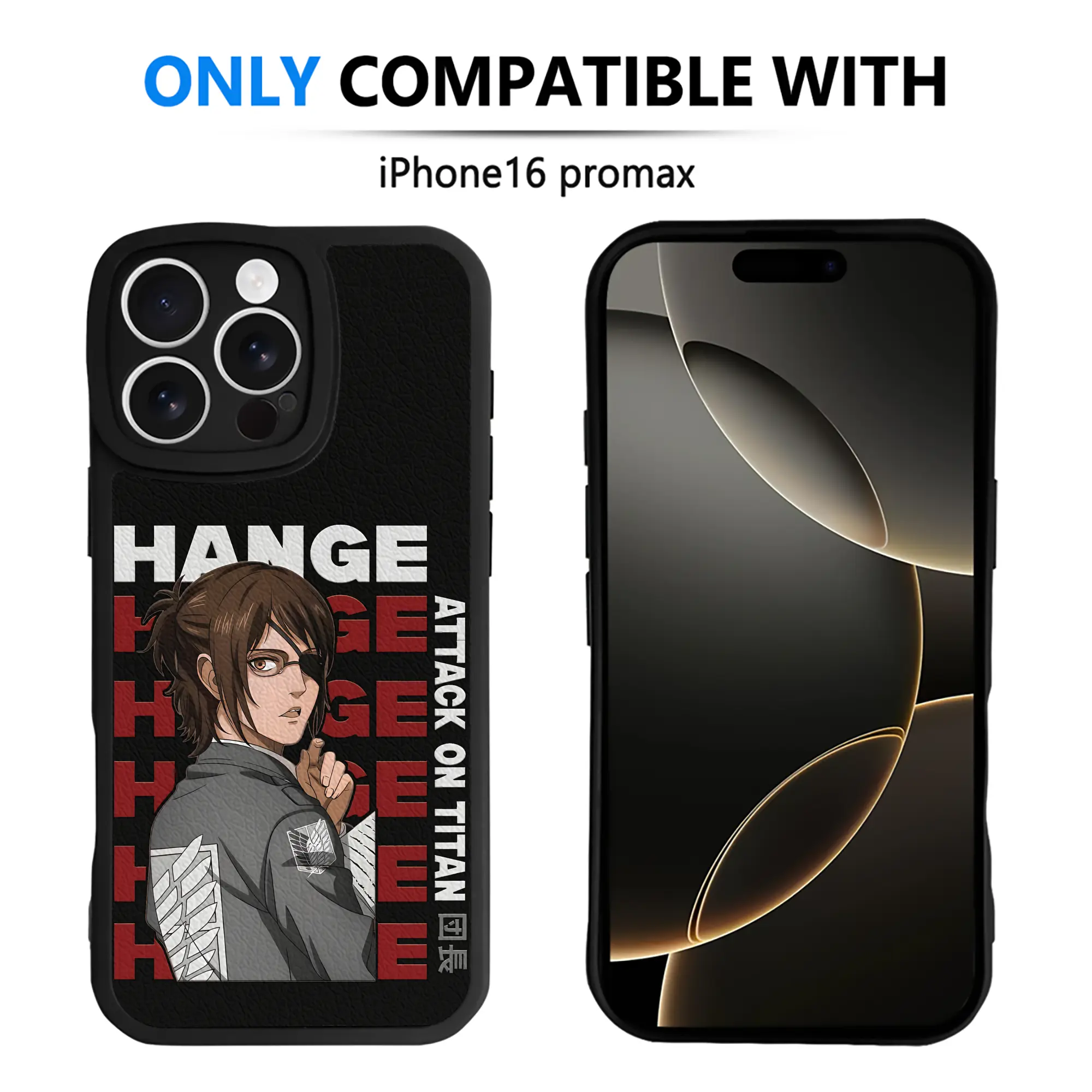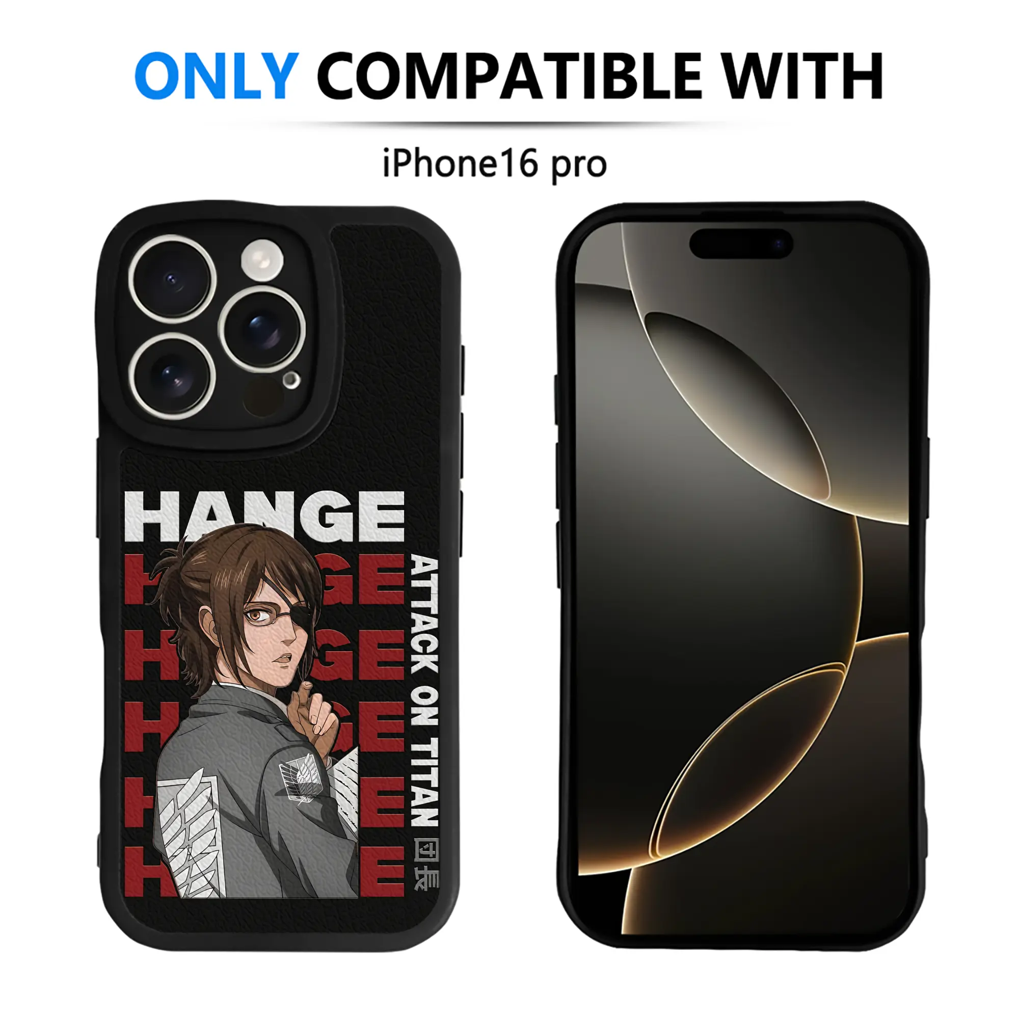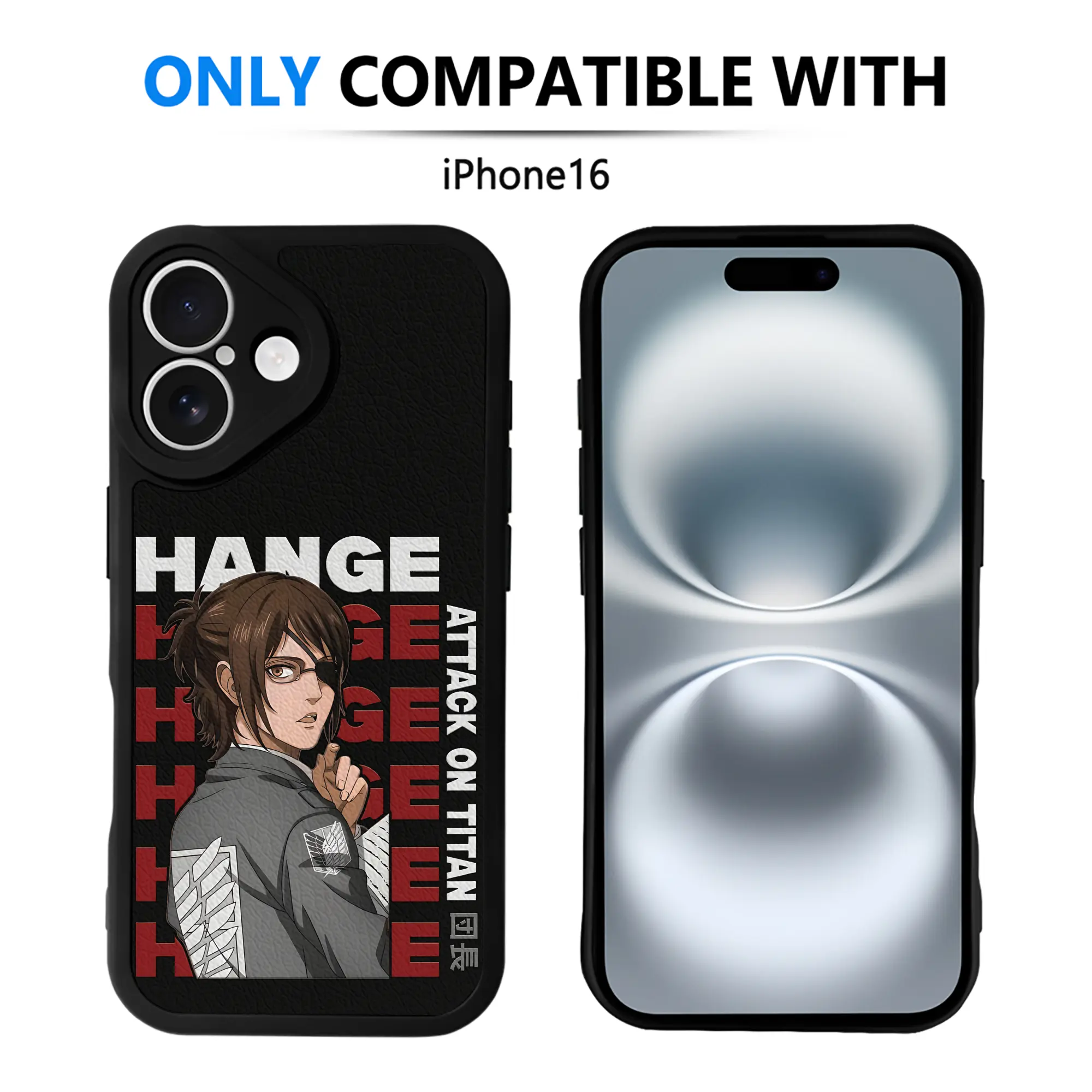進撃の巨人 グッズ ハンジ・ゾエ - IPhone 16シリーズ対応 ・ シリコンスマホケース ・ レザー調 ・ 高精度フィット ・ 耐衝撃 ・ ワイヤレス充電対応 ・ 精密カット