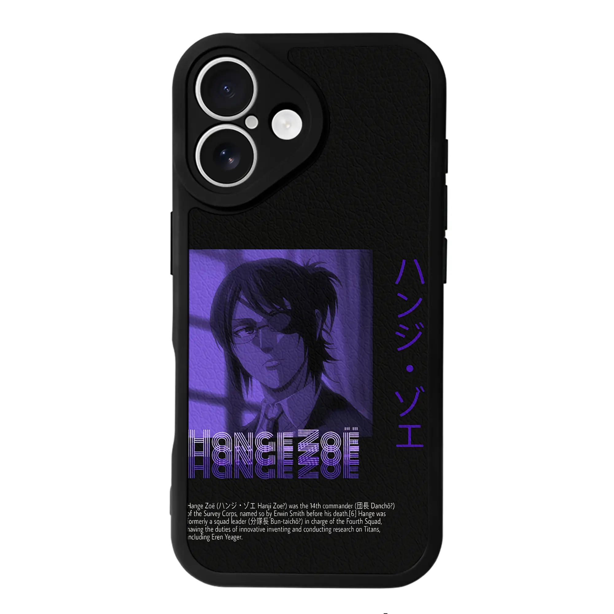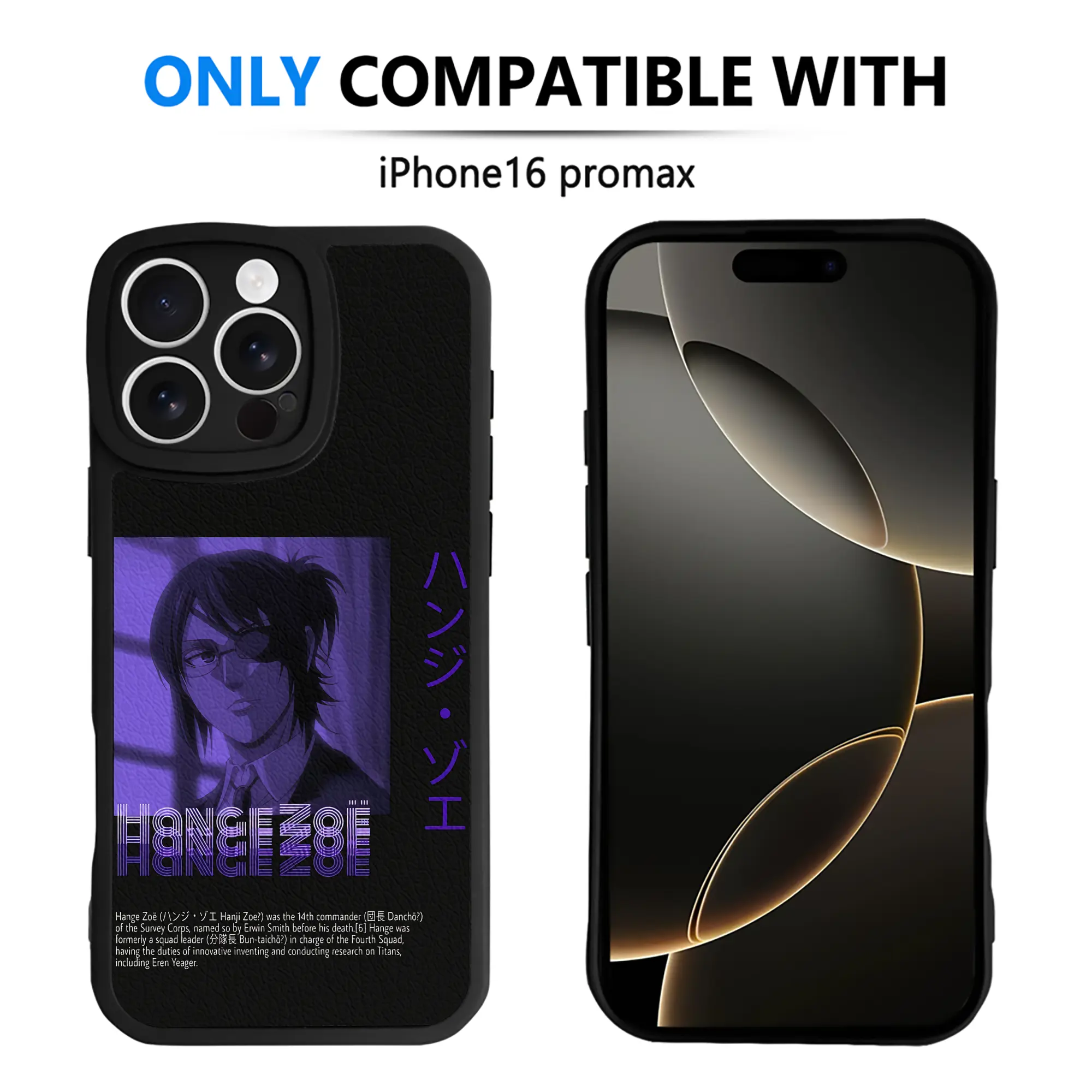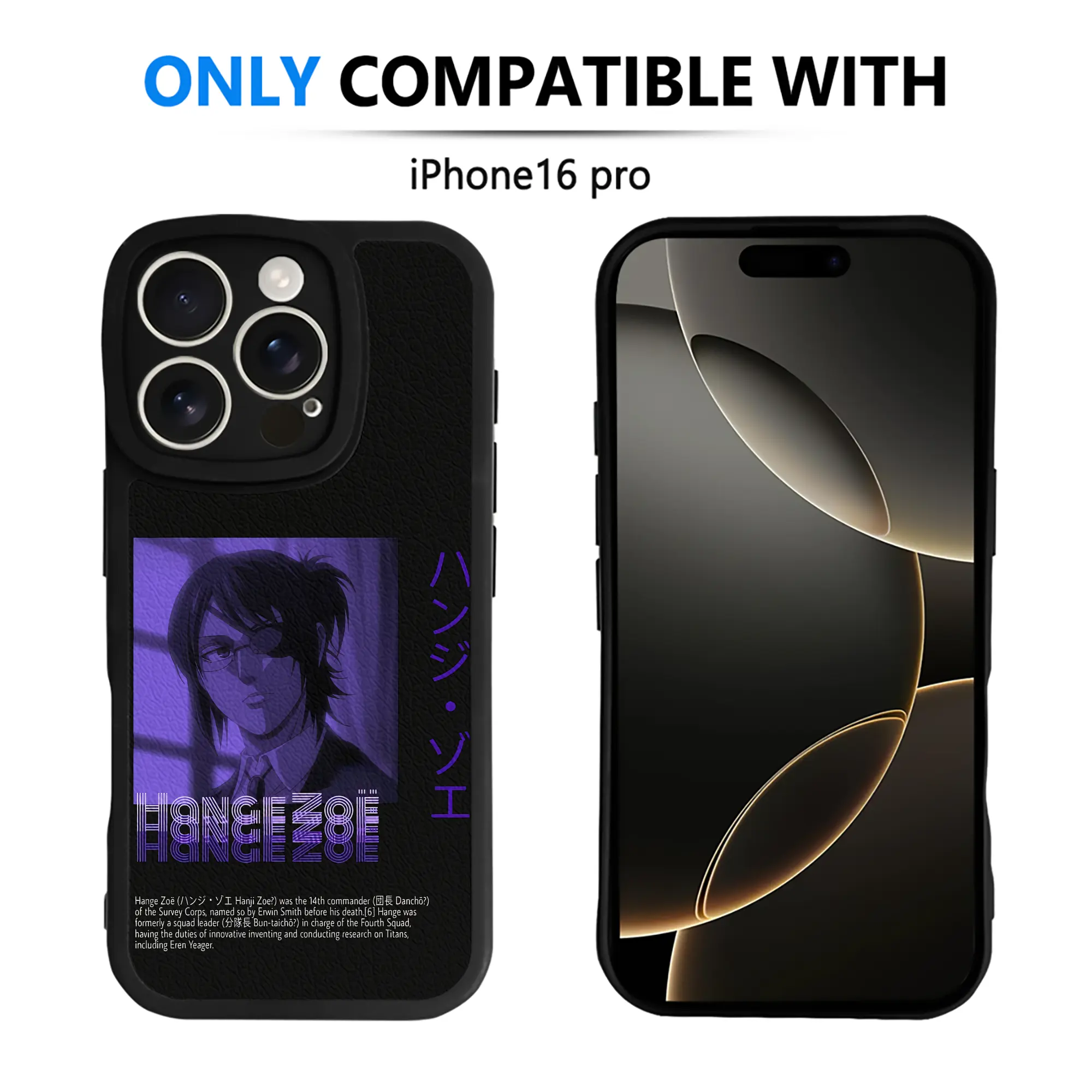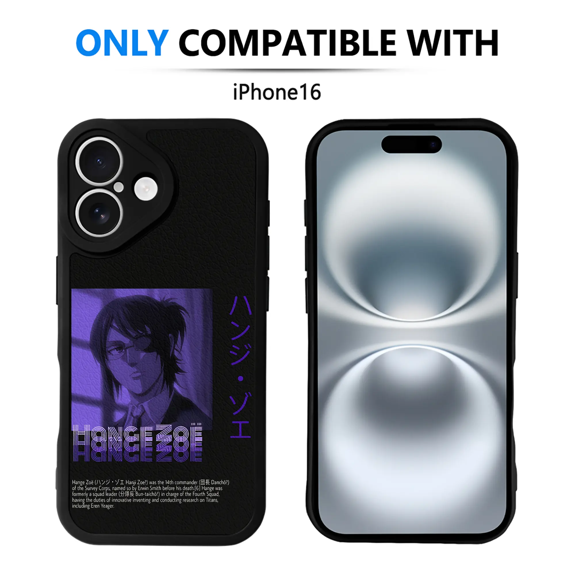 進撃の巨人 グッズ ハンジ・ゾエ - IPhone 16シリーズ対応 ・ シリコンスマホケース ・ レザー調 ・ 高精度フィット ・ 耐衝撃 ・ ワイヤレス充電対応 ・ 精密カット